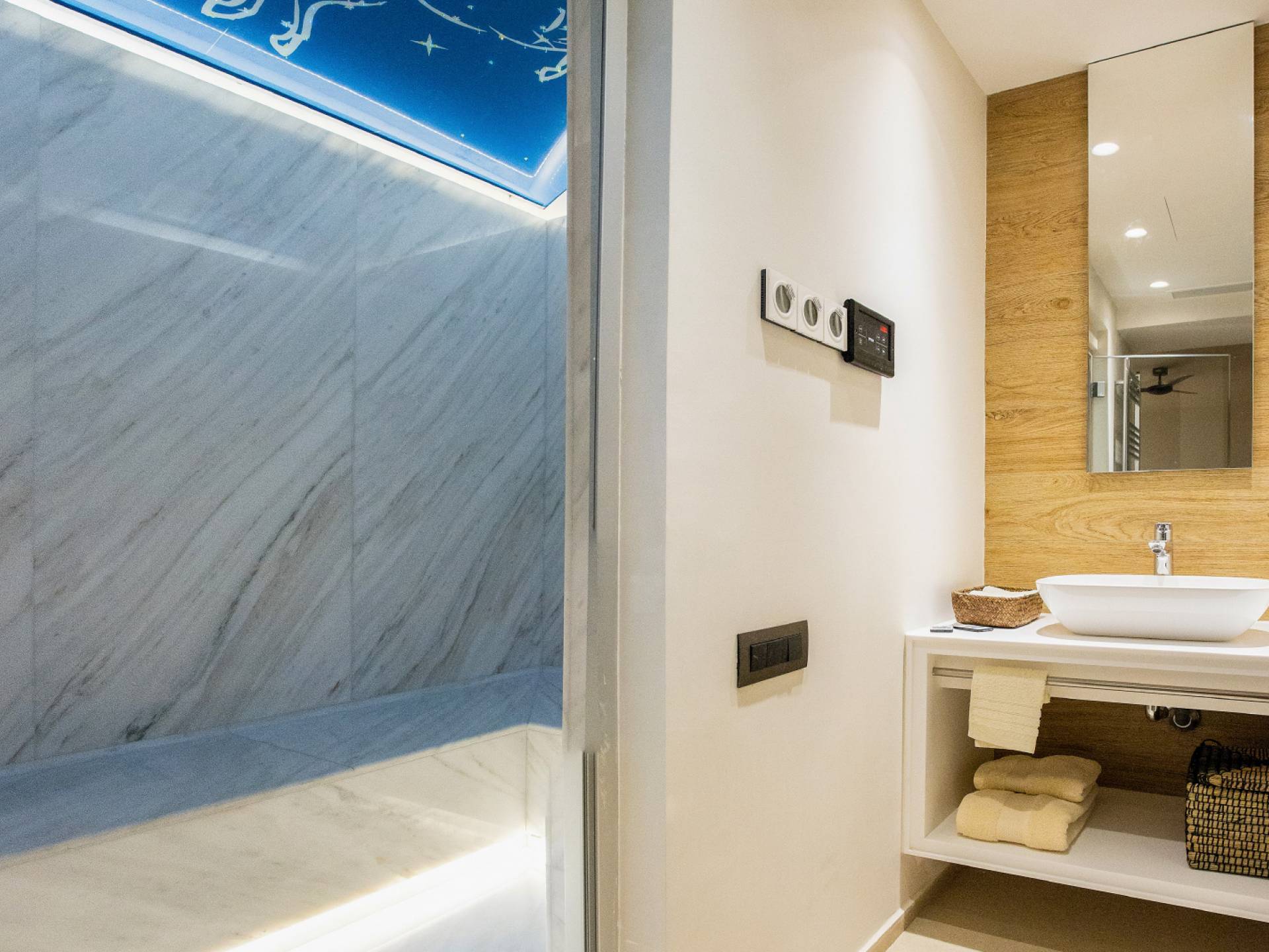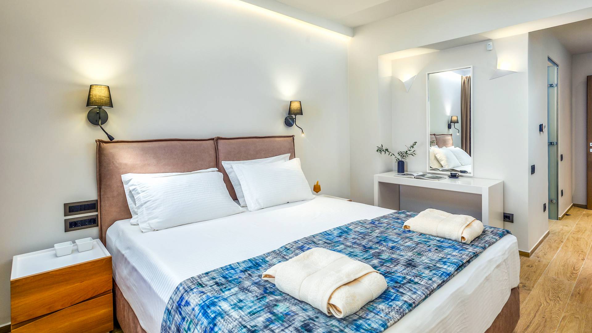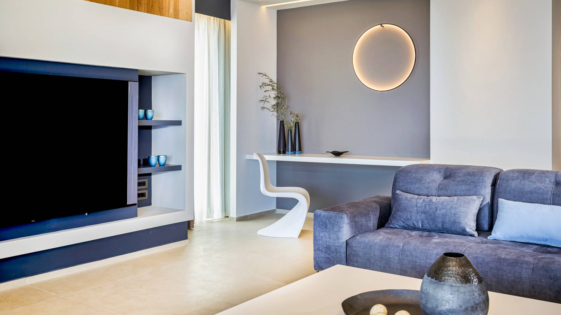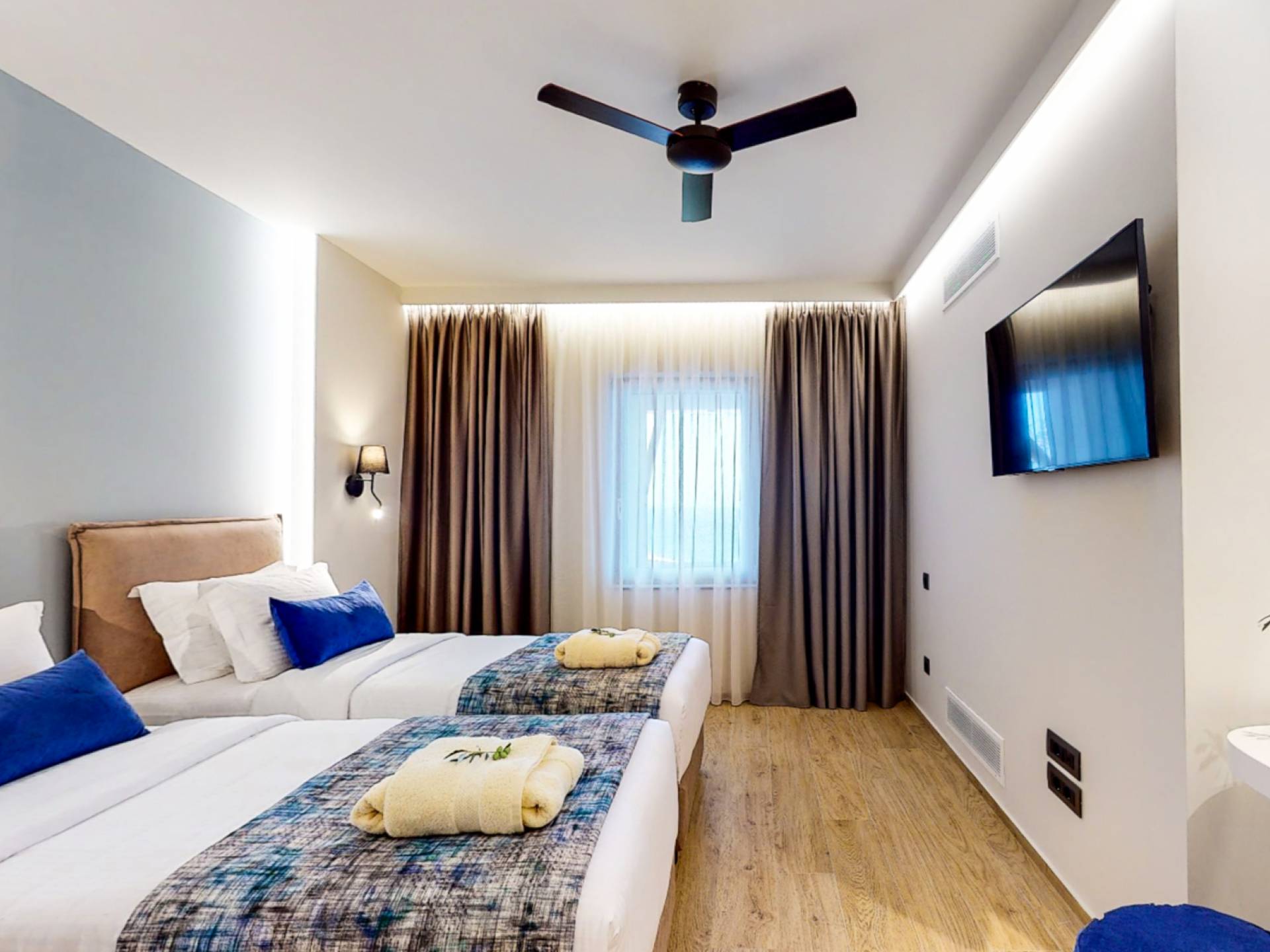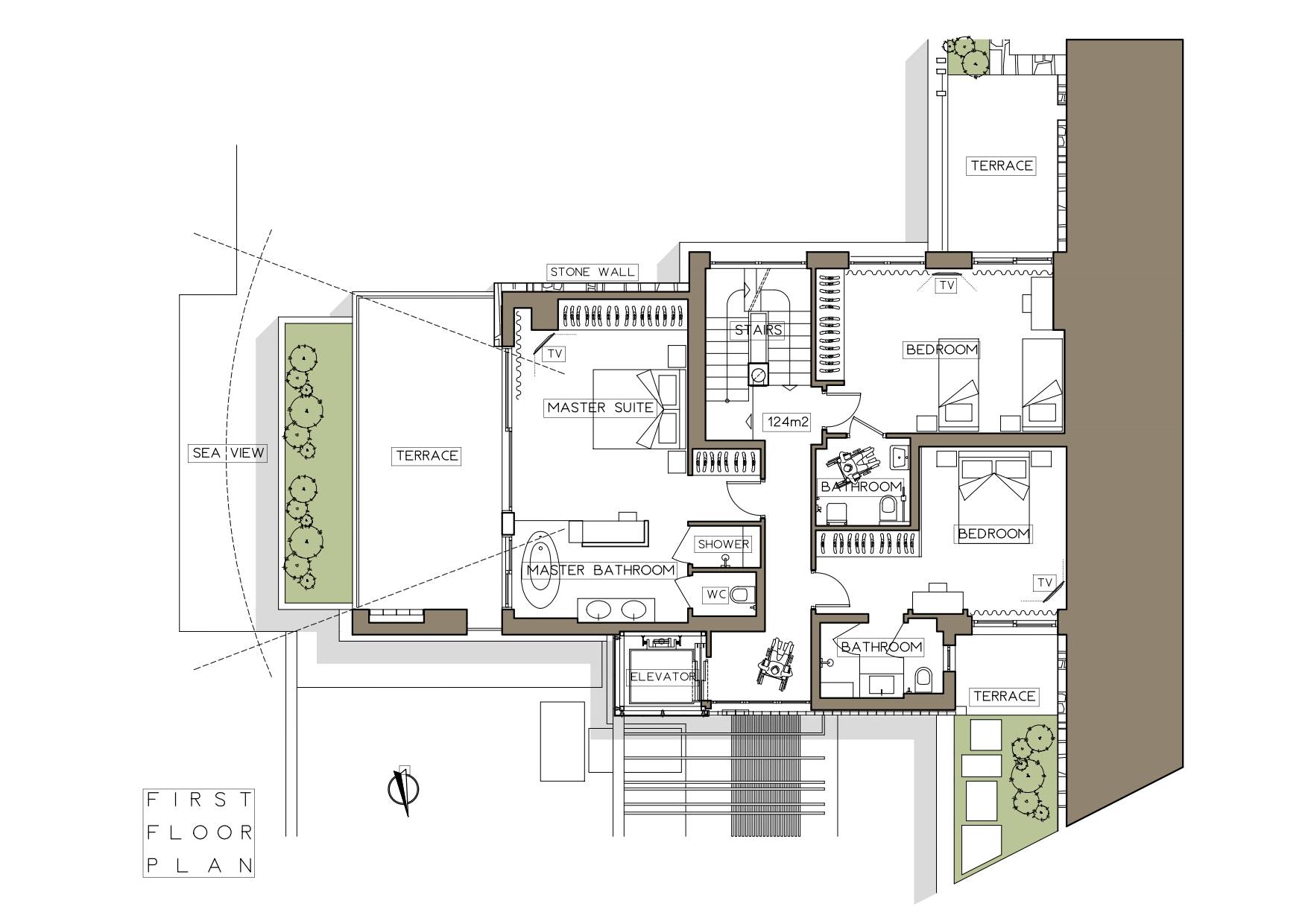 Hyperion Luxury Villa ist auf 500 m2 Fläche gebaut, bestehend aus vier Ebenen, mit direktem Zugang vom Infinity-Pool und Terrassenbereich zum Erdgeschoss mit seiner voll ausgestatteten modernen Küche mit offenem Wohn- und Sitzbereich. Es ist ein behindertengerechtes Haus und verfügt über einen modernen Aufzug, der vom Eingang im zweiten Stock der Villa aus zugänglich ist und auch zum 1. Hauptschlafzimmer führt, wo sich die Rollstuhlrampe befindet.