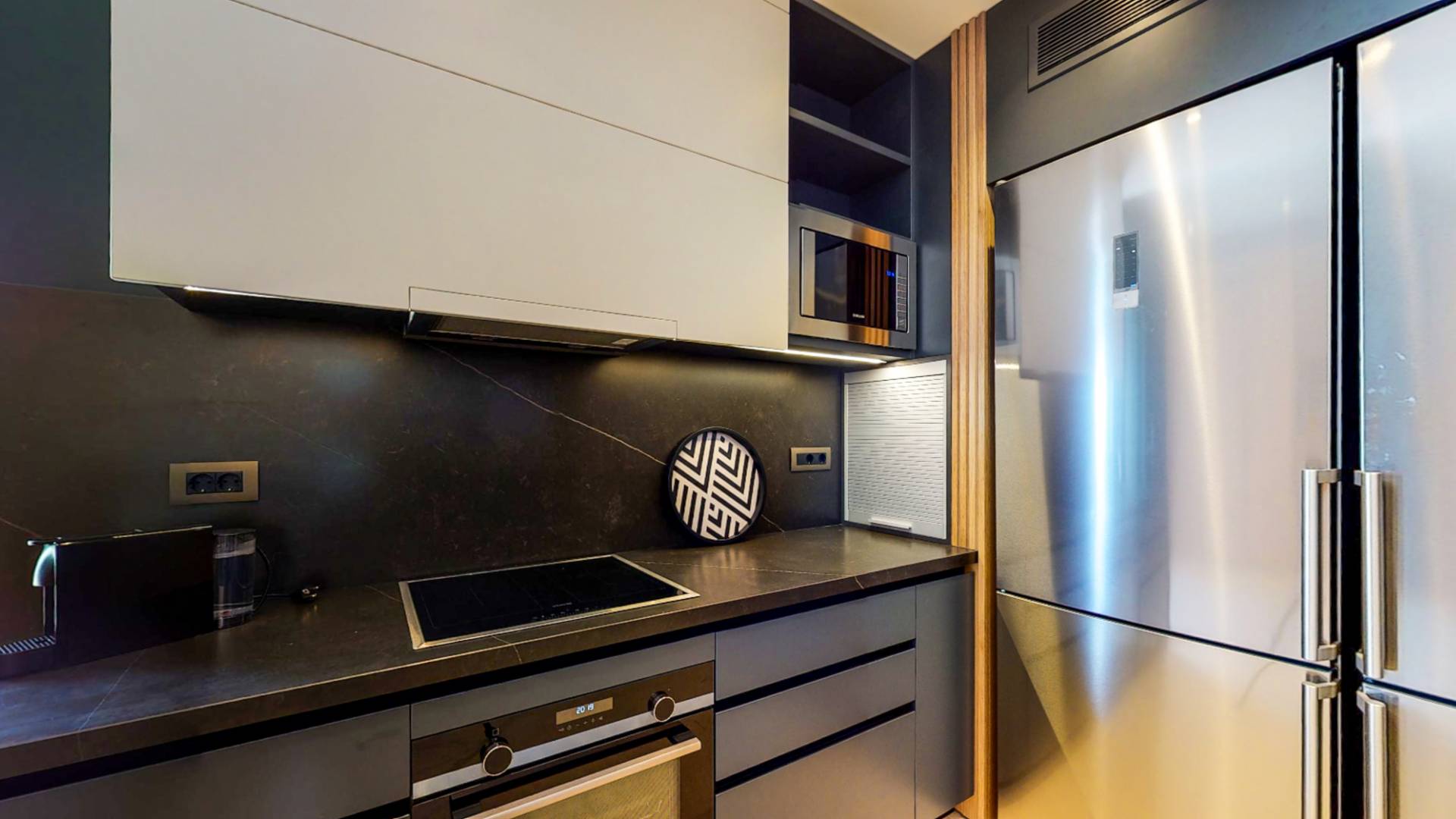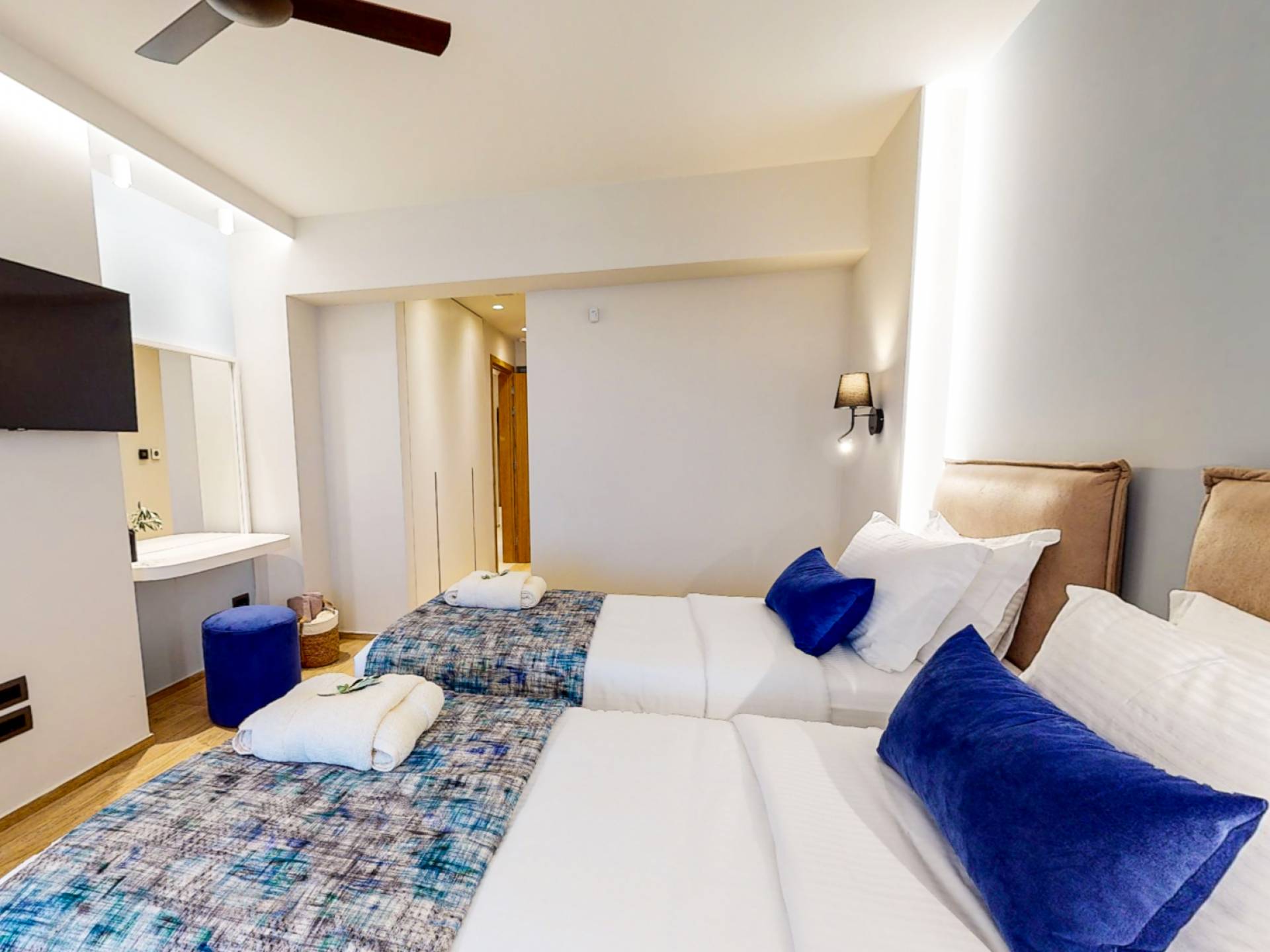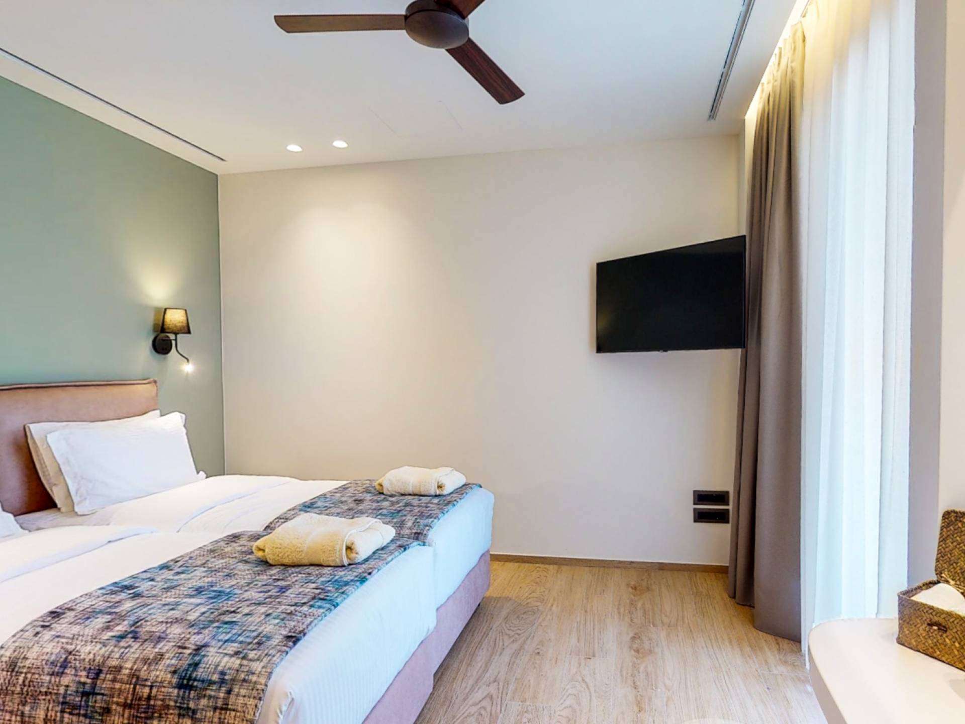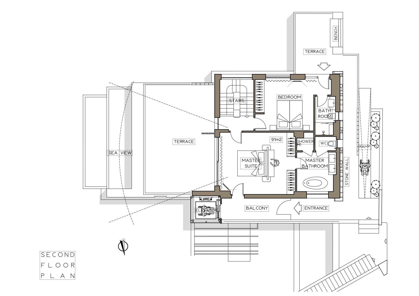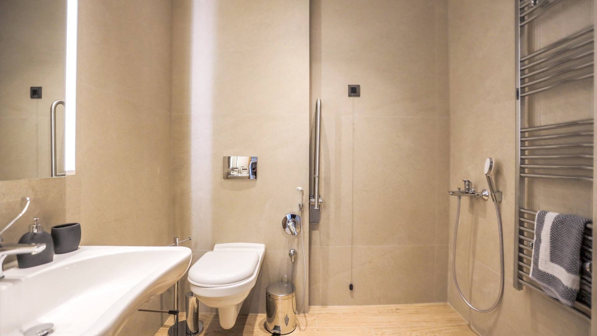 Hyperion Luxury Villa ist auf 500 m2 Fläche gebaut, bestehend aus vier Ebenen, mit direktem Zugang vom Infinity-Pool und Terrassenbereich zum Erdgeschoss mit seiner voll ausgestatteten modernen Küche mit offenem Wohn- und Sitzbereich. Es ist ein behindertengerechtes Haus und verfügt über einen modernen Aufzug, der vom Eingang im zweiten Stock der Villa aus zugänglich ist und auch zum 1. Hauptschlafzimmer führt, wo sich die Rollstuhlrampe befindet.