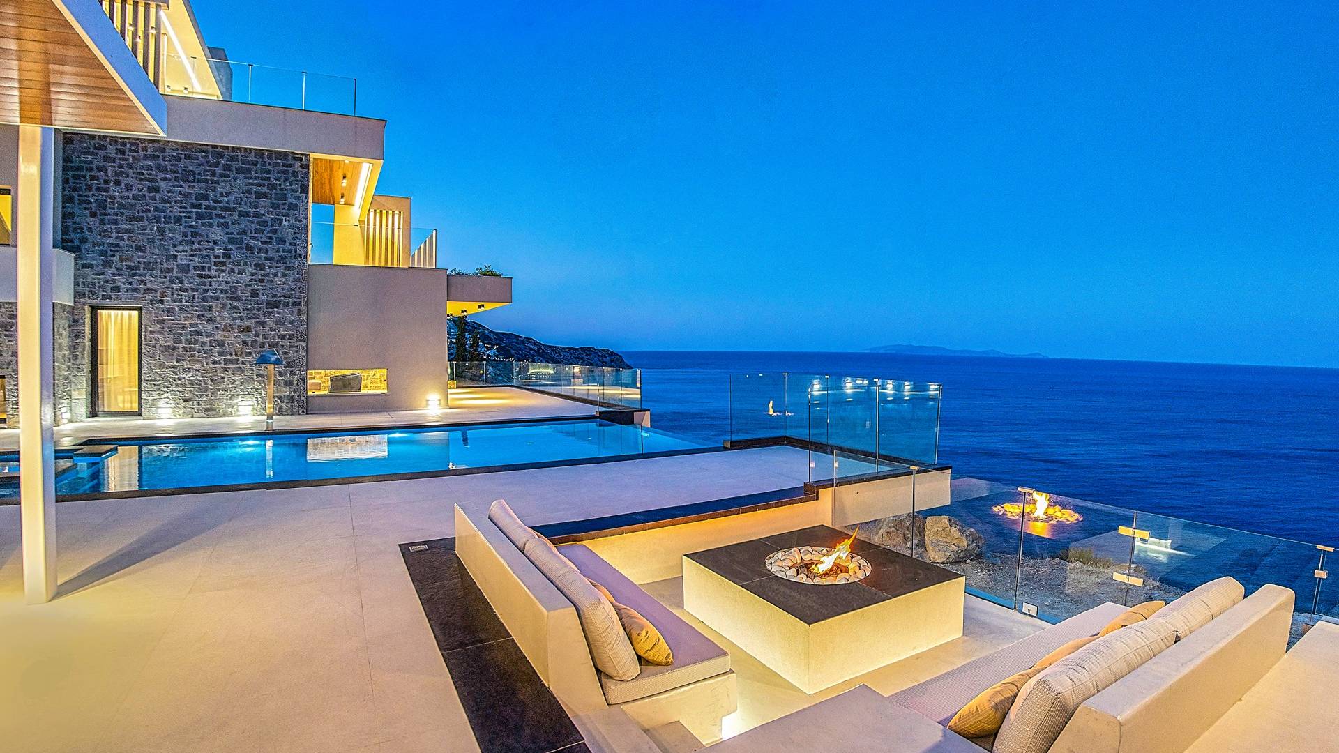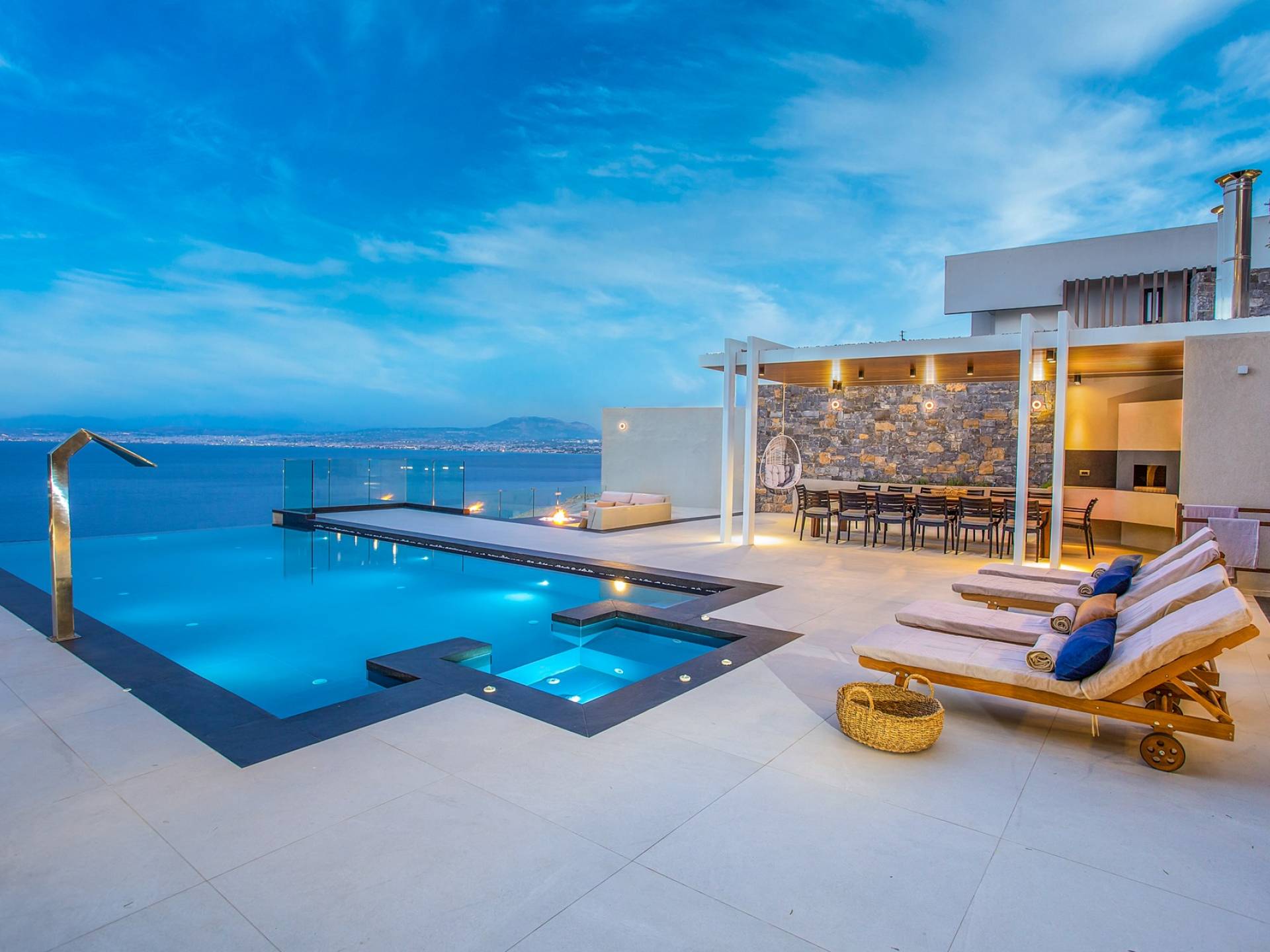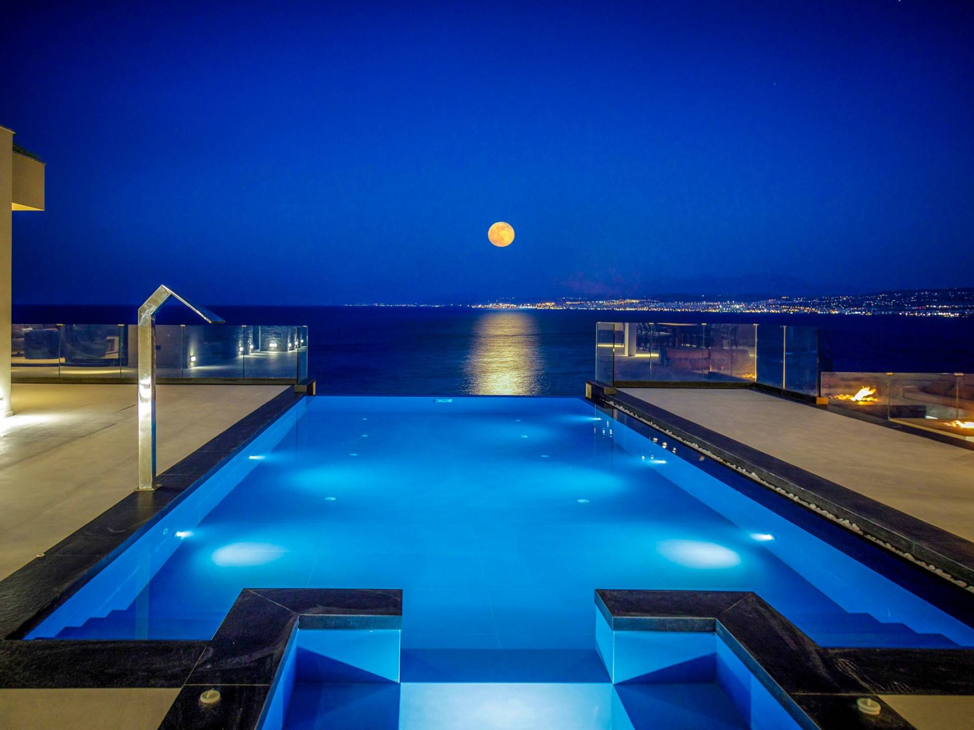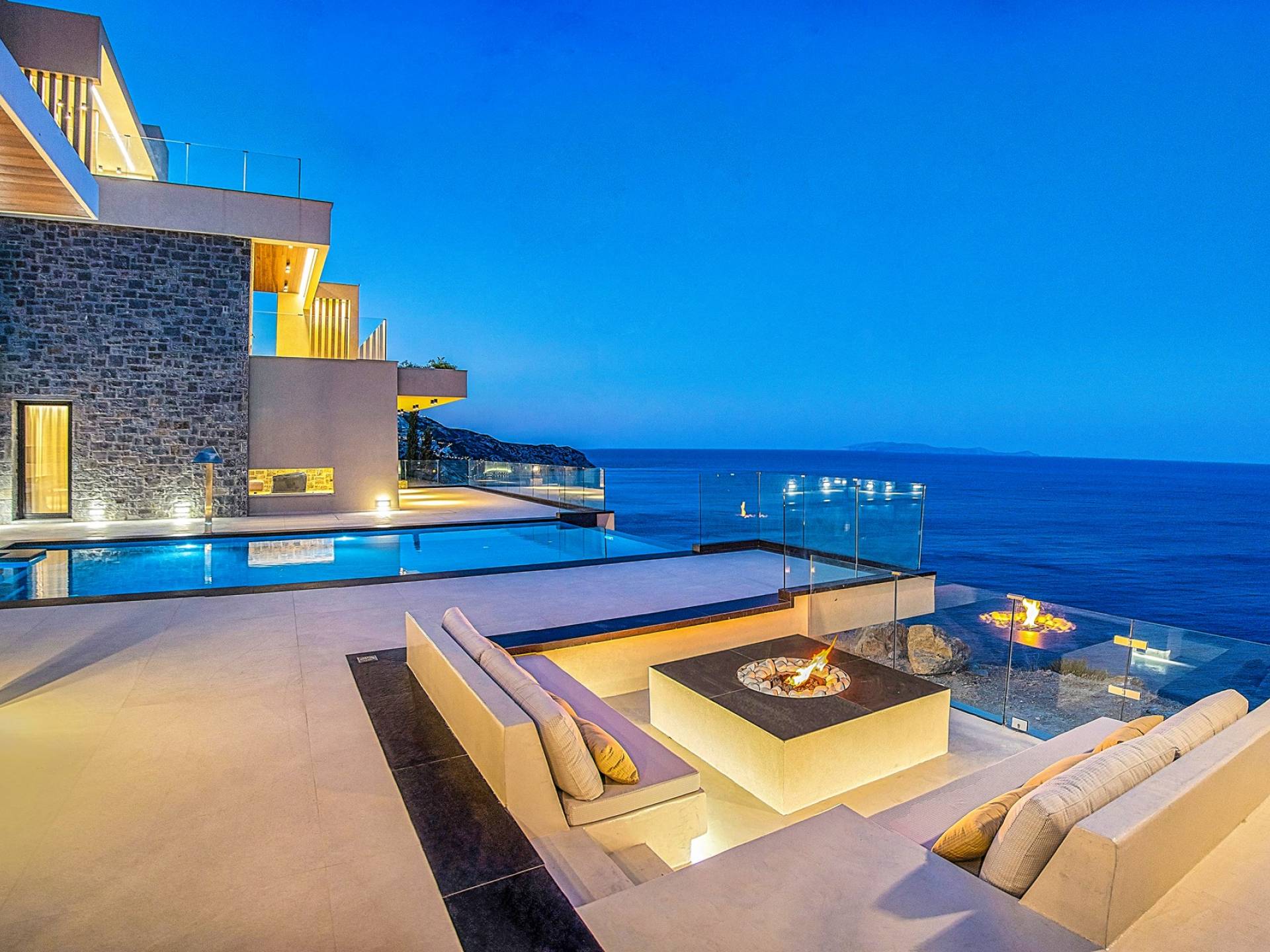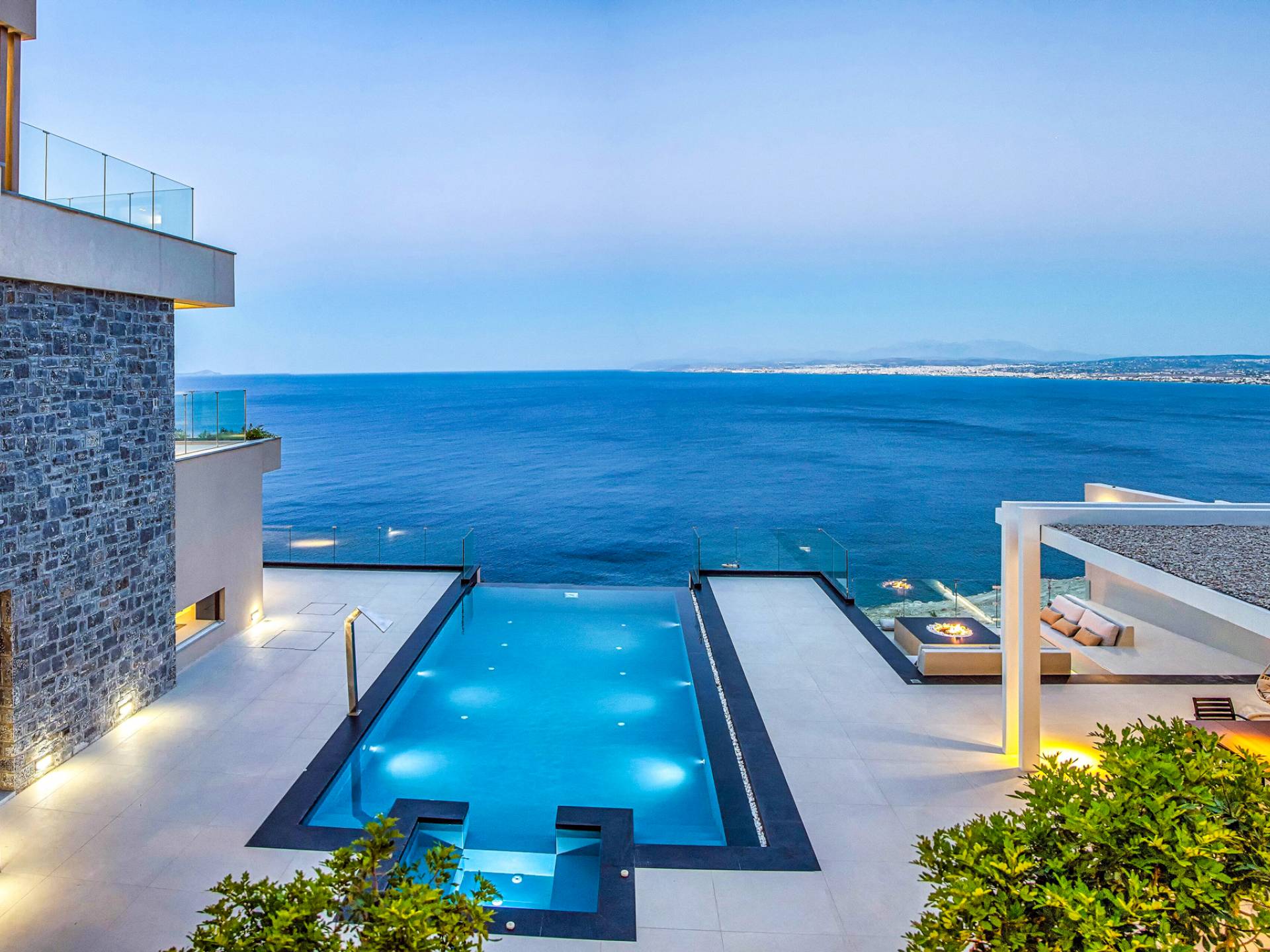 Die Hyperion Villa ist ein neu erbautes (2020), privates, luxuriöses Haus mit 7 Schlafzimmern, einem Infinity-Außenpool, einem SPA und einem Wasserfall sowie einem Feuerstellenbereich und einem Panoramablick auf das Meer mit Blick auf das Kretische Meer mit seinen fantastischen Sonnenuntergängen - eine wahre Augenweide.