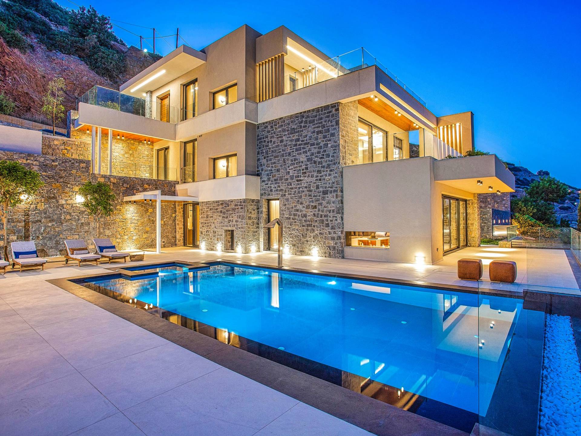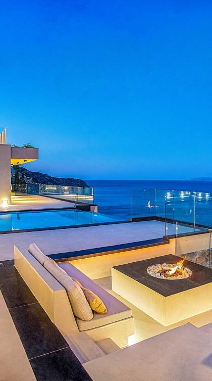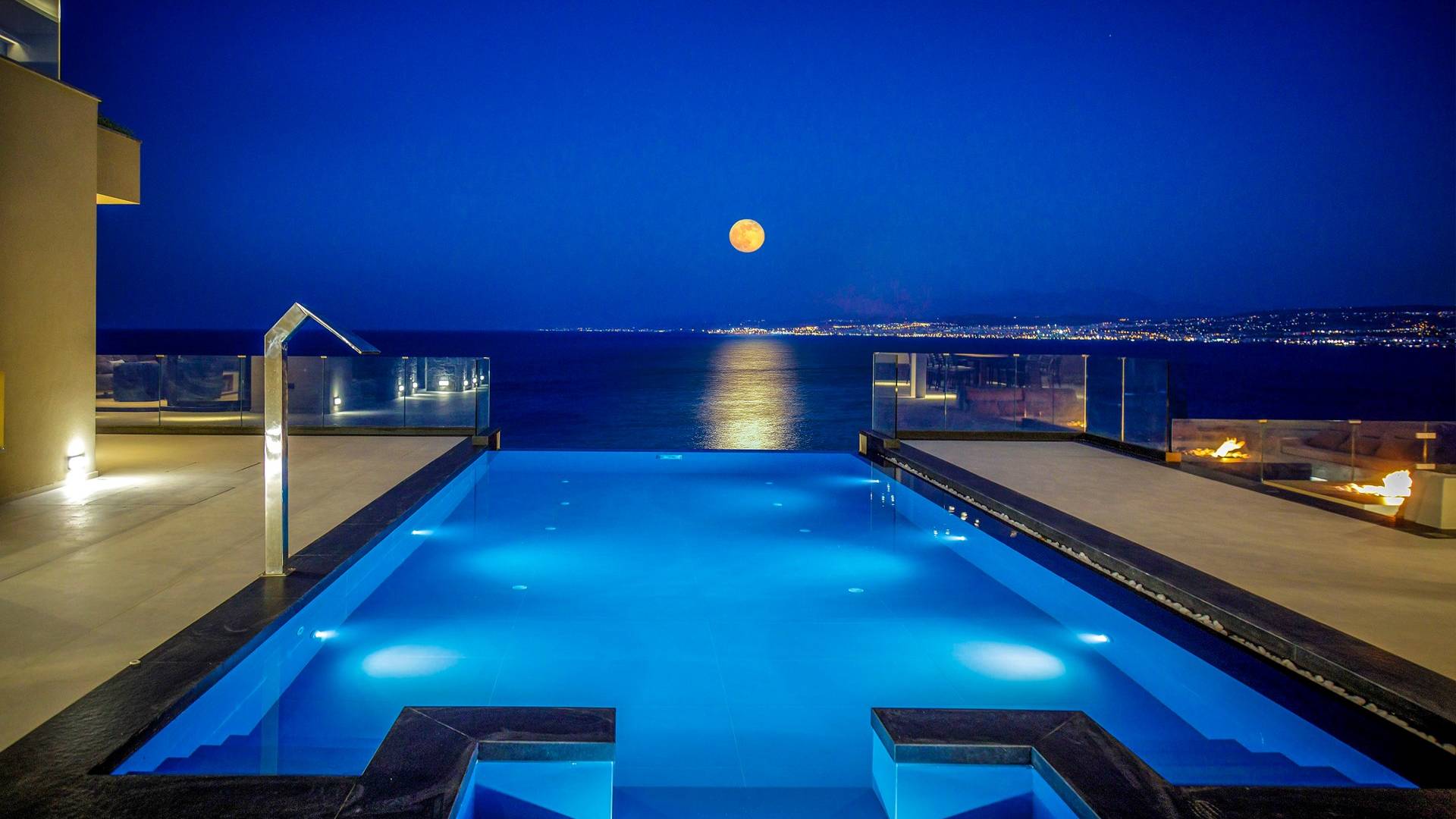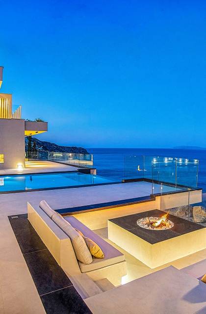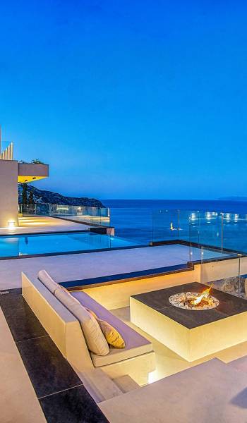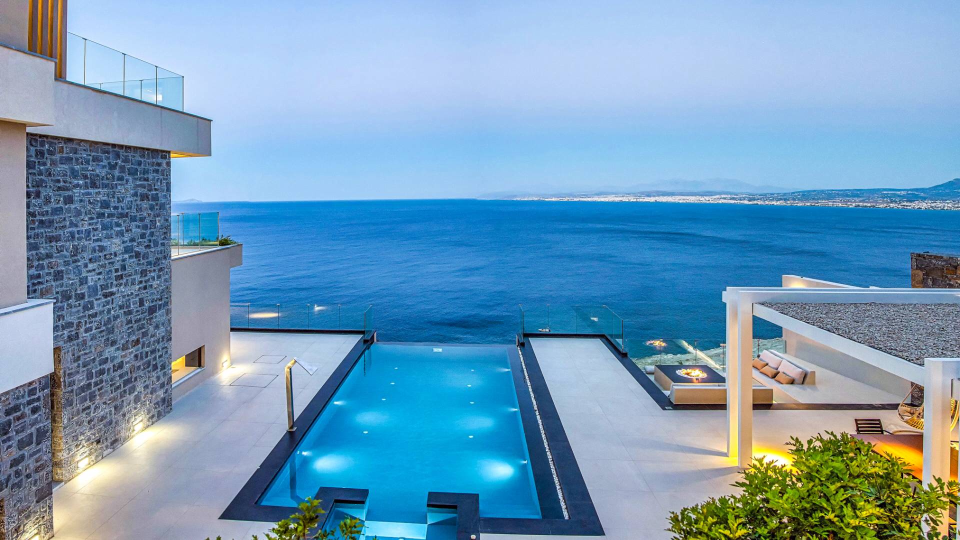 Die Hyperion Villa ist ein neu erbautes (2020), privates, luxuriöses Haus mit 7 Schlafzimmern, einem Infinity-Außenpool, einem SPA und einem Wasserfall sowie einem Feuerstellenbereich und einem Panoramablick auf das Meer mit Blick auf das Kretische Meer mit seinen fantastischen Sonnenuntergängen - eine wahre Augenweide.