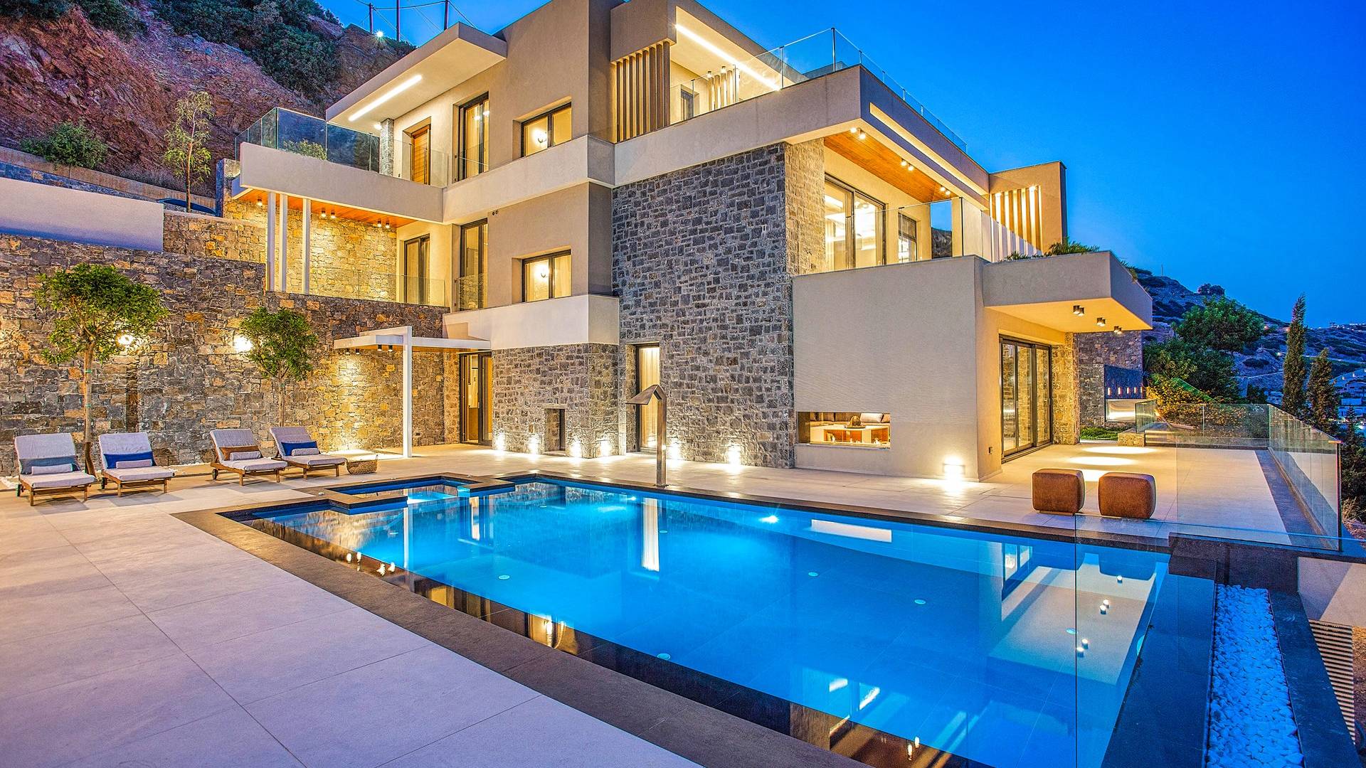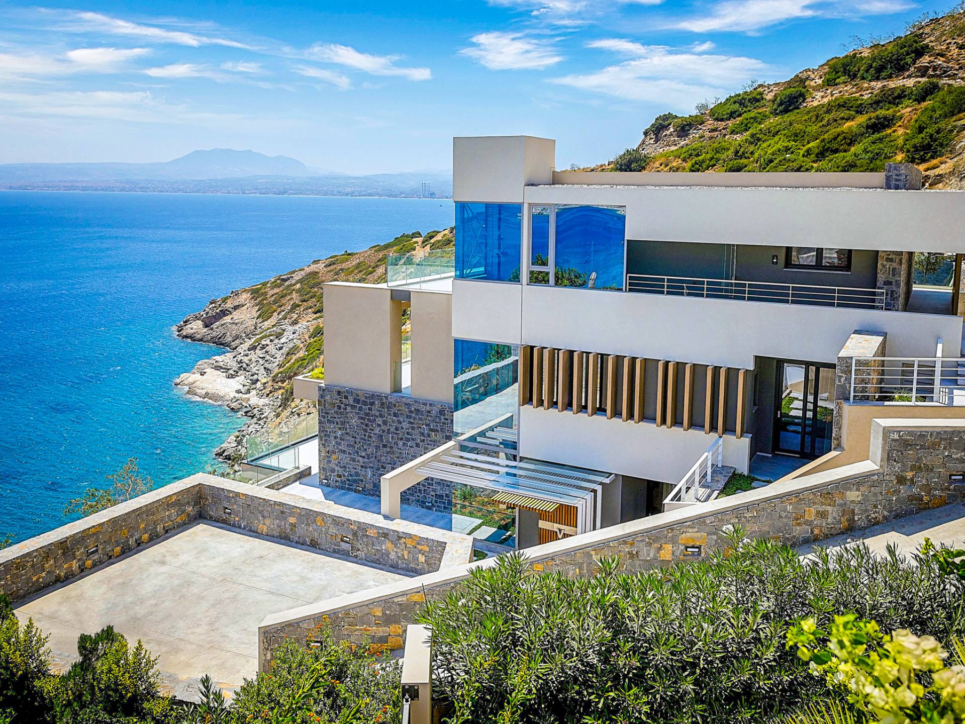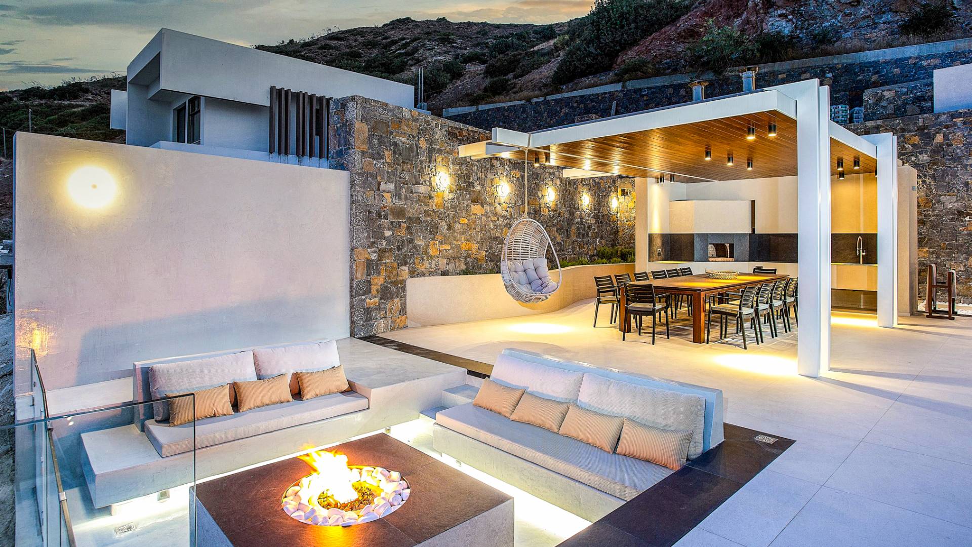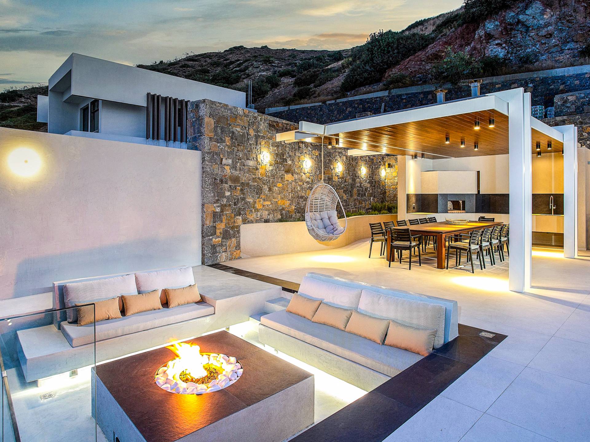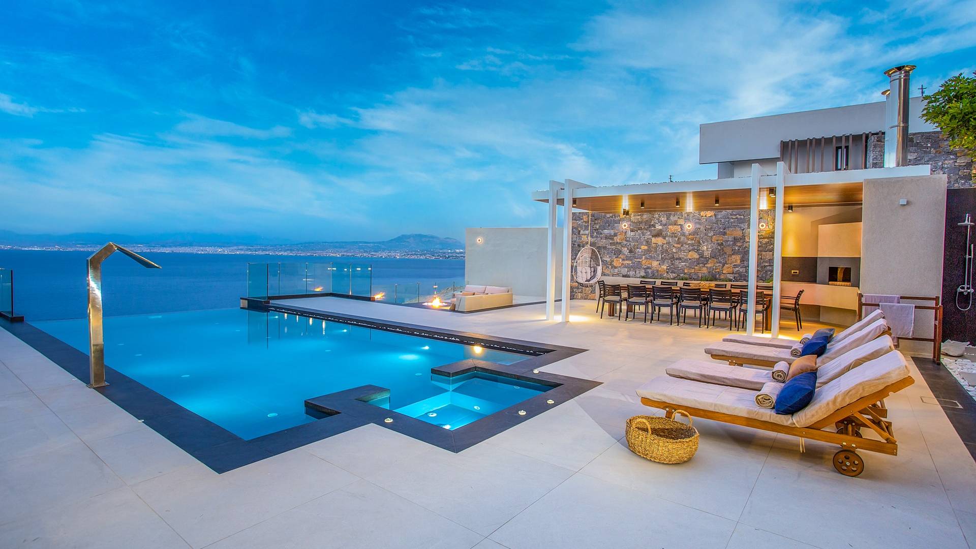 Die Hyperion Villa ist ein neu erbautes (2020), privates, luxuriöses Haus mit 7 Schlafzimmern, einem Infinity-Außenpool, einem SPA und einem Wasserfall sowie einem Feuerstellenbereich und einem Panoramablick auf das Meer mit Blick auf das Kretische Meer mit seinen fantastischen Sonnenuntergängen - eine wahre Augenweide.