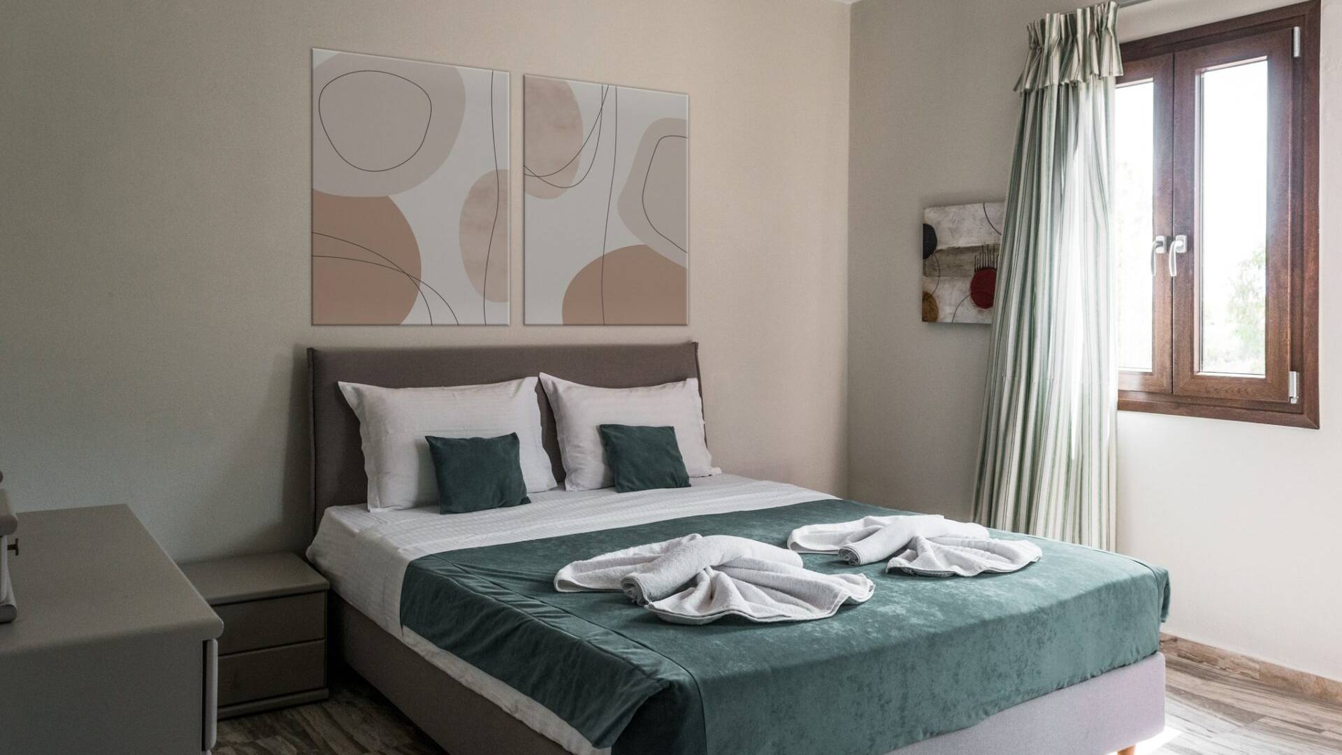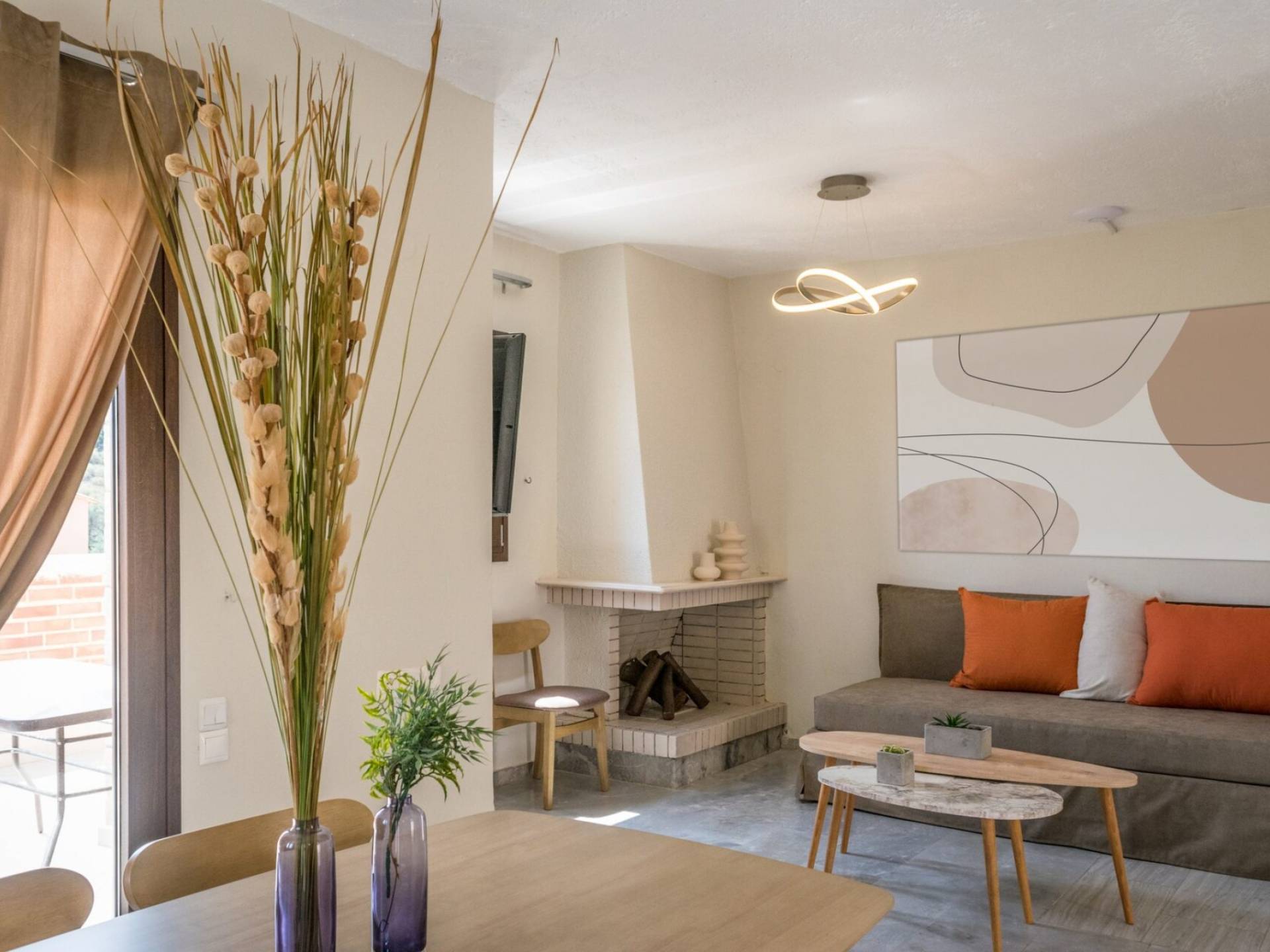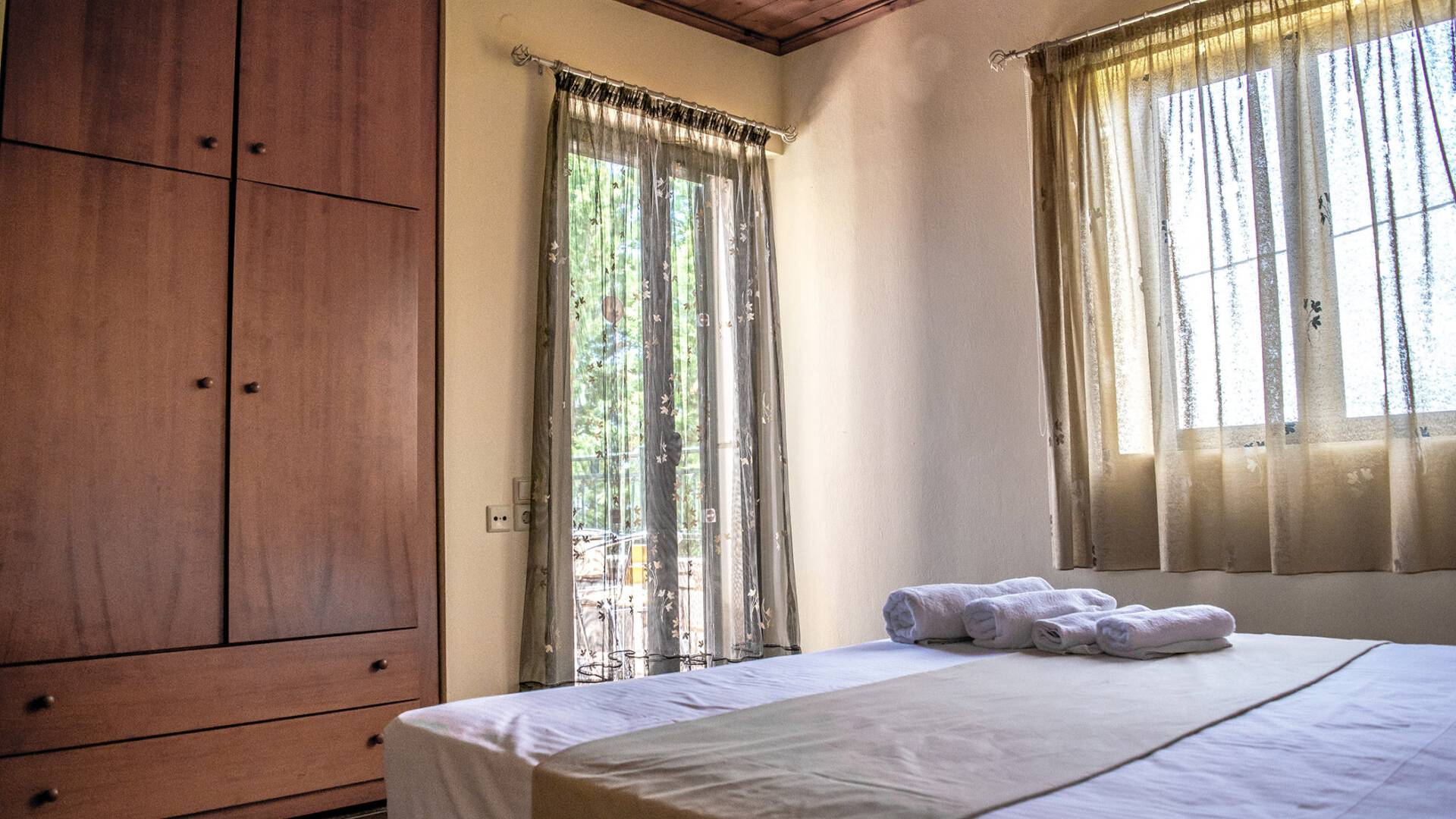 Villa Liagori bietet Platz für bis zu 4 Personen. Es besteht aus 1 Schlafzimmer mit Doppelbett und eigenem Bad, 1 Schlafzimmer mit 2 Einzelbetten und einem Badezimmer im ersten Stock. Im Erdgeschoss befindet sich die Küche mit offenem Wohnzimmer, WC und Kamin. Liagori bietet auch einen Holzofen im Garten an.