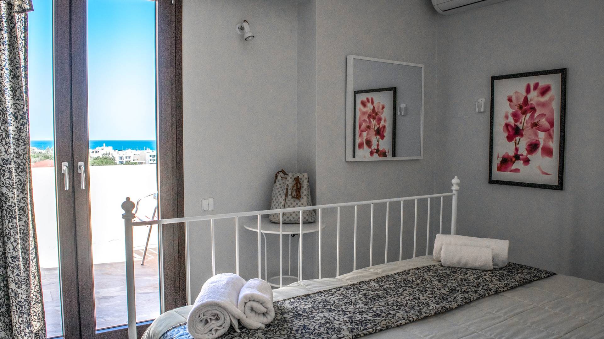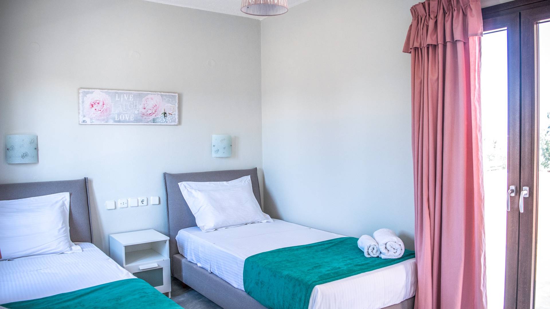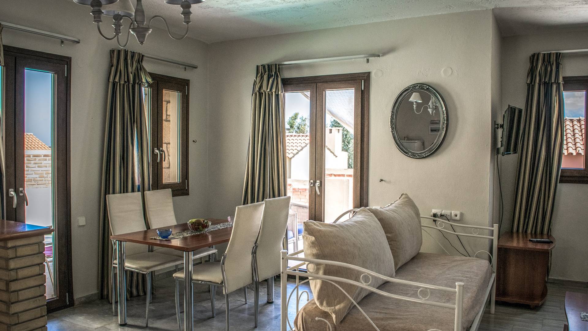 Villa Irida bietet Platz für bis zu 4 Personen. Es besteht aus 1 Schlafzimmer mit Doppelbett, 1 Schlafzimmer mit 2 Einzelbetten und einem Badezimmer im 1. Stock. Im Erdgeschoss befindet sich die Küche mit offenem Wohnzimmer, WC und Kamin.