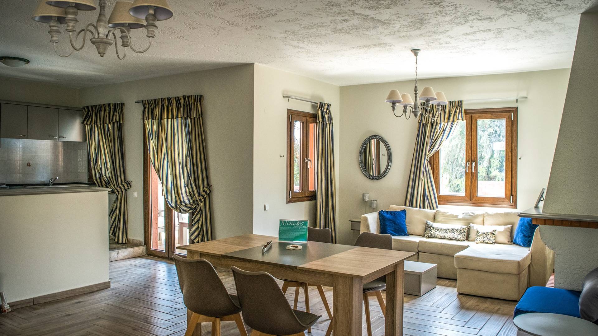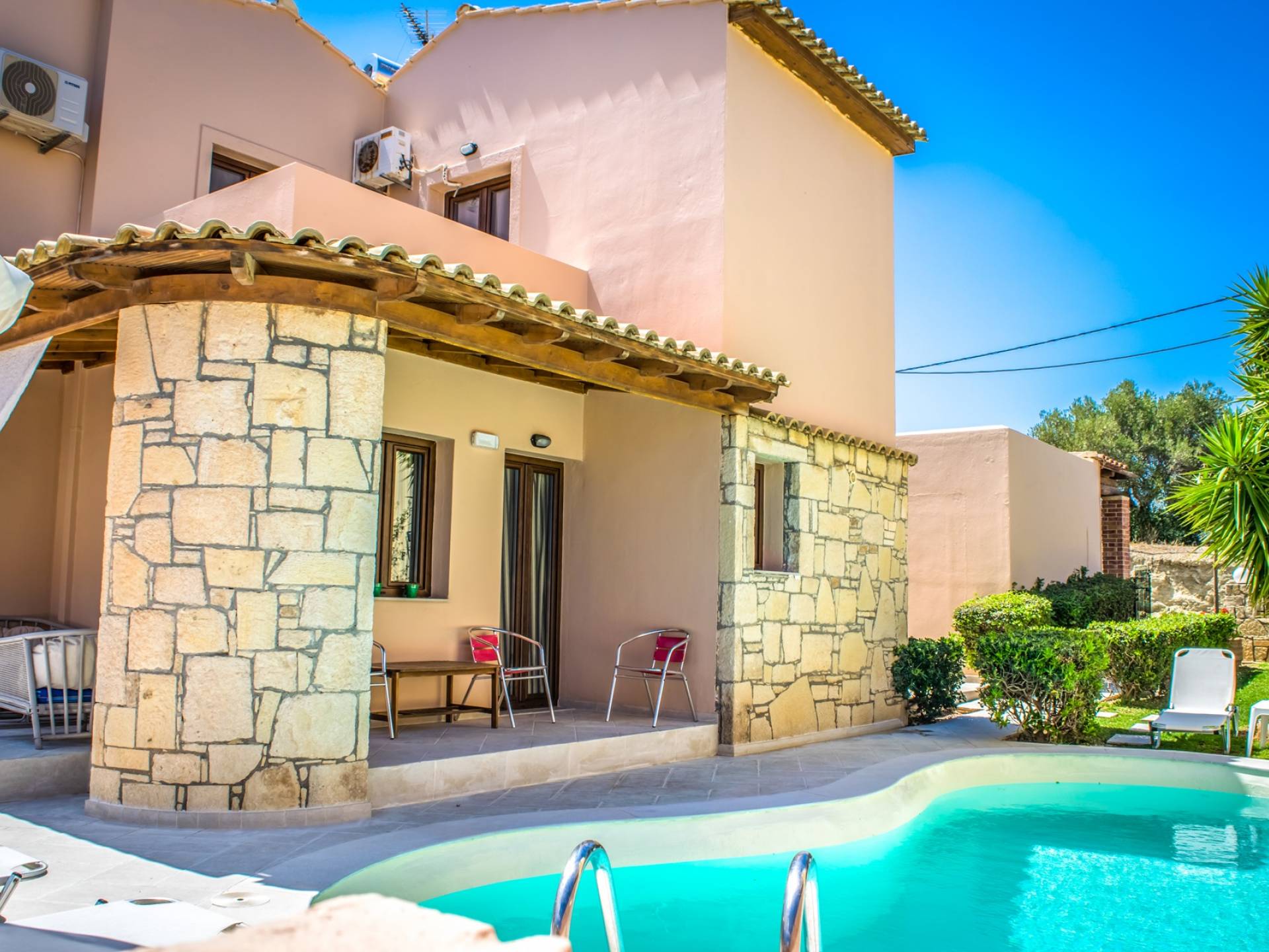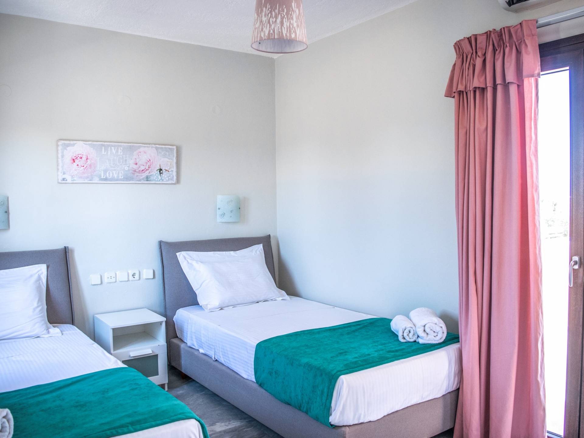 Villa Irida bietet Platz für bis zu 4 Personen. Es besteht aus 1 Schlafzimmer mit Doppelbett, 1 Schlafzimmer mit 2 Einzelbetten und einem Badezimmer im 1. Stock. Im Erdgeschoss befindet sich die Küche mit offenem Wohnzimmer, WC und Kamin.