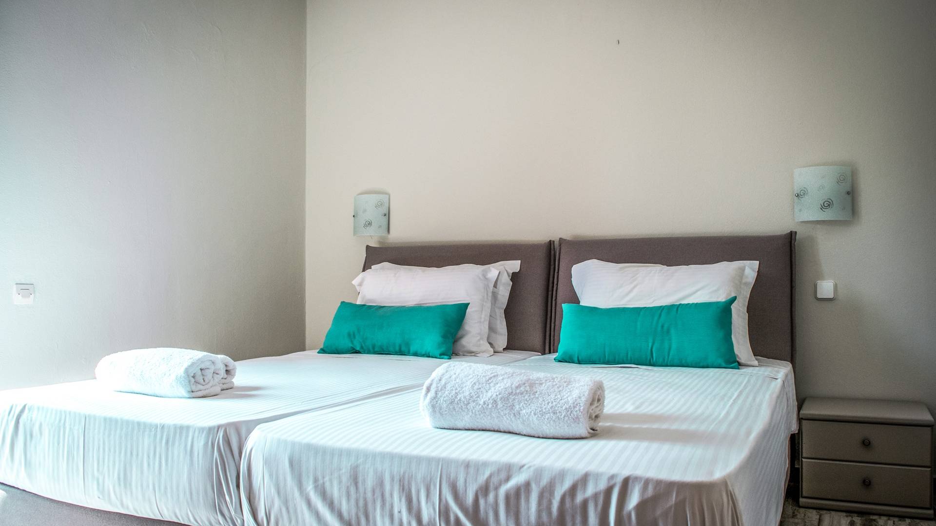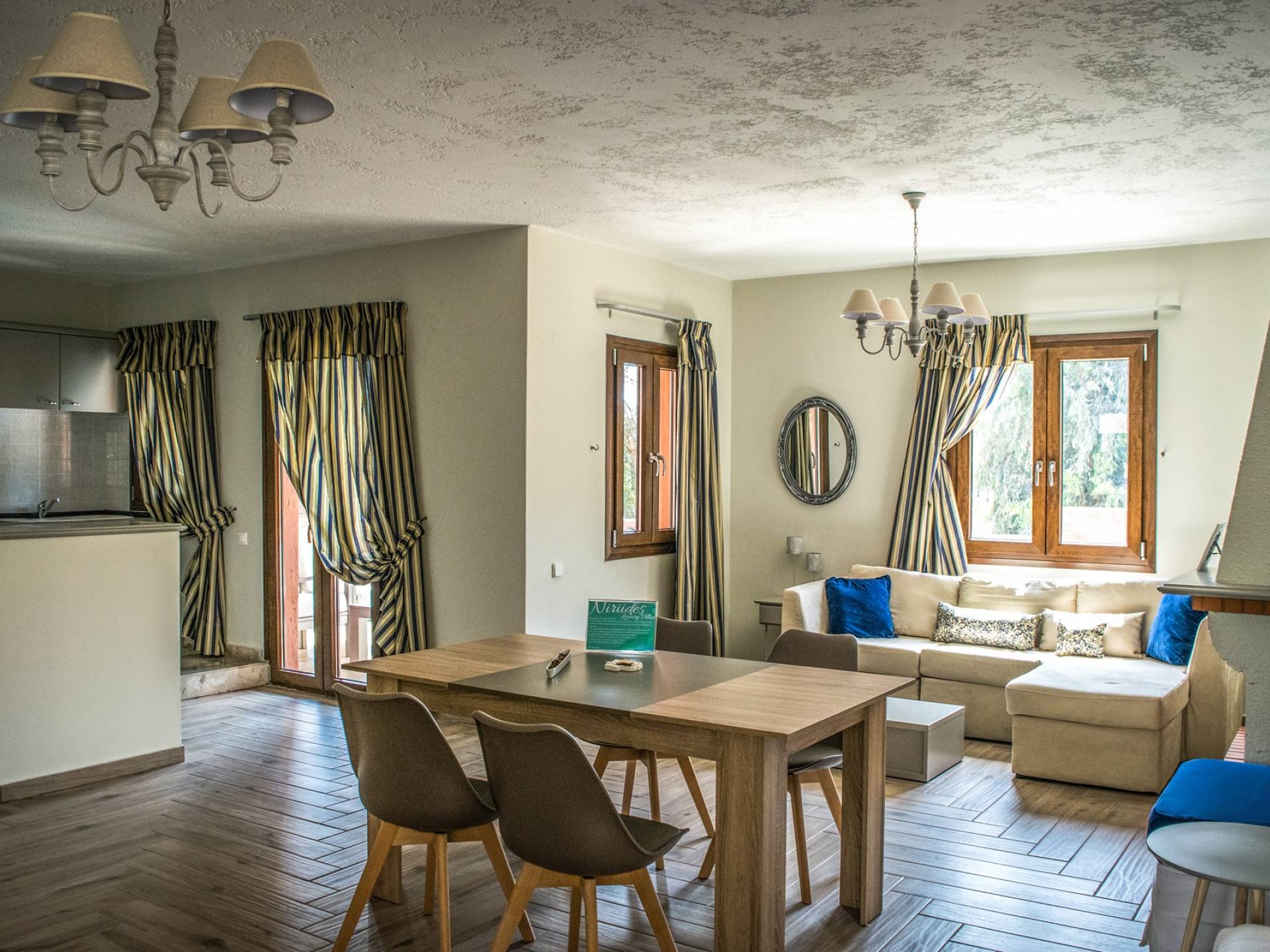 Villa Nymfe bietet Platz für bis zu 4 Personen. Es besteht aus 1 Schlafzimmer mit Doppelbett, 1 Schlafzimmer mit 2 Einzelbetten und einem Badezimmer im 1. Stock. Im Erdgeschoss befindet sich die Küche mit offenem Wohnzimmer, WC und Kamin.
