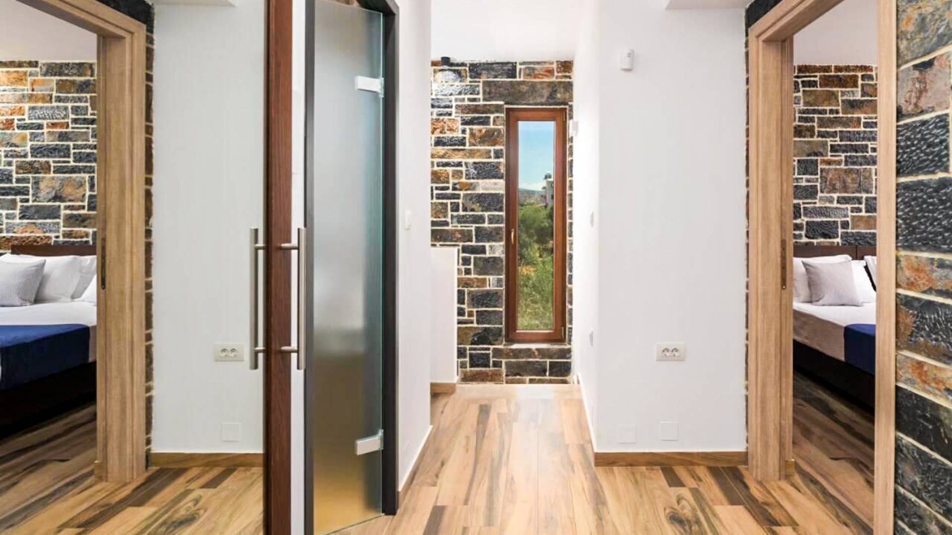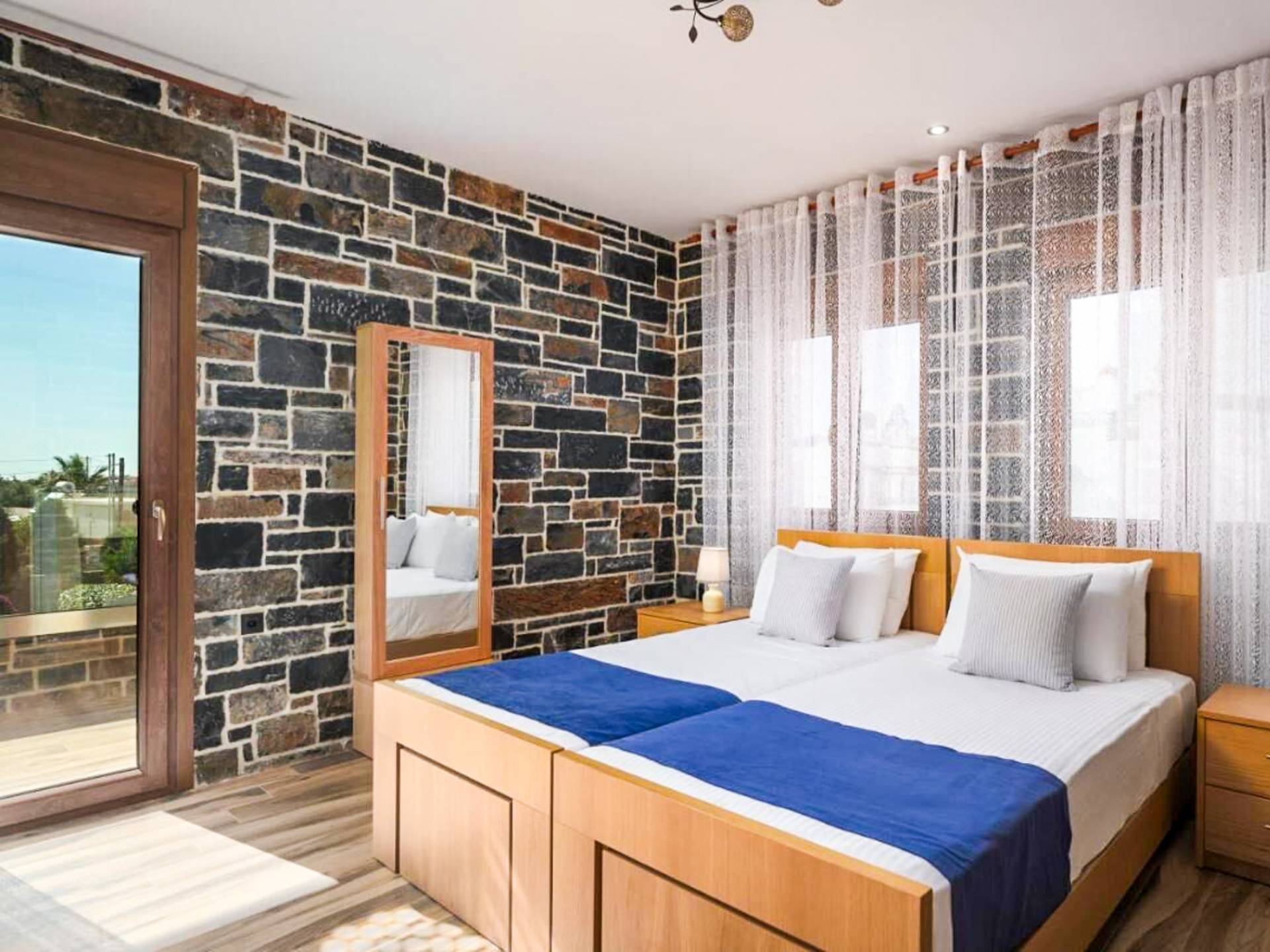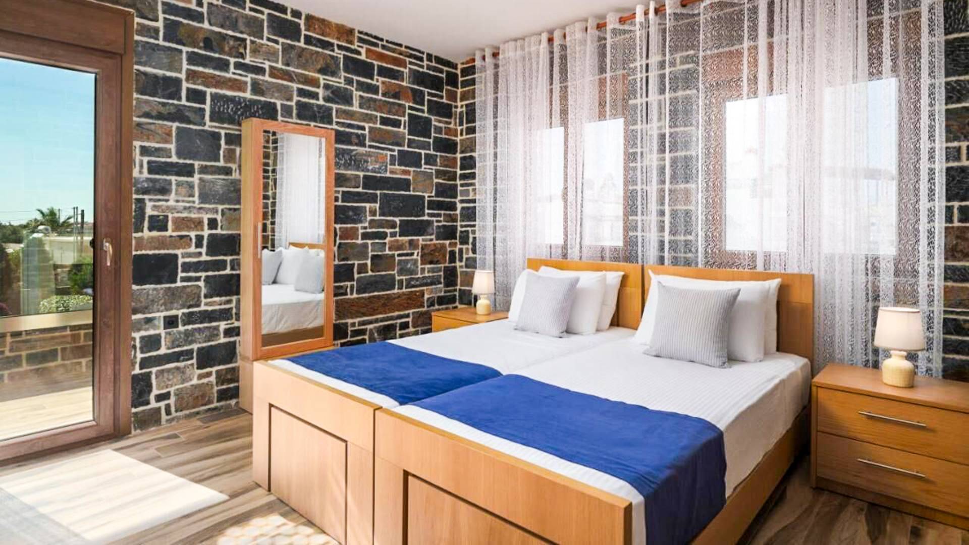 Seaside Villa Eona 1 Kreta besteht jede Villa aus vier geräumigen Schlafzimmern mit fünf Betten, einem Queensize-Bett und vier Einzelbetten, die Platz für bis zu 8 Personen bieten. Auf Wunsch besteht die Möglichkeit, ein großes und bequemes Sofa bereitzustellen, auf dem zwei weitere Personen schlafen können. Es verfügt über drei Badezimmer, ein gemütliches Wohnzimmer mit Kamin, einen großen Essbereich sowie eine voll ausgestattete Küche, die auf Sie wartet, um Ihre Mahlzeiten zuzubereiten.