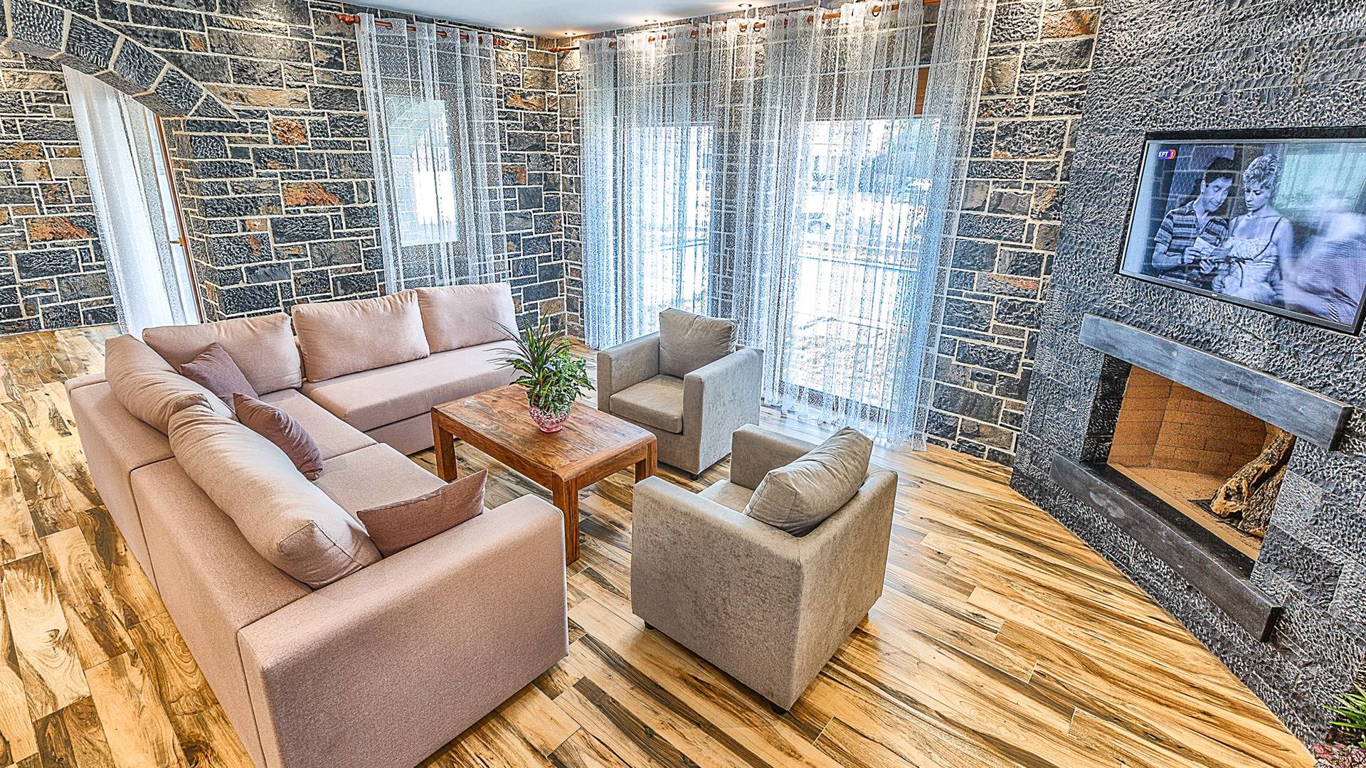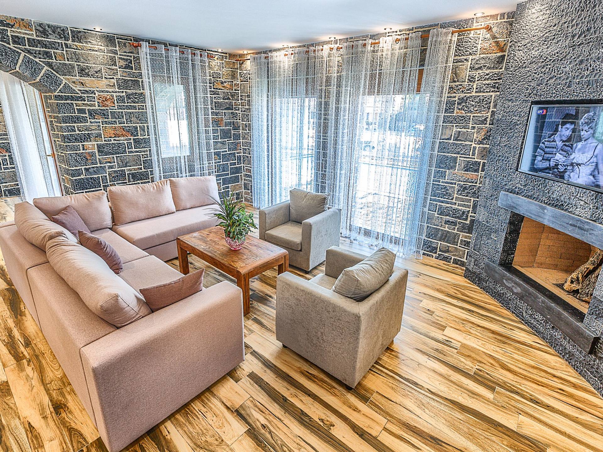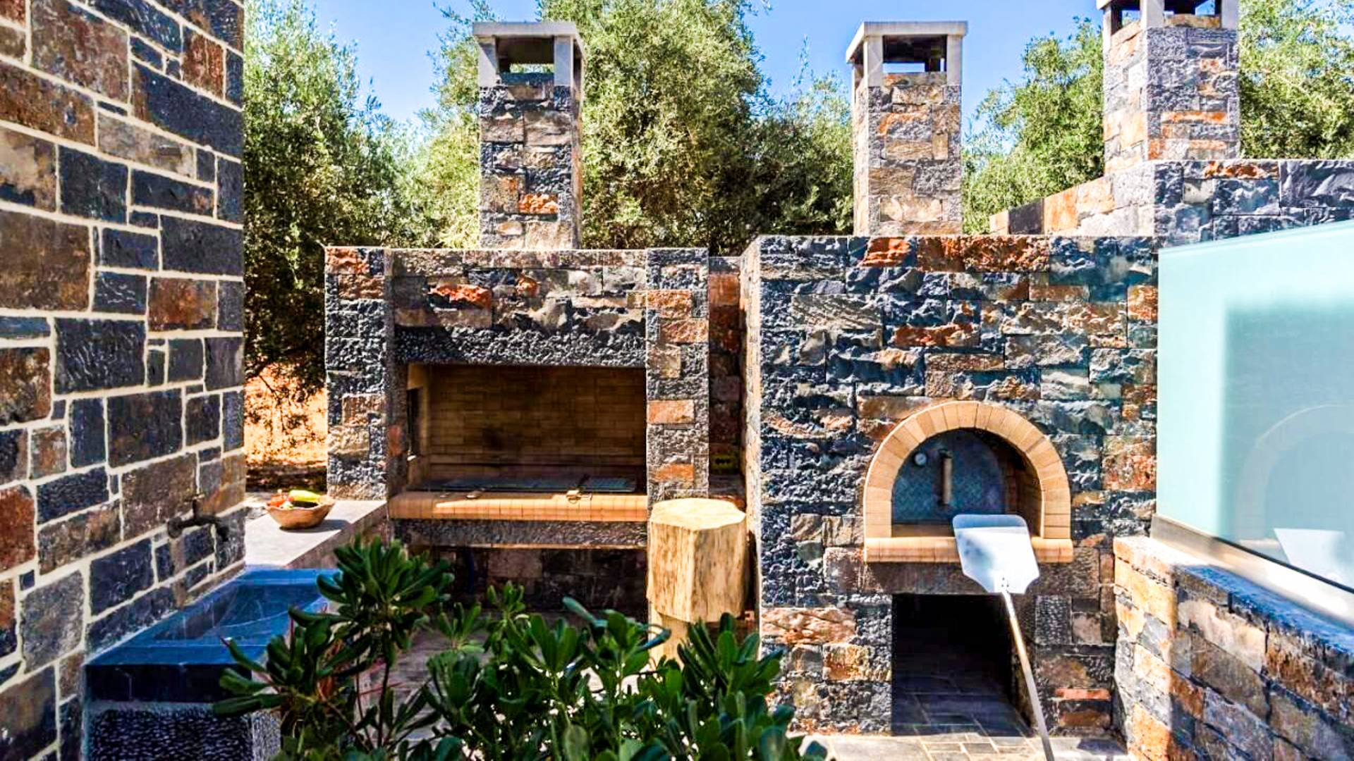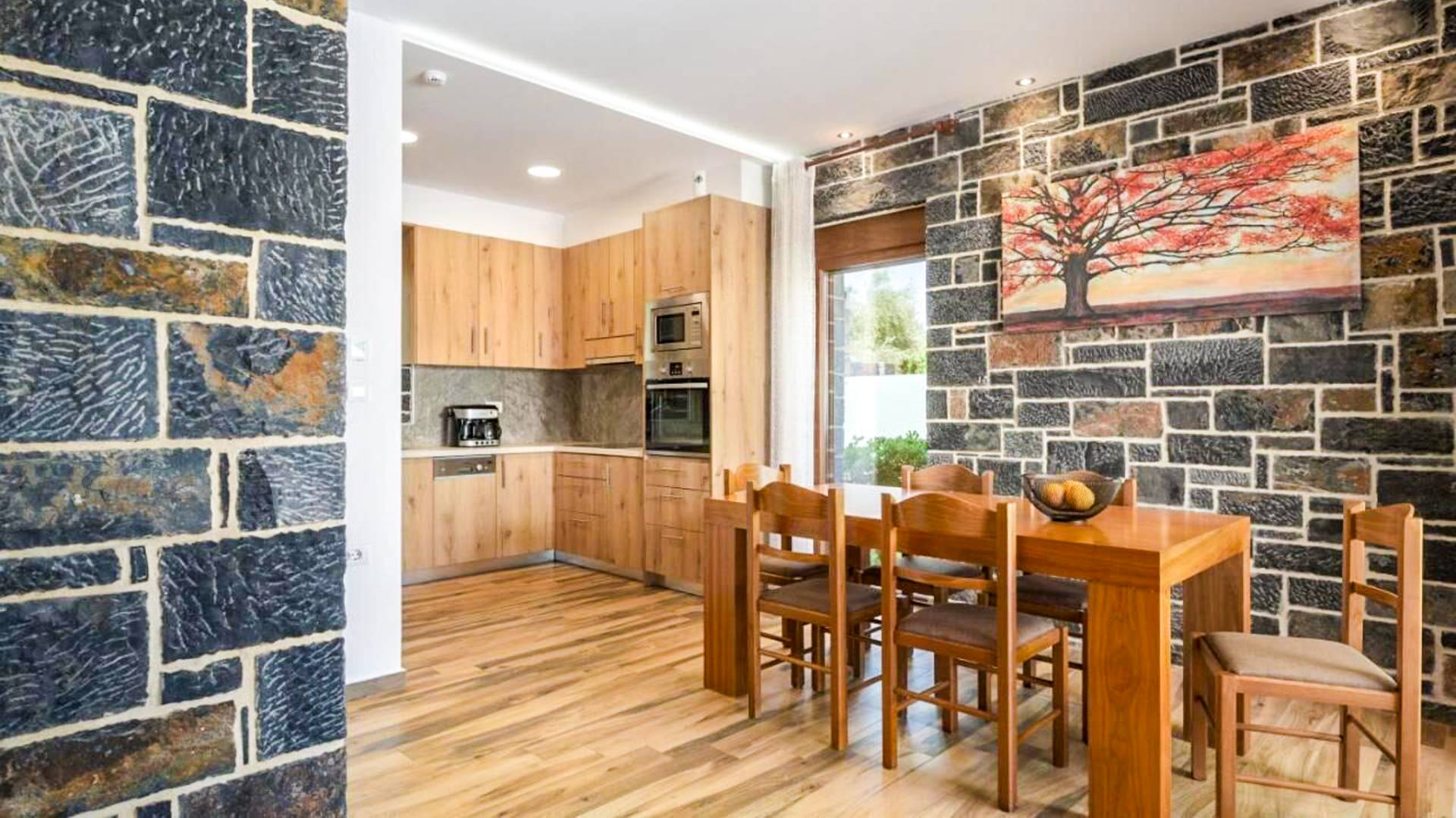 Seaside Villa Eona 1 Kreta besteht jede Villa aus vier geräumigen Schlafzimmern mit fünf Betten, einem Queensize-Bett und vier Einzelbetten, die Platz für bis zu 8 Personen bieten. Auf Wunsch besteht die Möglichkeit, ein großes und bequemes Sofa bereitzustellen, auf dem zwei weitere Personen schlafen können. Es verfügt über drei Badezimmer, ein gemütliches Wohnzimmer mit Kamin, einen großen Essbereich sowie eine voll ausgestattete Küche, die auf Sie wartet, um Ihre Mahlzeiten zuzubereiten.