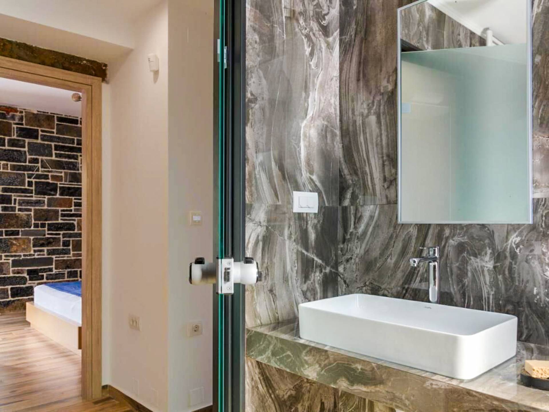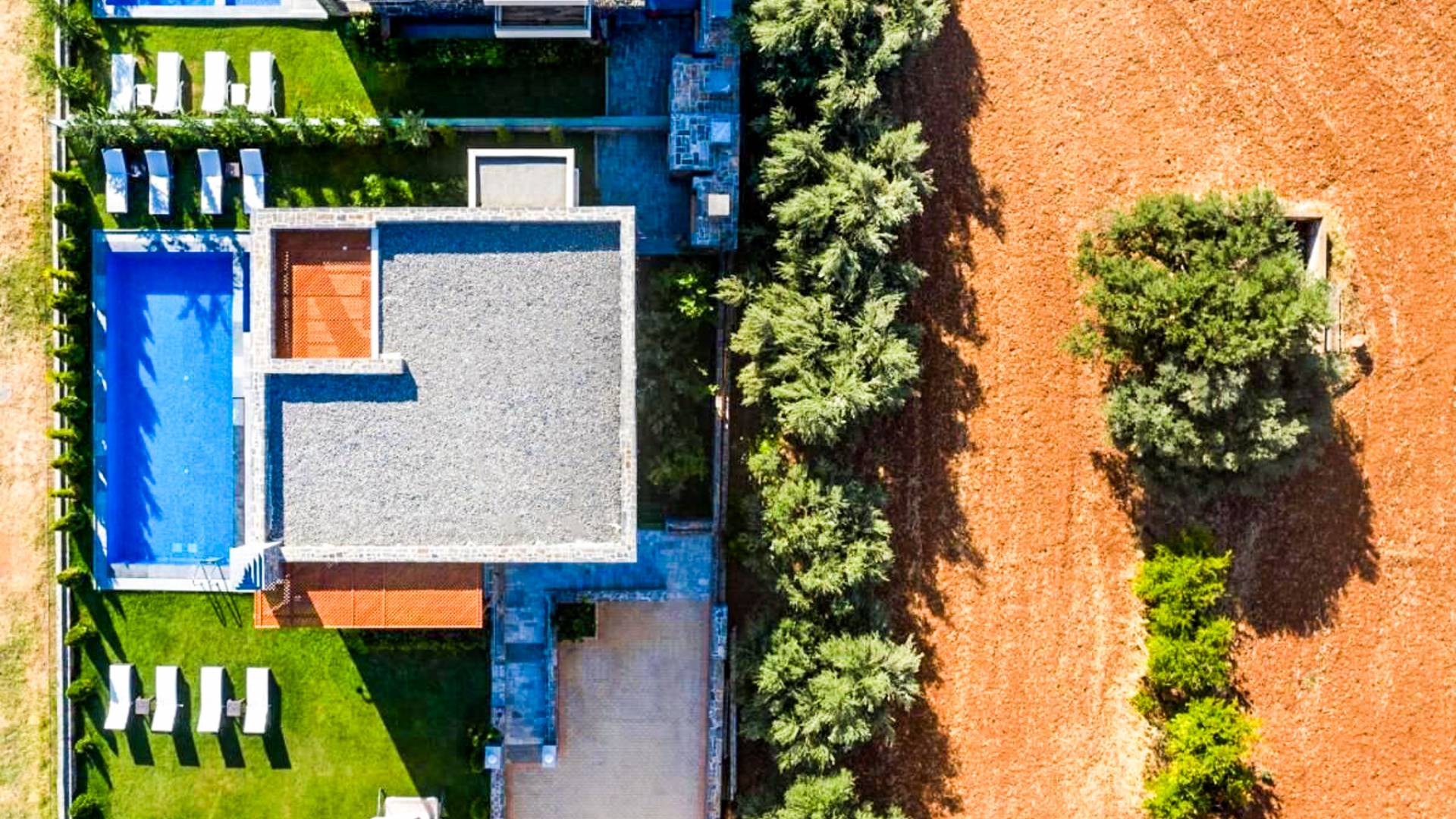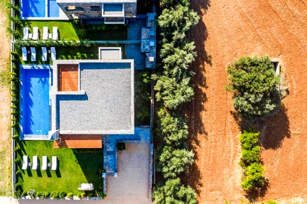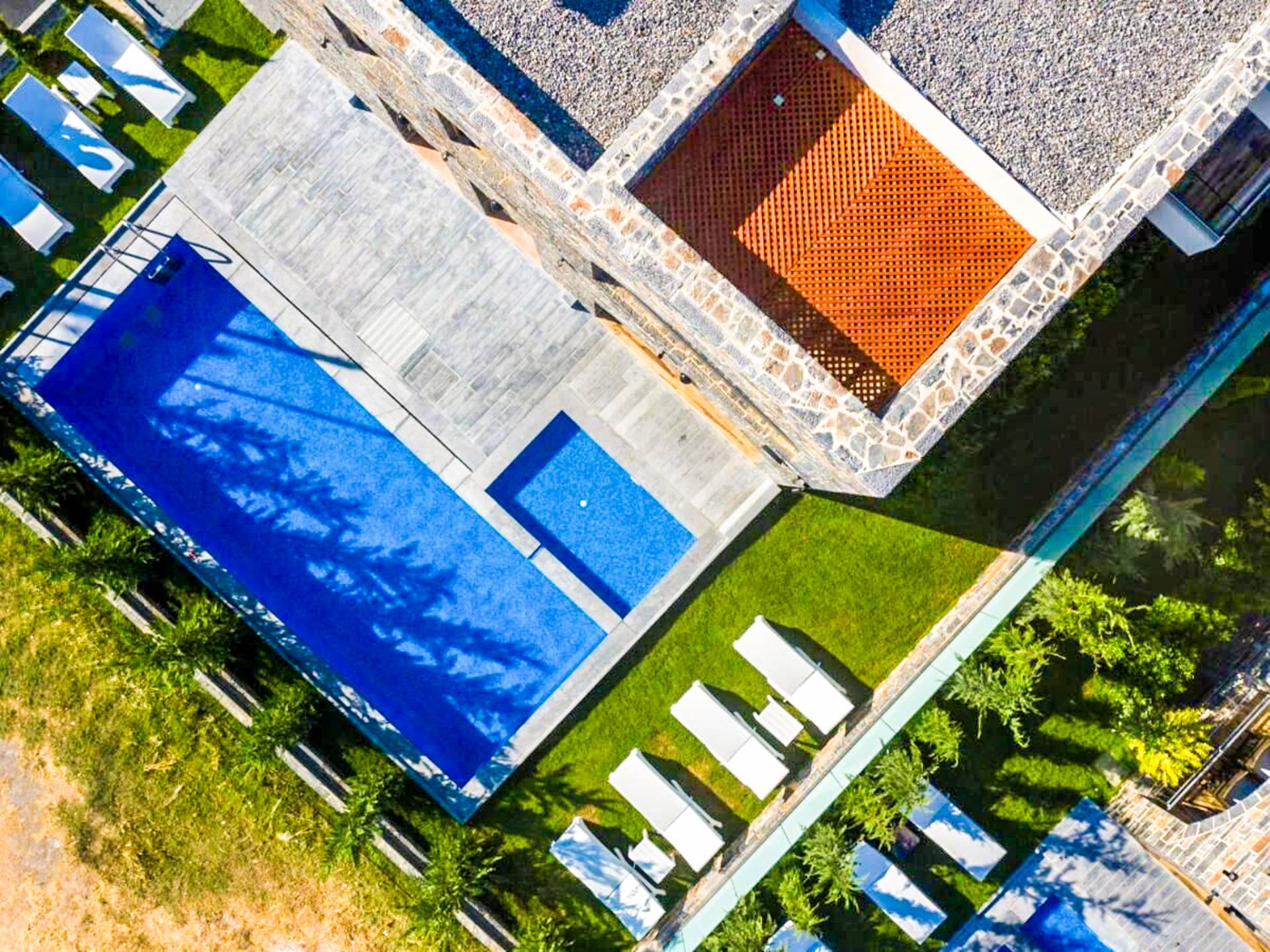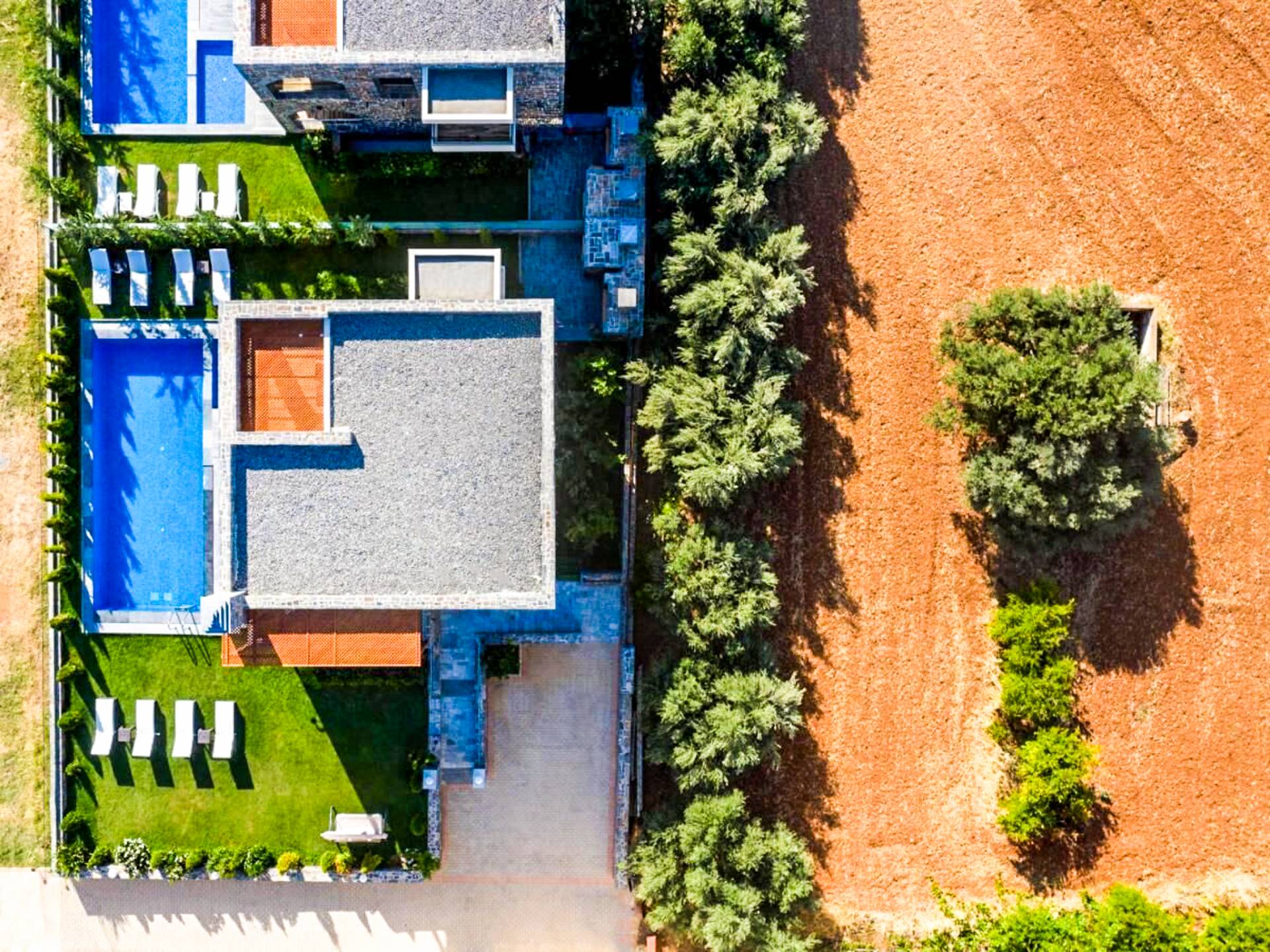Das Erdgeschoss führt zur privaten Terrasse der Villa, die in Kombination mit dem Außensitzbereich, den privaten Pools (einer kleiner und einer großer), der Außendusche und dem Garten mit Sonnenliegen einzigartige Momente der Entspannung bietet. Darüber hinaus steht Ihnen ein Grillplatz zur Verfügung, wo Sie wunderbare Mahlzeiten genießen können.