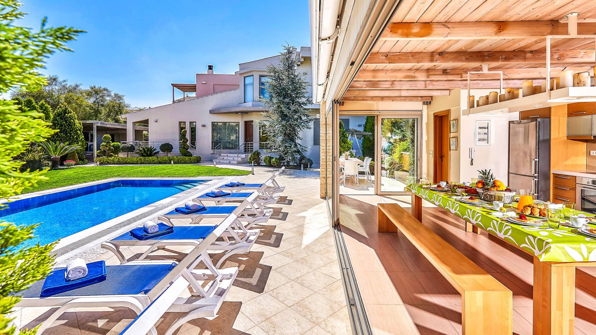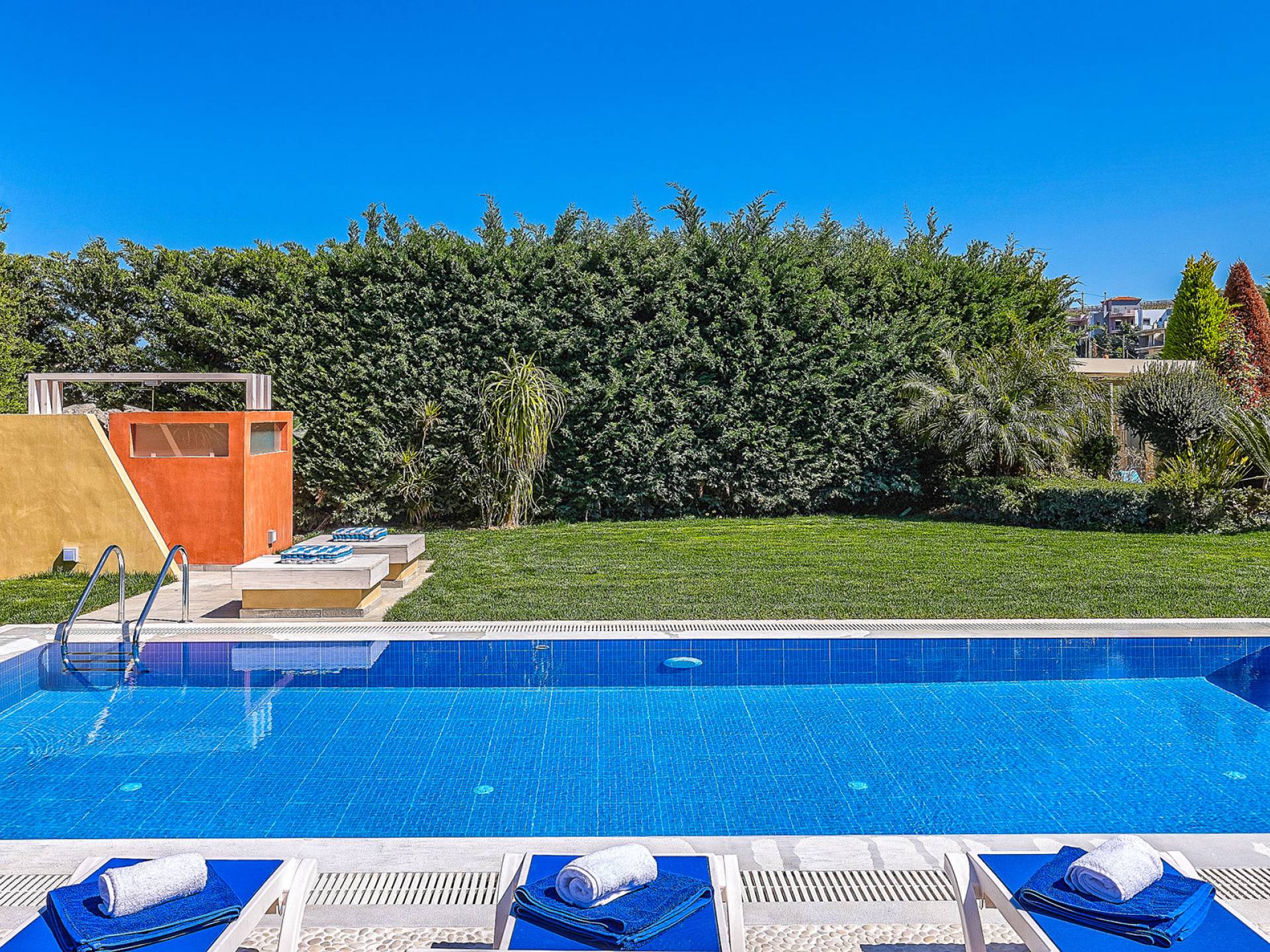 Das offene Design im Wohnbereich und die voll ausgestattete Küche machen Sie entspannt und bereit, einzigartige Momente zu genießen. Das moderne Design und die zusätzlichen Funktionen wie Billard und Kamin tragen zum Luxus bei. Das natürliche Licht, das durch die großen Fenster einfällt, trägt zum Luxus dieser Immobilie bei. Die Schlafzimmer und die Badezimmer sind geräumig und elegant mit aktualisierten Elementen eingerichtet. Draußen ist der private Swimmingpool atemberaubend und hat auch einen Außenduschebereich. Darüber hinaus hilft Ihnen die zusätzliche Küche im Außenbereich, freudige Momente zu genießen. Die lokalen Annehmlichkeiten und der Strand befinden sich in der Nähe der Unterkunft. Sunny Villa Crete ist eine einzigartige Luxusimmobilie, die Ihnen die Möglichkeit bietet, sich zu entspannen und eine unvergessliche Zeit unter der kretischen Sonne zu verbringen.