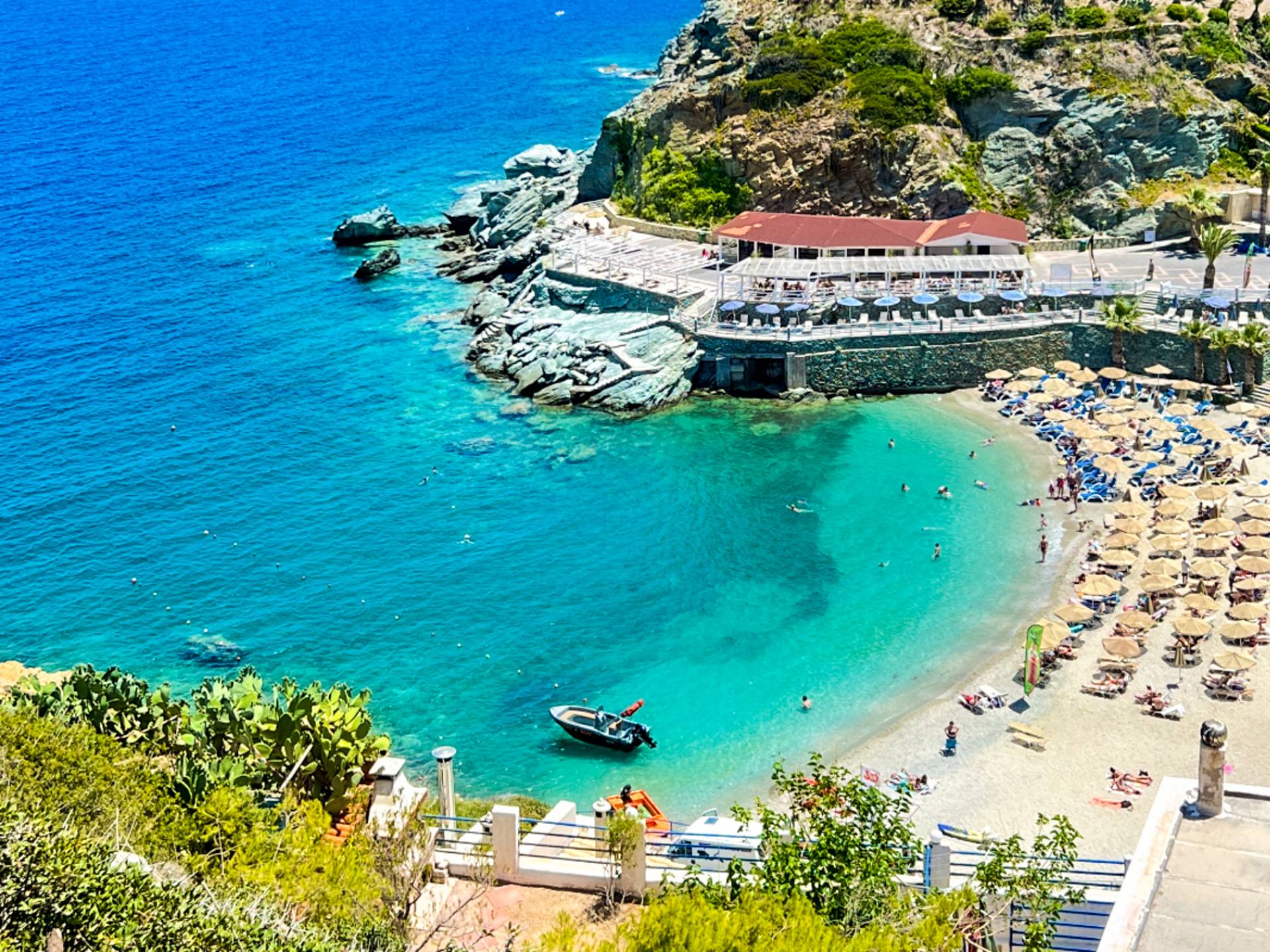 mehrAmmoudi liegt nur 1 km nördlich der Stadt Agios Nikolaos in einer großen und gut geschützten Bucht. Es ist ein kleiner Sandstrand mit flachem Wasser, ideal für Familien, übersät mit großen Tamariskenbäumen und Tavernen, damit Sie die lokale Küche probieren können. Ammoudi bietet auch Wassersportmöglichkeiten. In Ammoudi hat die Kapelle des Heiligen Nikolaus, des Schutzpatrons der griechischen Seeleute, der gesamten Stadt Agios Nikolaos ihren Namen gegeben. Die Kapelle wurde nach dem 7. Jahrhundert am Rande des Kaps Nissi erbaut und ist eine der ältesten auf Kreta. Die Aussicht auf die Stadt und die Bucht von Mirabello ist wirklich unglaublich.