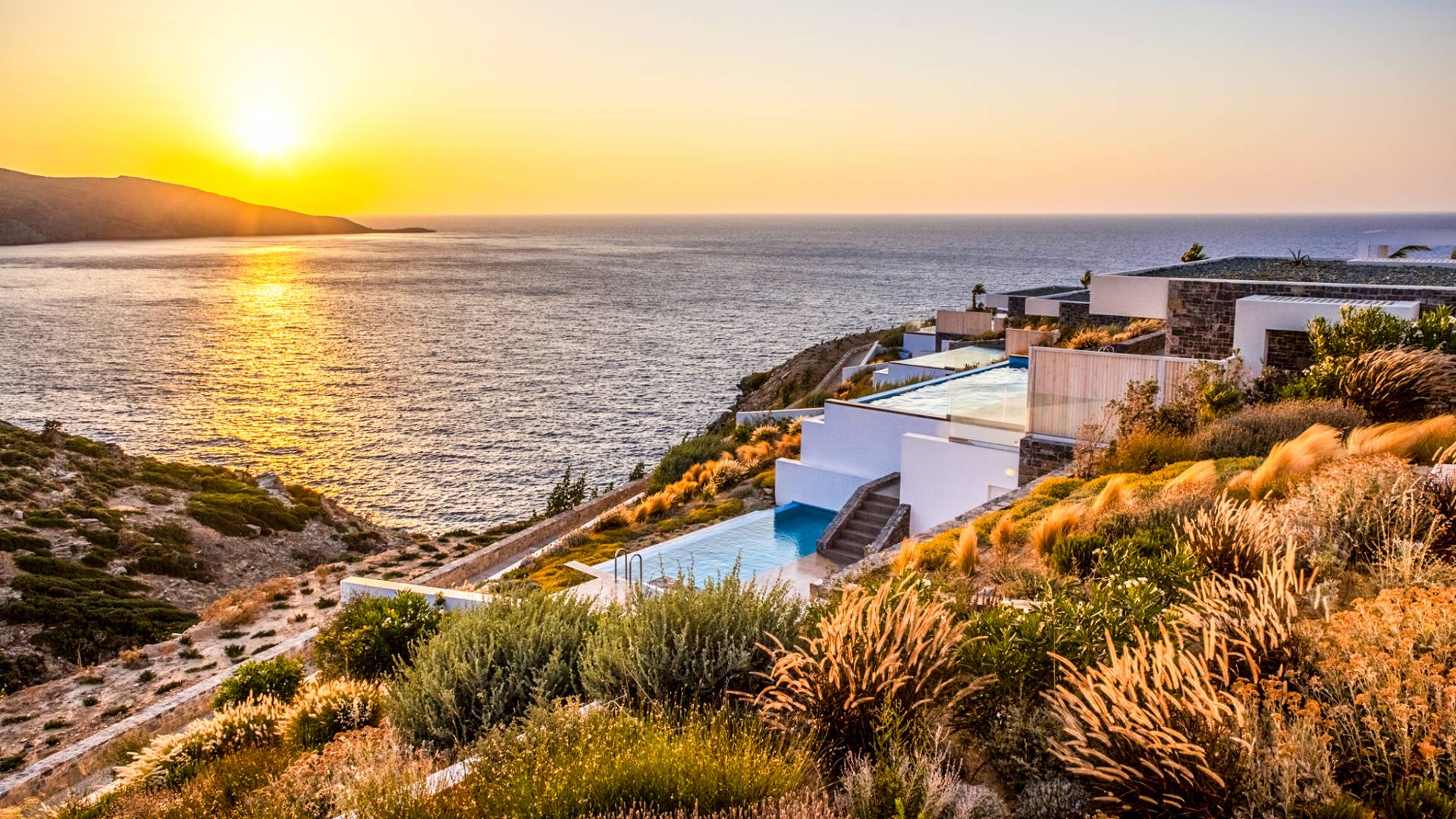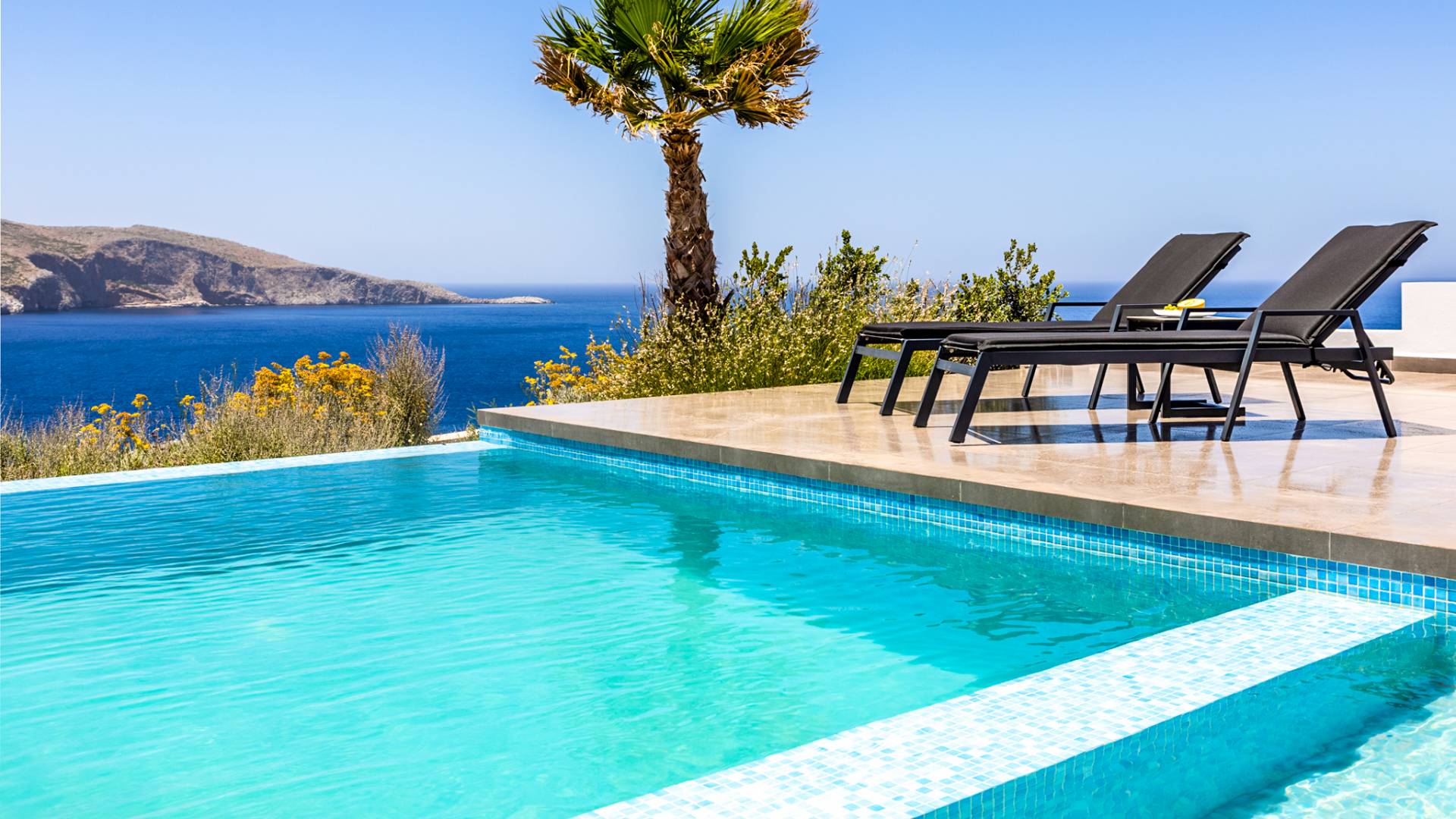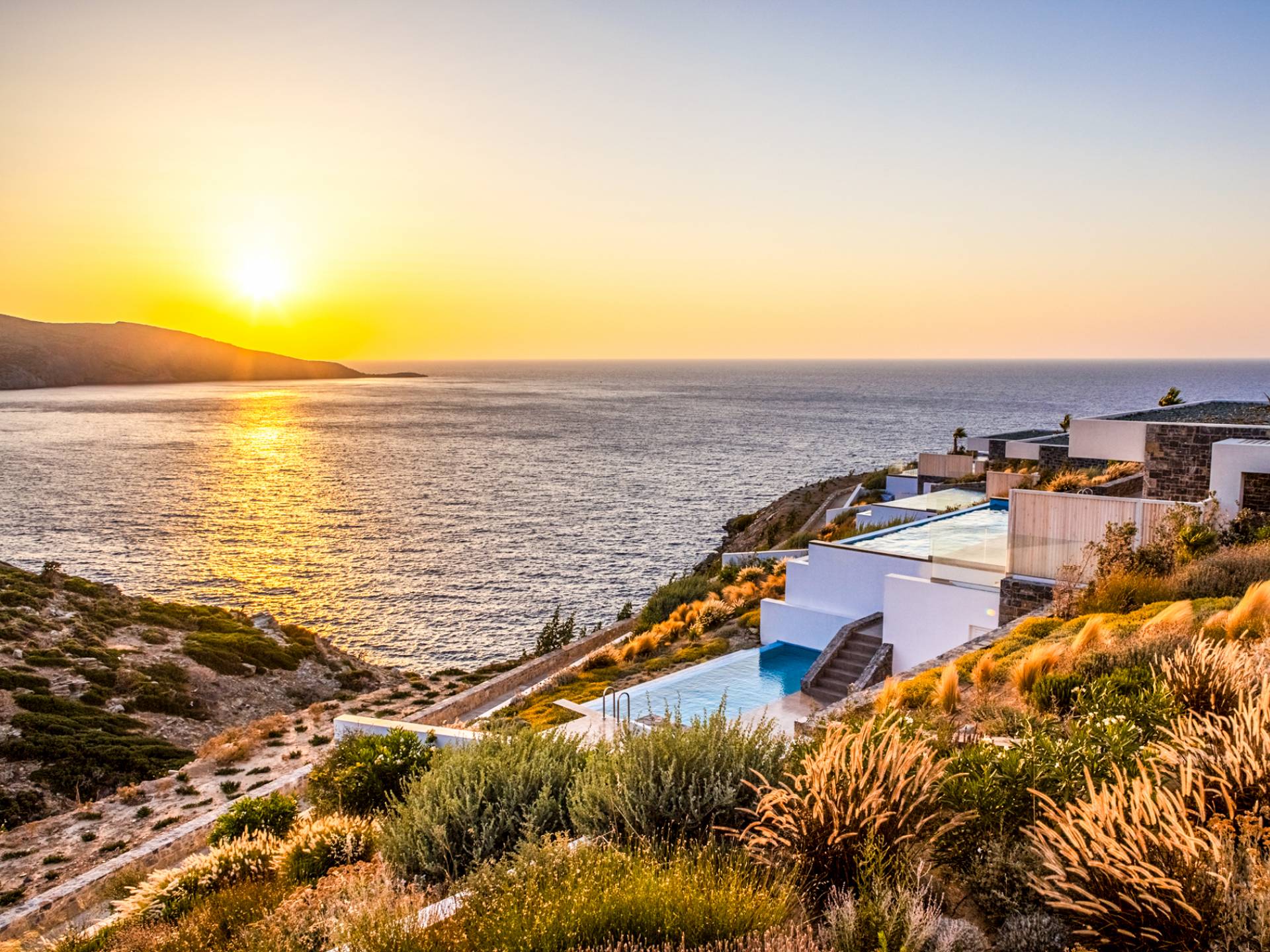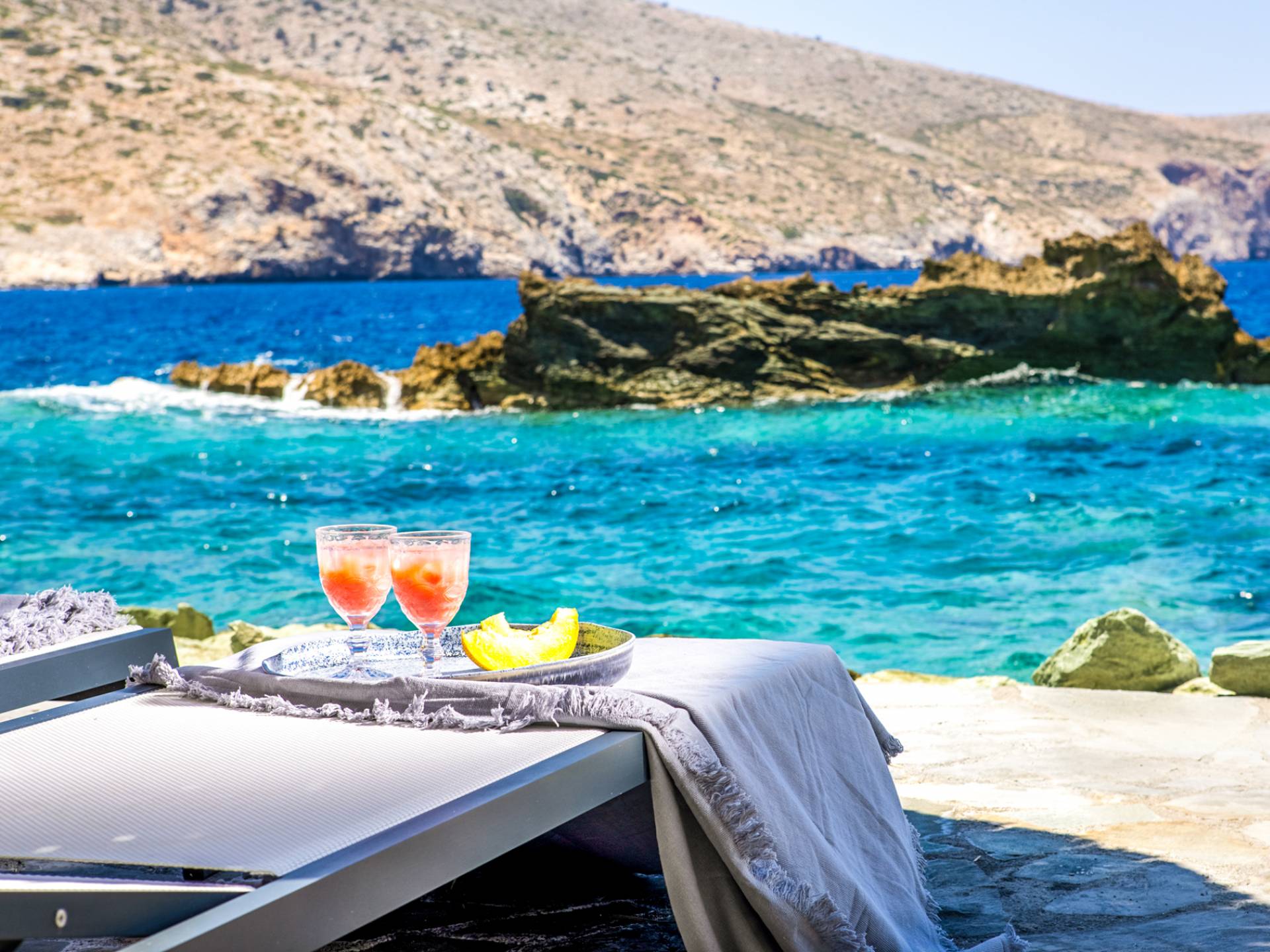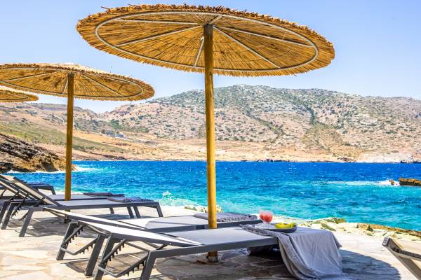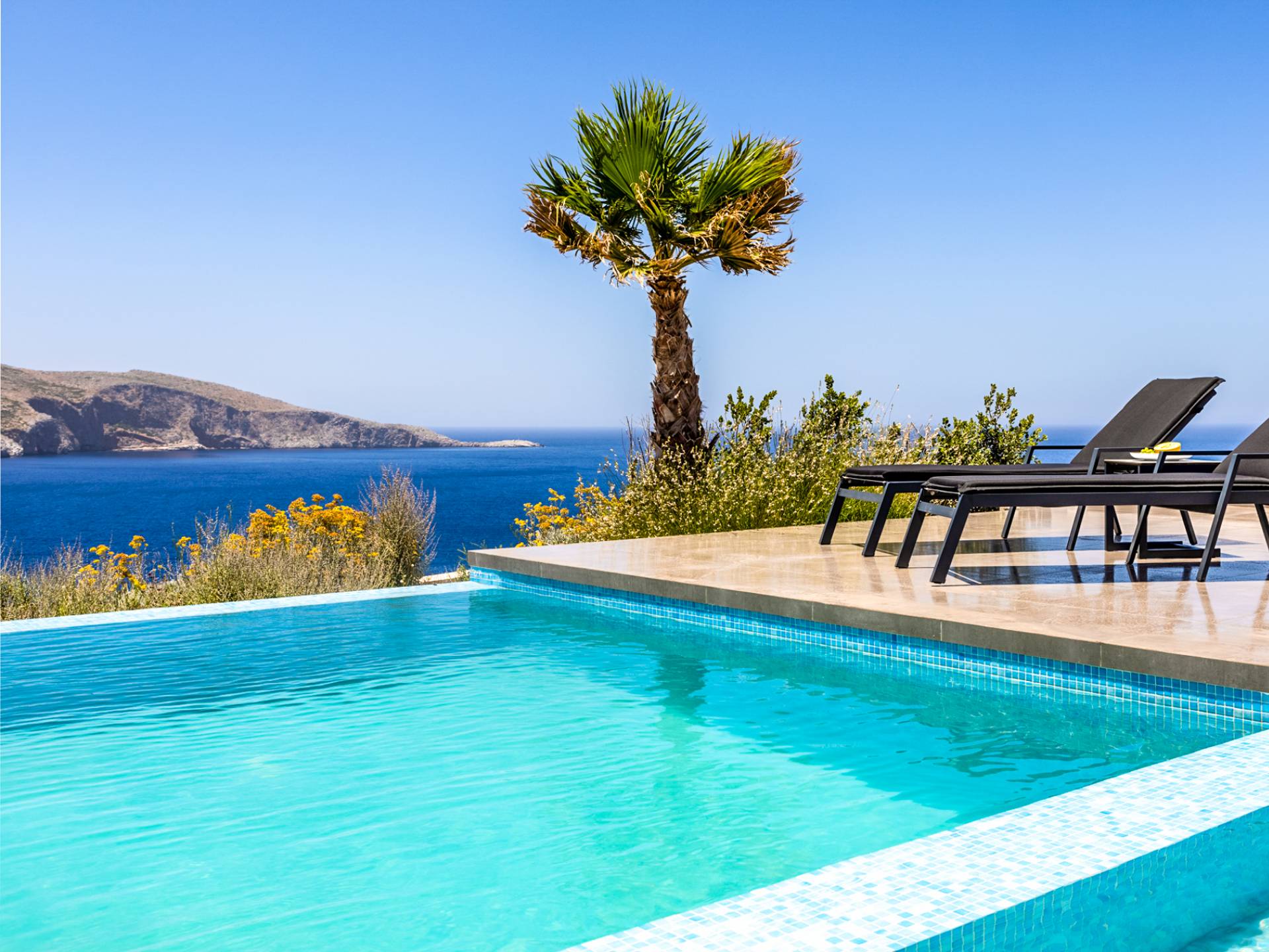 Besonders beliebt ist Agia Pelagia für seine Villen, die sich harmonisch in die umliegende Hügellandschaft einfügen. Viele bieten atemberaubende Ausblicke auf das Meer, Infinity-Pools, schattige Terrassen und ein Maß an Privatsphäre, das Hotels kaum bieten können.