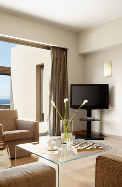 Die Liebe zum Detail und die exquisite Ästhetik spielen eine wesentliche Rolle in der Daios Cove-Philosophie. Die sonnendurchflutete Lobby zum Beispiel mit ihren sorgfältig ausgewählten und platzierten Kunstwerken sowie die moderne Einrichtung unterstreichen das auffällige, eklektische Design des Resorts.