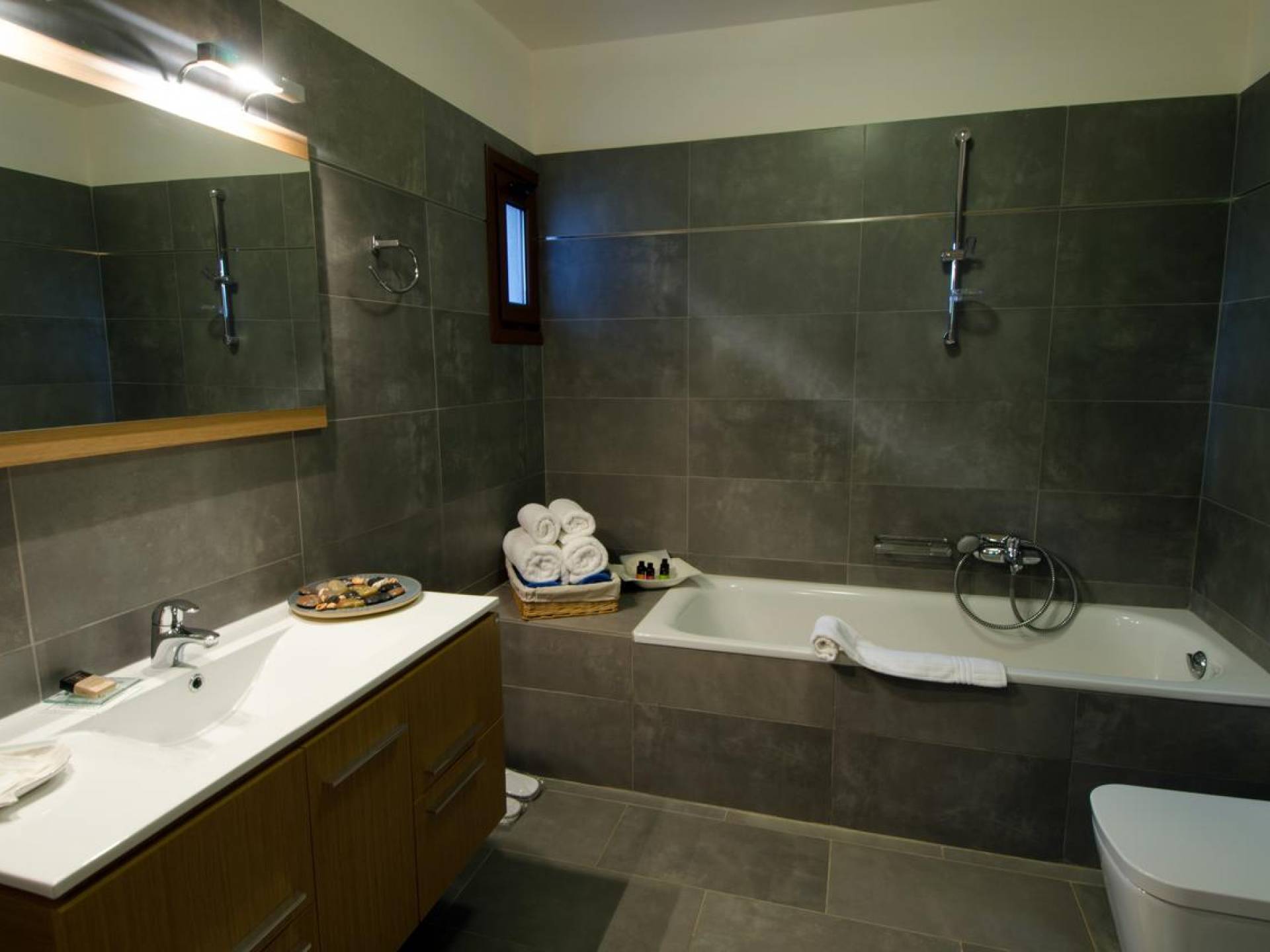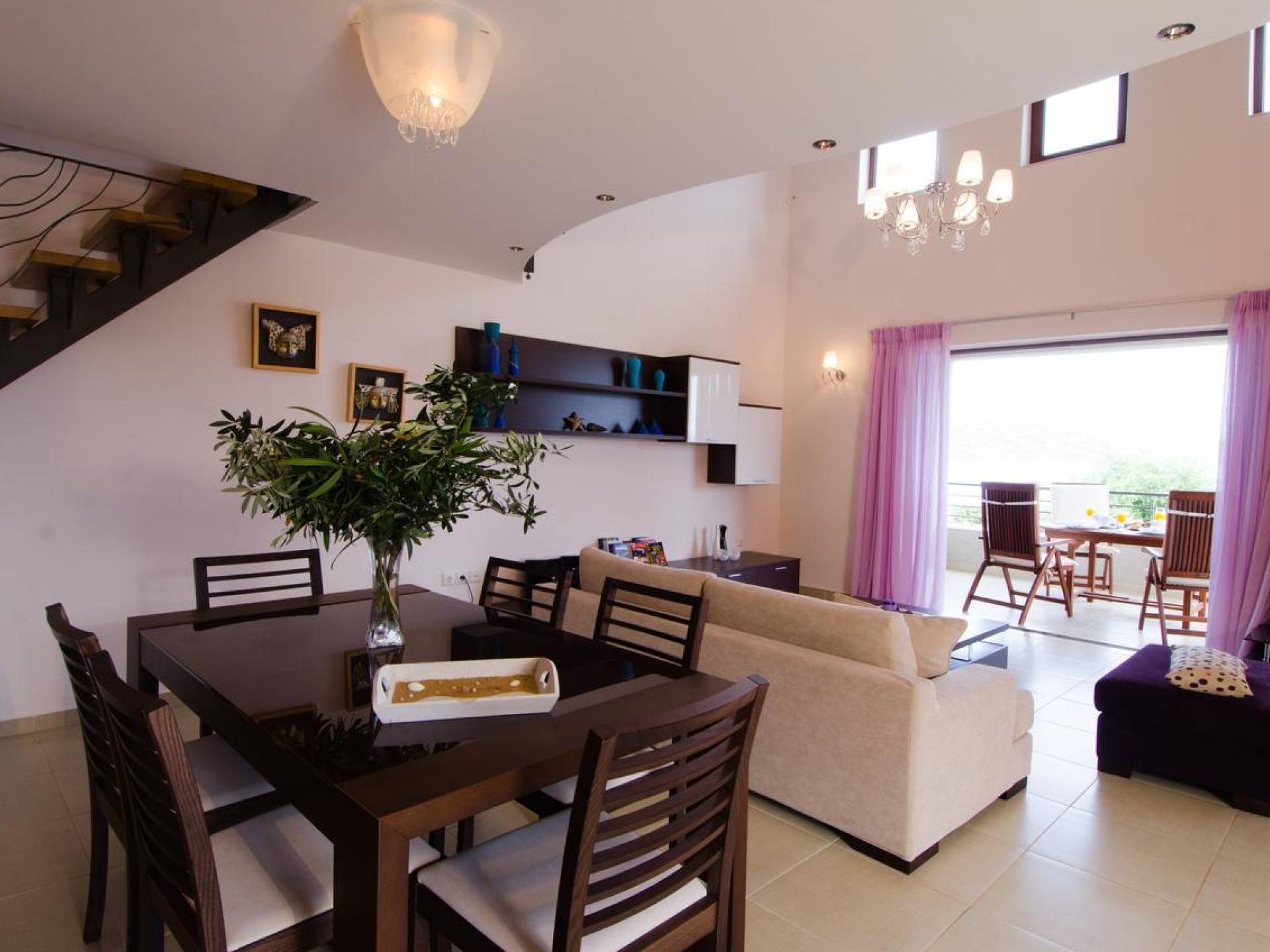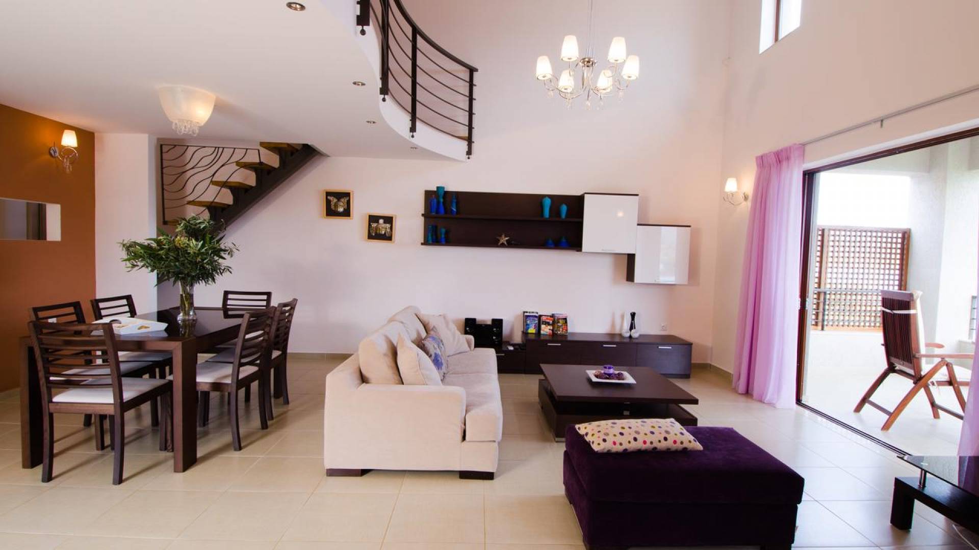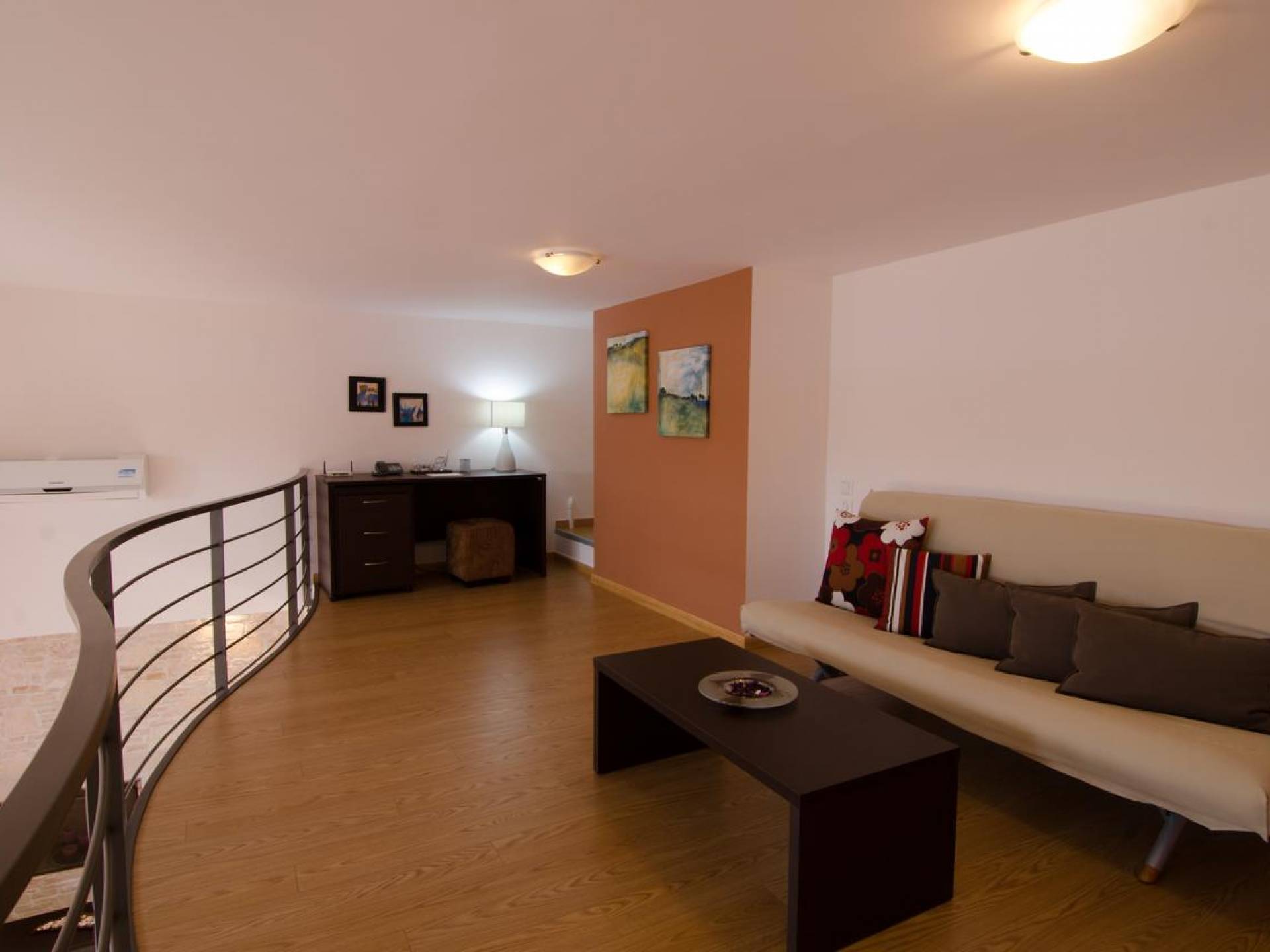 Im ersten Stock gibt es ein Schlafzimmer mit Doppelbett, Kleiderschrank, autonomer Klimaanlage, ebenerdigem Fernseher, Balkon mit Meerblick, luxuriöses Badezimmer mit Hydromassage, komplett ausgestattete Küche mit Elektrogeräten, Wohnzimmer mit bequemer Couch und Sessel, Sat-TV 37΄, DVD, Echo-System, autonome Klimaanlage, Wireless-Netzwerk für den Internetzugang, Veranda mit Außen-Esszimmer mit Meerblick. Die interne Skala des Wohnzimmers führt zu einem schönen Loft mit einer bequemen Couch, die zu einem Bett für eine weitere Person werden kann, und einem Esszimmer mit Kamin. Der erste Stock ist durch eine interne Marmortreppe mit dem zweiten Stock verbunden.