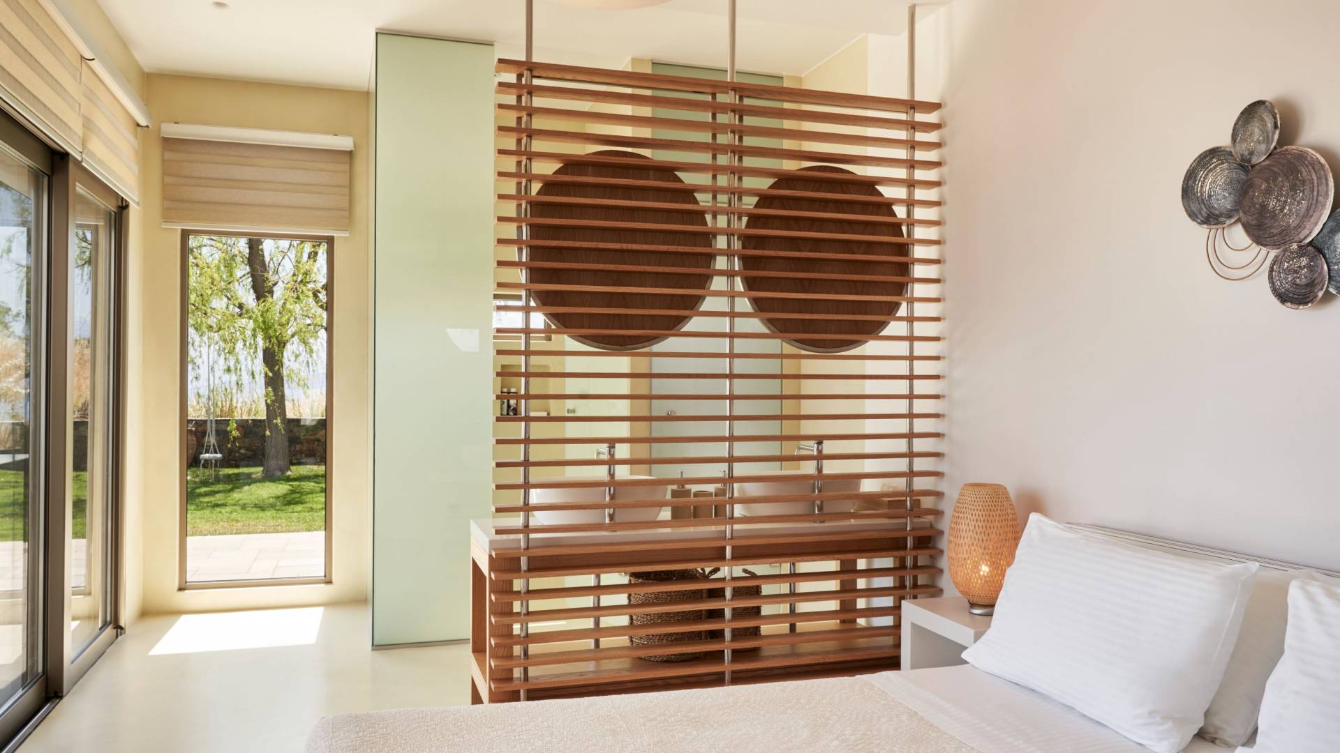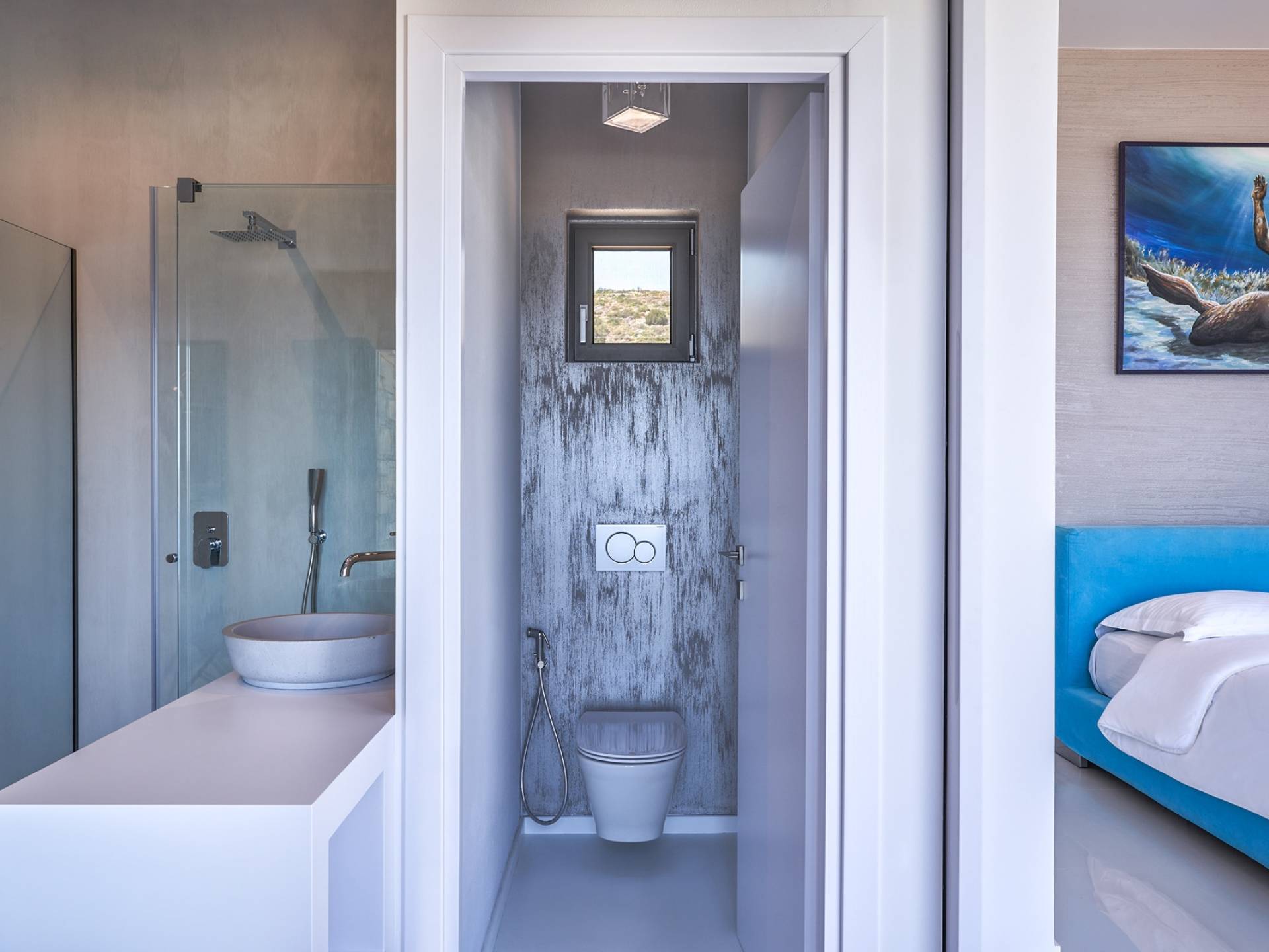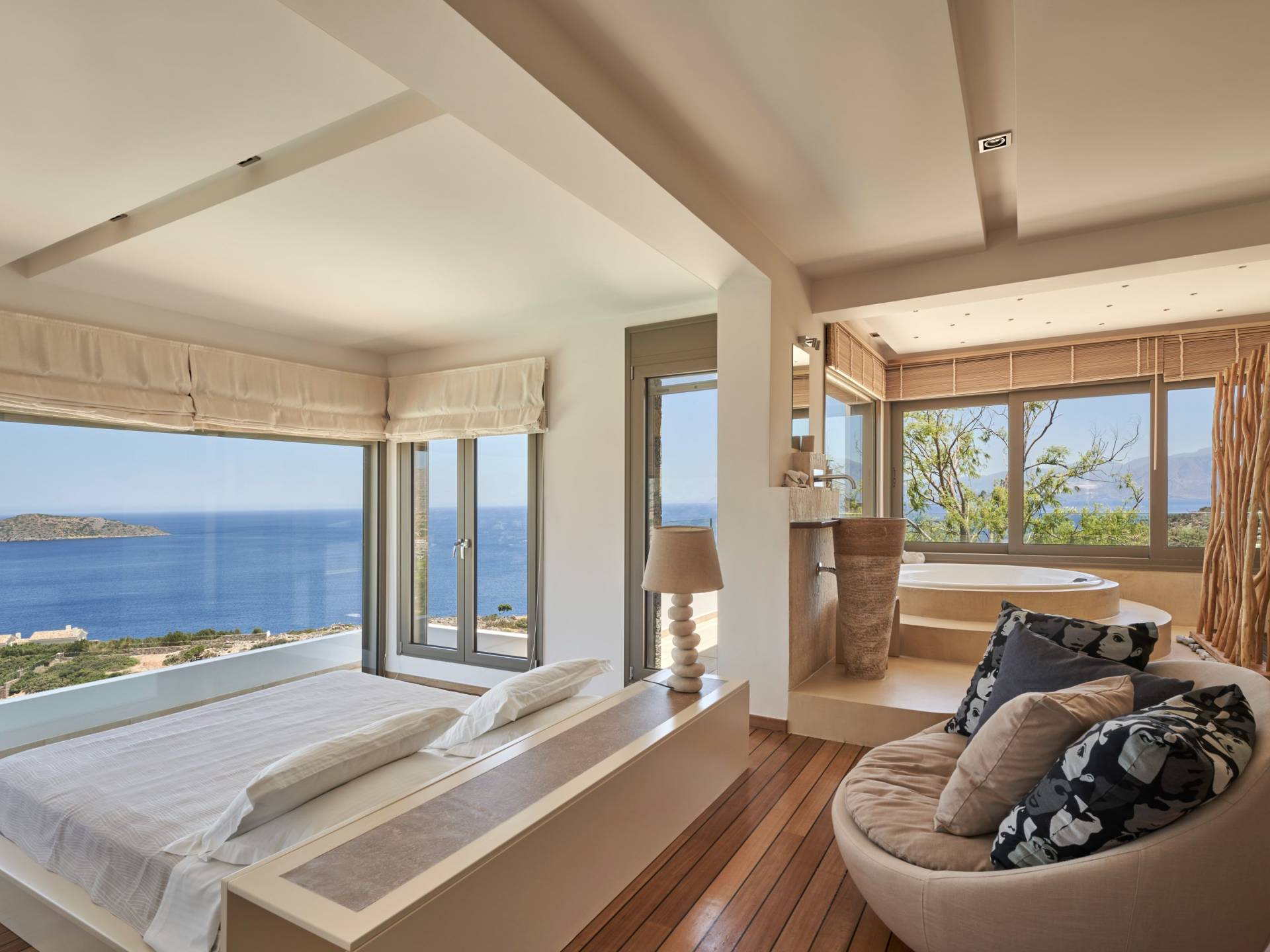Elounda Pearls Villas Crete ist mit sieben Schlafzimmern speziell für 16 Personen konzipiert. In der obersten Etage befindet sich die Master-Suite, die mit bequemen Betten und eleganten Schlafzimmermöbeln ausgestattet ist. Beobachten Sie das Licht tanzen über die Wellen des Mittelmeers, während die Sonne von Ihrer privaten Terrasse aus untergeht. Dies ist der perfekte Ort für einen romantischen Abend und einen atemberaubenden Blick auf das Meer. Alle Schlafzimmer verfügen über einzigartige Merkmale und Dekorationen, die allen Gästen ein einzigartiges und unvergessliches Erlebnis bieten, unabhängig davon, in welchem Schlafzimmer sie sich befinden. Es gibt 7 Badezimmer mit den besten Unterkünften, zusätzlichen Funktionen wie einem Ankleidezimmer, einem Fitnessraum und einem Spielzimmer.