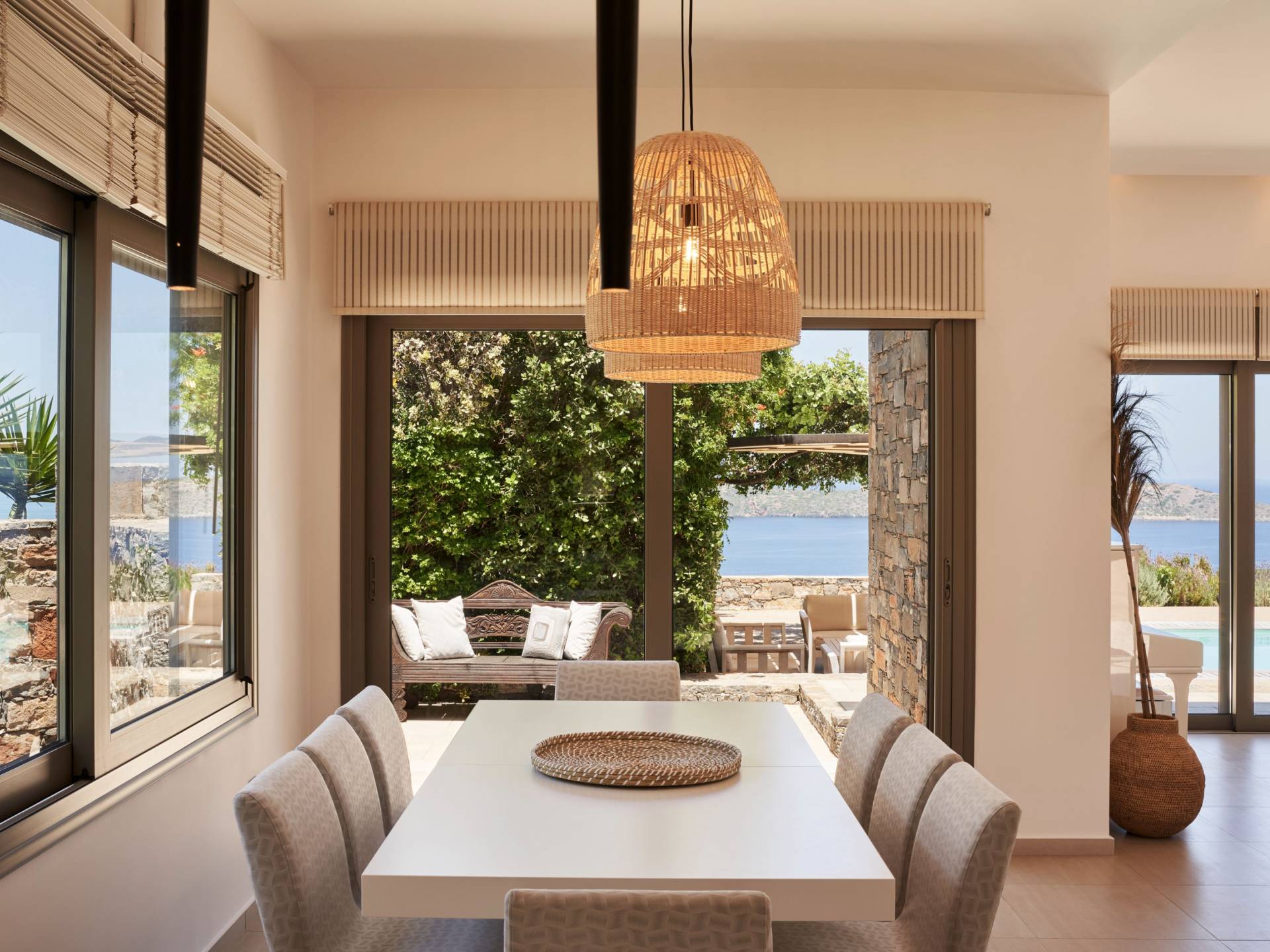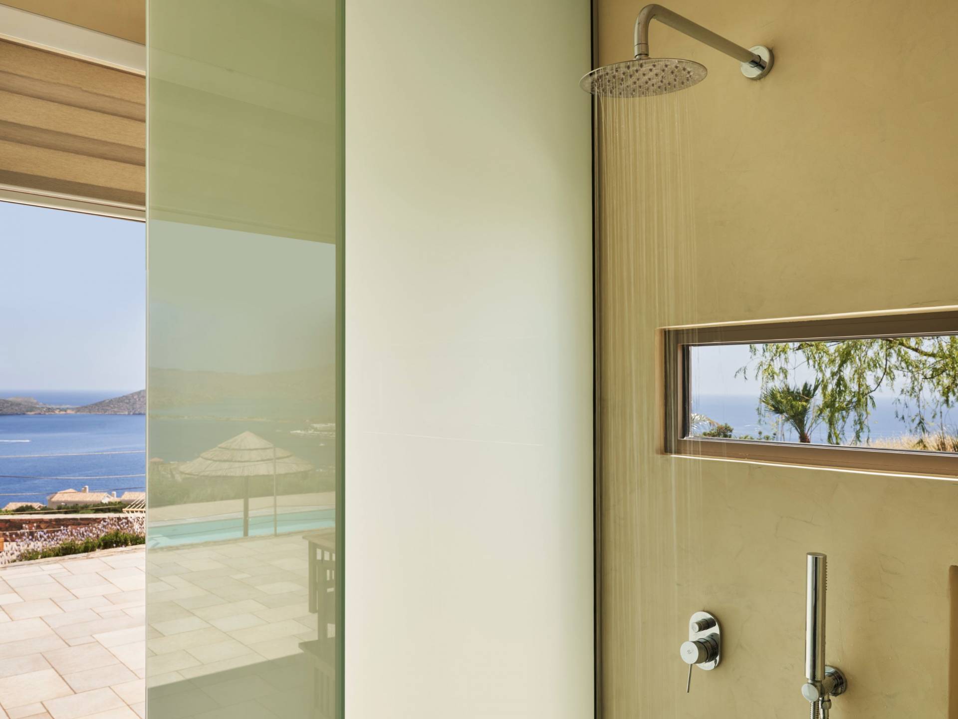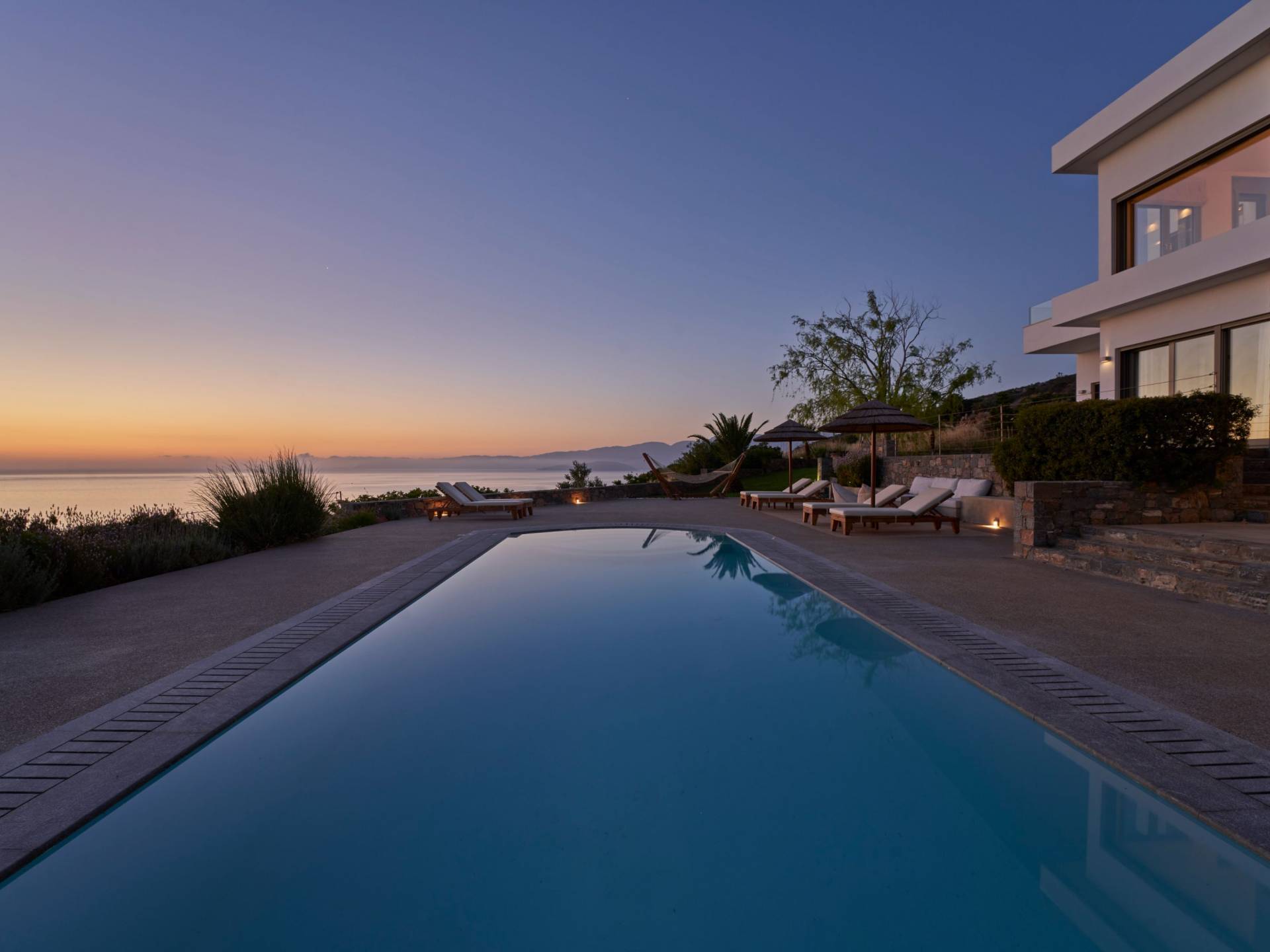 Die natürliche Schönheit der Umgebung ist beeindruckend – umgeben von sanften Hügeln und Olivenhainen bietet Elounda atemberaubende Ausblicke auf die Mirabello-Bucht, besonders stimmungsvoll bei Sonnenaufgang oder Sonnenuntergang – am besten zu genießen von der Terrasse Ihrer Villa.