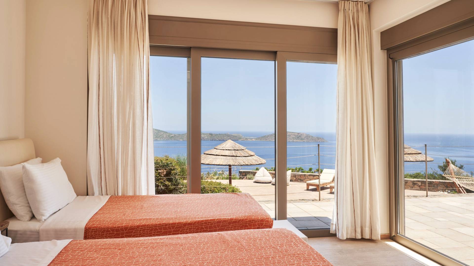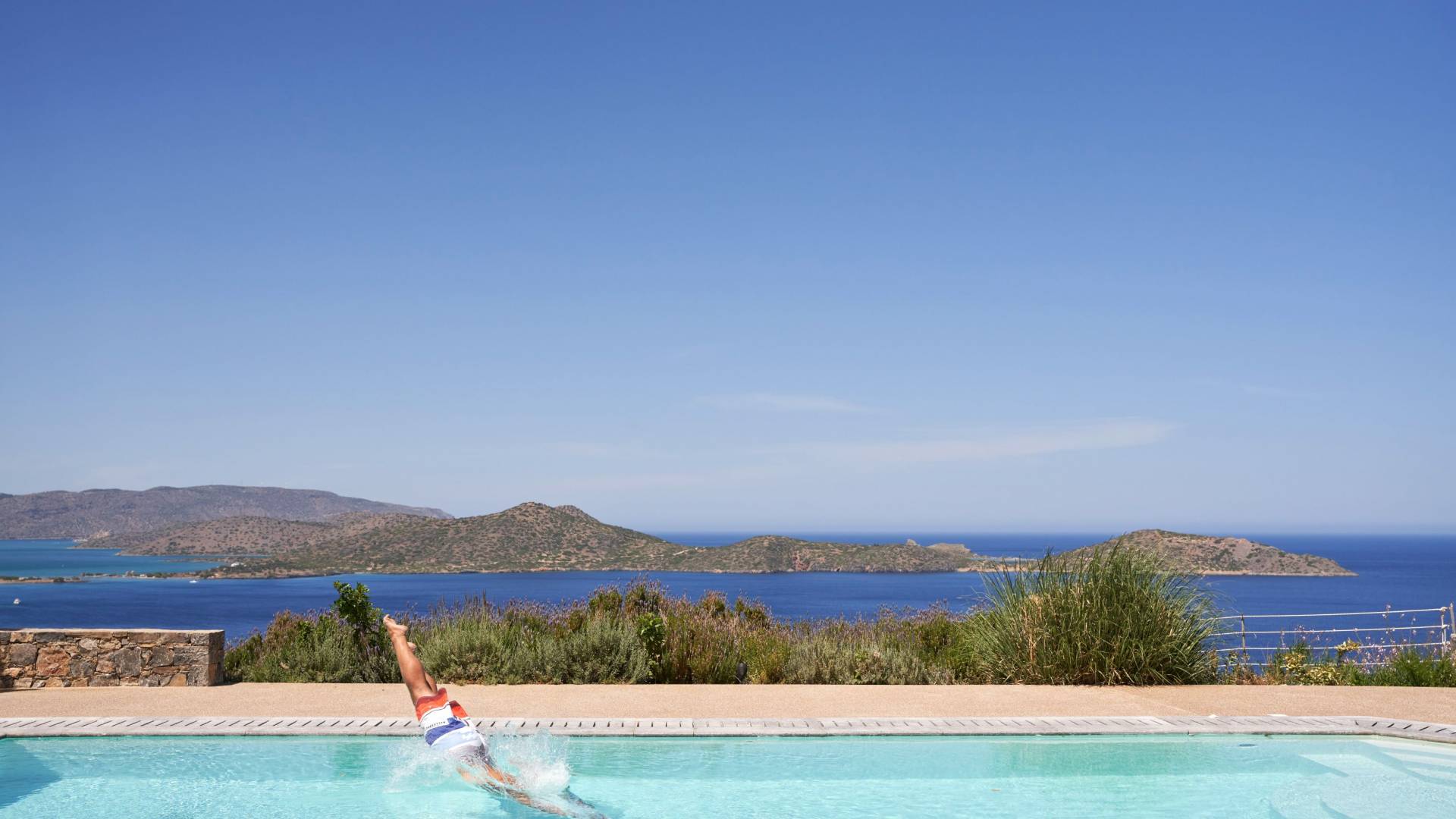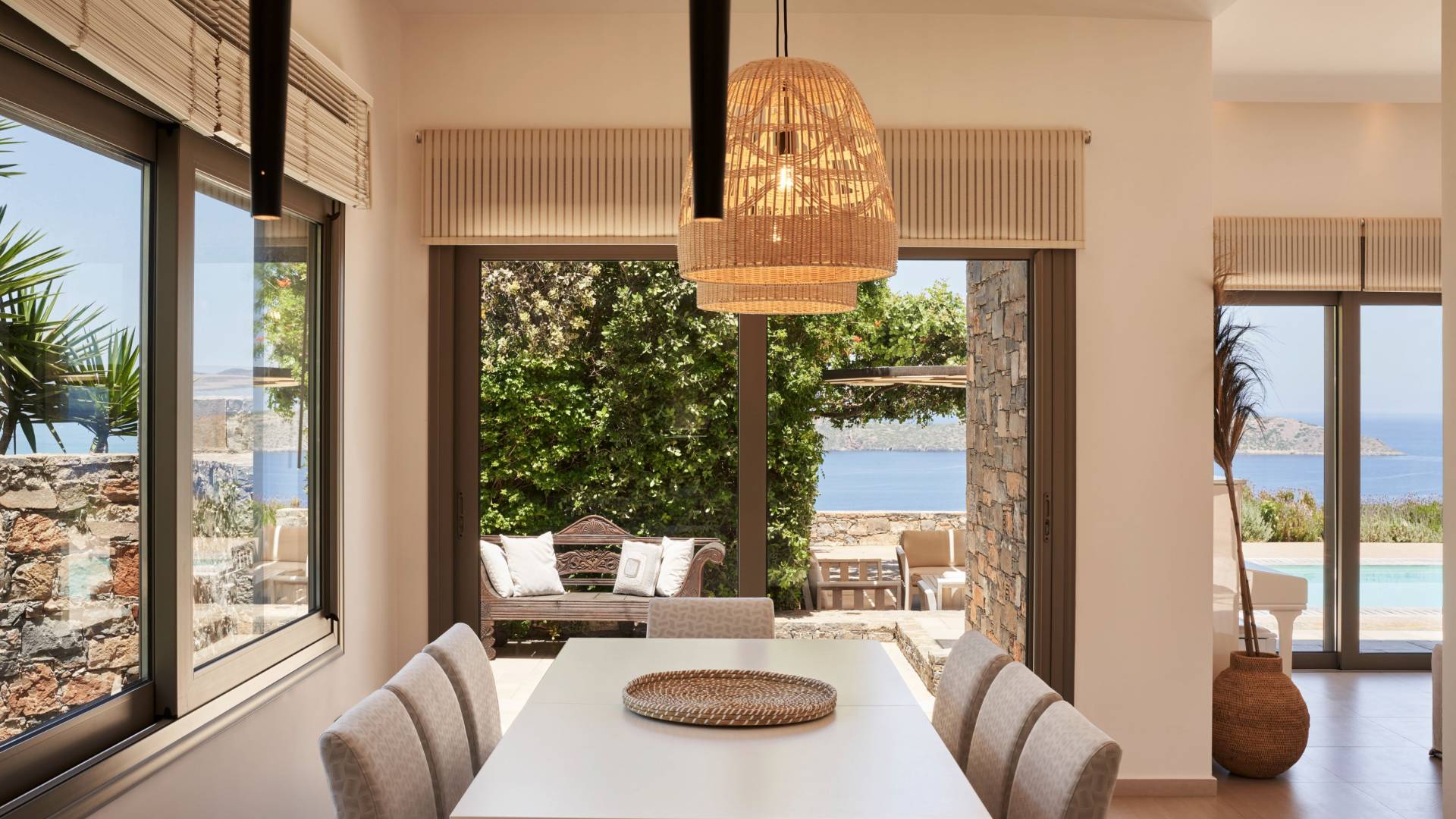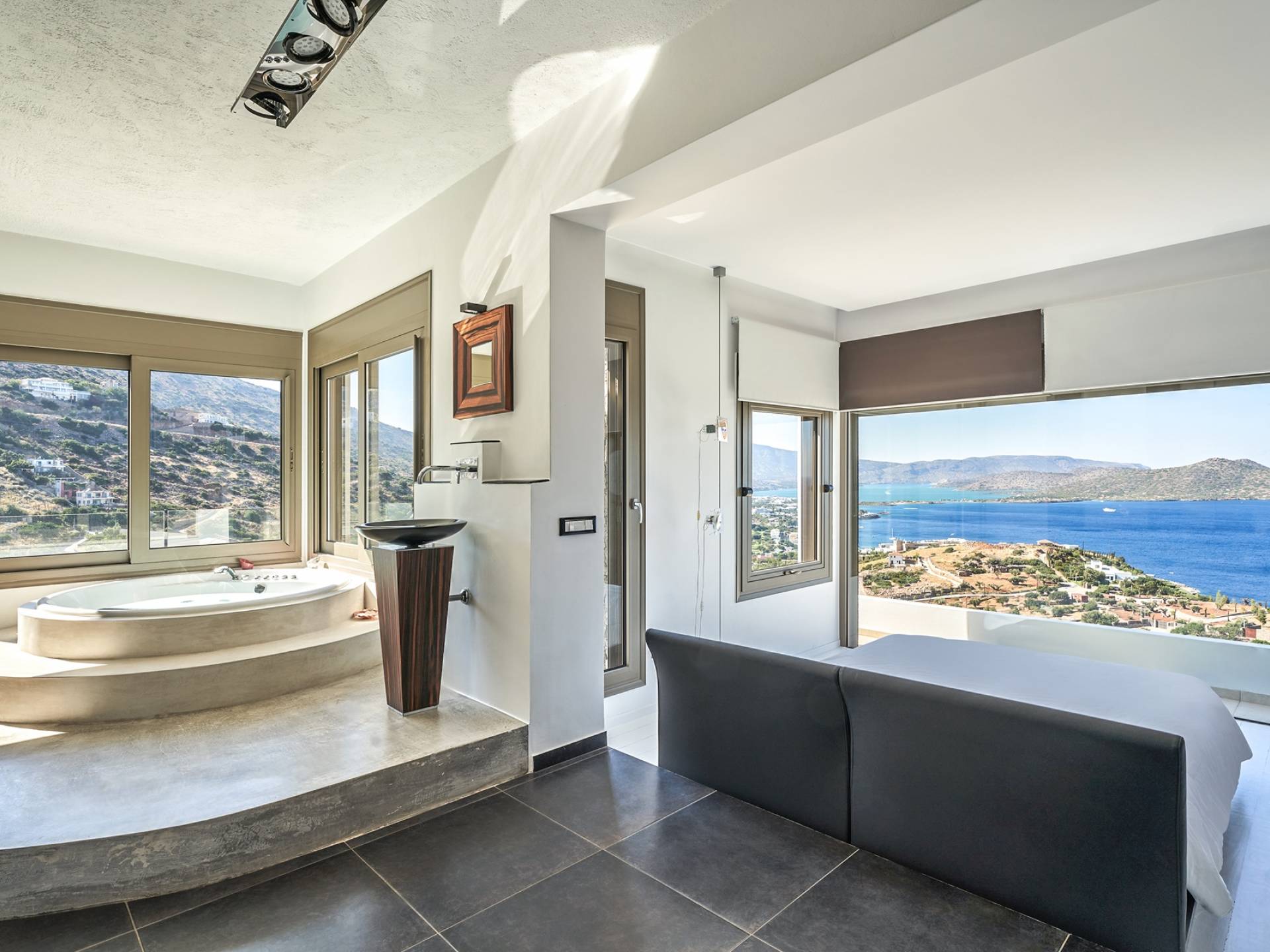 Die natürliche Schönheit der Umgebung ist beeindruckend – umgeben von sanften Hügeln und Olivenhainen bietet Elounda atemberaubende Ausblicke auf die Mirabello-Bucht, besonders stimmungsvoll bei Sonnenaufgang oder Sonnenuntergang – am besten zu genießen von der Terrasse Ihrer Villa.