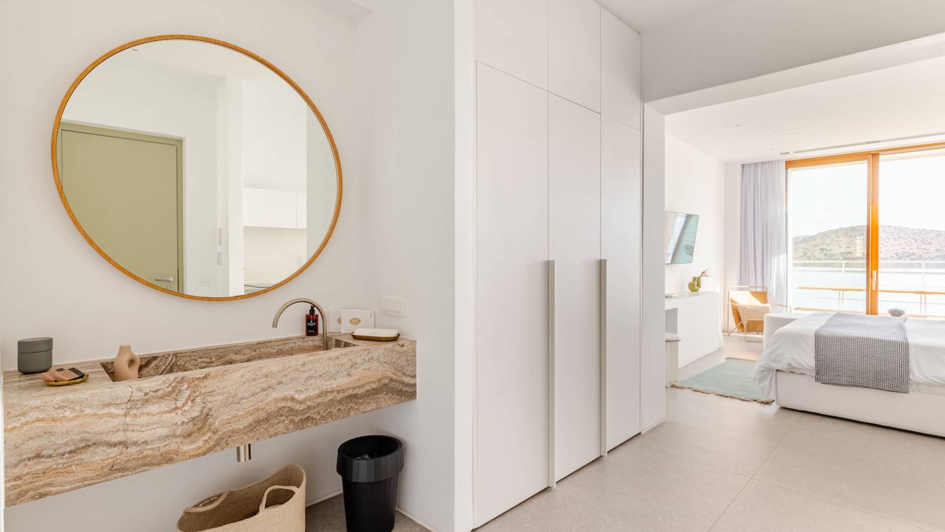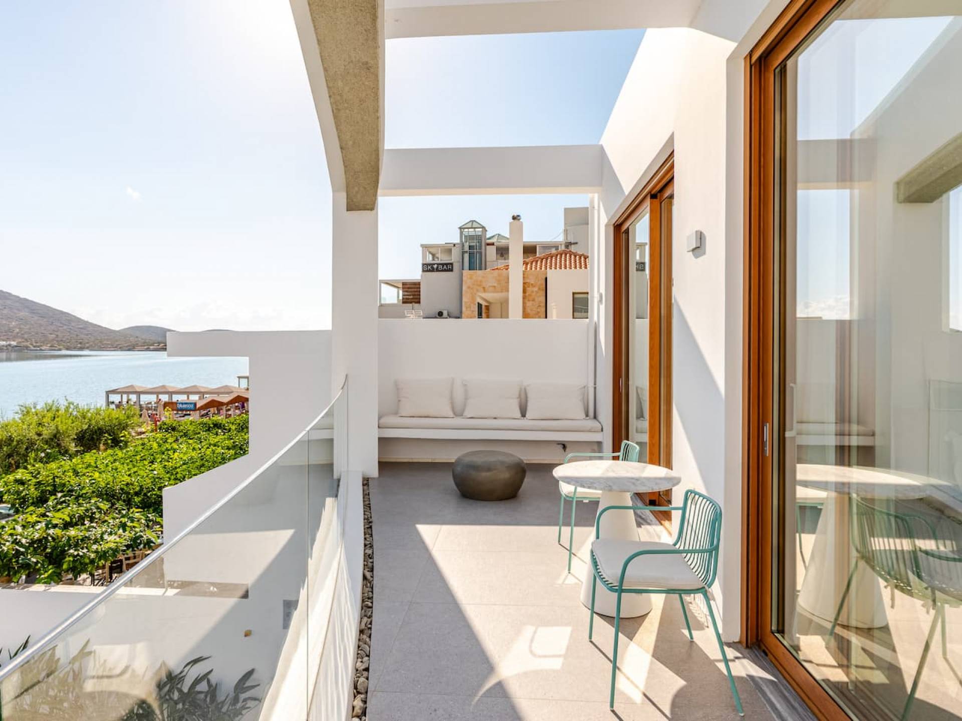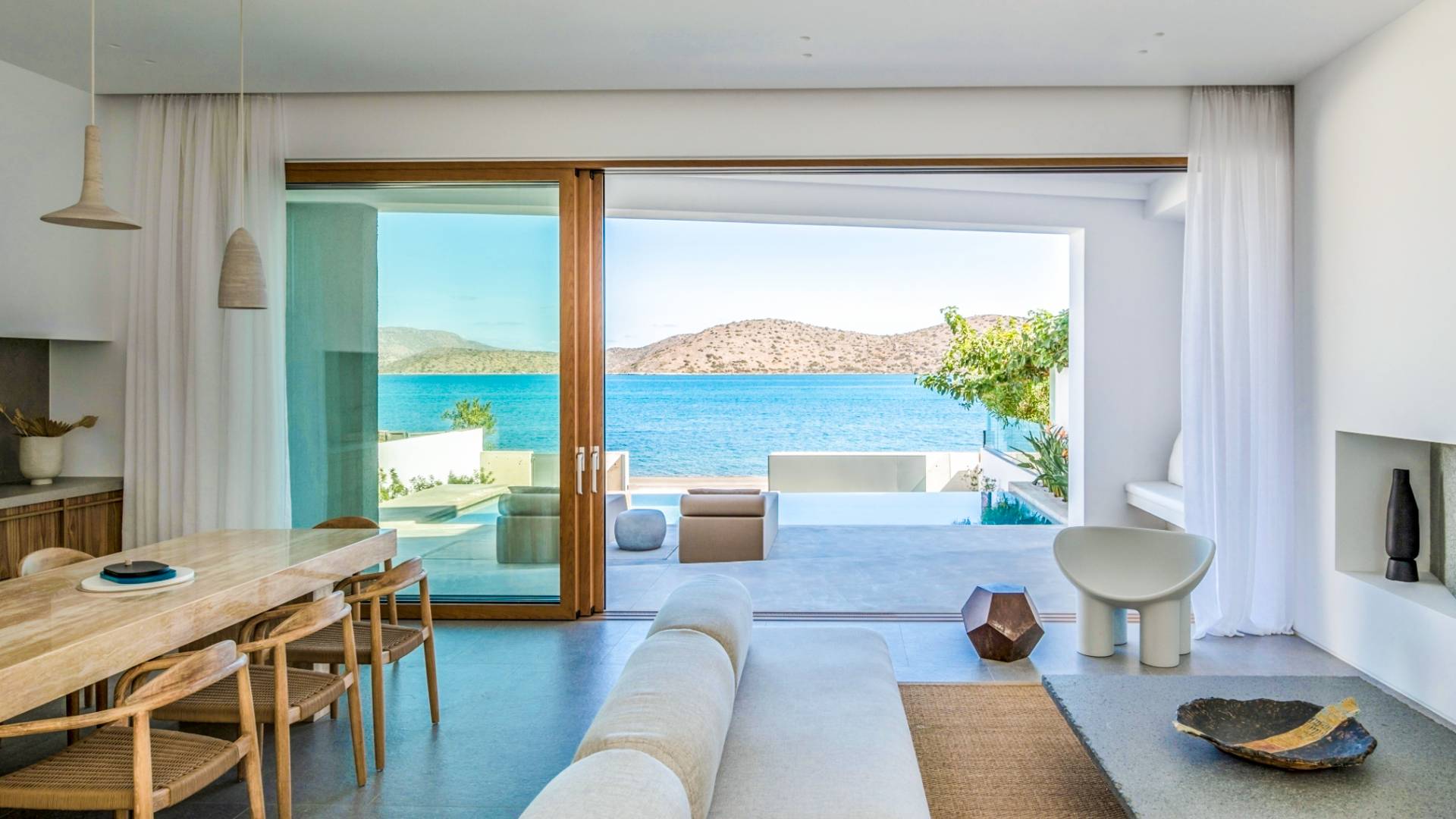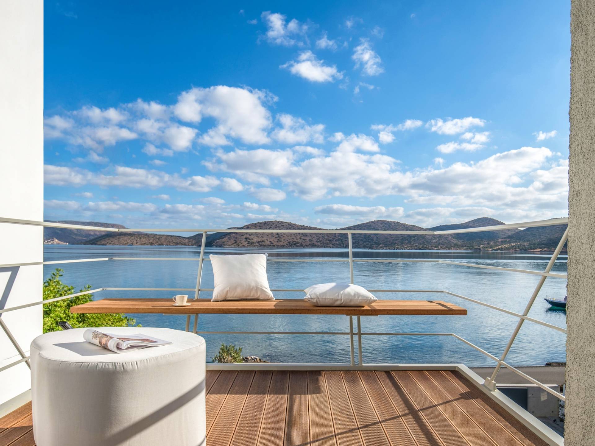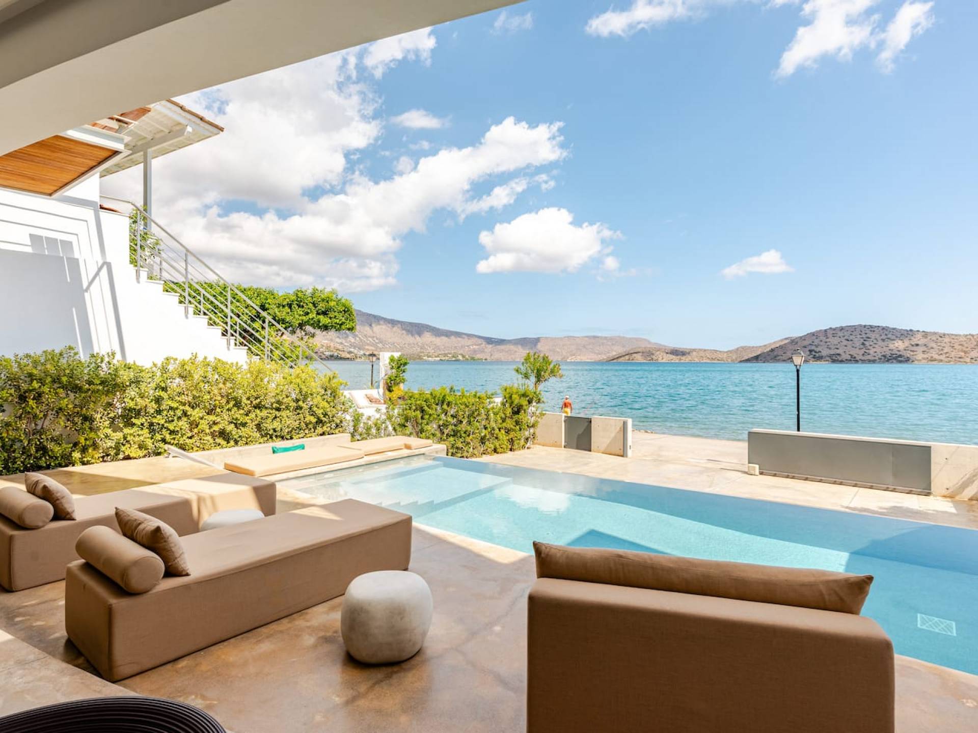 Die natürliche Schönheit der Umgebung ist beeindruckend – umgeben von sanften Hügeln und Olivenhainen bietet Elounda atemberaubende Ausblicke auf die Mirabello-Bucht, besonders stimmungsvoll bei Sonnenaufgang oder Sonnenuntergang – am besten zu genießen von der Terrasse Ihrer Villa.