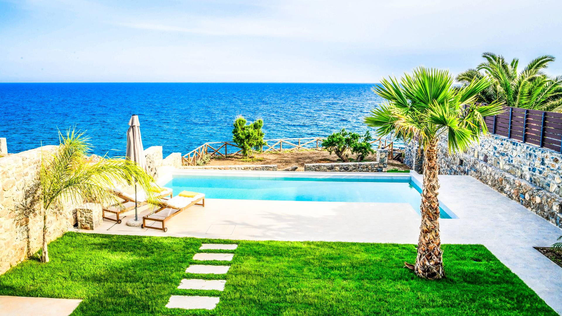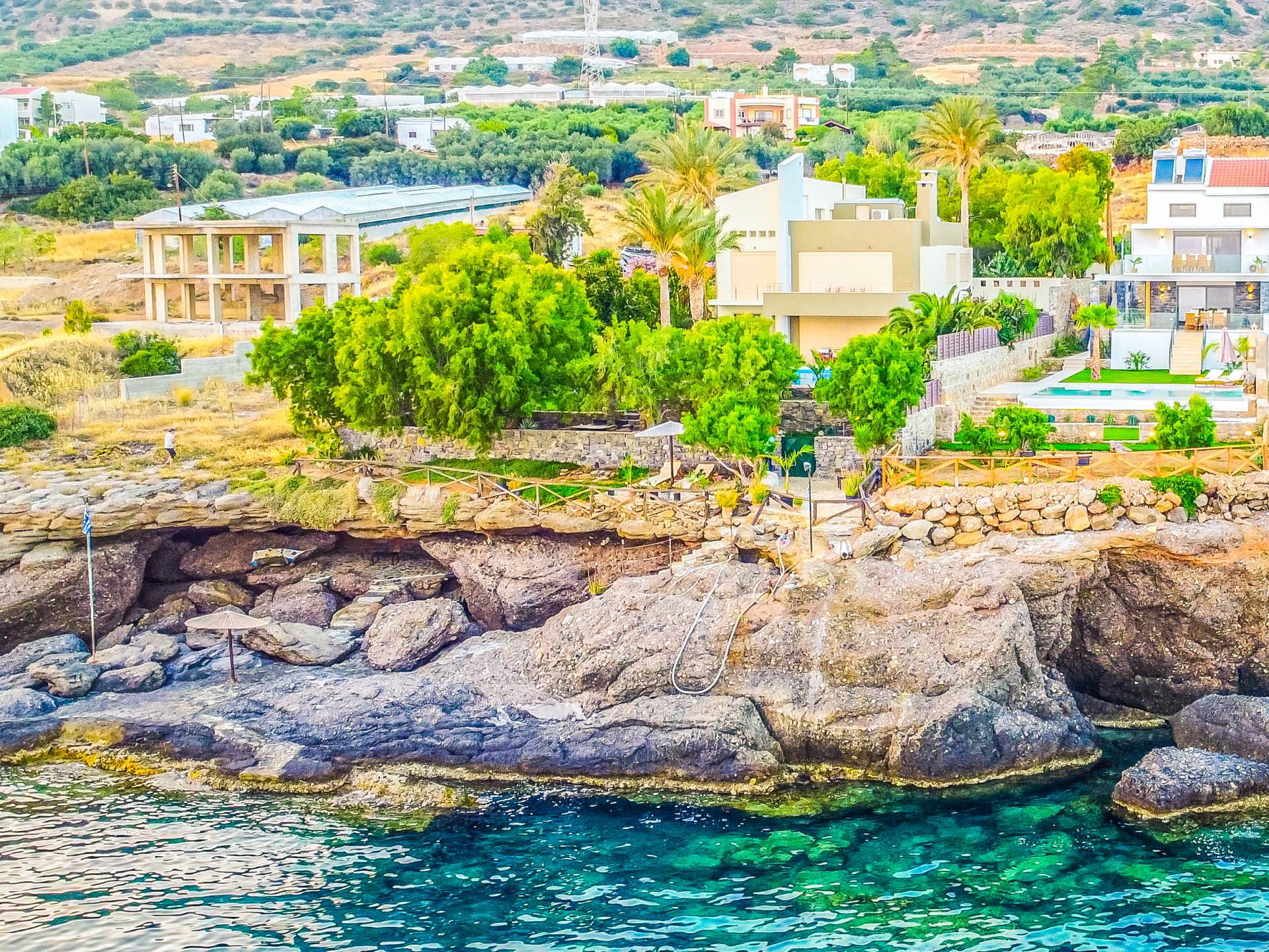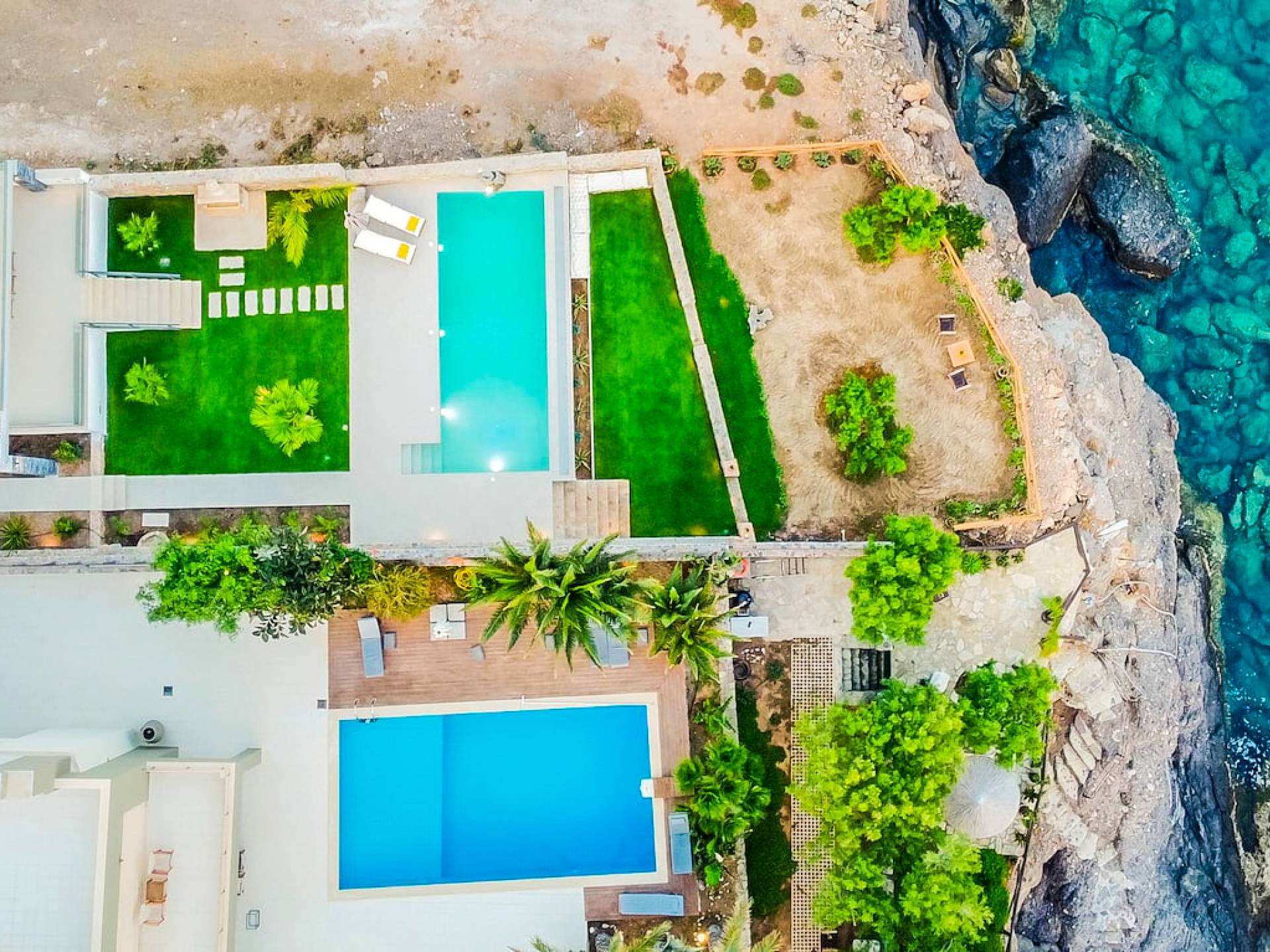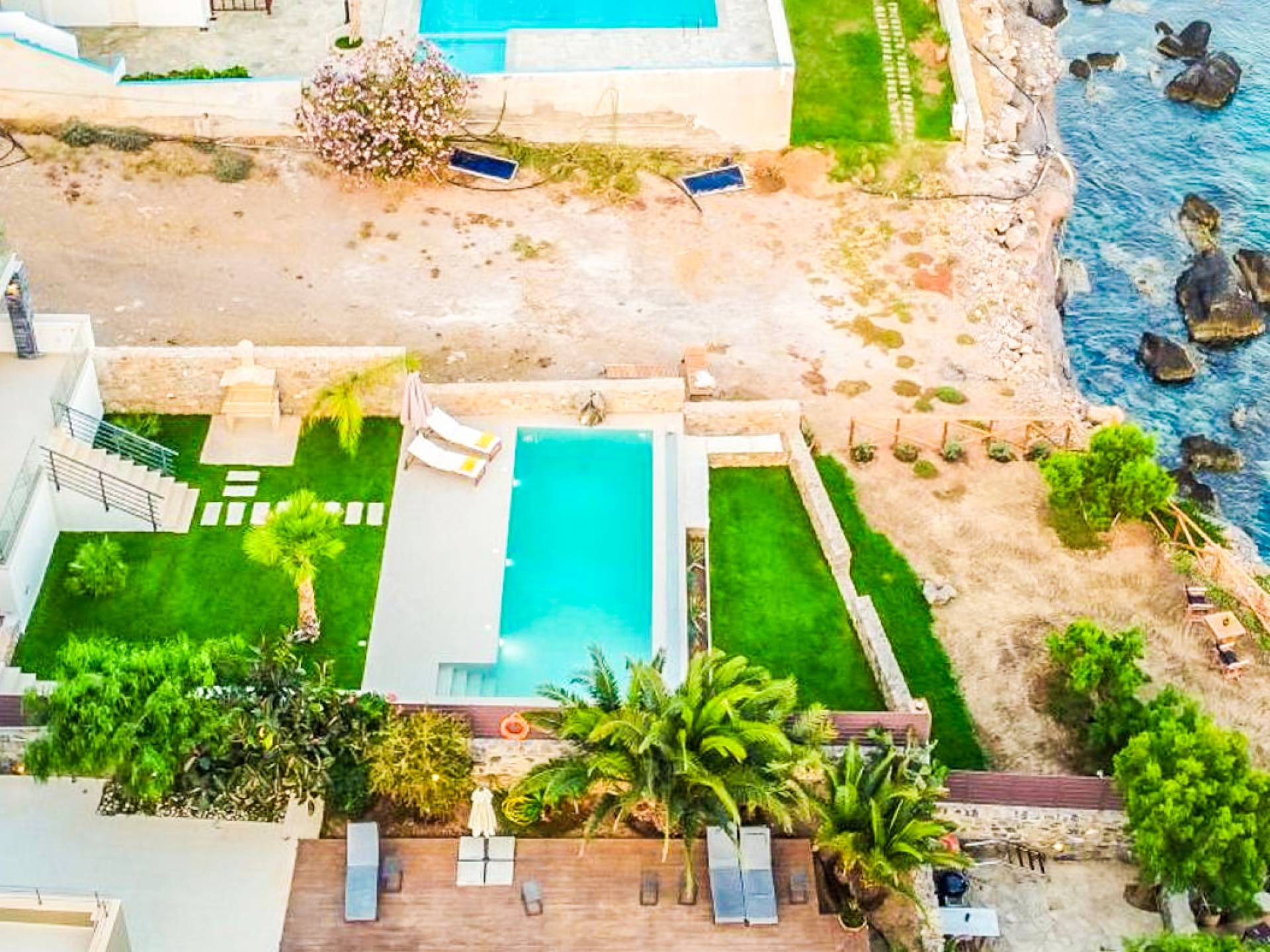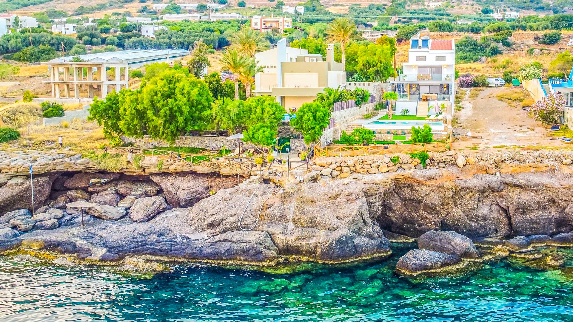 Seafront Villa Seano Crete offers a seafront private pool with salty water, 8 sun loungers, 4 umbrellas and marble tables at the outer space. A fully equipped barbecue is also provided. Internet access is available throughout at the whole area. It’s worth admiring olive trees, banana trees, arecastrum and robellini palm trees planted there. In addition you encounter small cactuses, the unique therapeutic aloe vera plants and feel the wonderful smell of various flowers such as the evening primroses, the carnations and strelitzia augusta known as white bird of heaven. At the end of the courtyard, there is access to two rocky beaches, one on your left and one on your right. There you can enjoy your stay at the unique sea of Crete and dive into the crystal clear waters of our island.