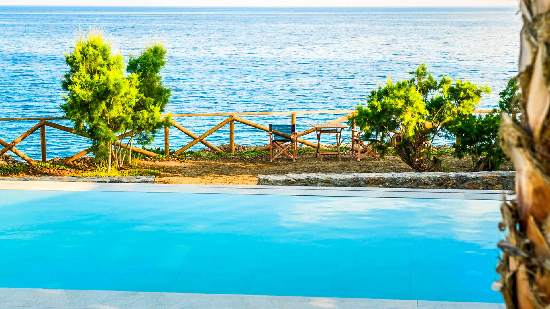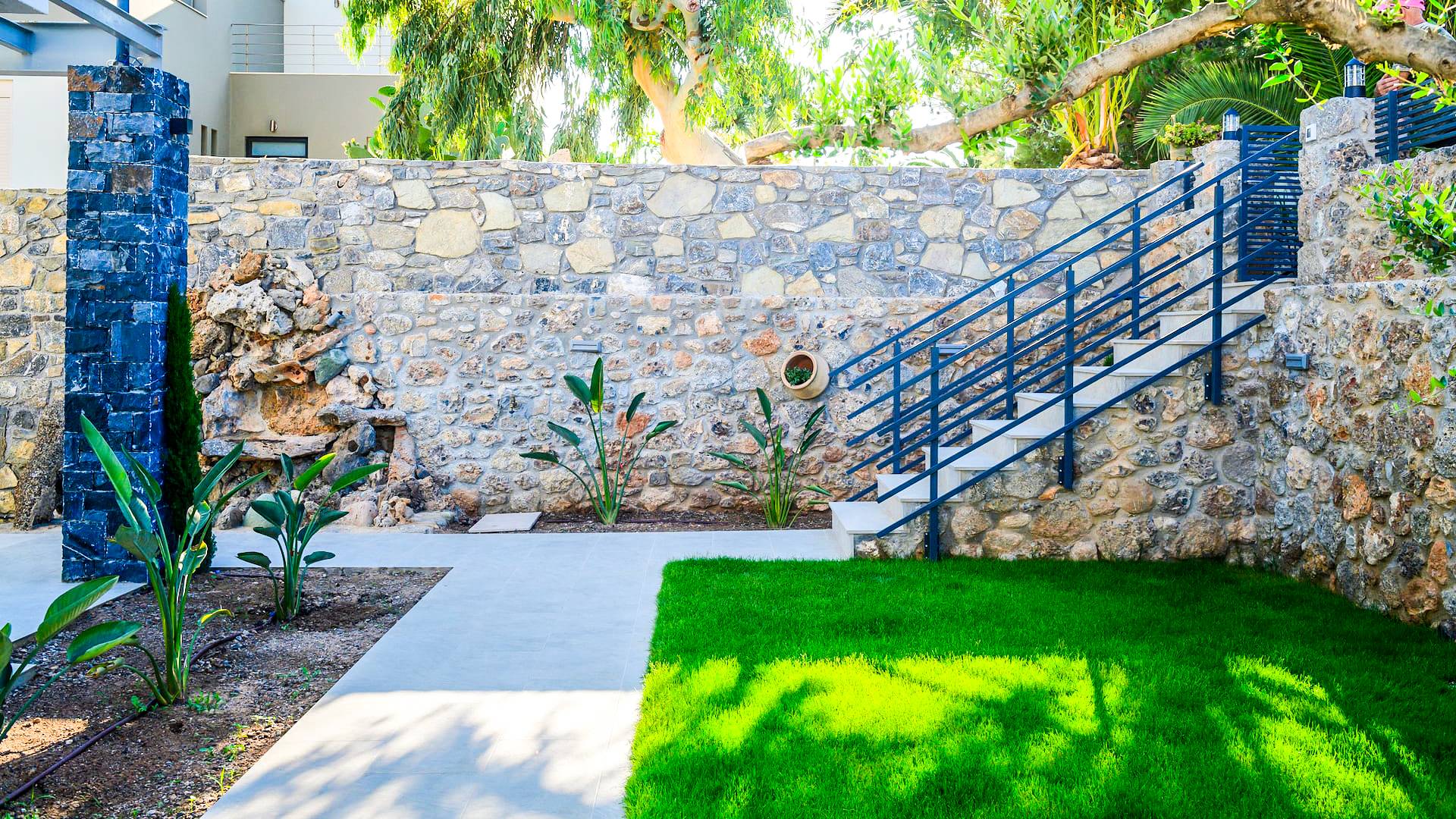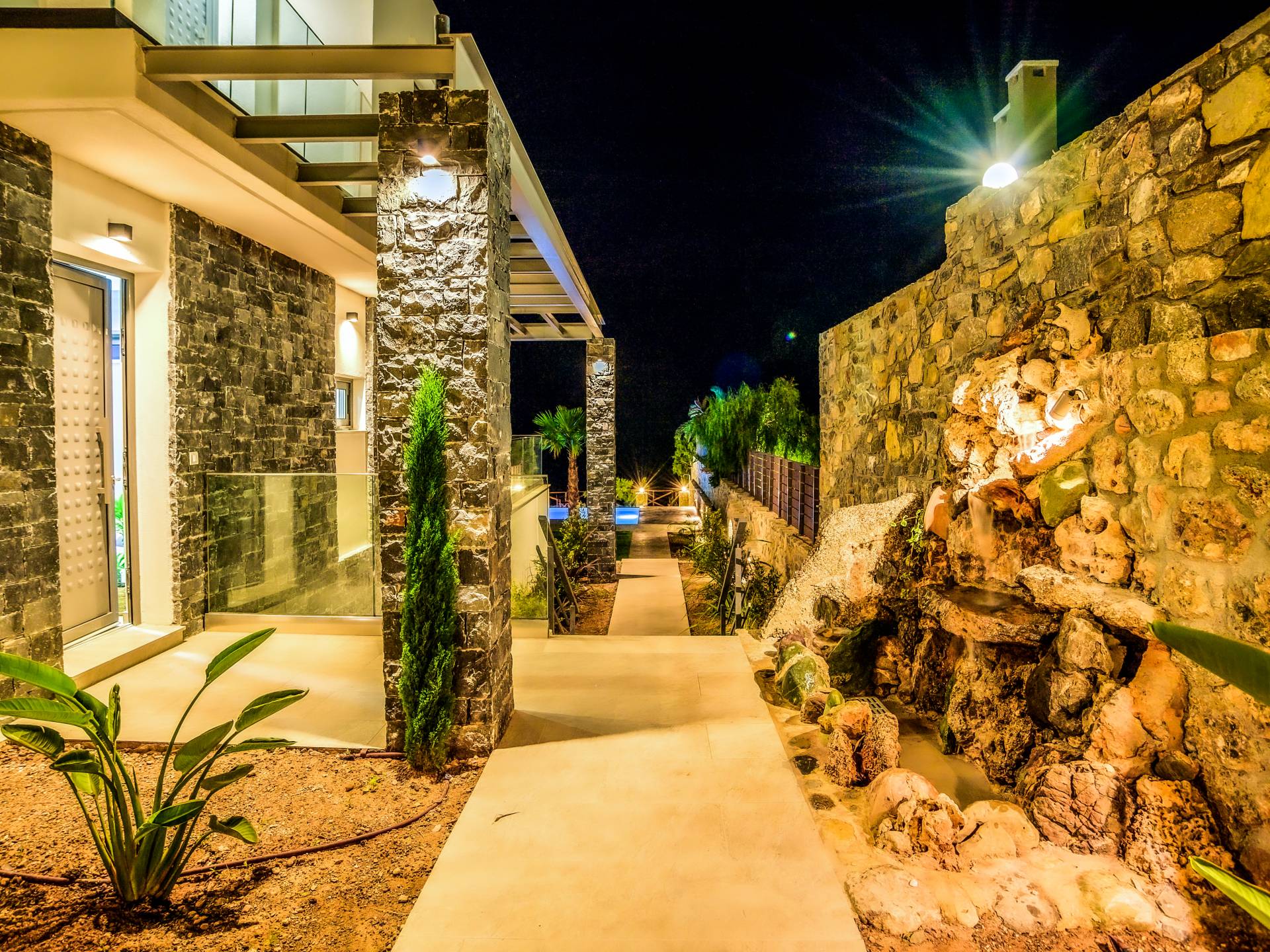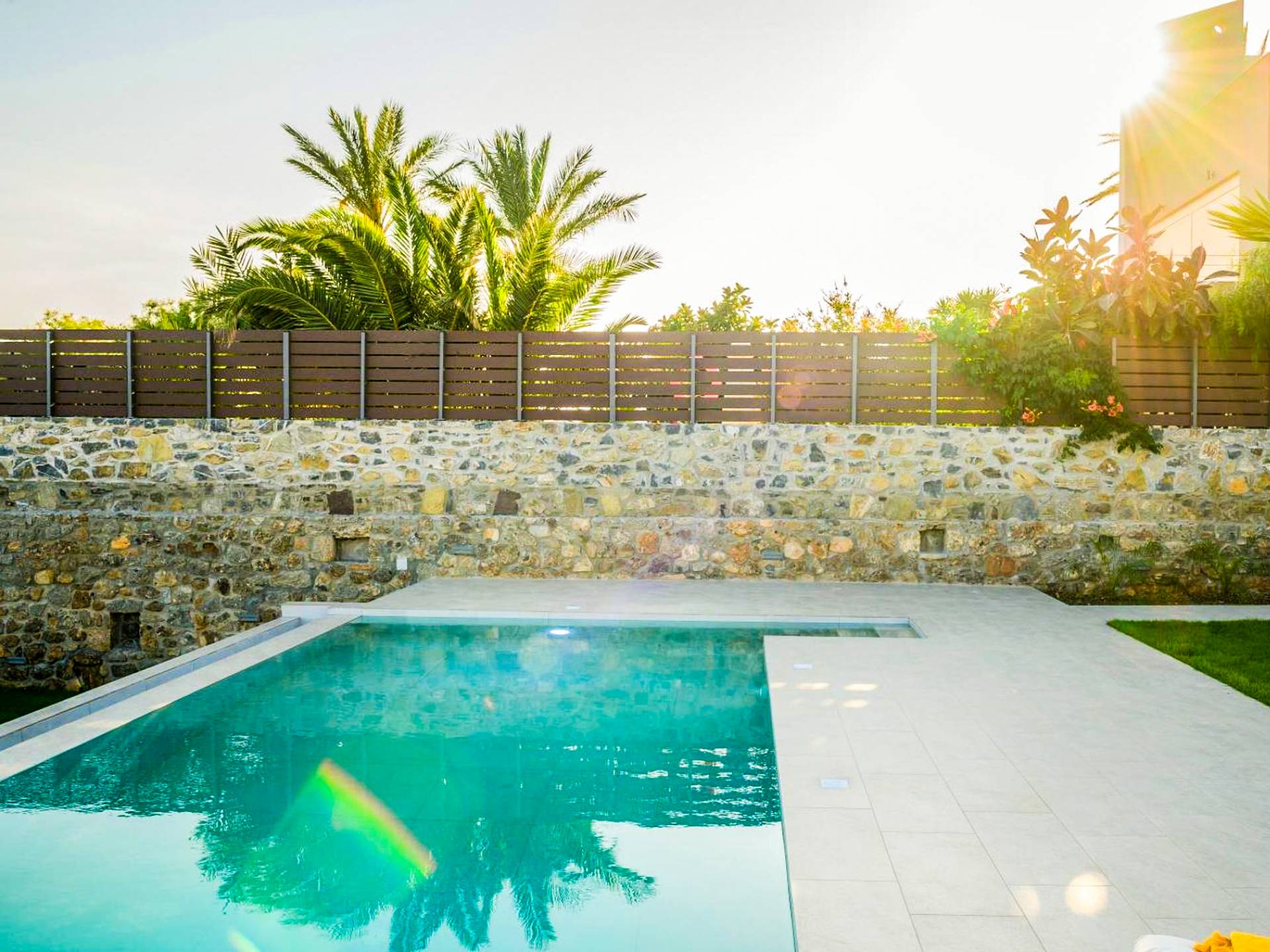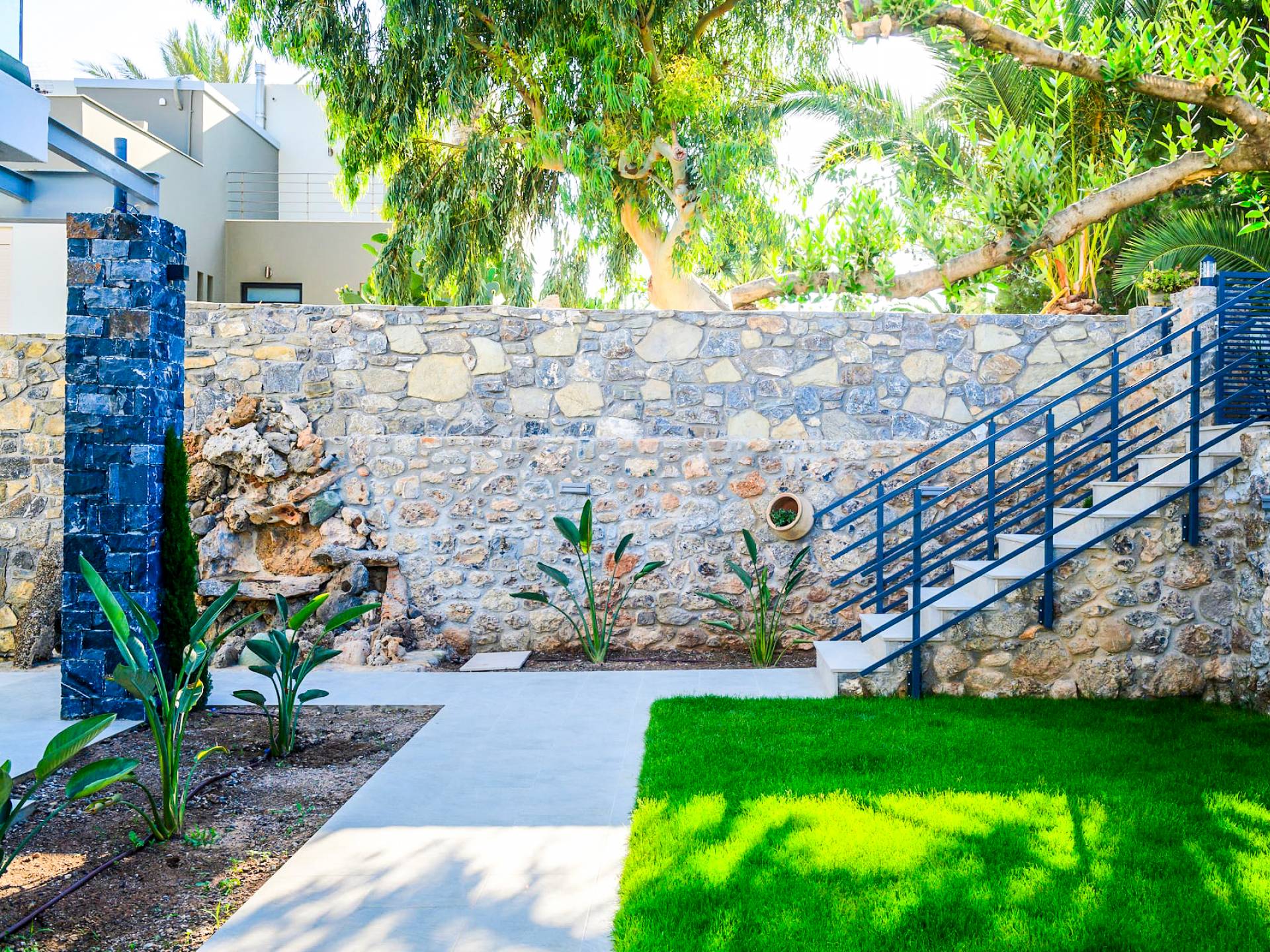 Seafront Villa Seano Crete offers a seafront private pool with salty water, 8 sun loungers, 4 umbrellas and marble tables at the outer space. A fully equipped barbecue is also provided. Internet access is available throughout at the whole area. It’s worth admiring olive trees, banana trees, arecastrum and robellini palm trees planted there. In addition you encounter small cactuses, the unique therapeutic aloe vera plants and feel the wonderful smell of various flowers such as the evening primroses, the carnations and strelitzia augusta known as white bird of heaven. At the end of the courtyard, there is access to two rocky beaches, one on your left and one on your right. There you can enjoy your stay at the unique sea of Crete and dive into the crystal clear waters of our island.