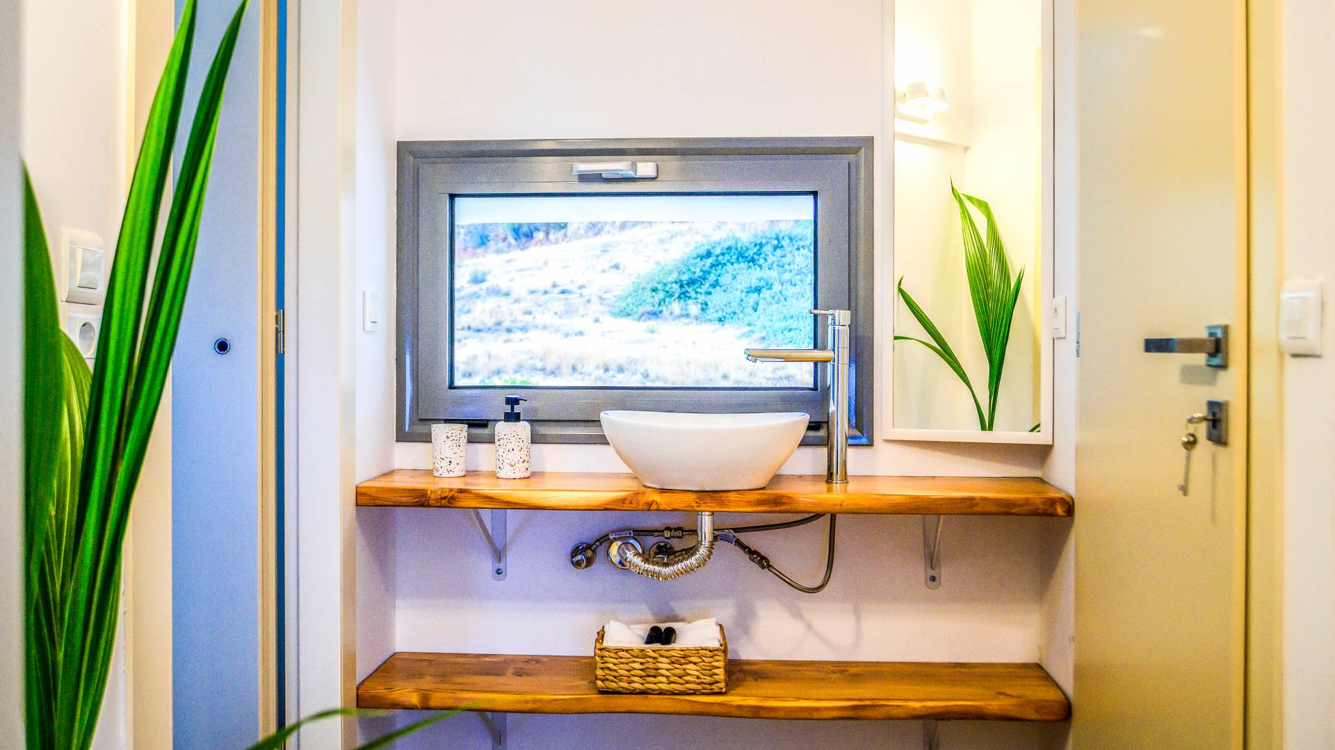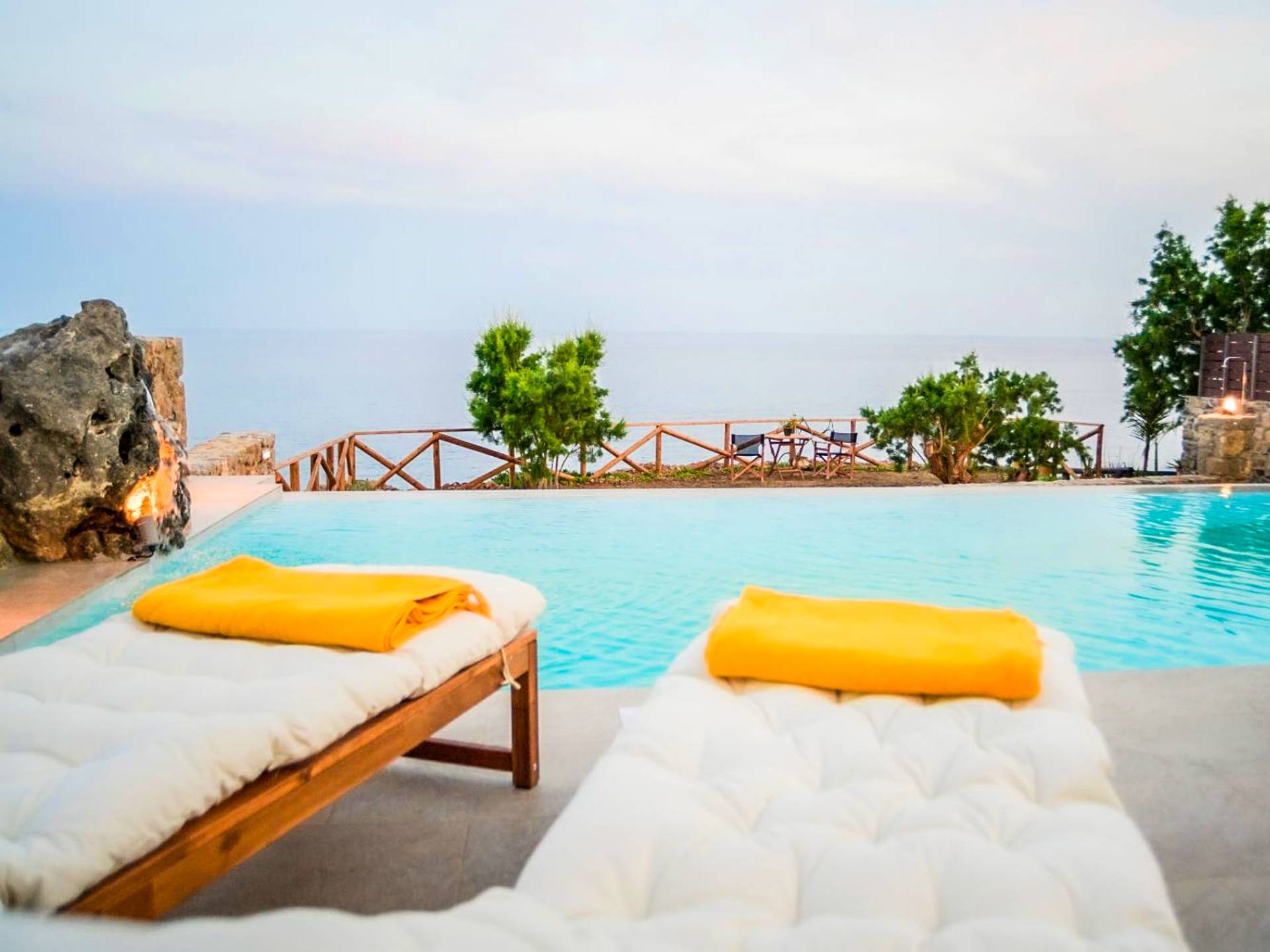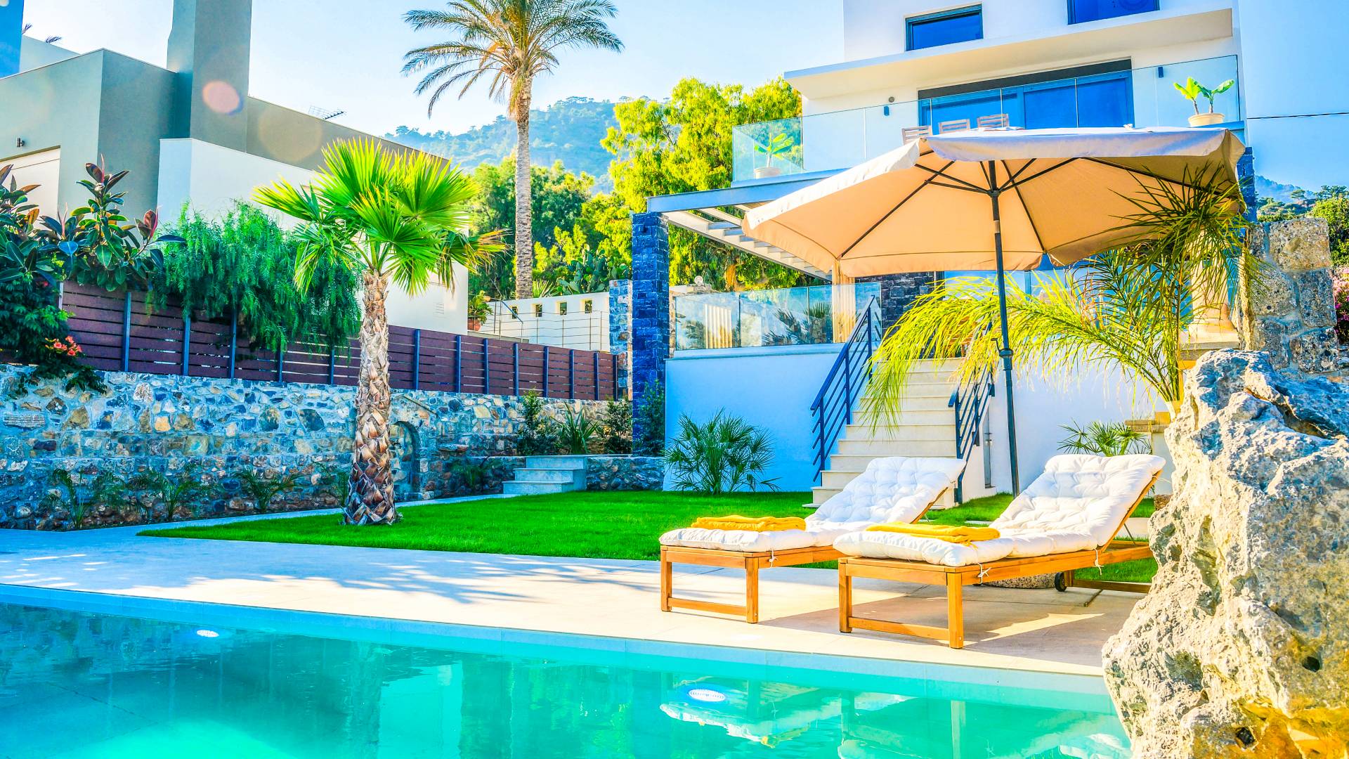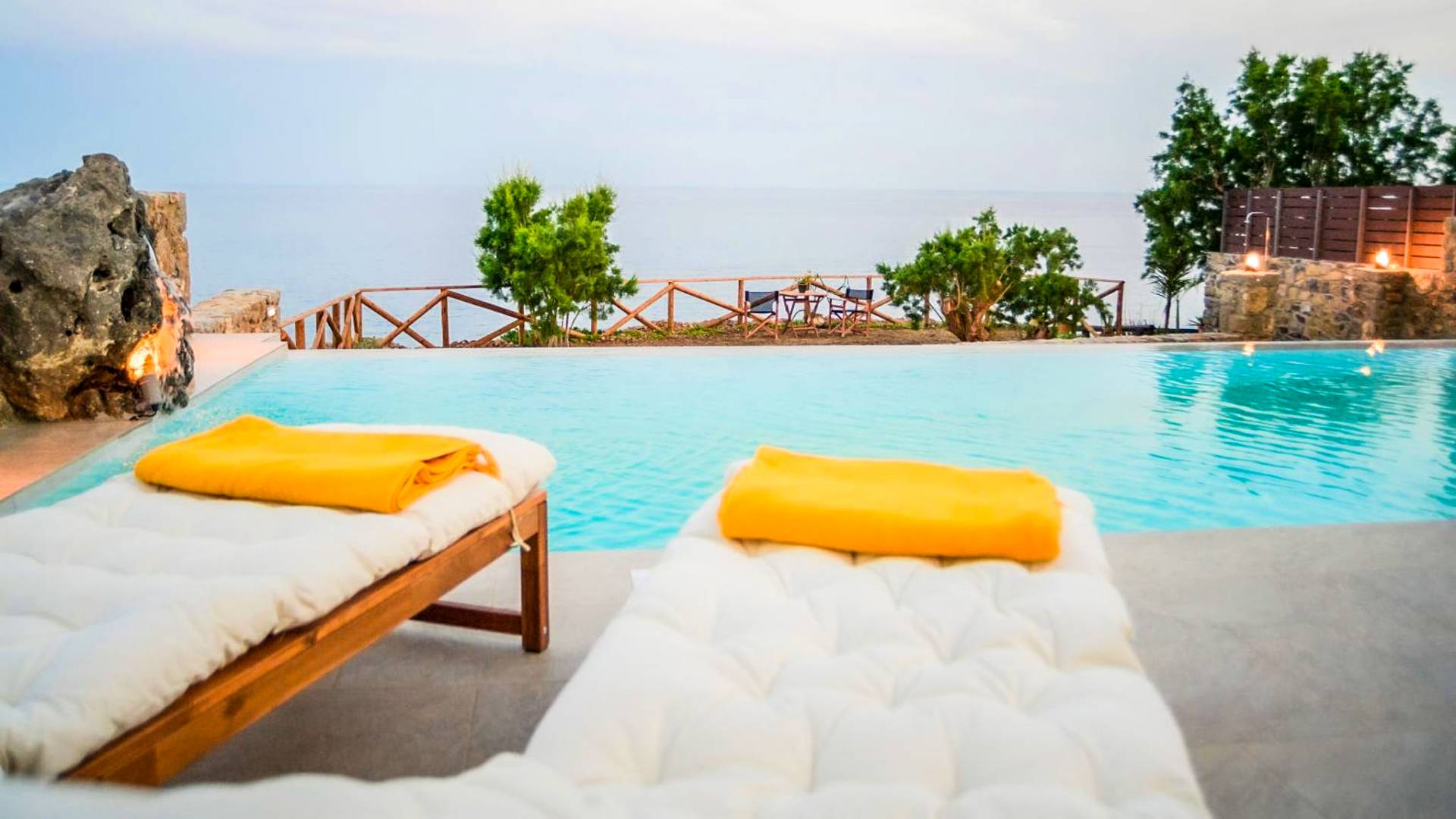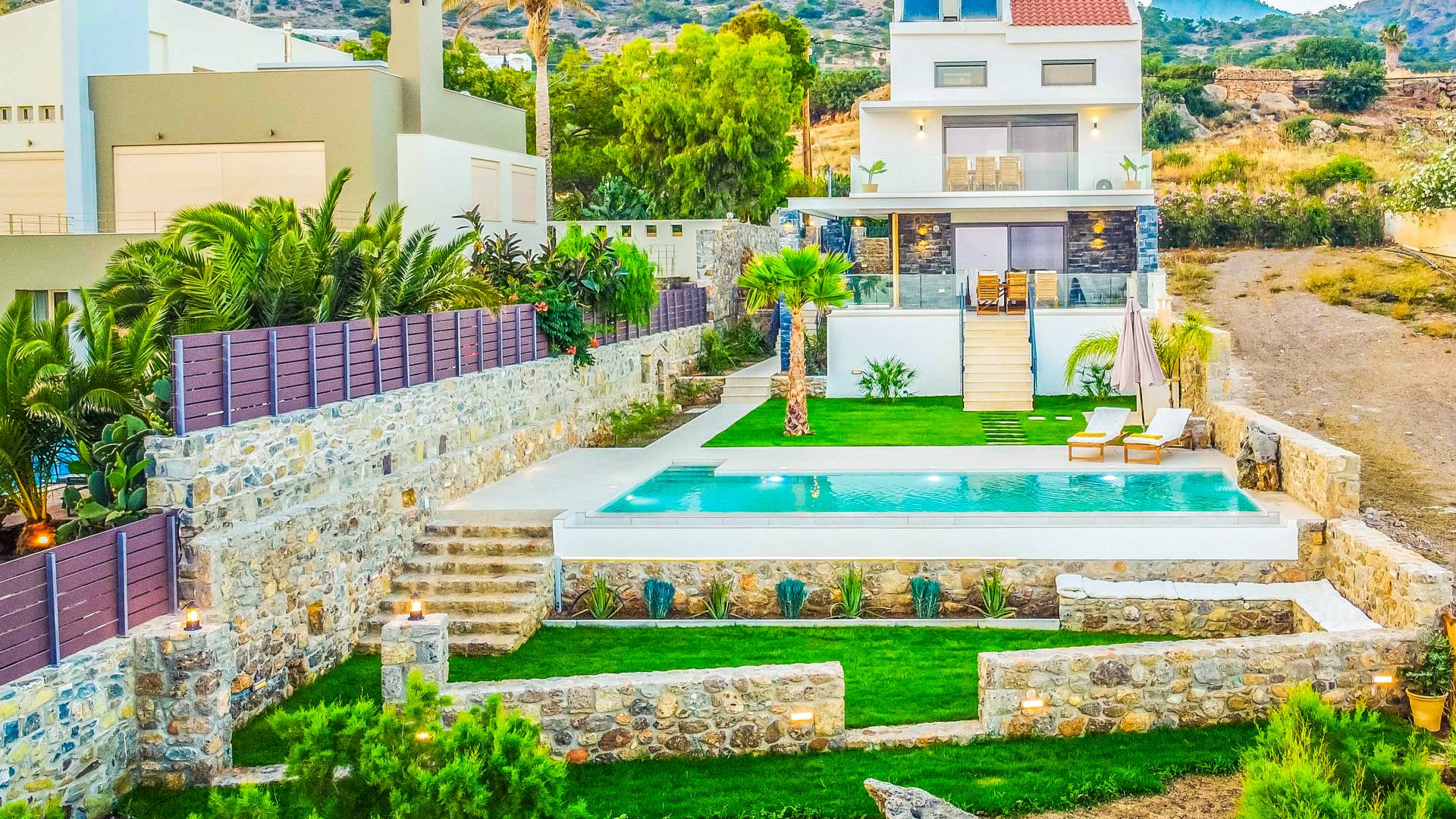 Seafront Villa Seano Crete offers a seafront private pool with salty water, 8 sun loungers, 4 umbrellas and marble tables at the outer space. A fully equipped barbecue is also provided. Internet access is available throughout at the whole area. It’s worth admiring olive trees, banana trees, arecastrum and robellini palm trees planted there. In addition you encounter small cactuses, the unique therapeutic aloe vera plants and feel the wonderful smell of various flowers such as the evening primroses, the carnations and strelitzia augusta known as white bird of heaven. At the end of the courtyard, there is access to two rocky beaches, one on your left and one on your right. There you can enjoy your stay at the unique sea of Crete and dive into the crystal clear waters of our island.