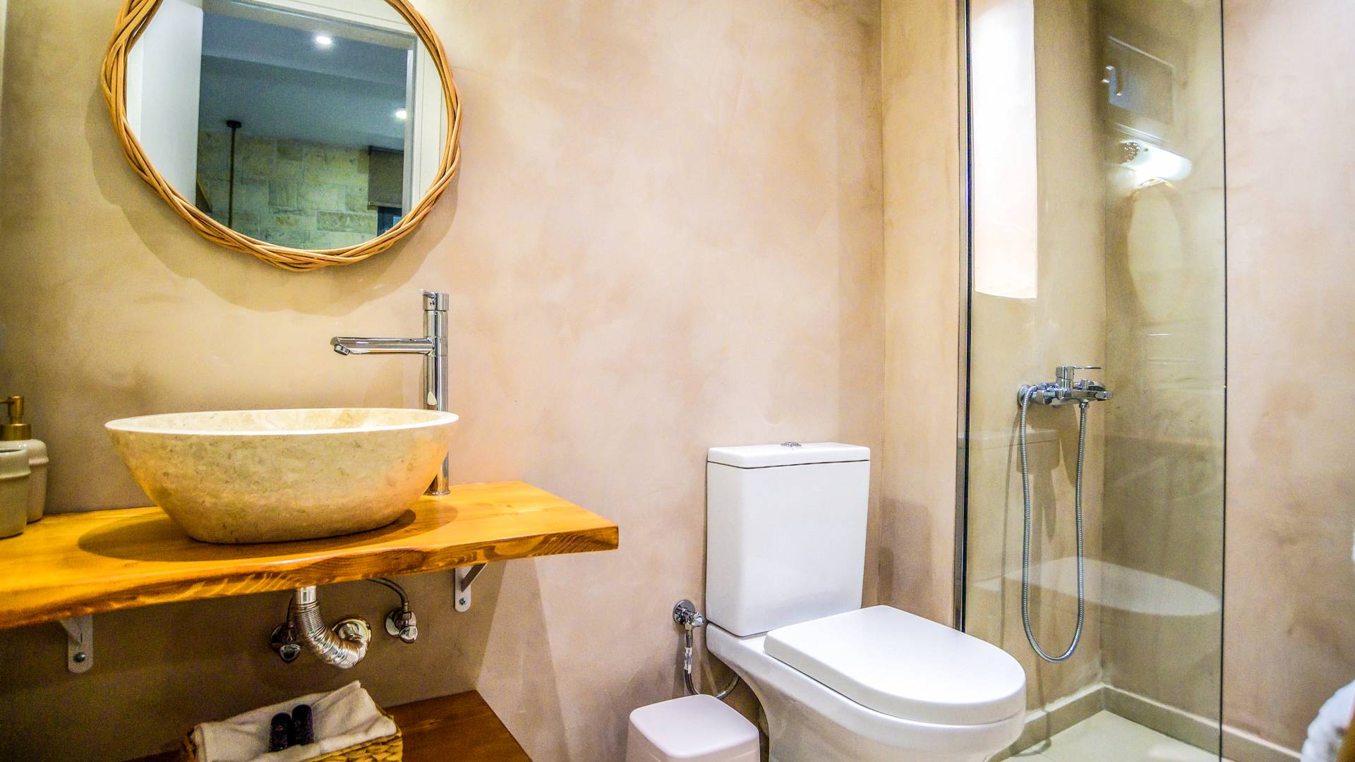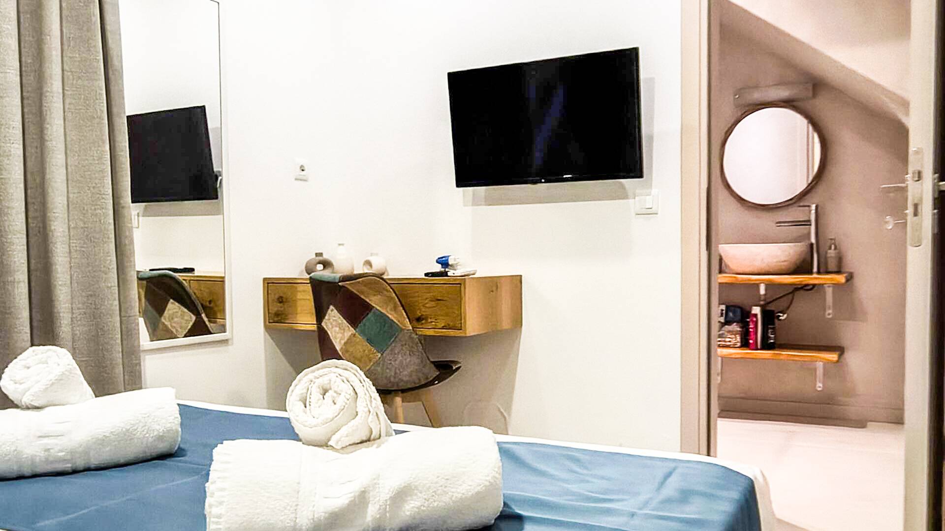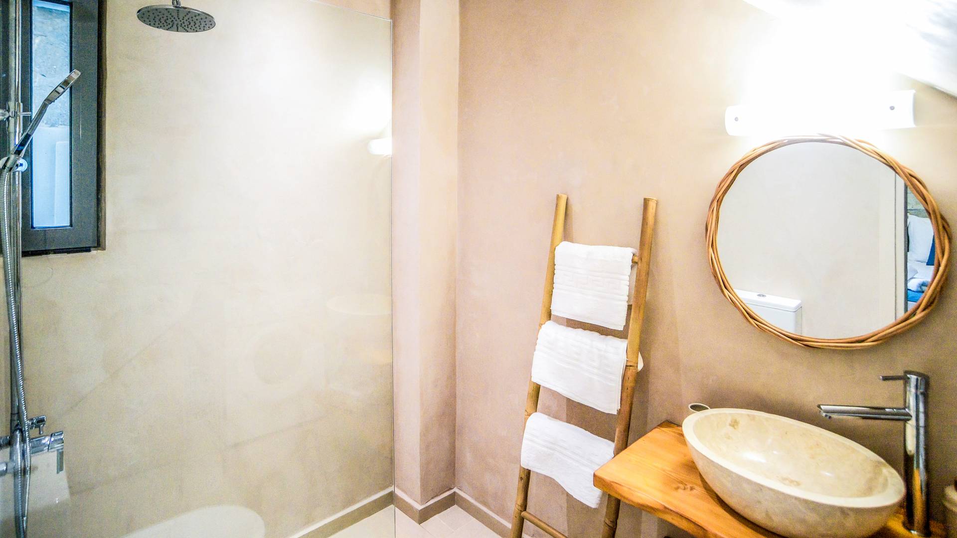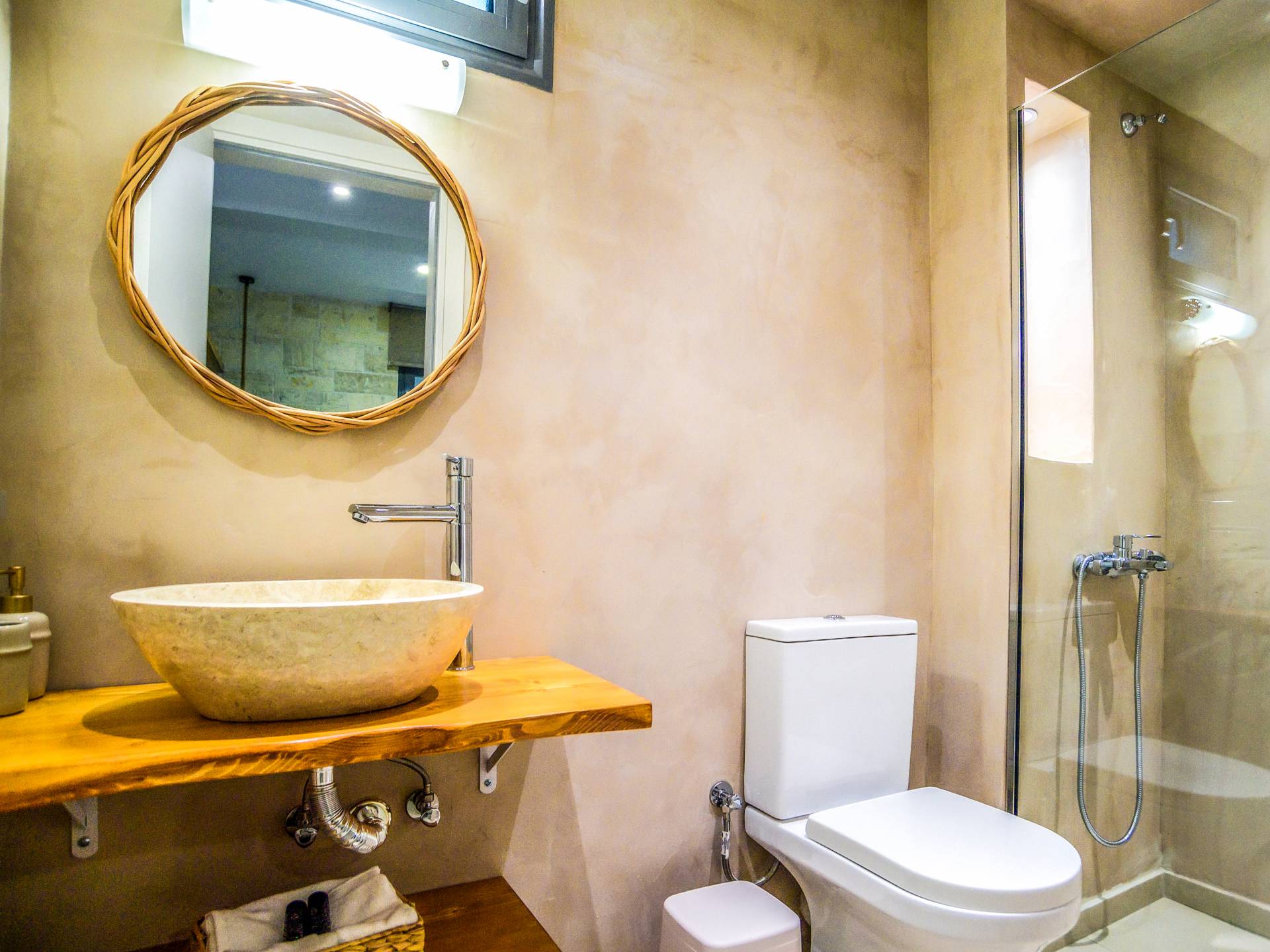 Entering our Villa there is private parking space for your vehicles next to the entrance. Then you head towards the main building which is divided into 4 levels. The first level contains 2 standard fully air-conditioned bedrooms. You can relax on our anatomic mattresses and feather pillows under the stonewalls. Furthermore, every bedroom has its own private bathroom with an en-suit shower each.