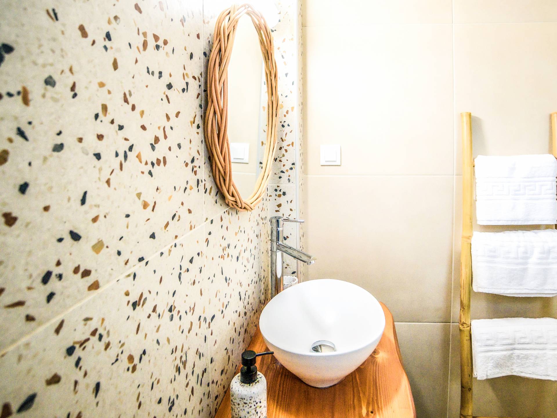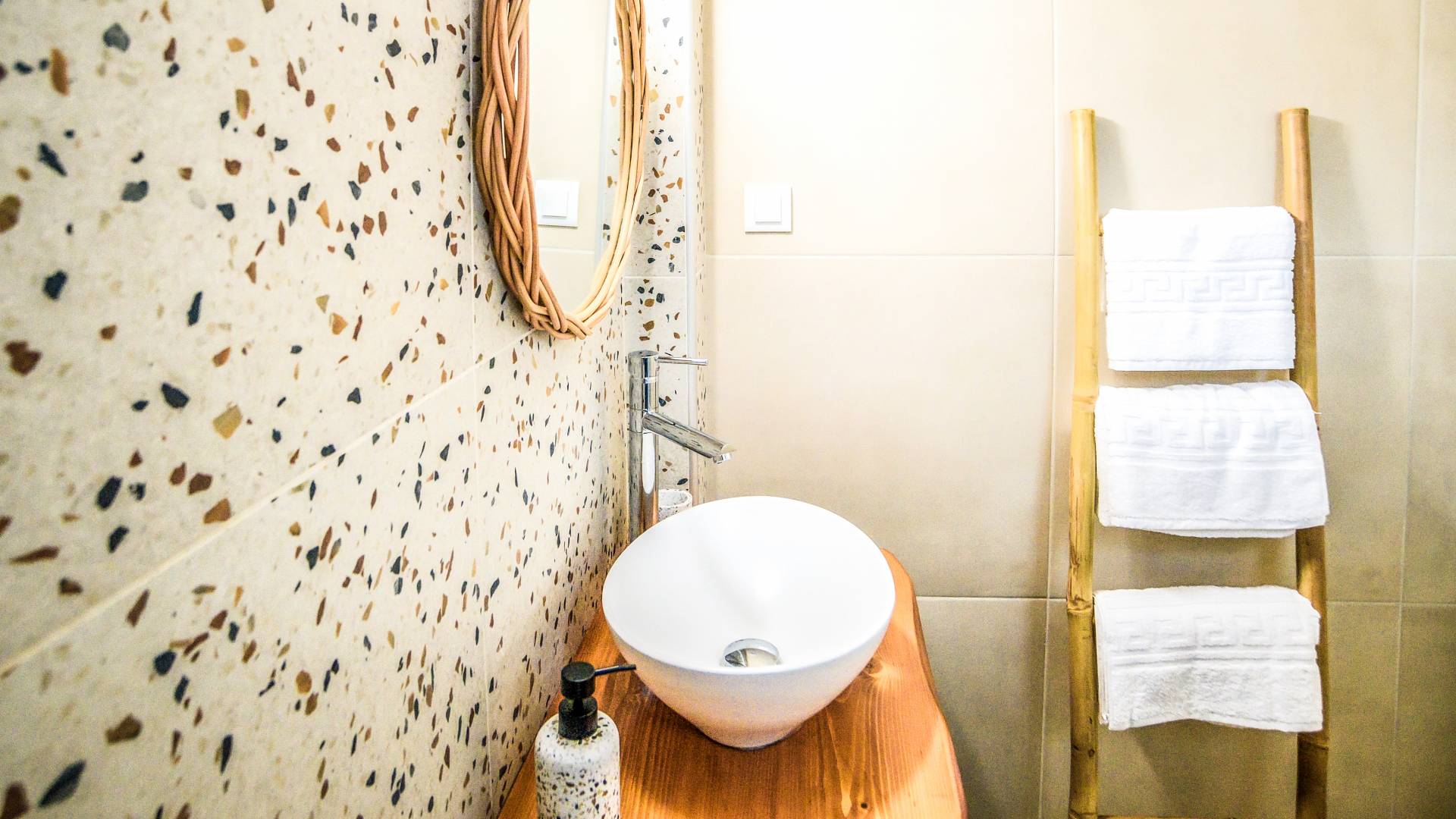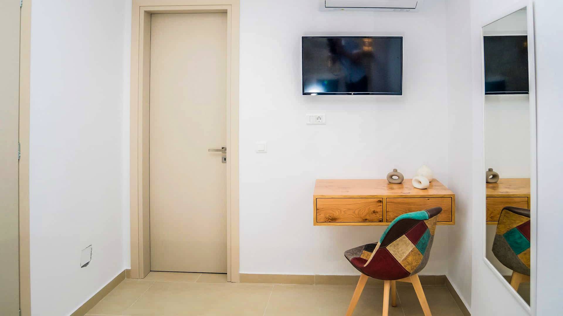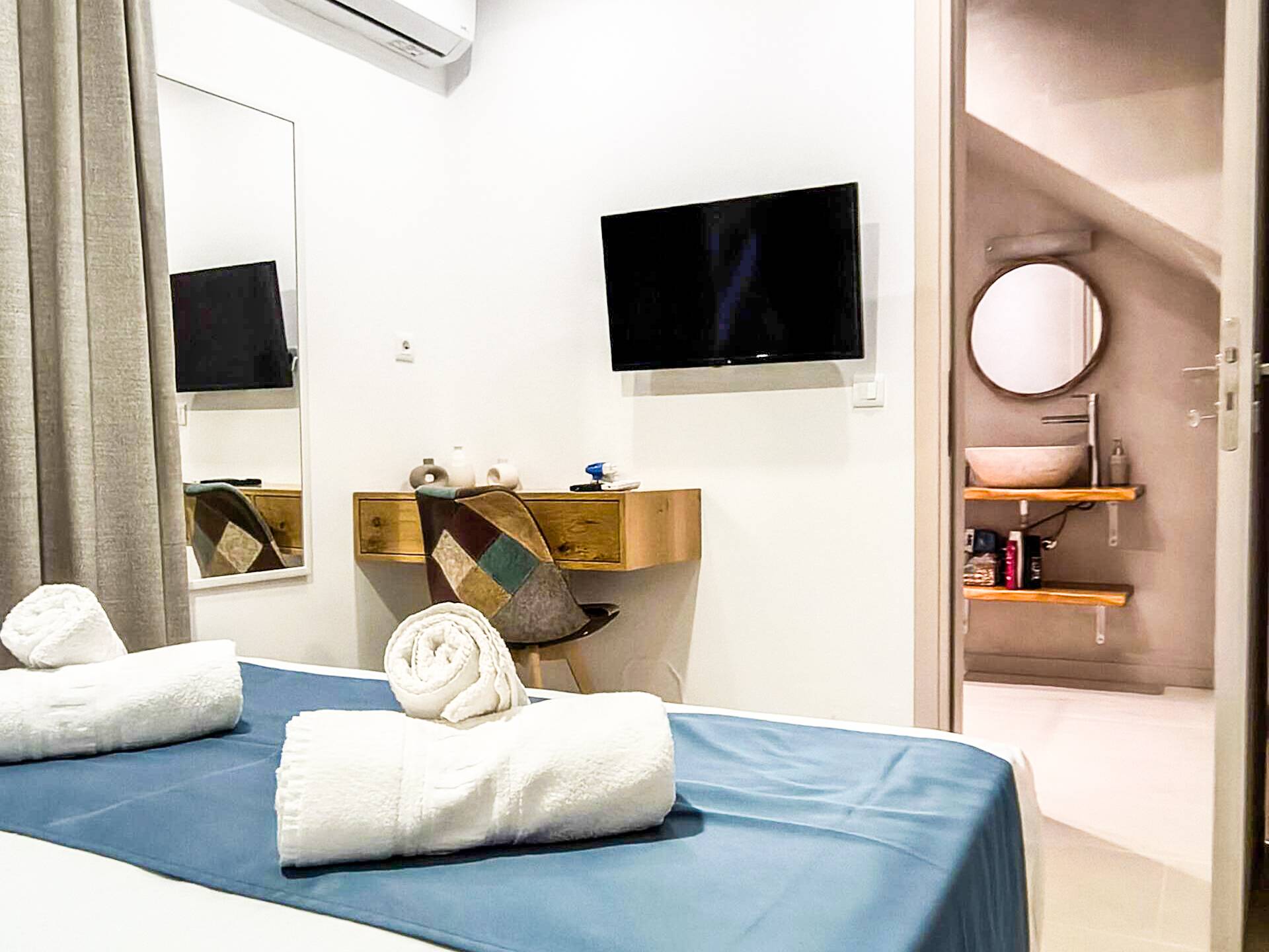 Entering our Villa there is private parking space for your vehicles next to the entrance. Then you head towards the main building which is divided into 4 levels. The first level contains 2 standard fully air-conditioned bedrooms. You can relax on our anatomic mattresses and feather pillows under the stonewalls. Furthermore, every bedroom has its own private bathroom with an en-suit shower each.