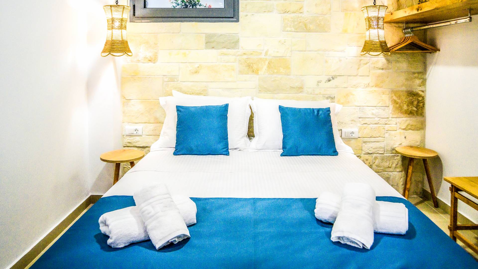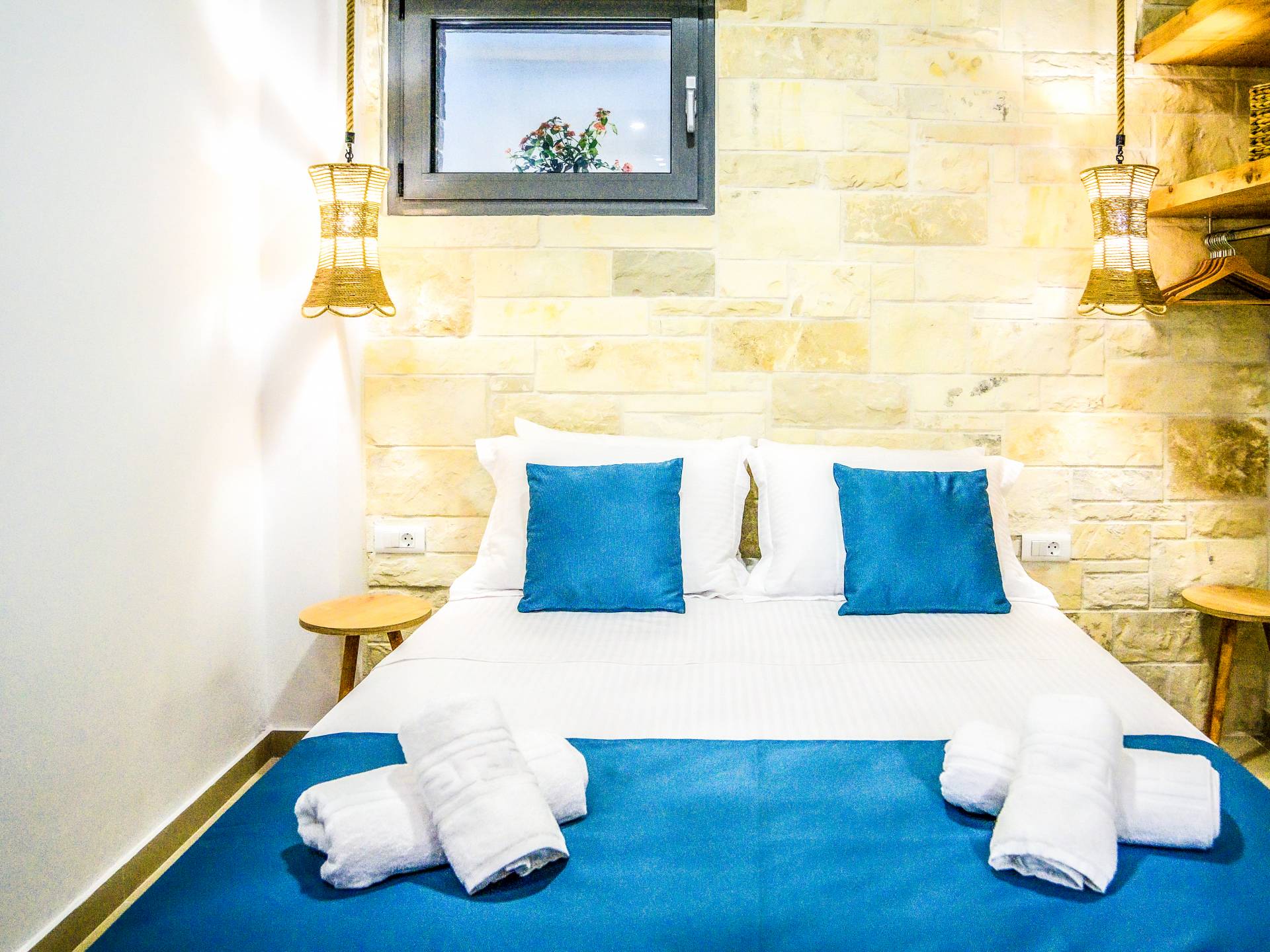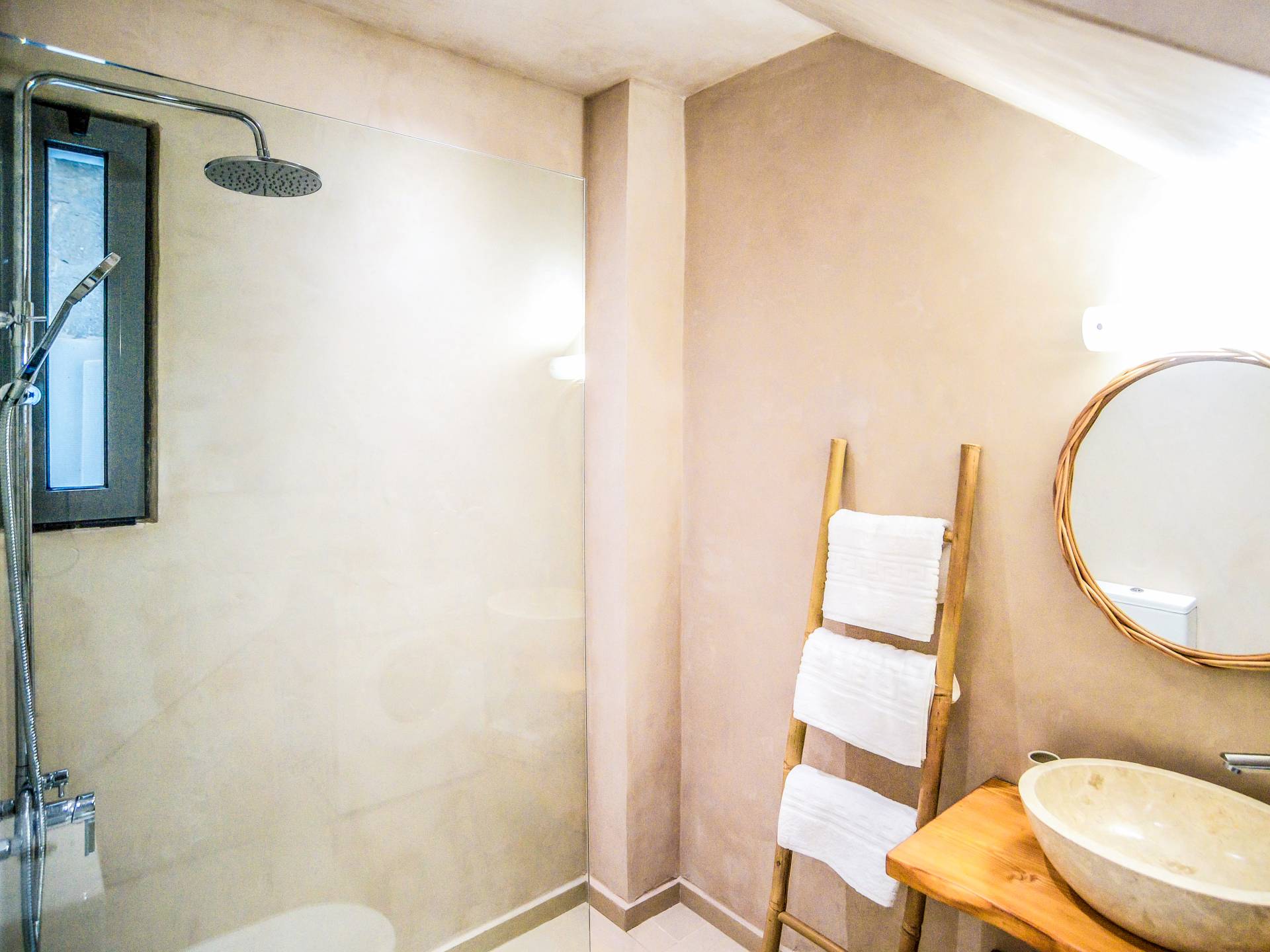 Another internal staircase leads to the top floor attic (level 4), where there is a bedroom with a double size bed, a small bedroom with a single bed, and a bathroom with a shower. All these rooms are fully air-conditioned. Lying on your bed and looking through the window the view seems like painting.