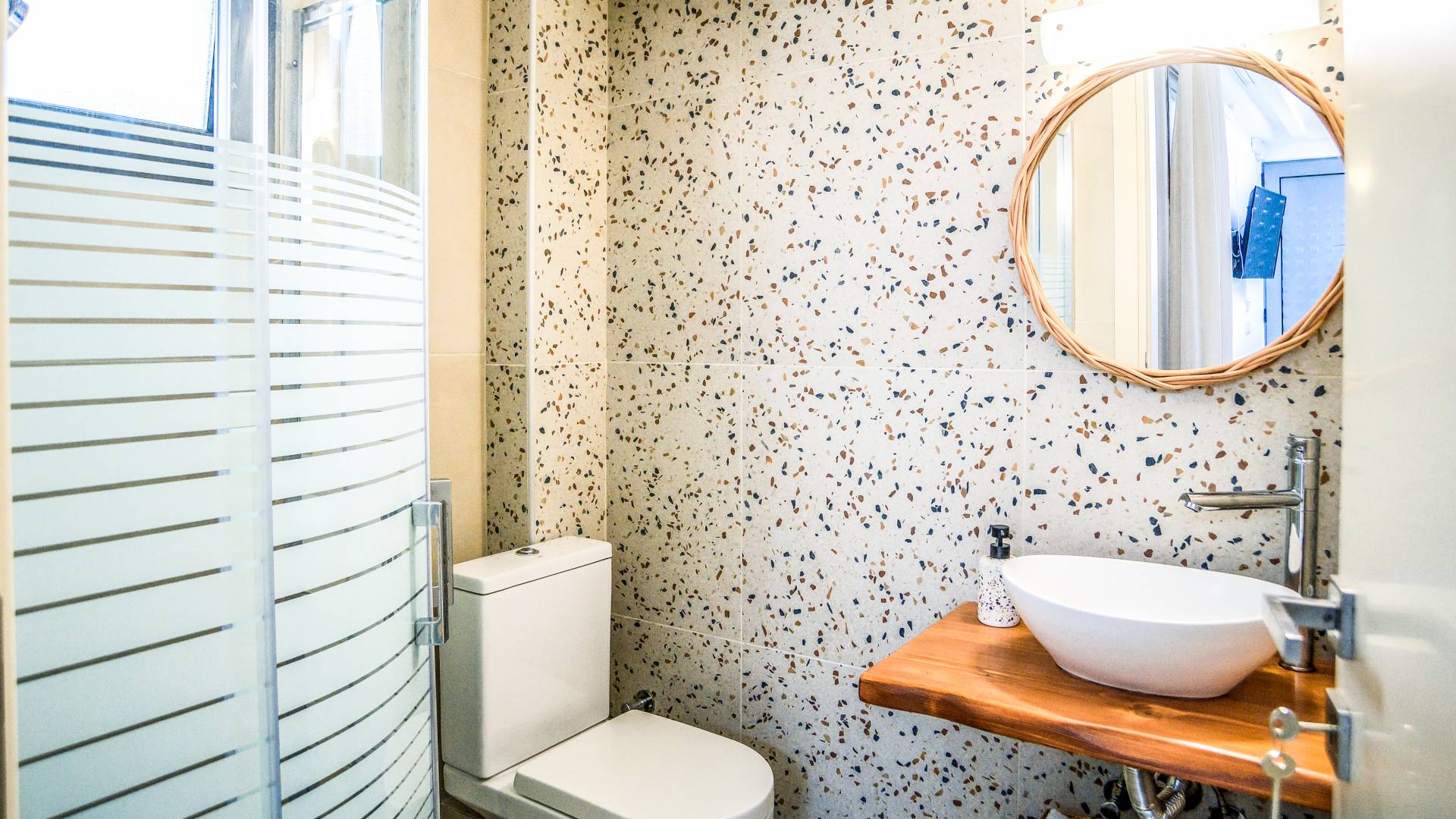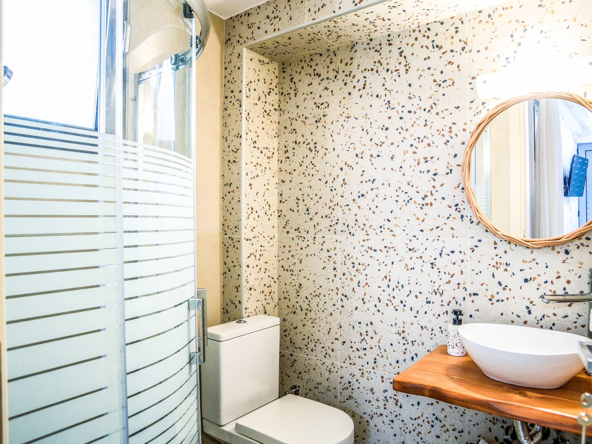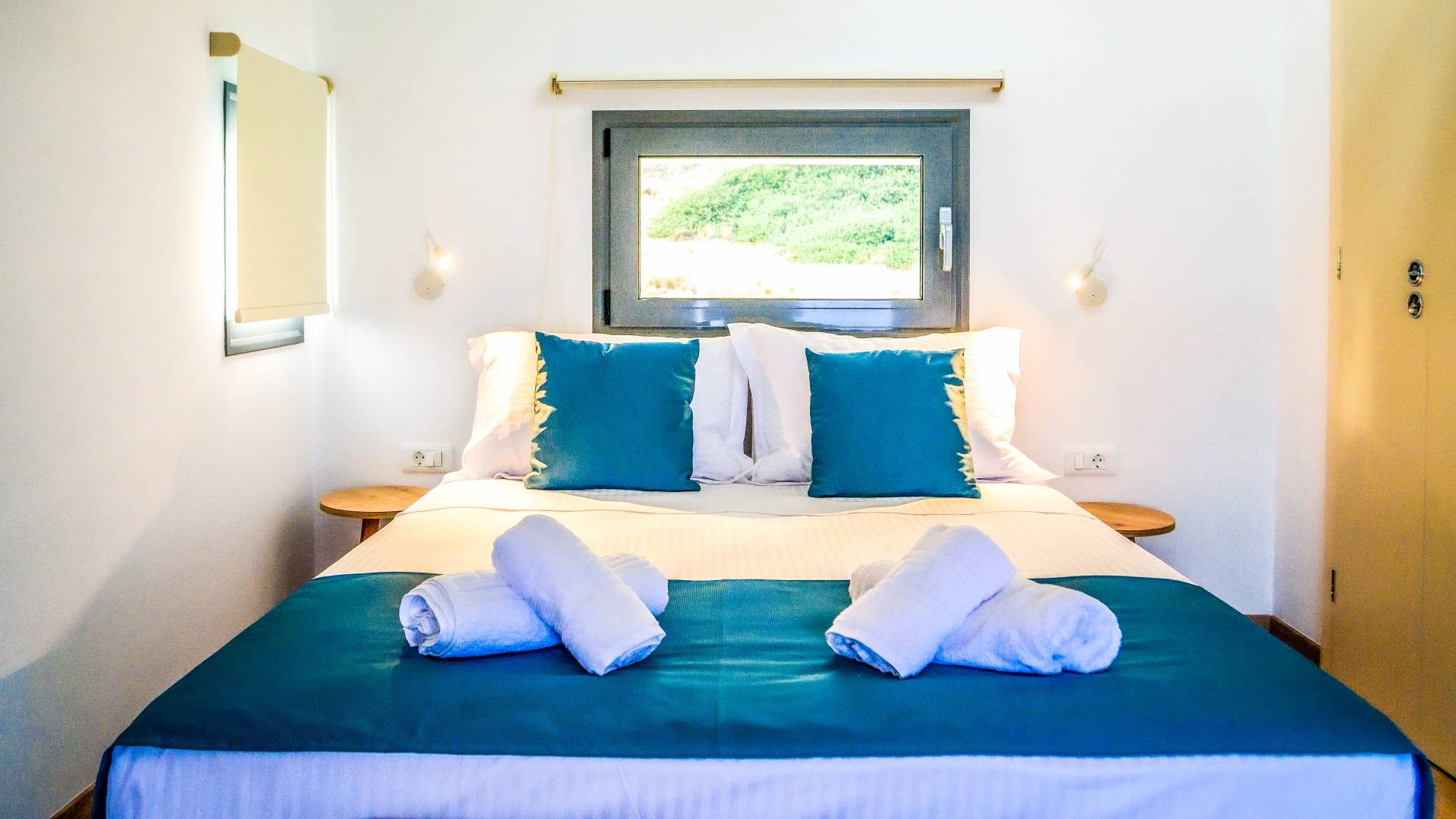 Another internal staircase leads to the top floor attic (level 4), where there is a bedroom with a double size bed, a small bedroom with a single bed, and a bathroom with a shower. All these rooms are fully air-conditioned. Lying on your bed and looking through the window the view seems like painting.
