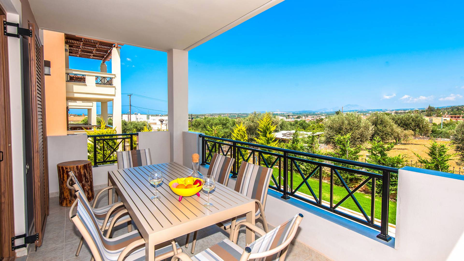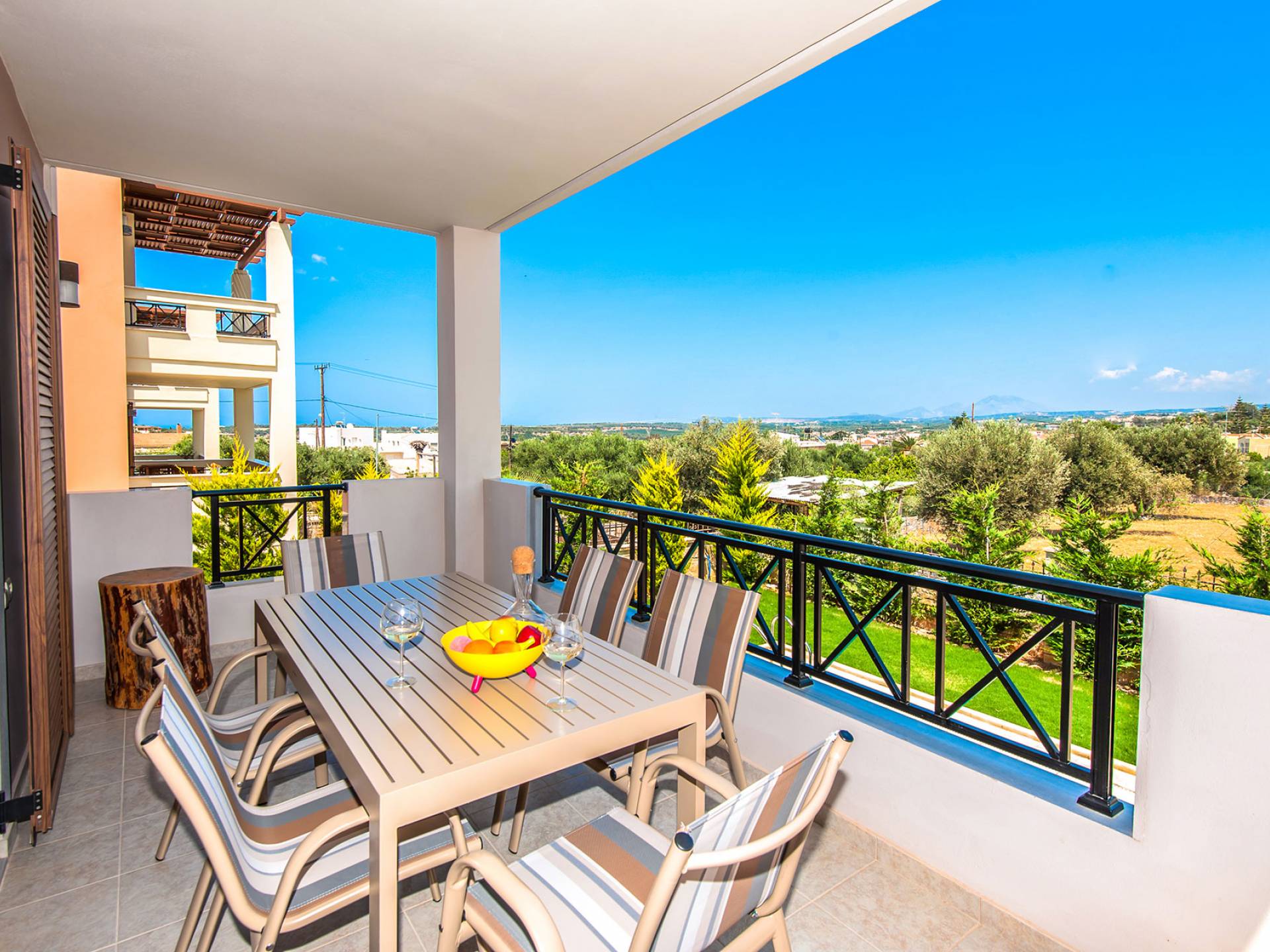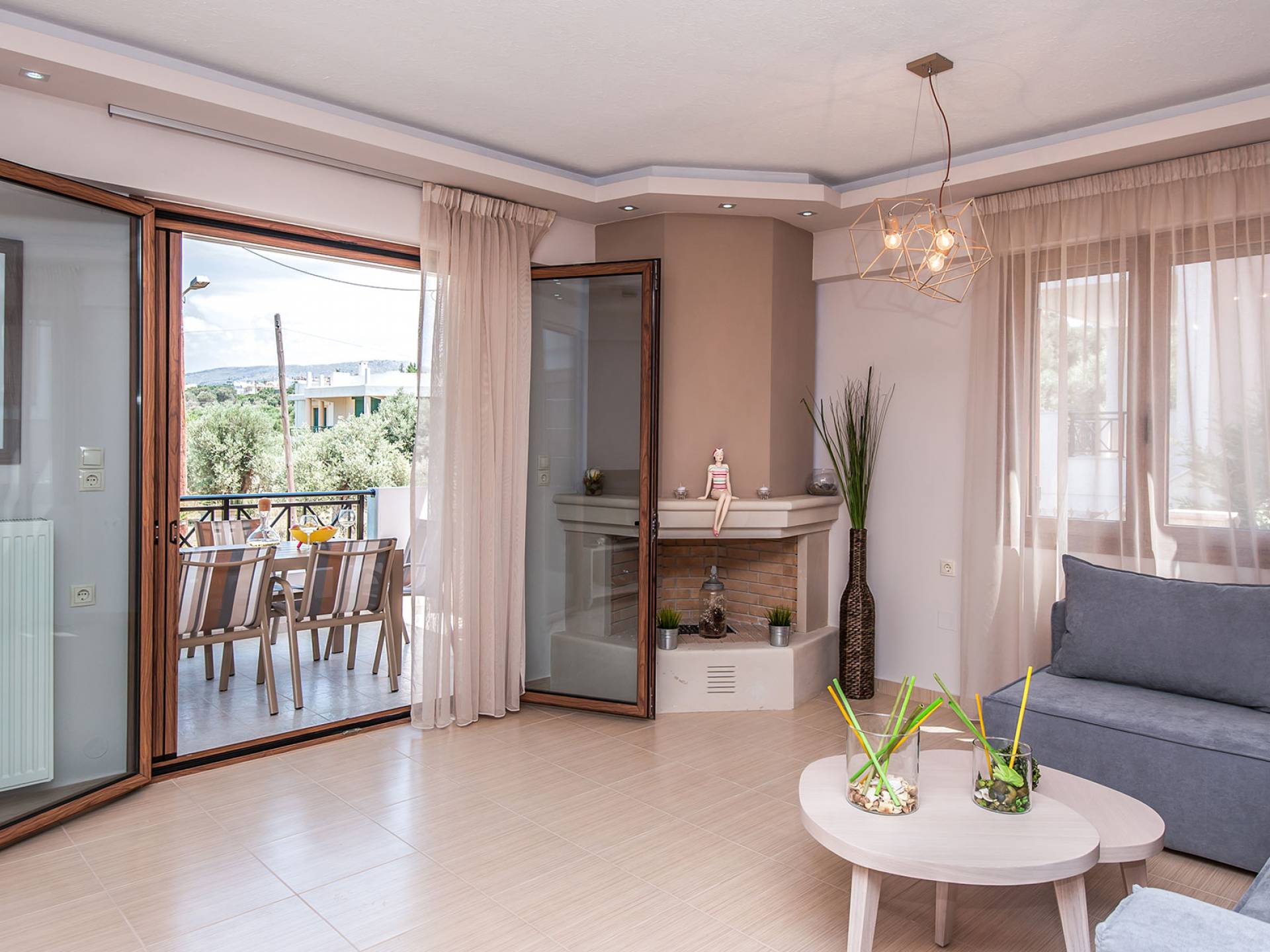 Hana Villa Crete ist auf einem Feld am Eingang des Dorfes Adele gebaut, umgeben von Olivenhainen, und verbindet aufgrund ihrer Lage einen ruhigen und erholsamen Urlaub mit allen Grundbedürfnissen in unmittelbarer Nähe. Eingebaute moderne Architektur, 175 qm groß und bietet Platz für bis zu 6 Personen. Im Erdgeschoss befindet sich ein geräumiges Wohnzimmer mit Kamin, eine offene, voll ausgestattete Küche, ein Esszimmer und ein WC. Das Wohnzimmer führt zu einer Veranda, die mit einem Tisch mit sechs Stühlen für Mahlzeiten im Freien ausgestattet ist.
