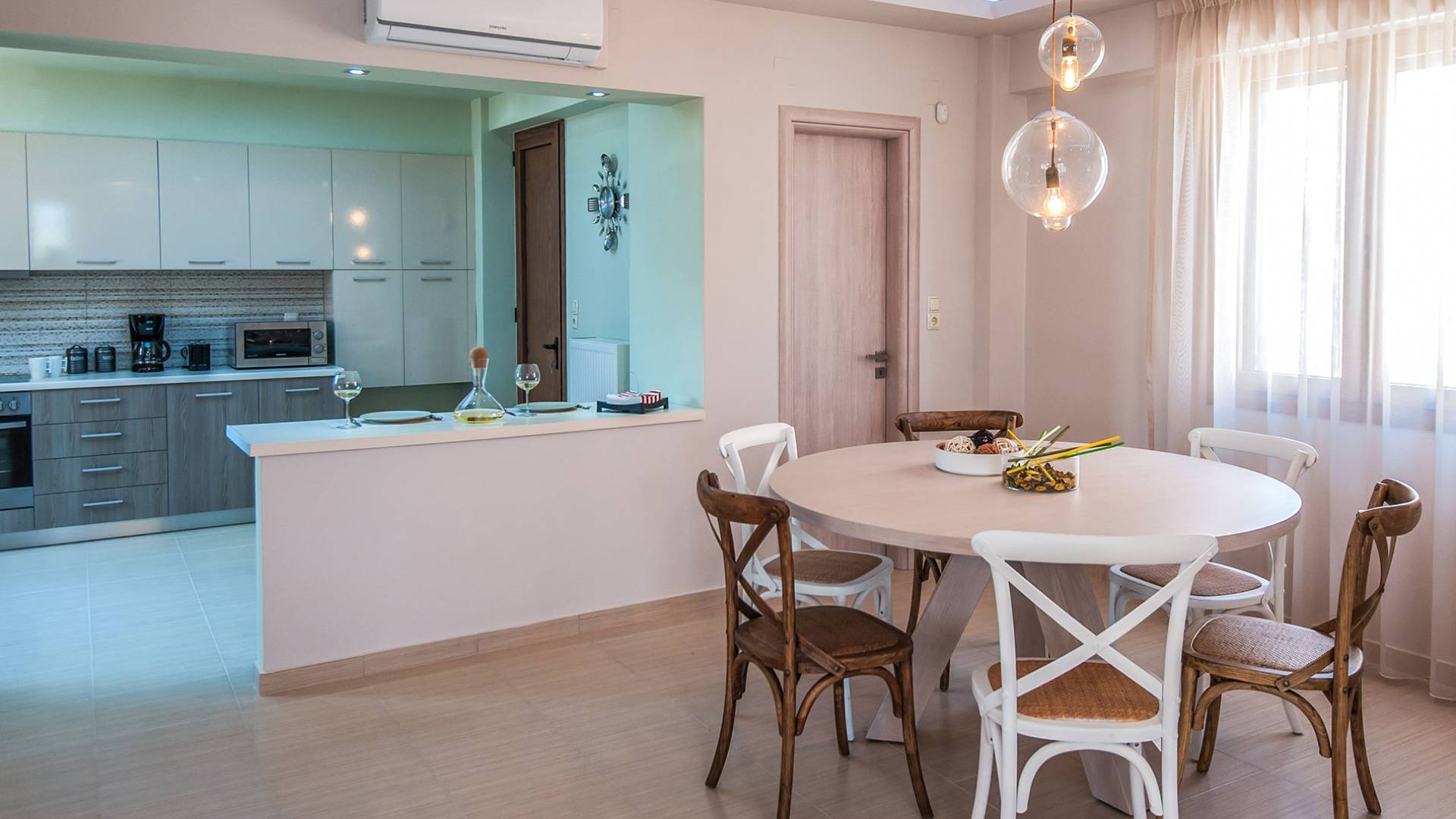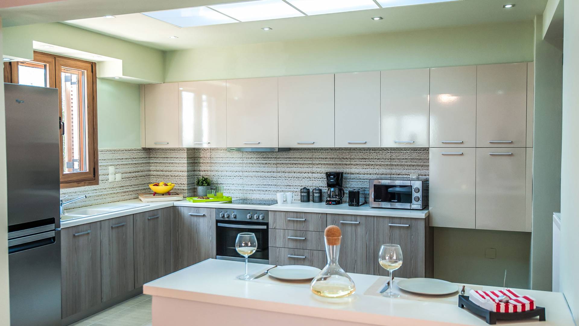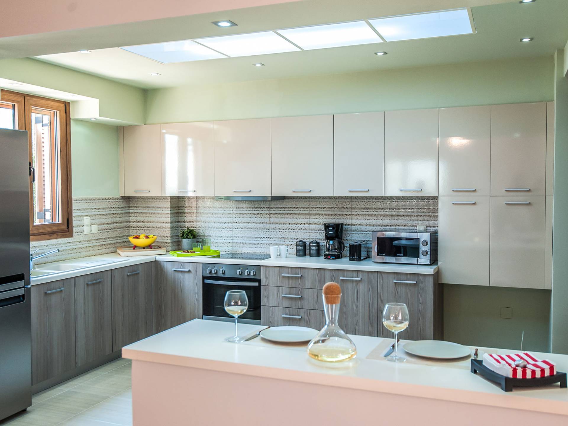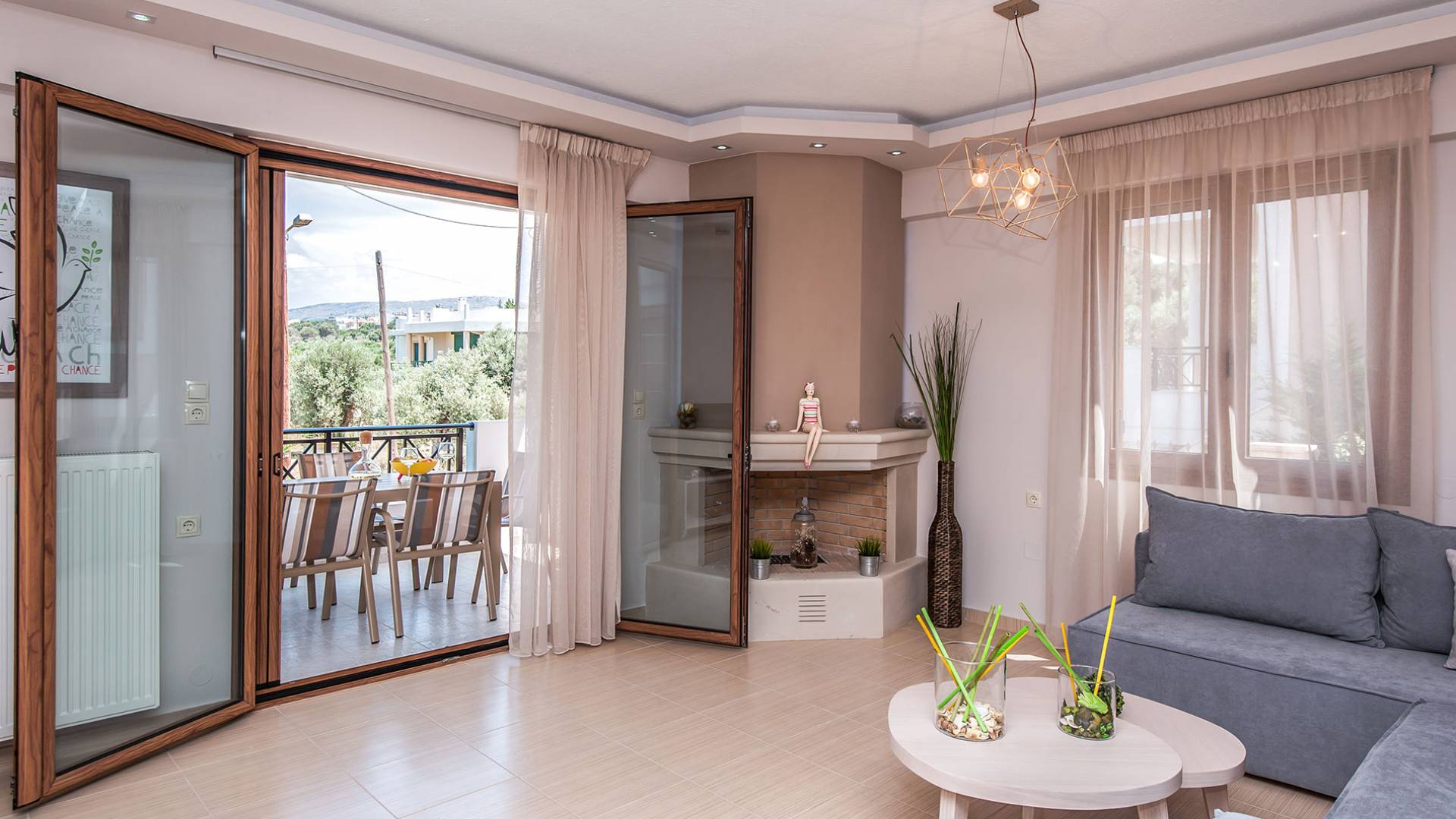 Hana Villa Crete ist auf einem Feld am Eingang des Dorfes Adele gebaut, umgeben von Olivenhainen, und verbindet aufgrund ihrer Lage einen ruhigen und erholsamen Urlaub mit allen Grundbedürfnissen in unmittelbarer Nähe. Eingebaute moderne Architektur, 175 qm groß und bietet Platz für bis zu 6 Personen. Im Erdgeschoss befindet sich ein geräumiges Wohnzimmer mit Kamin, eine offene, voll ausgestattete Küche, ein Esszimmer und ein WC. Das Wohnzimmer führt zu einer Veranda, die mit einem Tisch mit sechs Stühlen für Mahlzeiten im Freien ausgestattet ist.