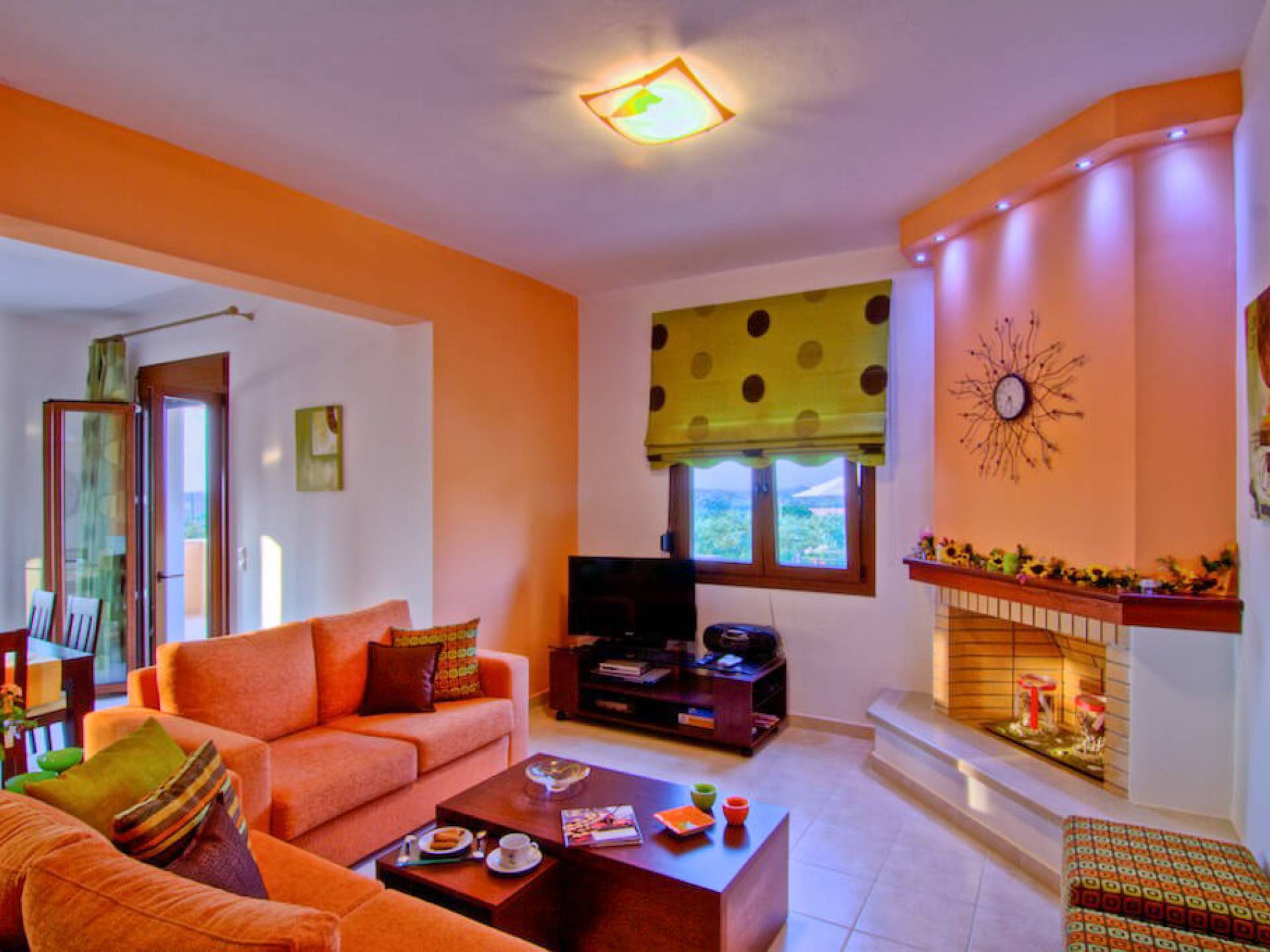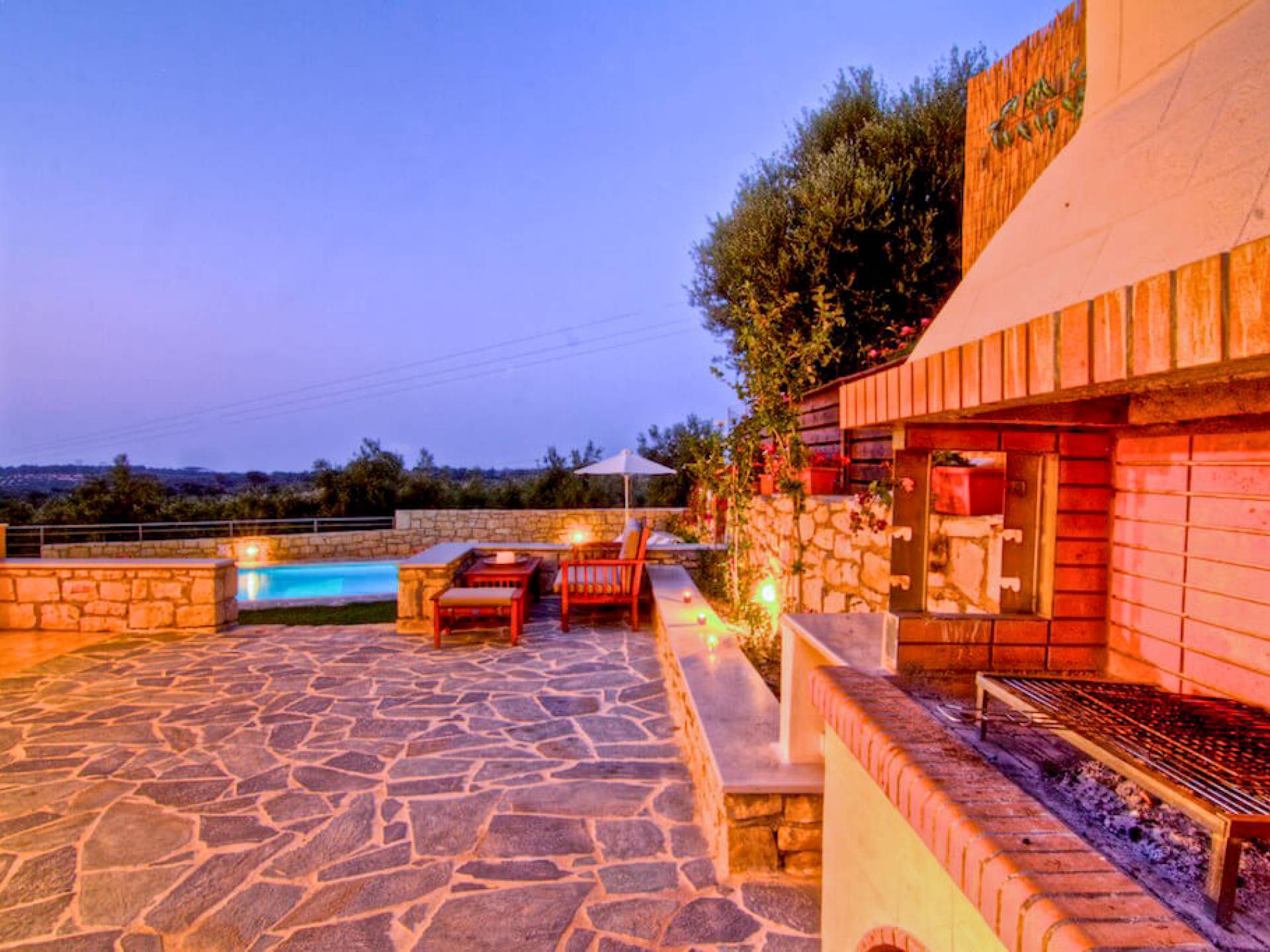 Es verfügt über einen privaten beleuchteten Swimmingpool von 36 m². lange umgeben von Sonnenliegen, Sonnenschirmen in Platten und Rasen, einer Außendusche und einem Grill. Das Erdgeschoss der Villa verfügt über ein Wohnzimmer mit Kamin, ein Esszimmer, eine große voll ausgestattete Küche, ein Badezimmer und zwei große Terrassen mit spektakulärer Aussicht. Im ersten Stock befinden sich drei Schlafzimmer mit großen Kleiderschränken und Badezimmern, zwei davon mit Doppelbett und das andere mit zwei Einzelbetten. Die Schlafzimmer haben auch große Terrassen mit einem atemberaubenden Blick auf einfache Olivenbäume, die kretischen Berge und das kretische Meer. Emilie Villa Rethymno bietet Unterkunft für 6 Personen und bietet alle Einrichtungen und Dienstleistungen, die Ihren Aufenthalt angenehm machen. Darüber hinaus bietet es Platz für ein kleines Kind, da es ein Kinderbett und eine Sitzgelegenheit zum Essen gibt.