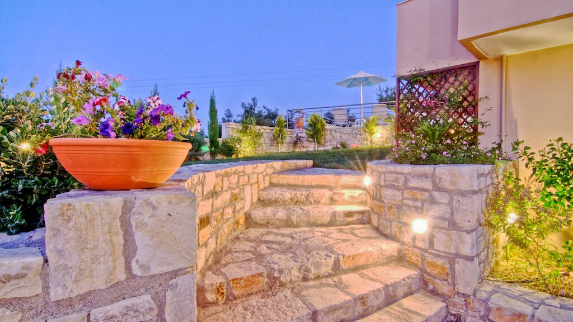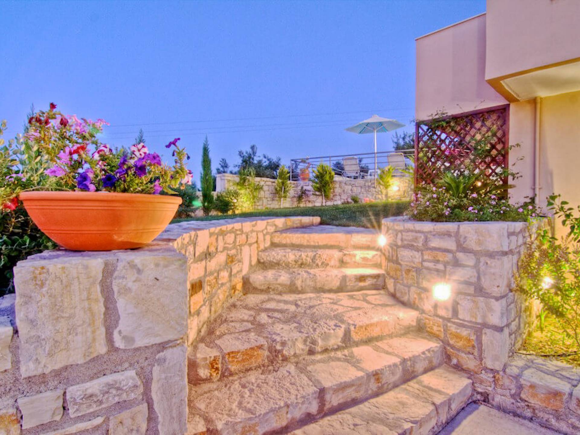 Emilie Villa Rethymno befindet sich im Dorf Agios Dimitrios 10 km von Rethymno entfernt an der Straße zum Kloster Arkadi. Die zentrale Achse, die durch Nordkreta verläuft und die Städte Heraklion und Chania verbindet, ist fast 2 km von der Villa entfernt. Es ist 140 m² groß mit einer Abschleppwagengarage 85 m². Es ist auf einem eigenen Grundstück von 600 qm gebaut. in einem Garten mit Gras, Blumen und Obstbäumen.
