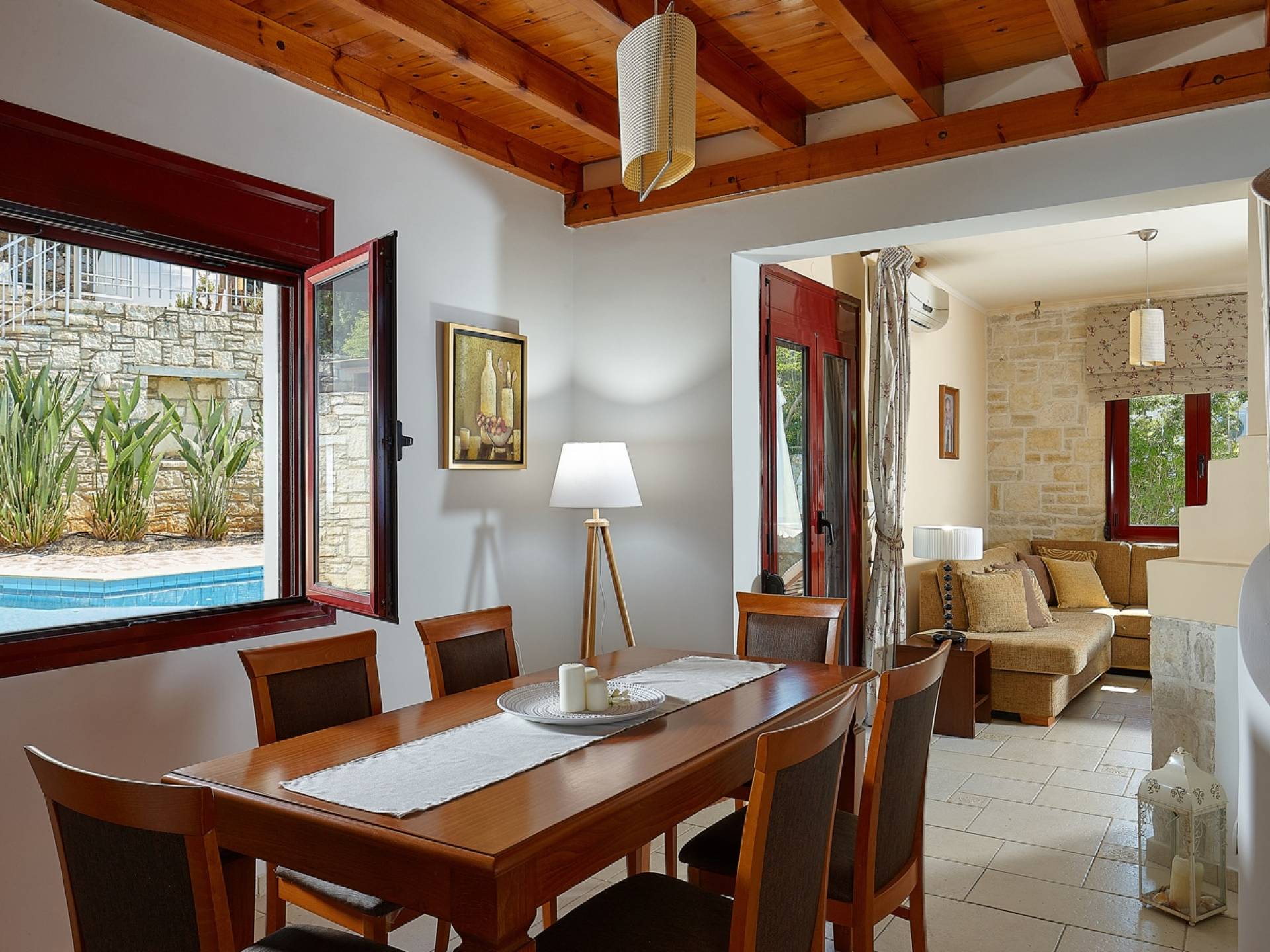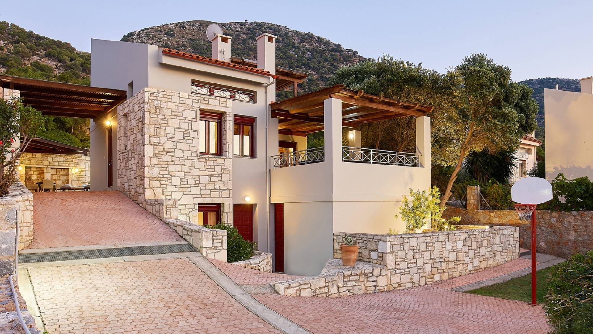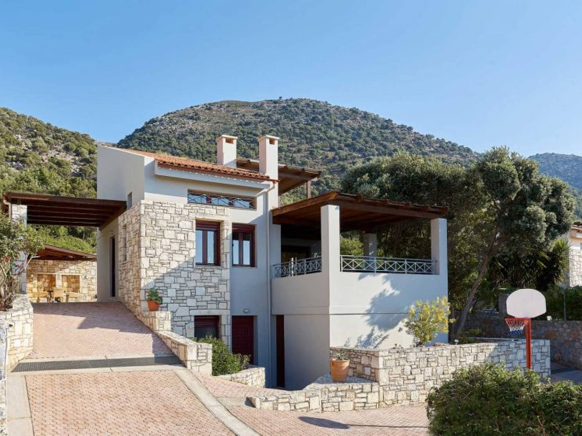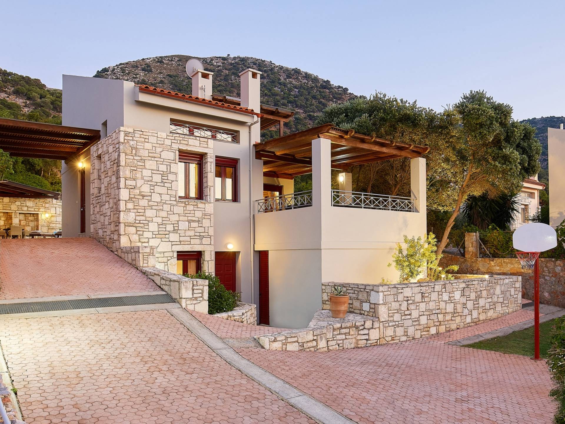 Dioni Villa ist eine Villa im traditionellen Design auf 820,83 m². Landfläche. Es befindet sich in einem eigenen privaten Bereich und bietet eine gemütliche Lounge mit Kamin, eine voll ausgestattete Küche, ein Esszimmer, einen eigenen Holzofen, einen Grill und einen privaten Pool. Dioni Villa Villa Rethymno ist eine Villa mit drei Schlafzimmern und ist ideal für einen Familienurlaub, da sie unter anderem über einen flachen Außenbereich mit Rasen und einen großen stabilen Basketballkorb verfügt und die Möglichkeit bietet, den Zugang kleiner Kinder zum Pool zu beschränken. wenn benötigt. Außerdem umfasst es einen privaten Parkplatz.