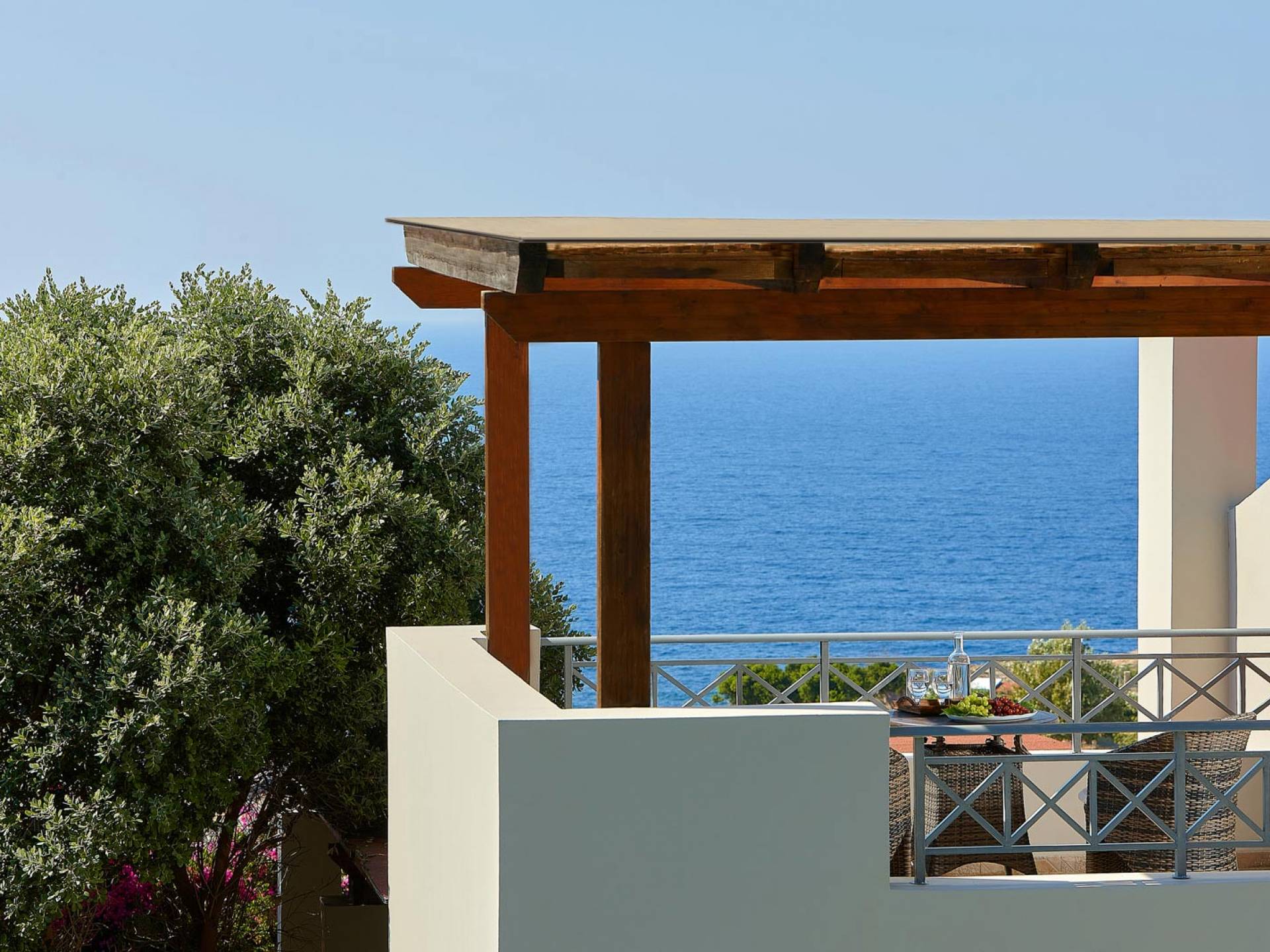 Dioni Villa Die Villa Rethymno gehört zu einem neuen Villenkomplex, der aus vier einzigartig gestalteten Luxusvillen besteht. Es liegt in der Nähe der nördlichen Verkehrsader Kretas, 39,5 km von Heraklion und 37,5 km von Rethymno entfernt. Alle Villen befinden sich in einer ausgewählten amphitheatralischen Position mit Blick auf das klare blaue Meer auf der einen Seite und den grünen Berg auf der anderen Seite.