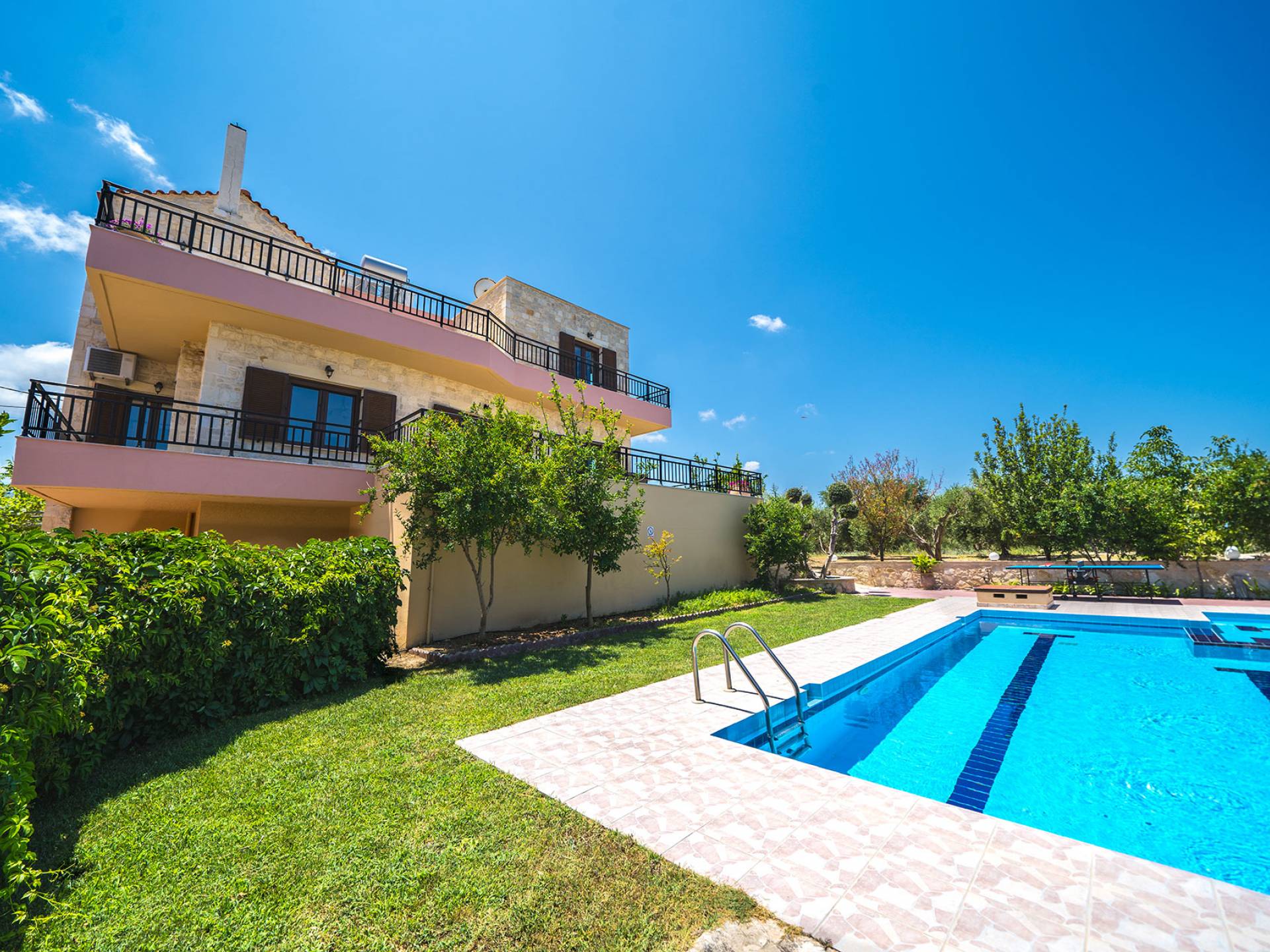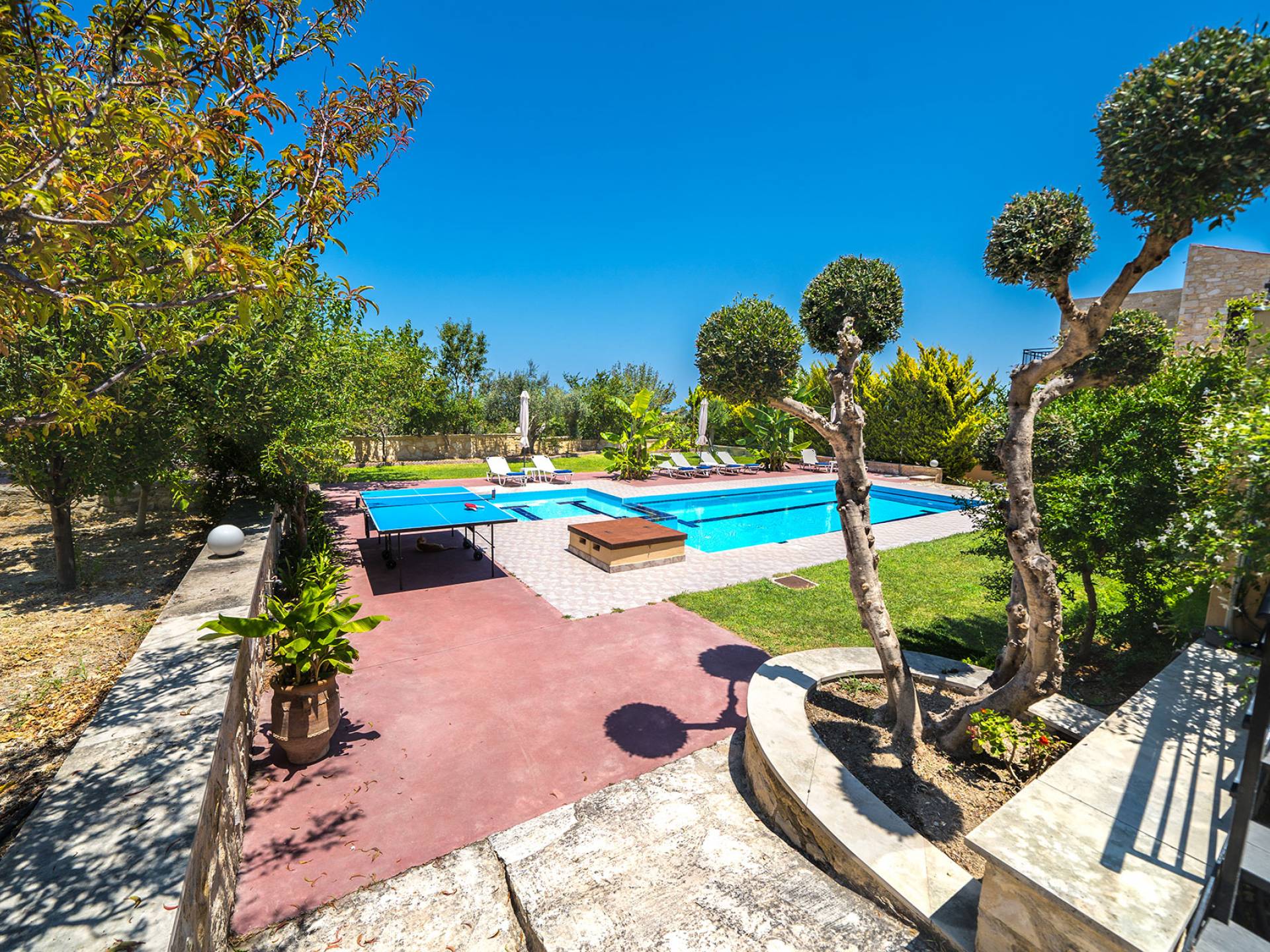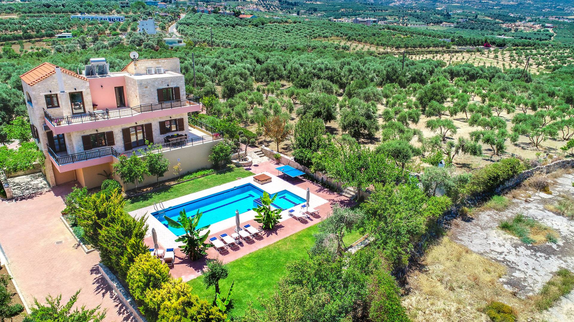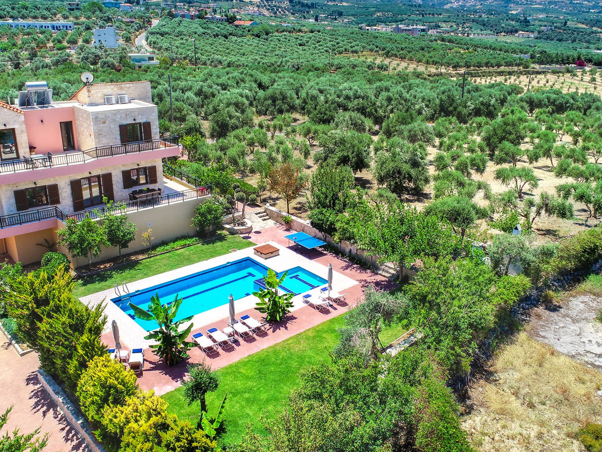 Louloudaki Villa 1 Kreta, erbaut auf einem 12000 m2 großen Bauernhof, nur zehn Minuten vom Zentrum von Rethymnon und zwei Kilometer vom Meer entfernt, ist das ultimative Ziel für diejenigen, die einen wirklich unvergesslichen Aufenthalt auf Kreta genießen möchten. Umgeben von Olivenhainen und mit Blick auf das Meer und die kretischen Berge, bilden Sie eine ausgewogene natürliche Umgebung und bieten den Gästen das ganze Jahr über das Gefühl von Ruhe und Entspannung.
