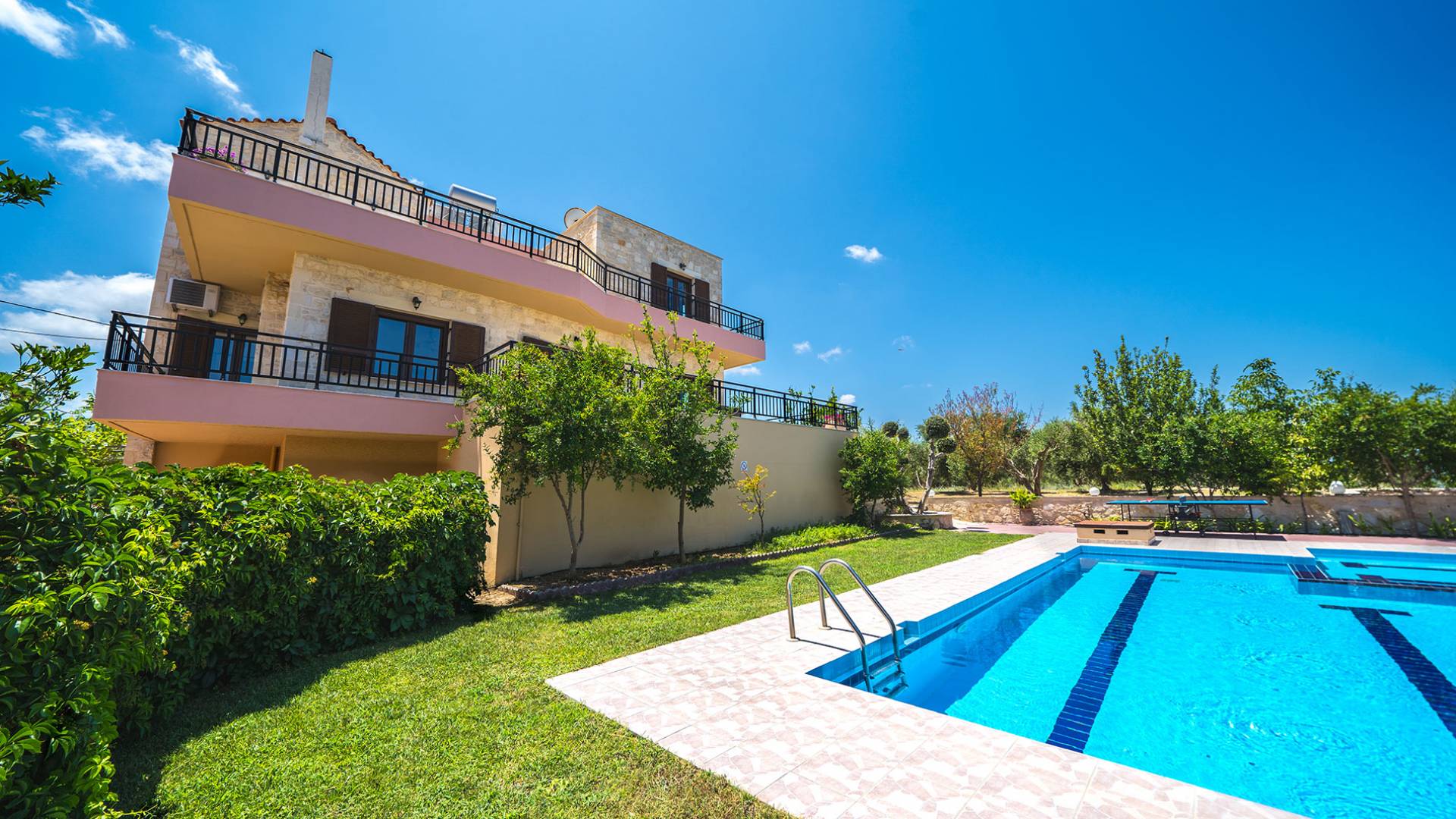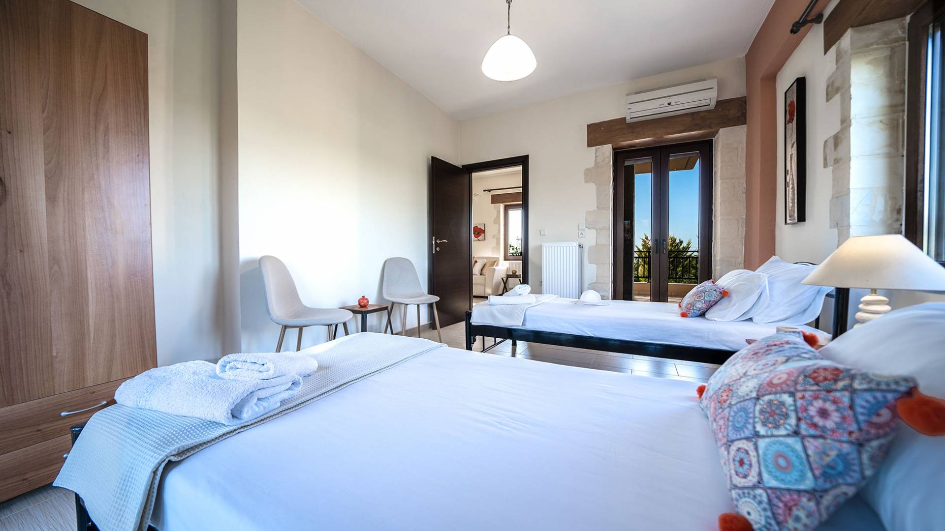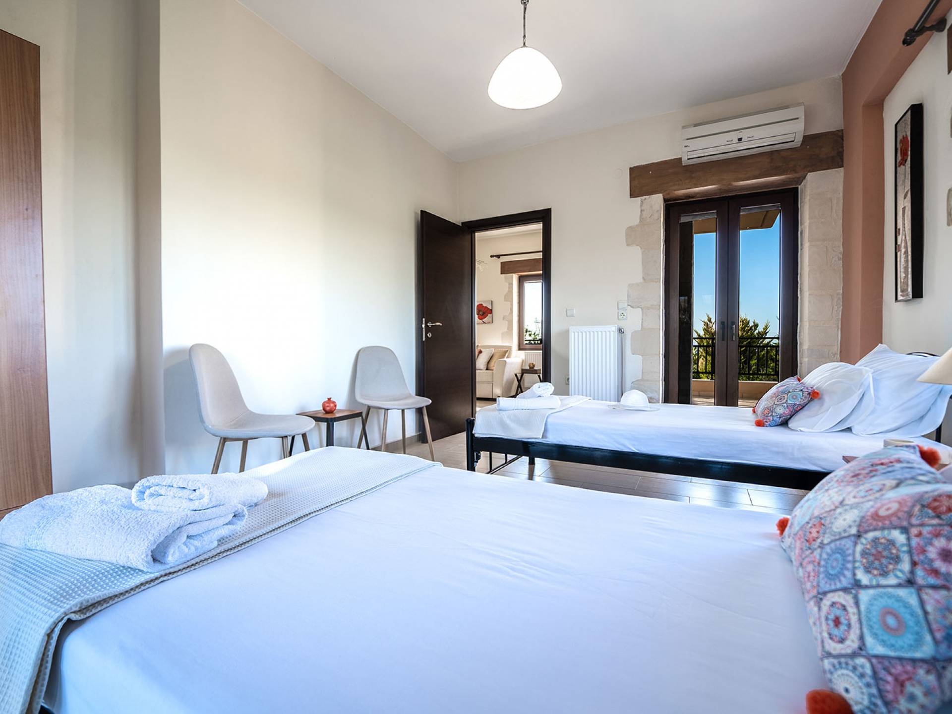 Louloudaki Villa 1 Kreta, erbaut auf einem 12000 m2 großen Bauernhof, nur zehn Minuten vom Zentrum von Rethymnon und zwei Kilometer vom Meer entfernt, ist das ultimative Ziel für diejenigen, die einen wirklich unvergesslichen Aufenthalt auf Kreta genießen möchten. Umgeben von Olivenhainen und mit Blick auf das Meer und die kretischen Berge, bilden Sie eine ausgewogene natürliche Umgebung und bieten den Gästen das ganze Jahr über das Gefühl von Ruhe und Entspannung.