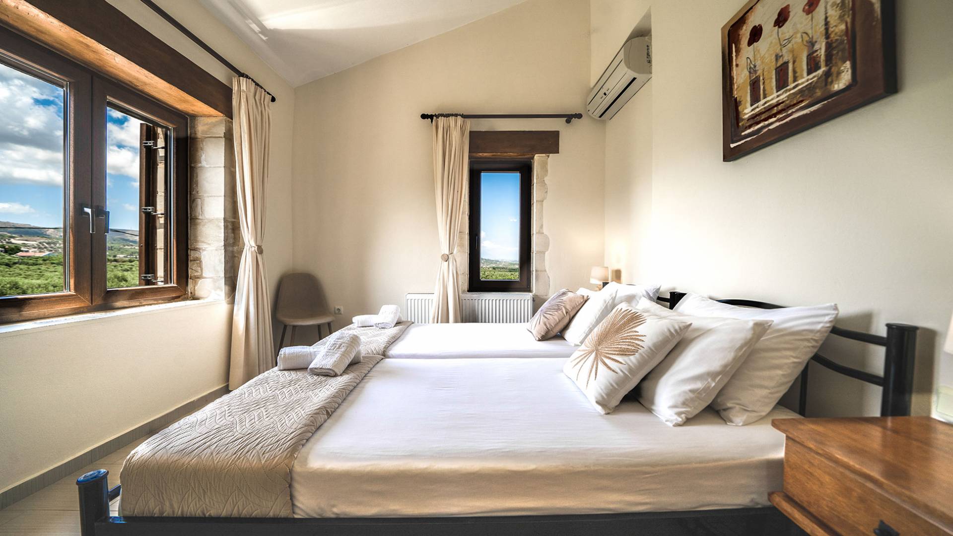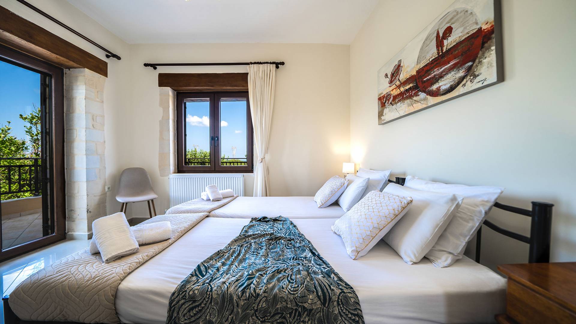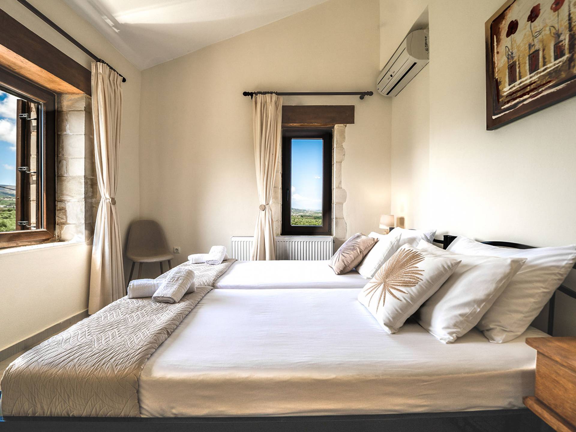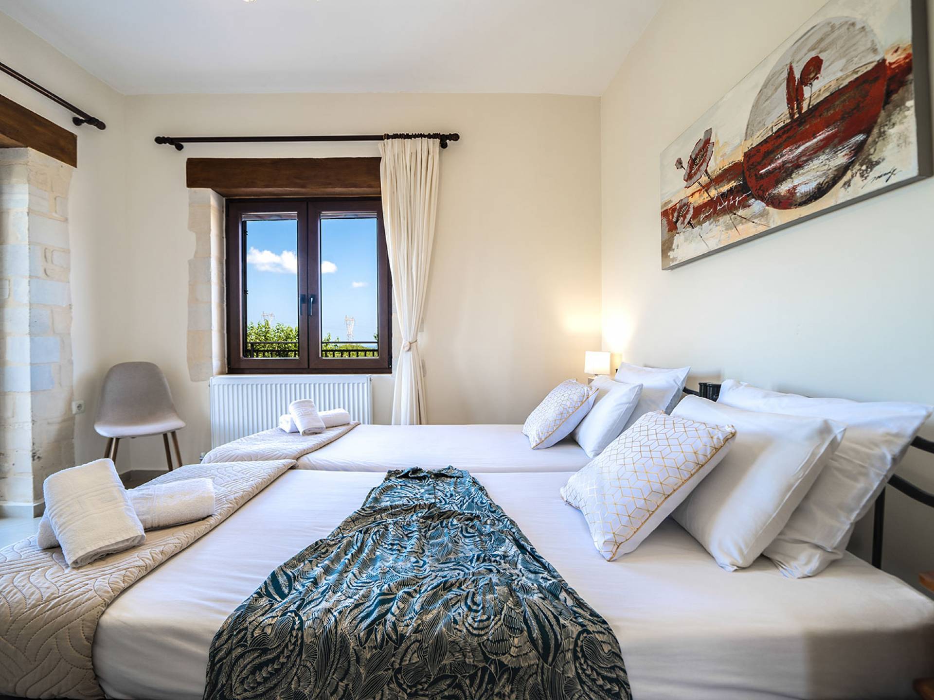 Louloudaki Villa 1 Kreta, erbaut auf einem 12000 m2 großen Bauernhof, nur zehn Minuten vom Zentrum von Rethymnon und zwei Kilometer vom Meer entfernt, ist das ultimative Ziel für diejenigen, die einen wirklich unvergesslichen Aufenthalt auf Kreta genießen möchten. Umgeben von Olivenhainen und mit Blick auf das Meer und die kretischen Berge, bilden Sie eine ausgewogene natürliche Umgebung und bieten den Gästen das ganze Jahr über das Gefühl von Ruhe und Entspannung.