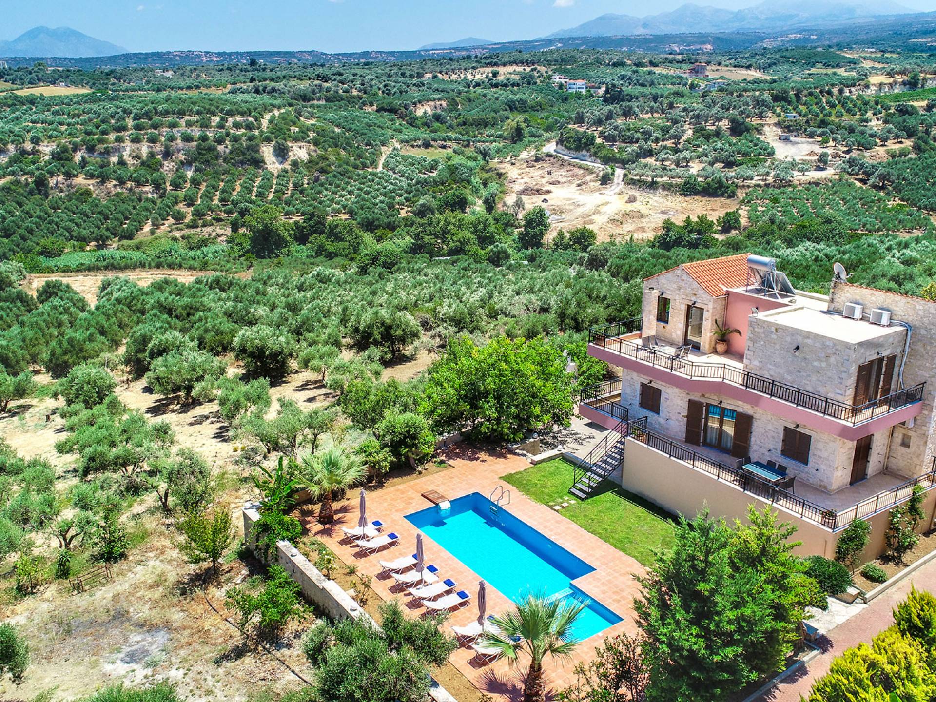 Louloudaki Villa 2 Crete, erbaut auf einem 12000 m2 großen Bauernhof, nur zehn Minuten vom Zentrum von Rethymnon und zwei Kilometer vom Meer entfernt, ist das ultimative Ziel für diejenigen, die einen wirklich unvergesslichen Aufenthalt auf Kreta genießen möchten. Umgeben von Olivenhainen und mit Blick auf das Meer und die kretischen Berge bilden sie eine ausgewogene natürliche Umgebung und bieten den Gästen das ganze Jahr über das Gefühl von Ruhe und Entspannung.