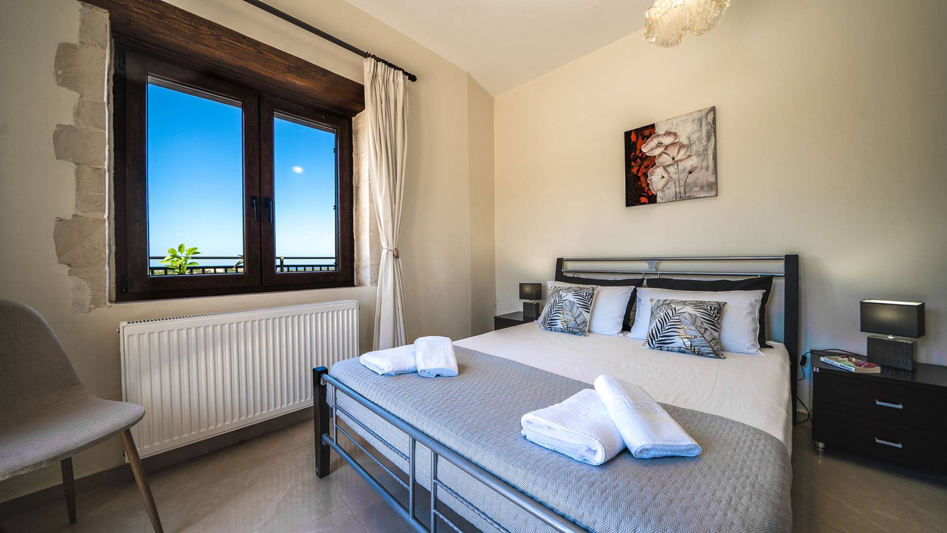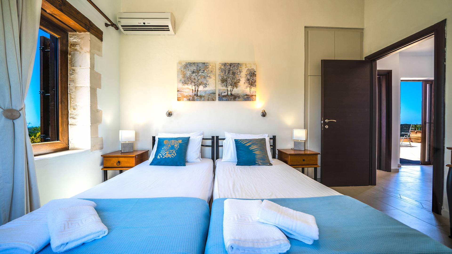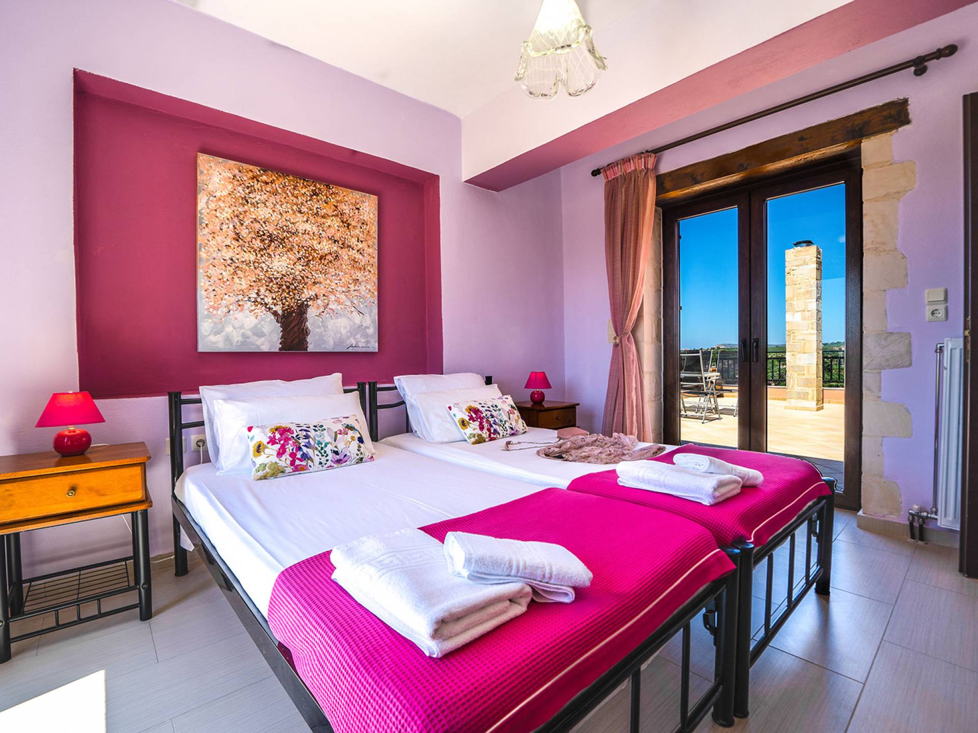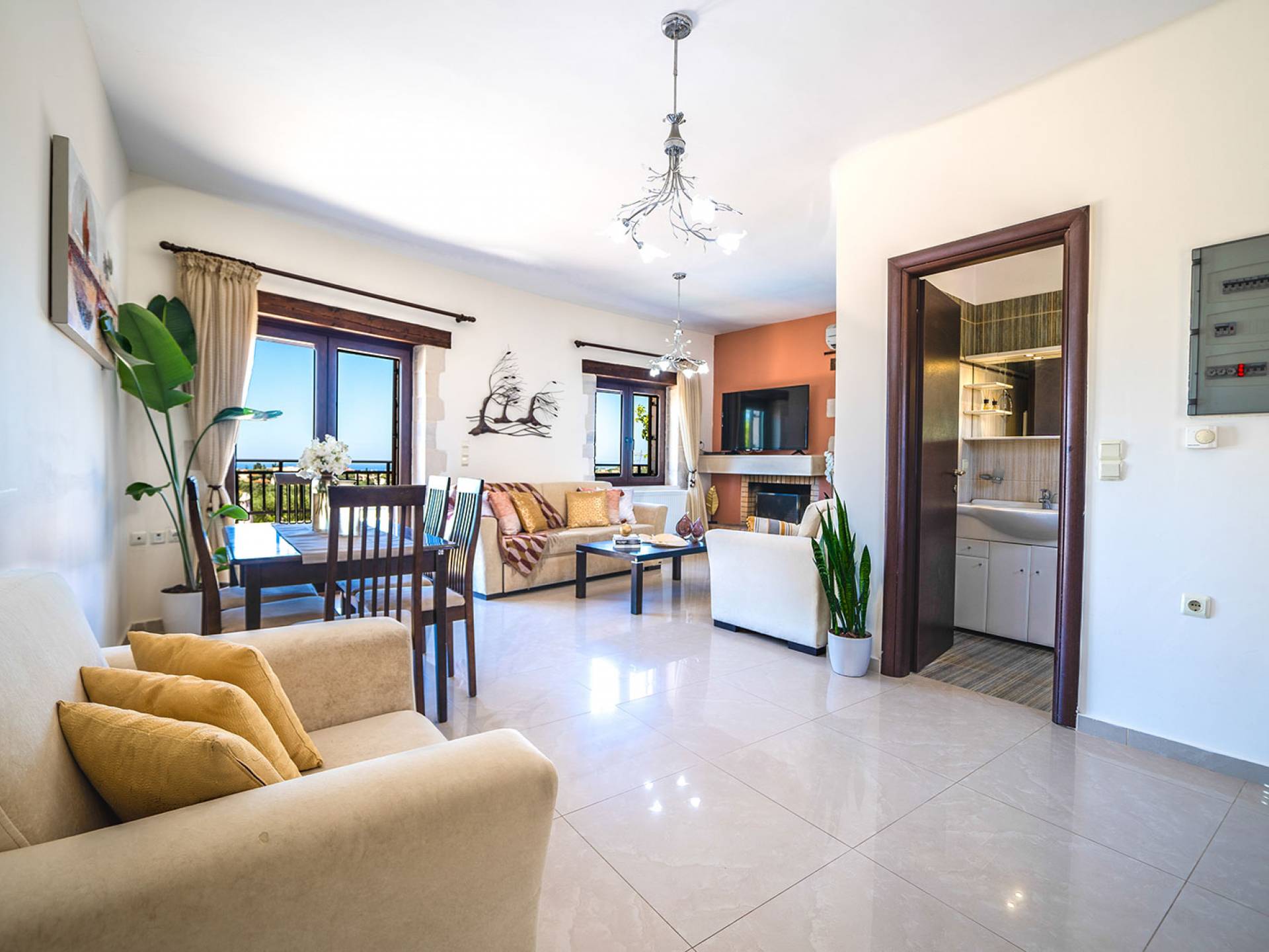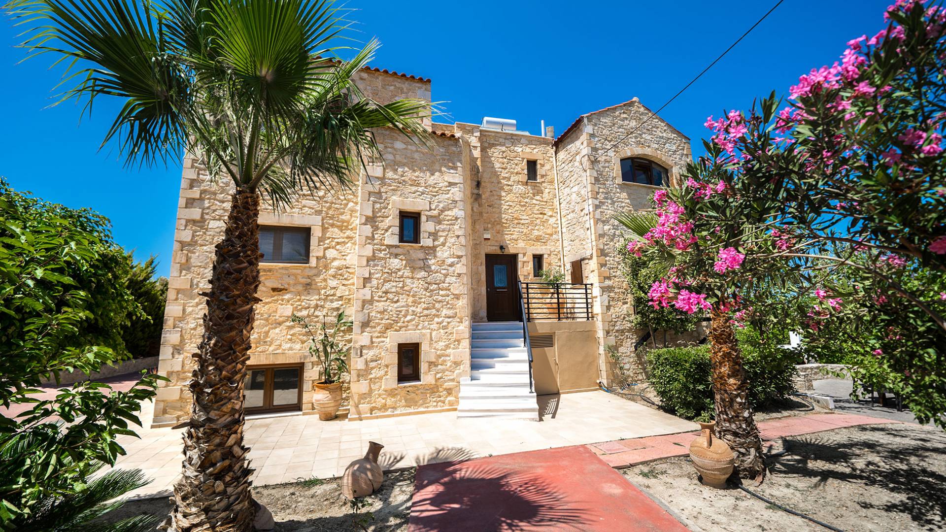 Jede Villa besteht aus einem geräumigen Interieur, vier Doppelzimmern, einem Wohnzimmer, einem Esszimmer, einem traditionellen Kamin, zwei Badezimmern, einer voll ausgestatteten Küche, einem halben Außenbereich und großen Veranden. Alle Zimmer haben einen Gesamtblick auf die einzigartige kretische Landschaft. Großer Wert wird auf die Dekoration gelegt, die einfachen, modernen Linien folgt, die variieren, mit persönlichen Akzenten, die in jeder Villa unterschiedlich sind, um sie einzigartig zu machen. Die Umgebung beider Villen ist von einem Garten mit Rasen, Blumenbeeten mit bunten Blumen und einem privaten Swimmingpool umgeben und bietet Möglichkeiten zum Entspannen und Wohlfühlen. Jede Villa hat einen eigenen Grill für unvergessliche Grillabende.