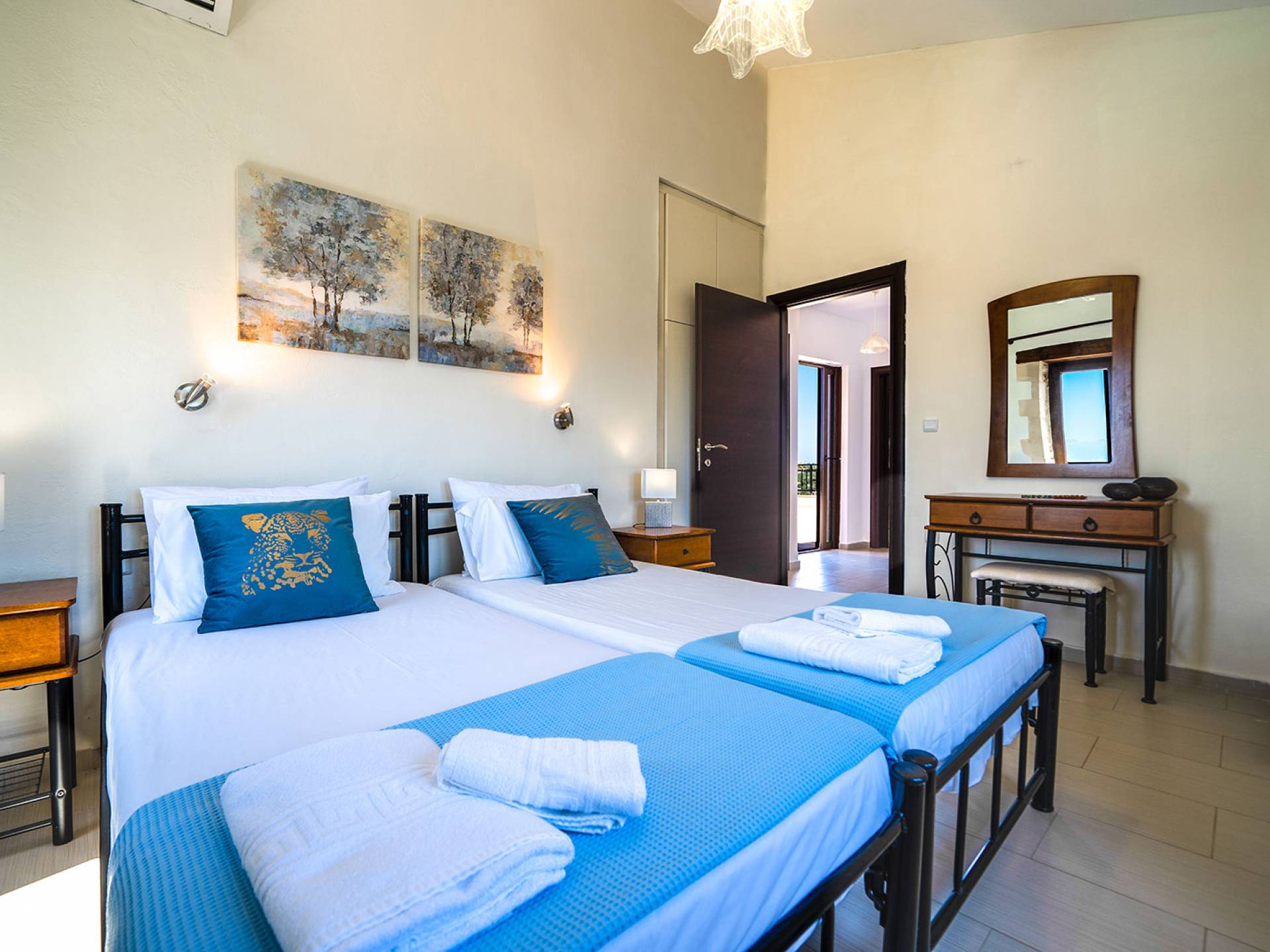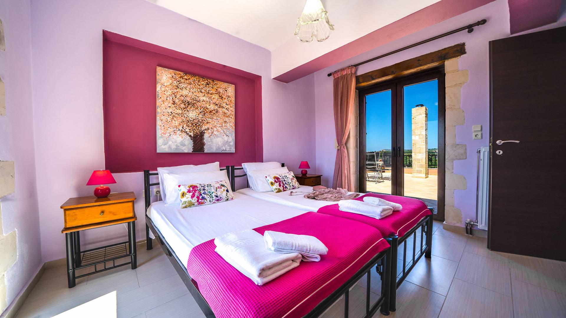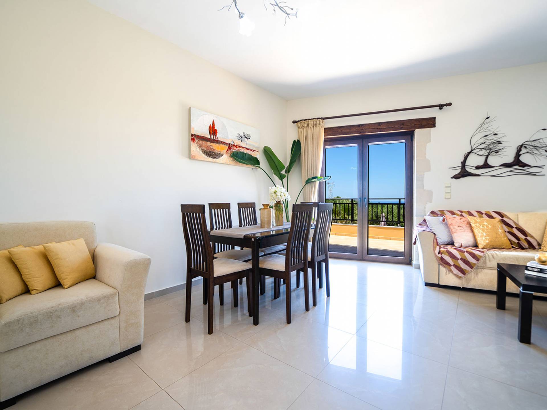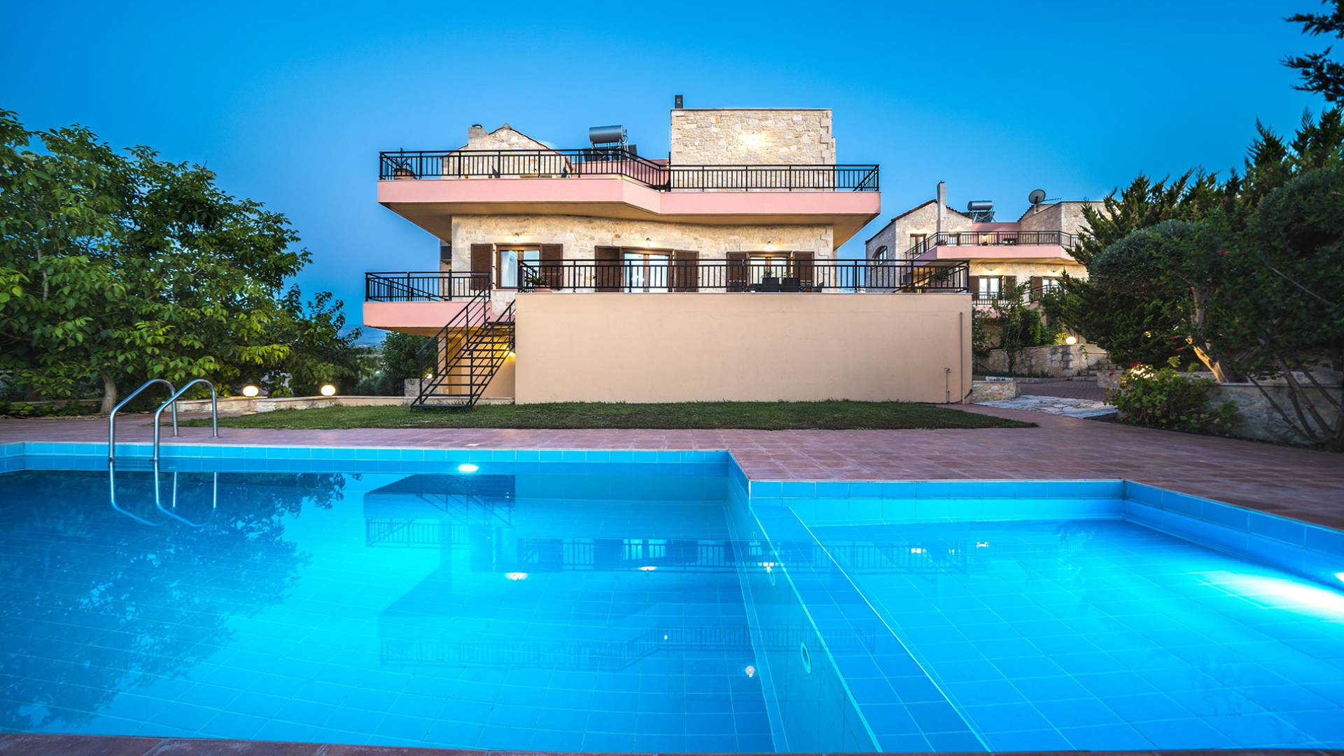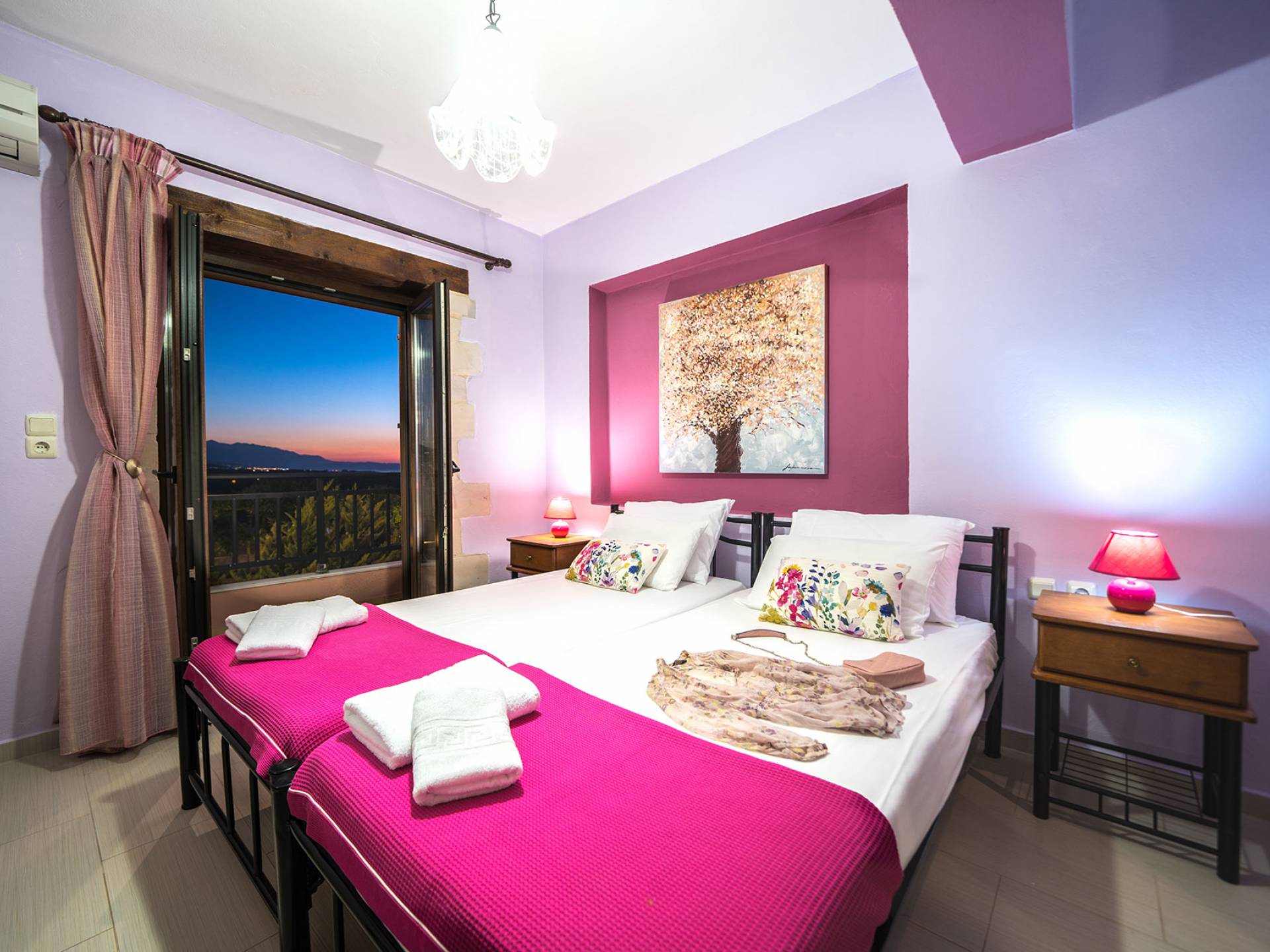 Jede Villa besteht aus einem geräumigen Interieur, vier Doppelzimmern, einem Wohnzimmer, einem Esszimmer, einem traditionellen Kamin, zwei Badezimmern, einer voll ausgestatteten Küche, einem halben Außenbereich und großen Veranden. Alle Zimmer haben einen Gesamtblick auf die einzigartige kretische Landschaft. Großer Wert wird auf die Dekoration gelegt, die einfachen, modernen Linien folgt, die variieren, mit persönlichen Akzenten, die in jeder Villa unterschiedlich sind, um sie einzigartig zu machen. Die Umgebung beider Villen ist von einem Garten mit Rasen, Blumenbeeten mit bunten Blumen und einem privaten Swimmingpool umgeben und bietet Möglichkeiten zum Entspannen und Wohlfühlen. Jede Villa hat einen eigenen Grill für unvergessliche Grillabende.
