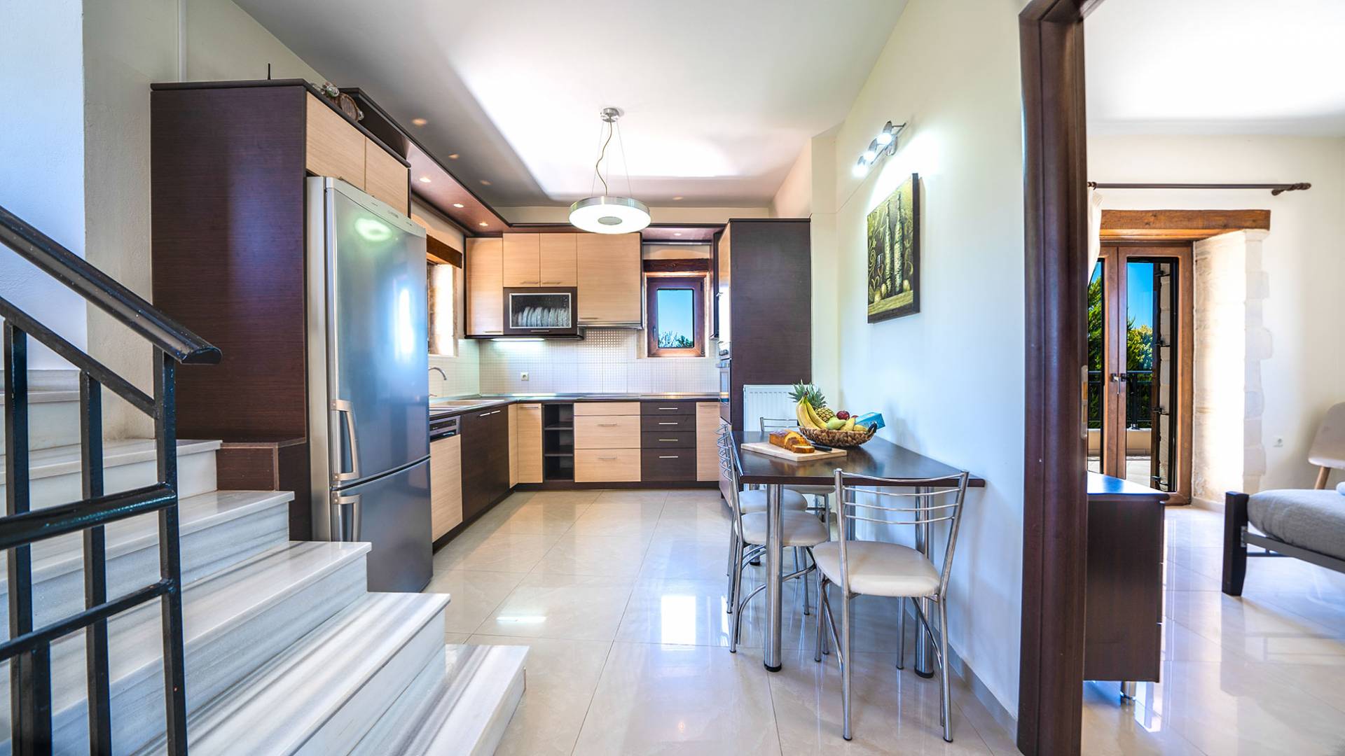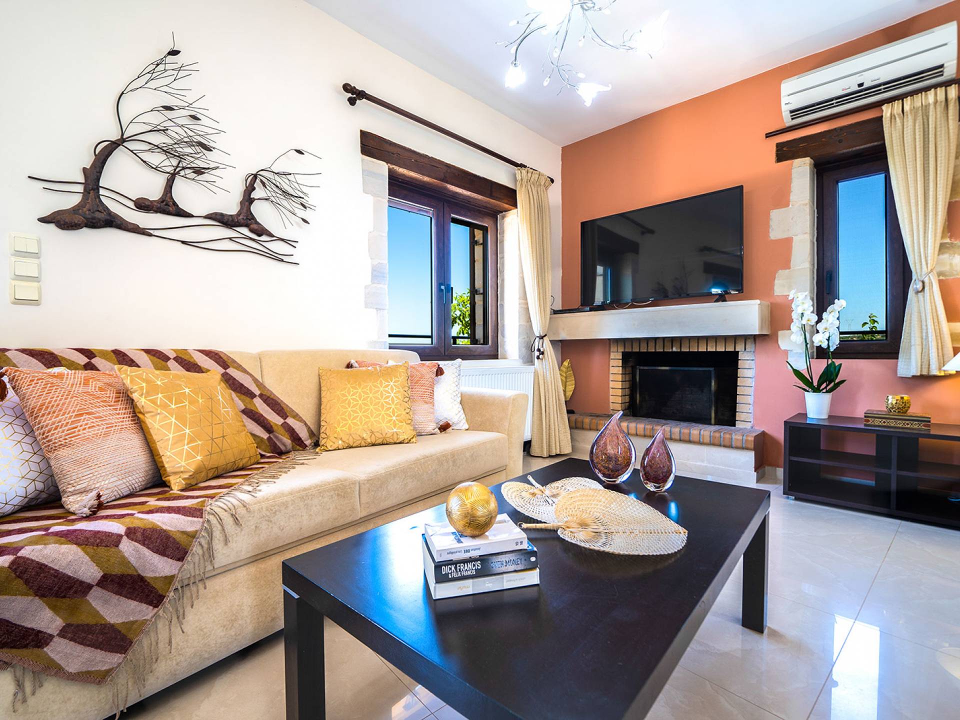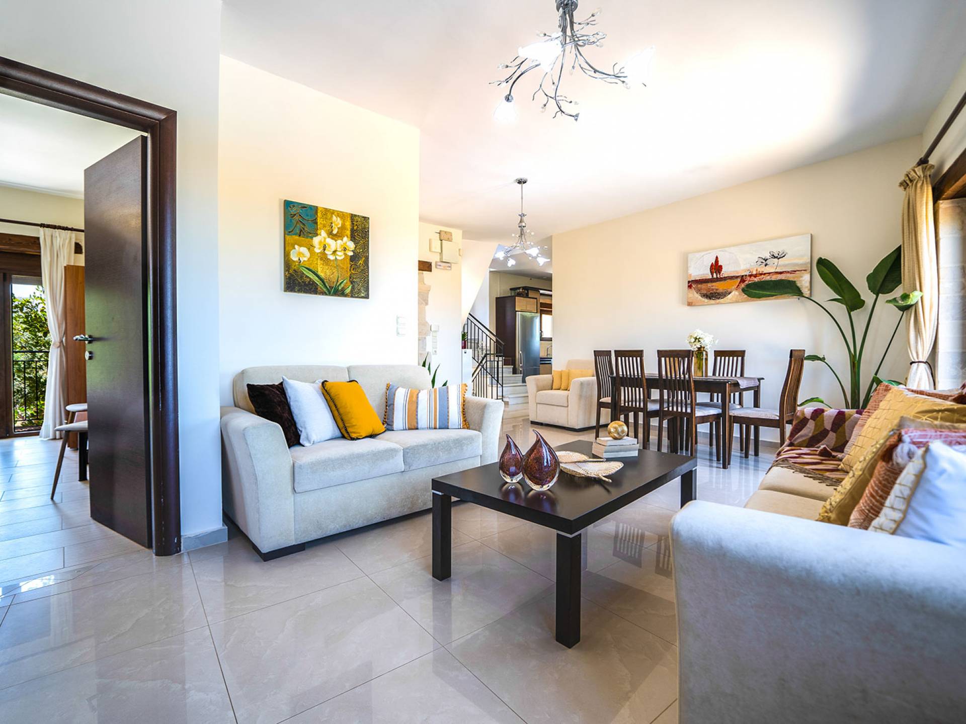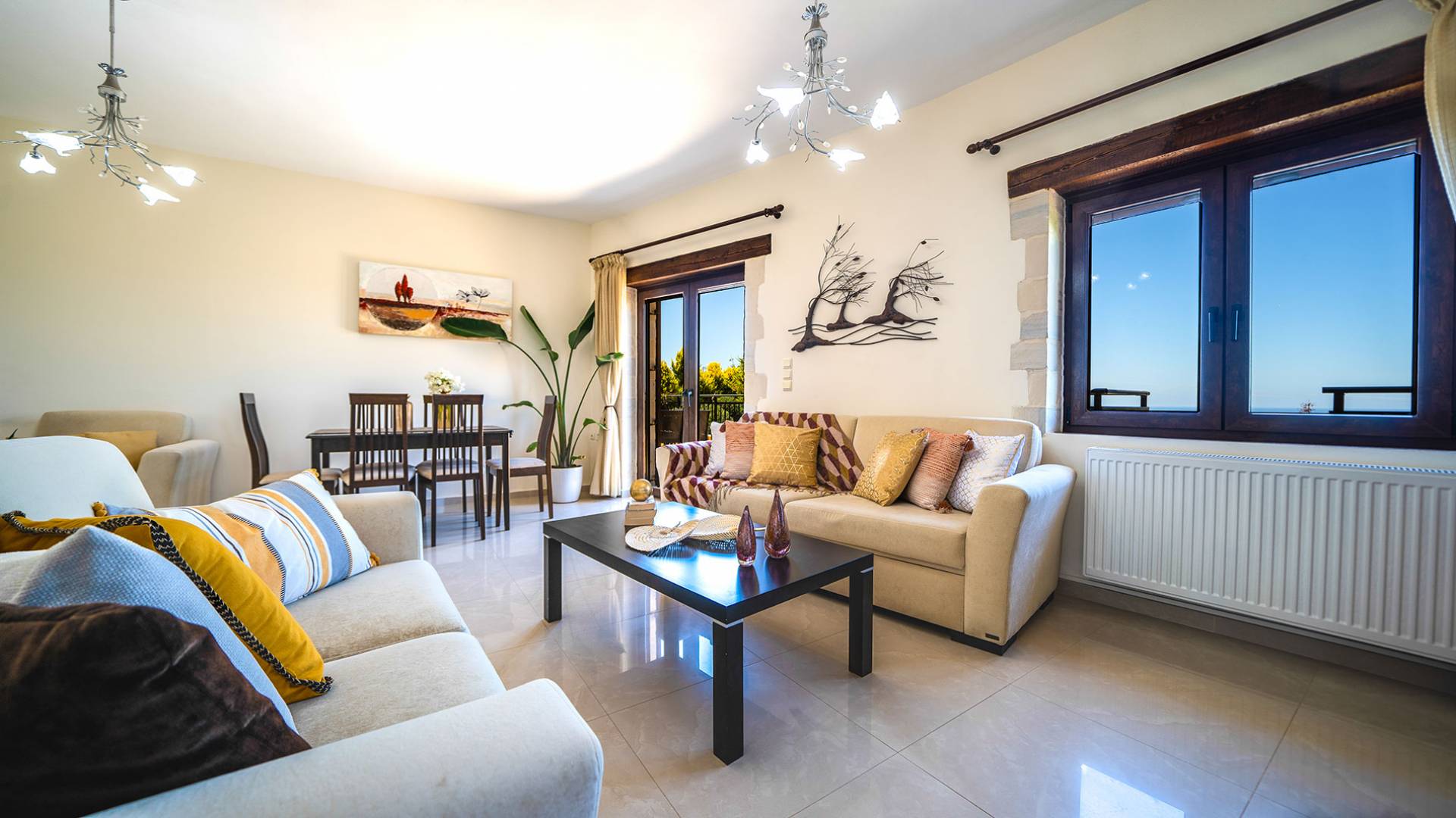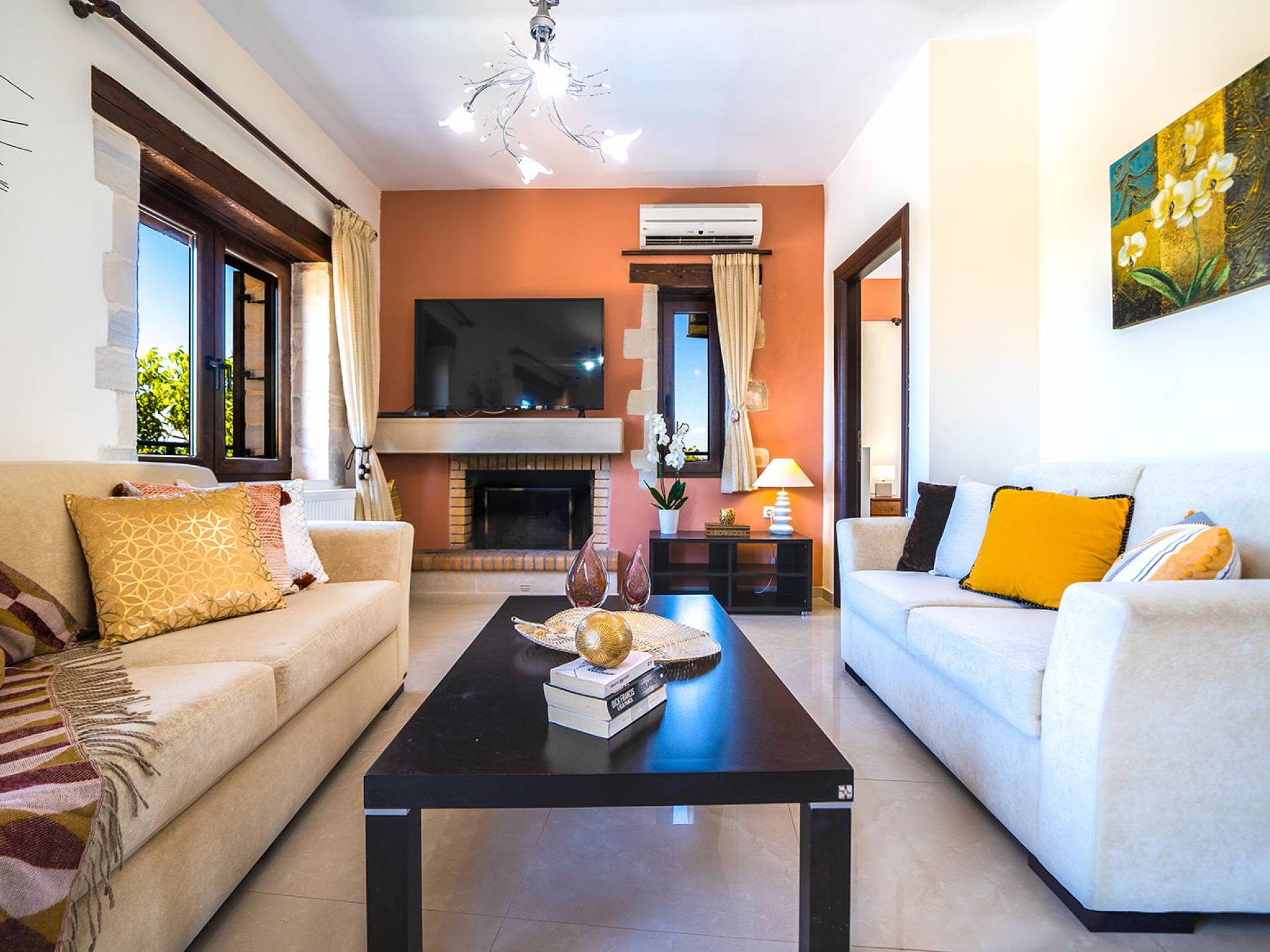 Jede Villa besteht aus einem geräumigen Interieur, vier Doppelzimmern, einem Wohnzimmer, einem Esszimmer, einem traditionellen Kamin, zwei Badezimmern, einer voll ausgestatteten Küche, einem halben Außenbereich und großen Veranden. Alle Zimmer haben einen Gesamtblick auf die einzigartige kretische Landschaft. Großer Wert wird auf die Dekoration gelegt, die einfachen, modernen Linien folgt, die variieren, mit persönlichen Akzenten, die in jeder Villa unterschiedlich sind, um sie einzigartig zu machen. Die Umgebung beider Villen ist von einem Garten mit Rasen, Blumenbeeten mit bunten Blumen und einem privaten Swimmingpool umgeben und bietet Möglichkeiten zum Entspannen und Wohlfühlen. Jede Villa hat einen eigenen Grill für unvergessliche Grillabende.