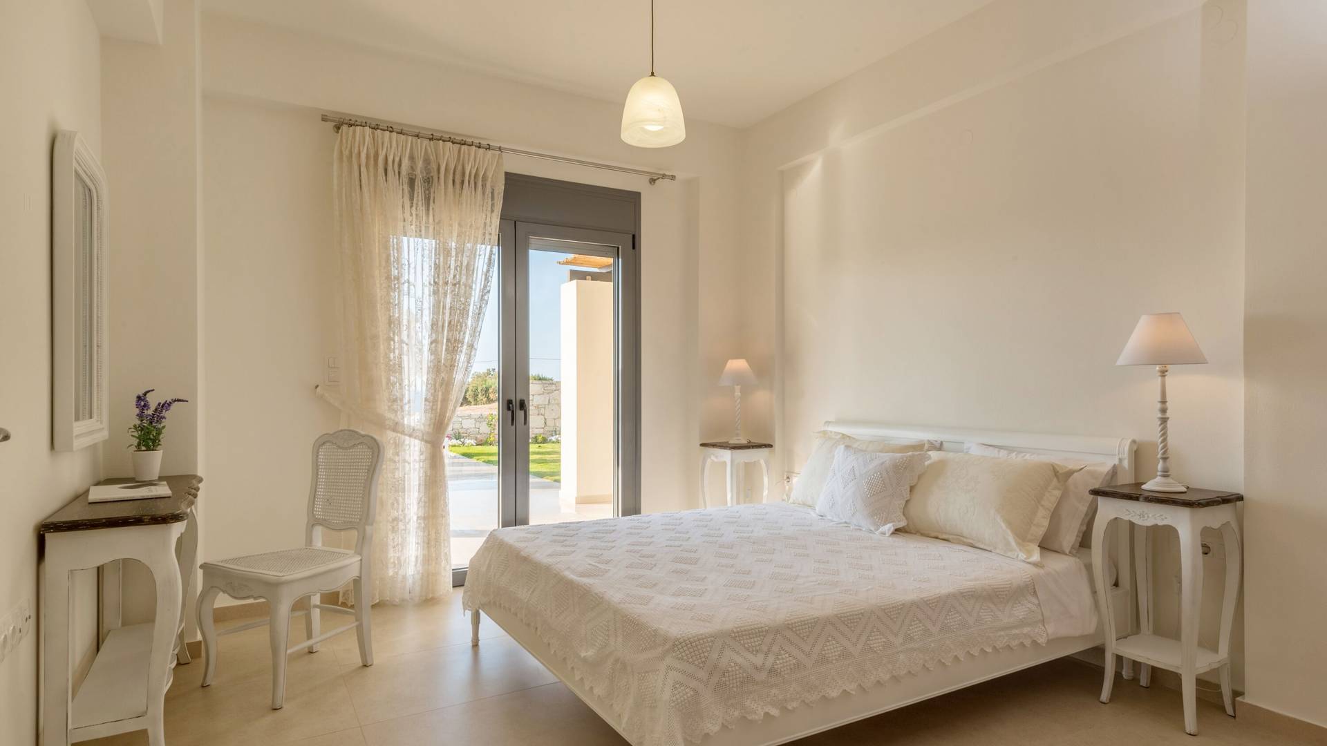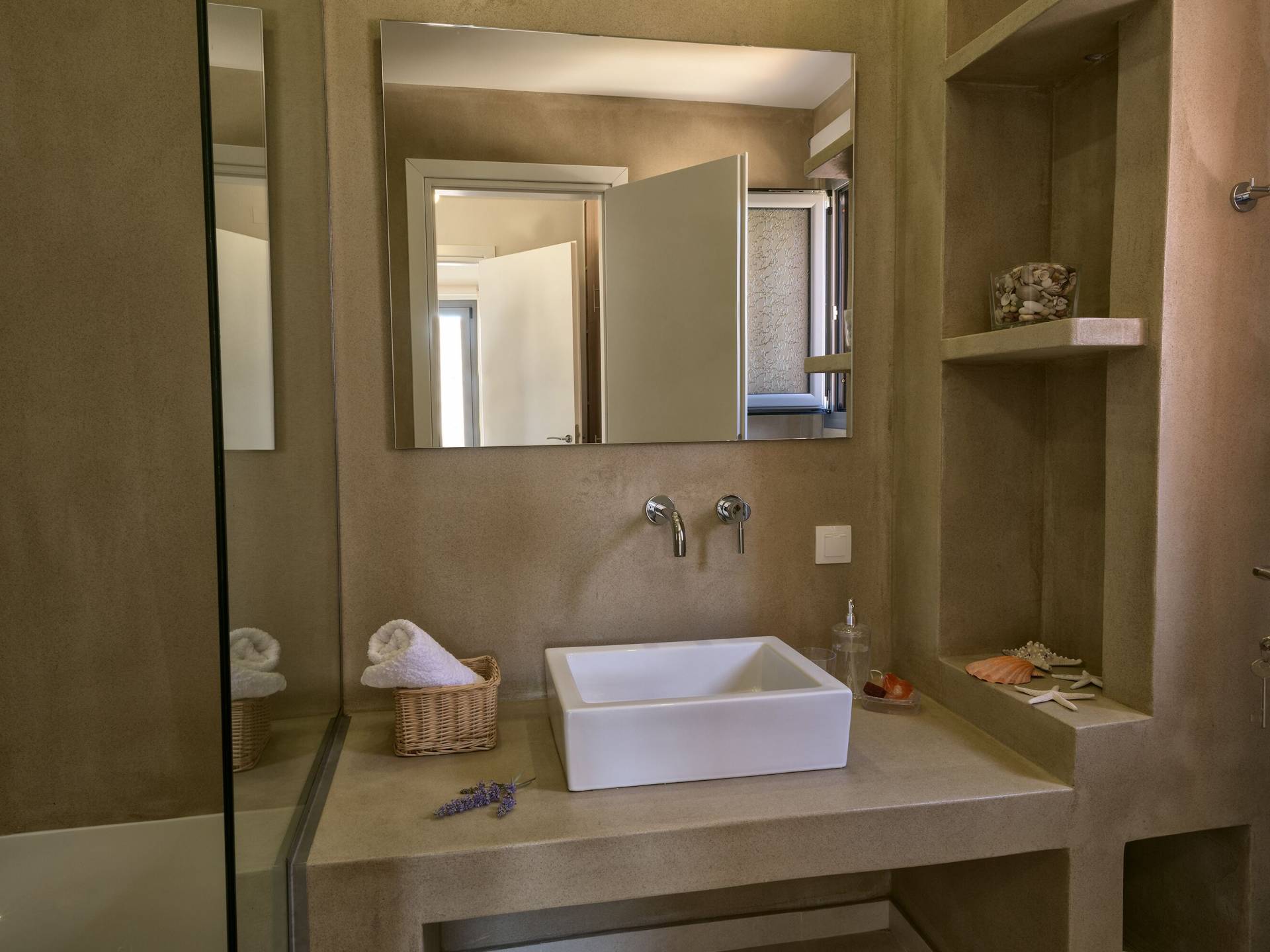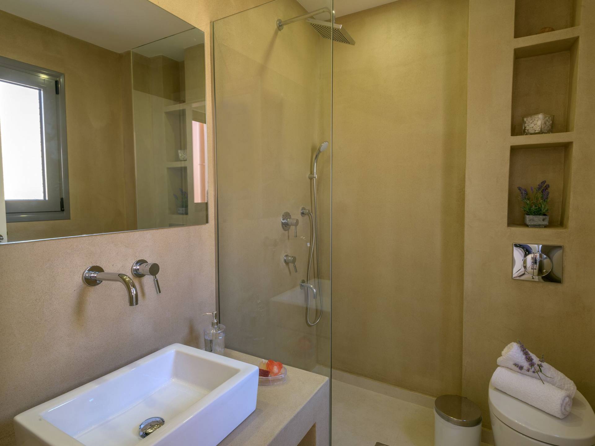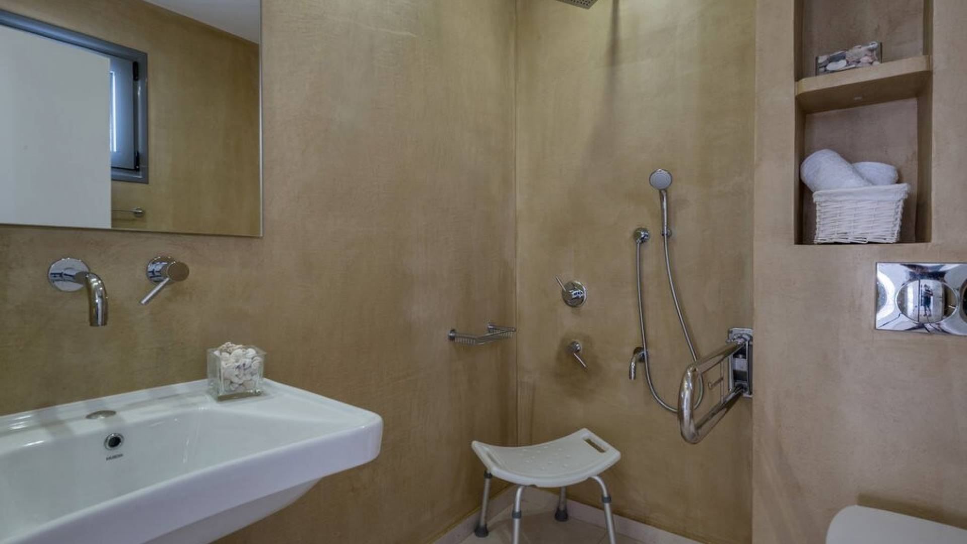 Es gibt auch ein kleines WC und ein geräumiges Schlafzimmer, das alle Anforderungen für Behinderte erfüllt. Das Erdgeschoss hat Zugang zu den Gärten und dem privaten Swimmingpool. Auf der ersten Etage befinden sich zwei weitere sonnige und luftige Schlafzimmer mit en-suite Badezimmern, die beide zu großen Veranden mit atemberaubender Aussicht führen. Ebenso attraktiv ist der Außenbereich mit einem 40 qm großen Privatpool. Levanda Villa Rethymno ist für Menschen mit eingeschränkter Mobilität geeignet. Es verfügt unter anderem über Rampen und breite Türen, die einen reibungslosen Zugang zu allen Bereichen gewährleisten, während eine spezielle Rampe und ein Handlauf den Zugang zum Schwimmbad ermöglichen. Darüber hinaus gibt es ein speziell angepasstes WC sowie viel Platz um die Möbel herum für mehr Mobilität.