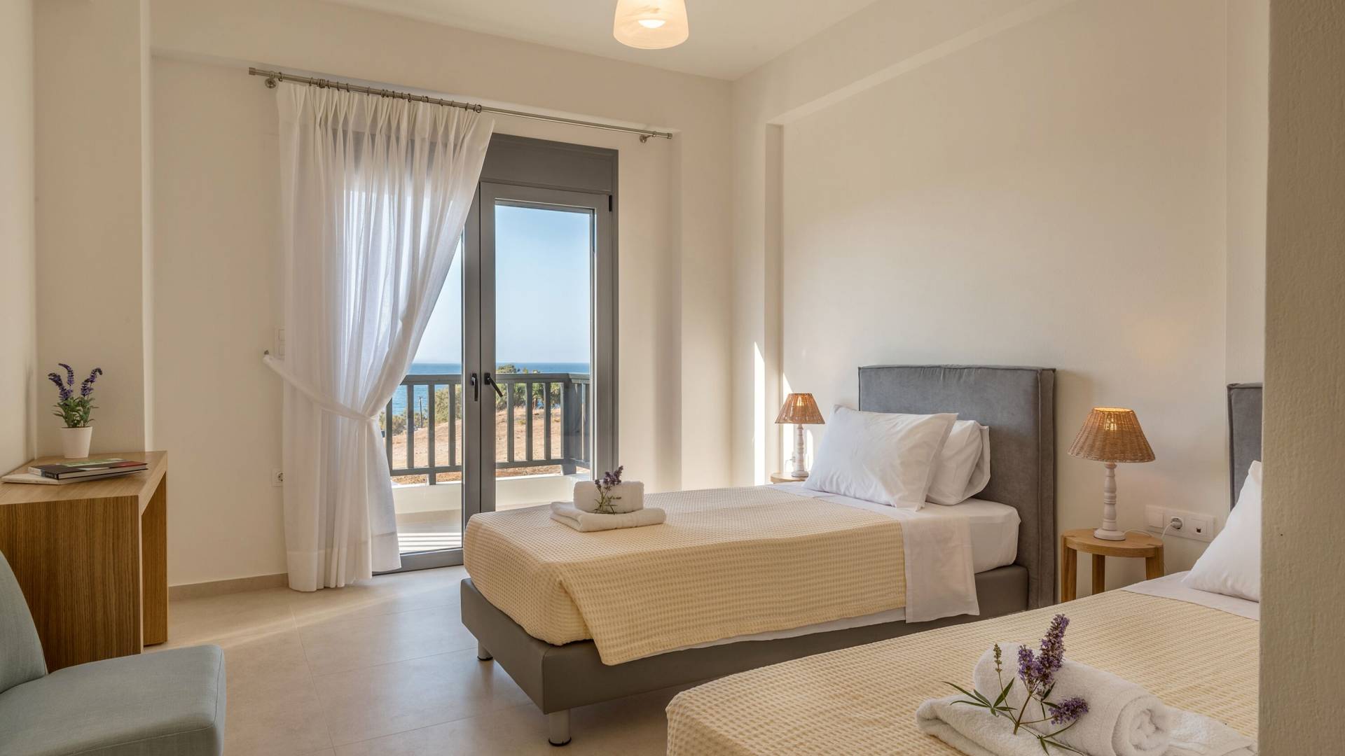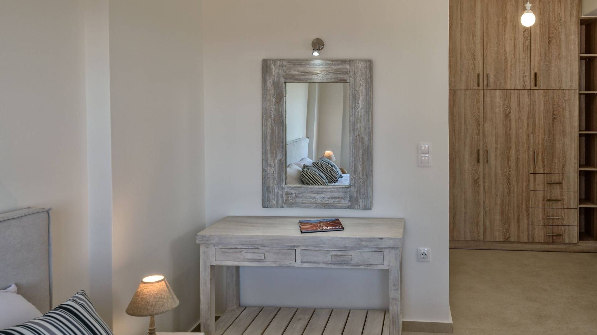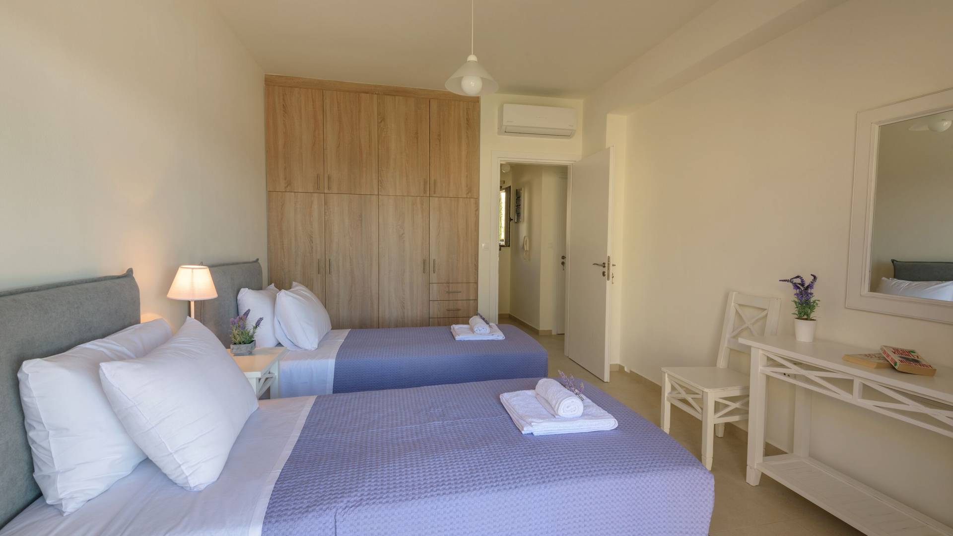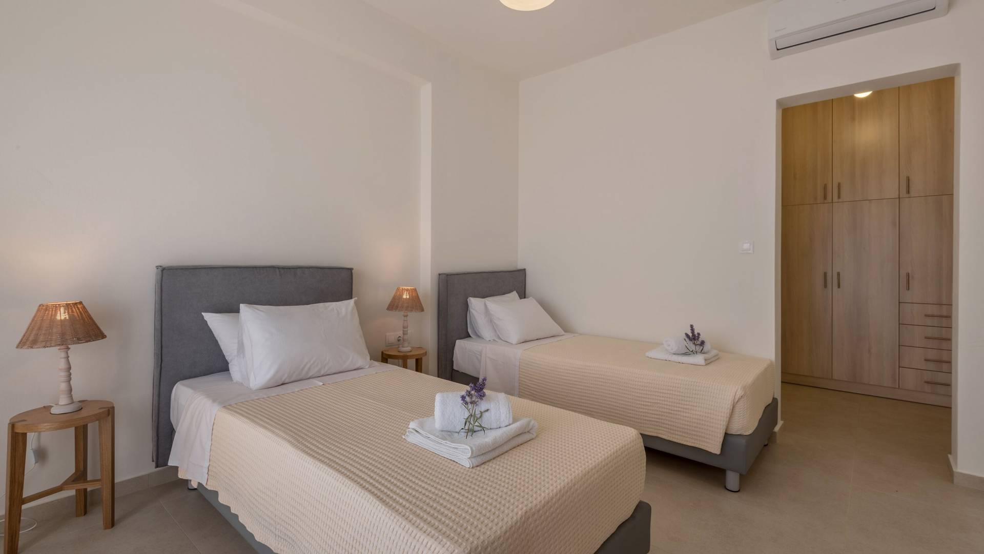 Es gibt auch ein kleines WC und ein geräumiges Schlafzimmer, das alle Anforderungen für Behinderte erfüllt. Das Erdgeschoss hat Zugang zu den Gärten und dem privaten Swimmingpool. Auf der ersten Etage befinden sich zwei weitere sonnige und luftige Schlafzimmer mit en-suite Badezimmern, die beide zu großen Veranden mit atemberaubender Aussicht führen. Ebenso attraktiv ist der Außenbereich mit einem 40 qm großen Privatpool. Levanda Villa Rethymno ist für Menschen mit eingeschränkter Mobilität geeignet. Es verfügt unter anderem über Rampen und breite Türen, die einen reibungslosen Zugang zu allen Bereichen gewährleisten, während eine spezielle Rampe und ein Handlauf den Zugang zum Schwimmbad ermöglichen. Darüber hinaus gibt es ein speziell angepasstes WC sowie viel Platz um die Möbel herum für mehr Mobilität.