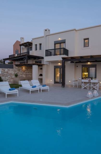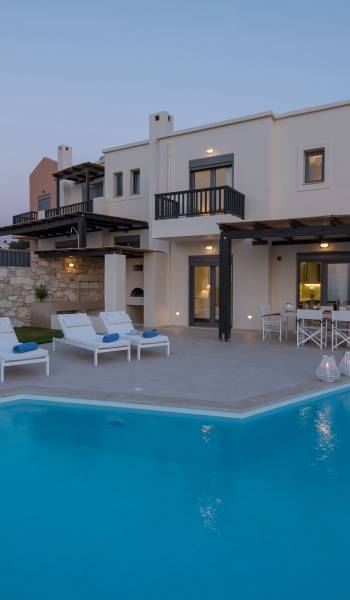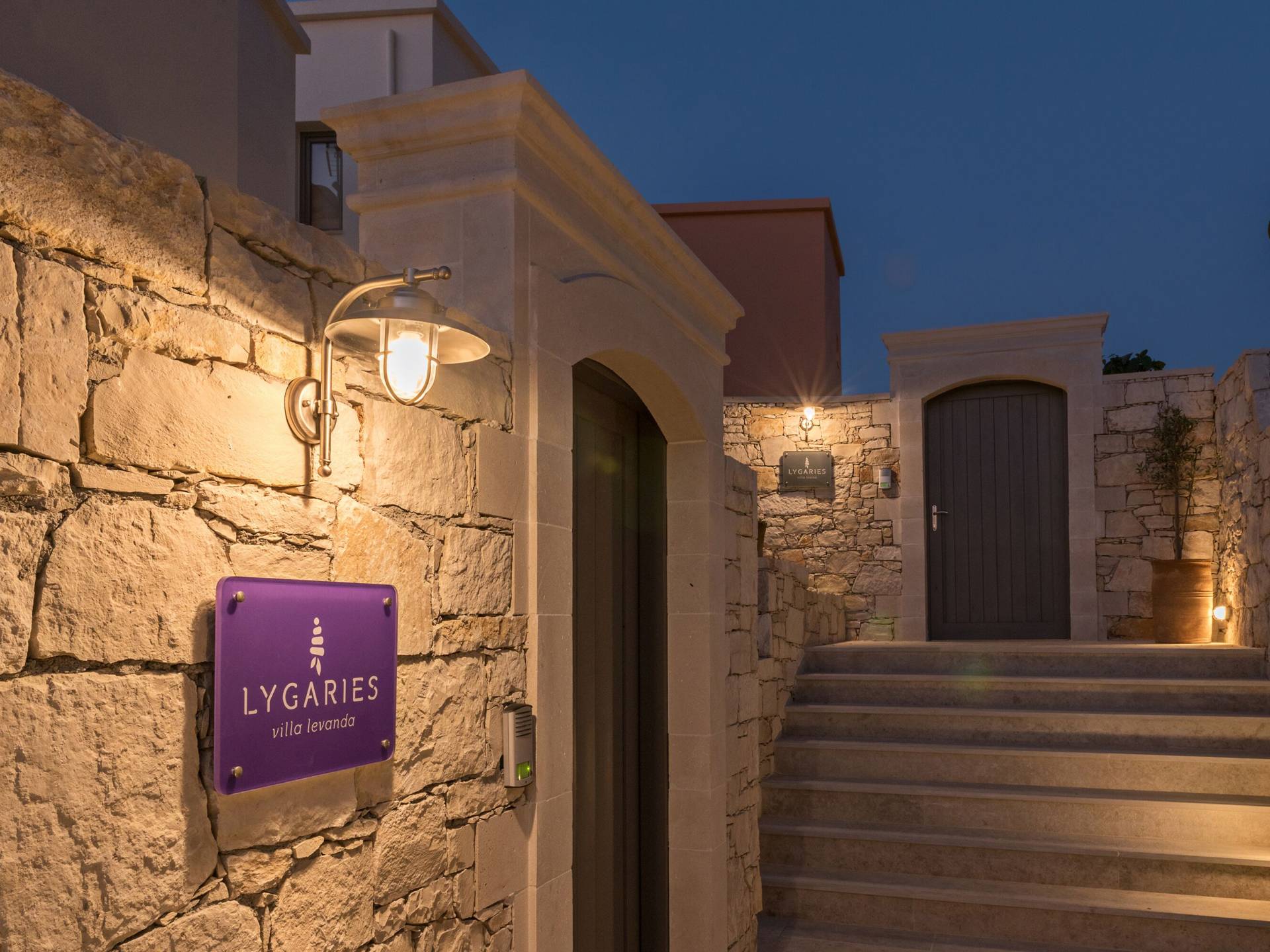 Lygaries Villas Crete sind 2 Luxusvillen mit 6 Schlafzimmern und einem privaten Pool. Lygaries Villas ist ein stilvoller Komplex mit zwei Villen im malerischen Küstenort Panormo, nicht mehr als 70 m vom Strand entfernt. Die Zwillingsvillen Levanda und Louisa sind völlig unabhängig und teilen sich einen großen Innenhof mit zwei prächtigen Bögen, die im Einklang mit dem traditionellen architektonischen Paradigma als architektonische, ästhetische und funktionale Verbindung zwischen ihnen fungieren.