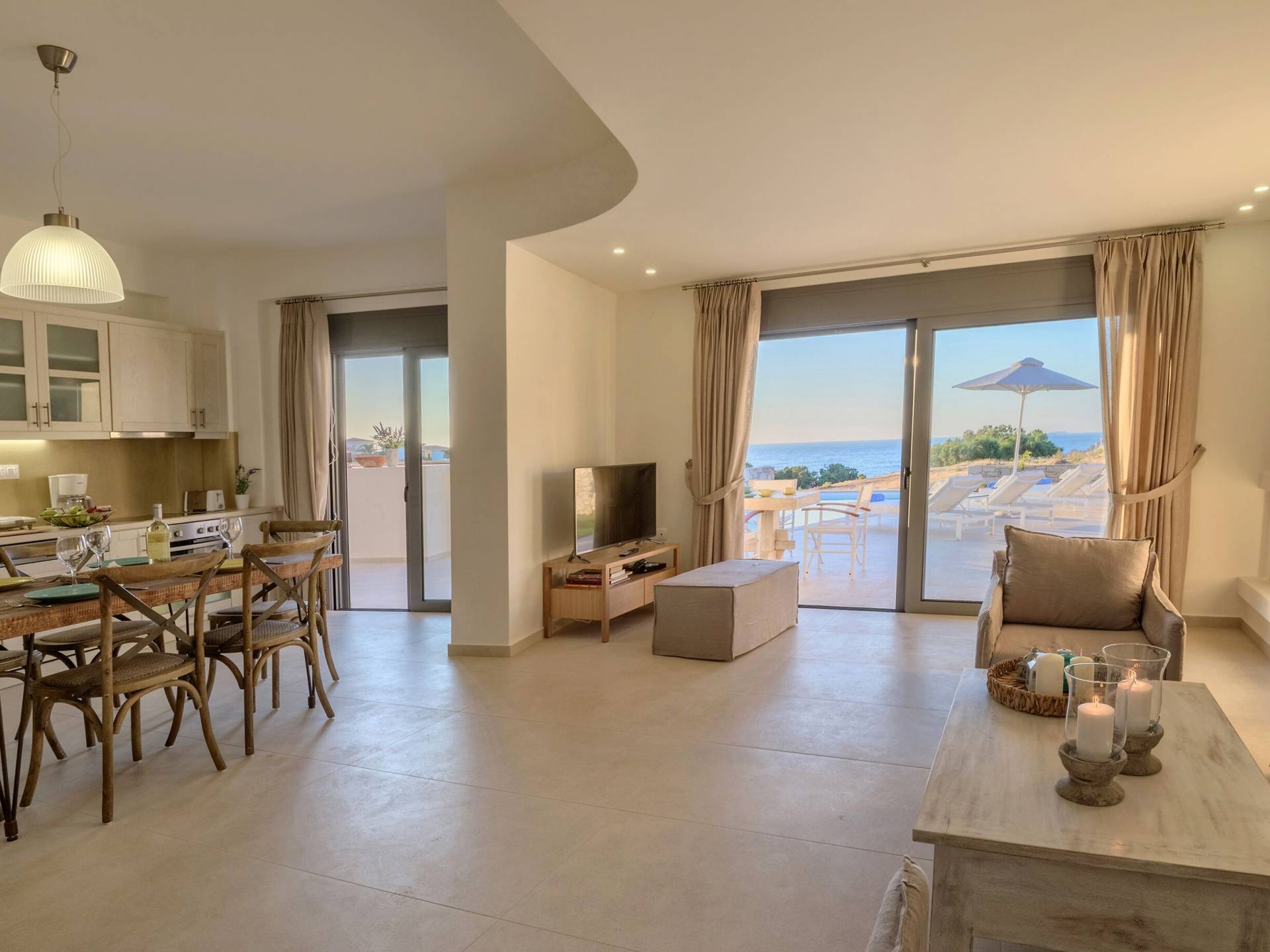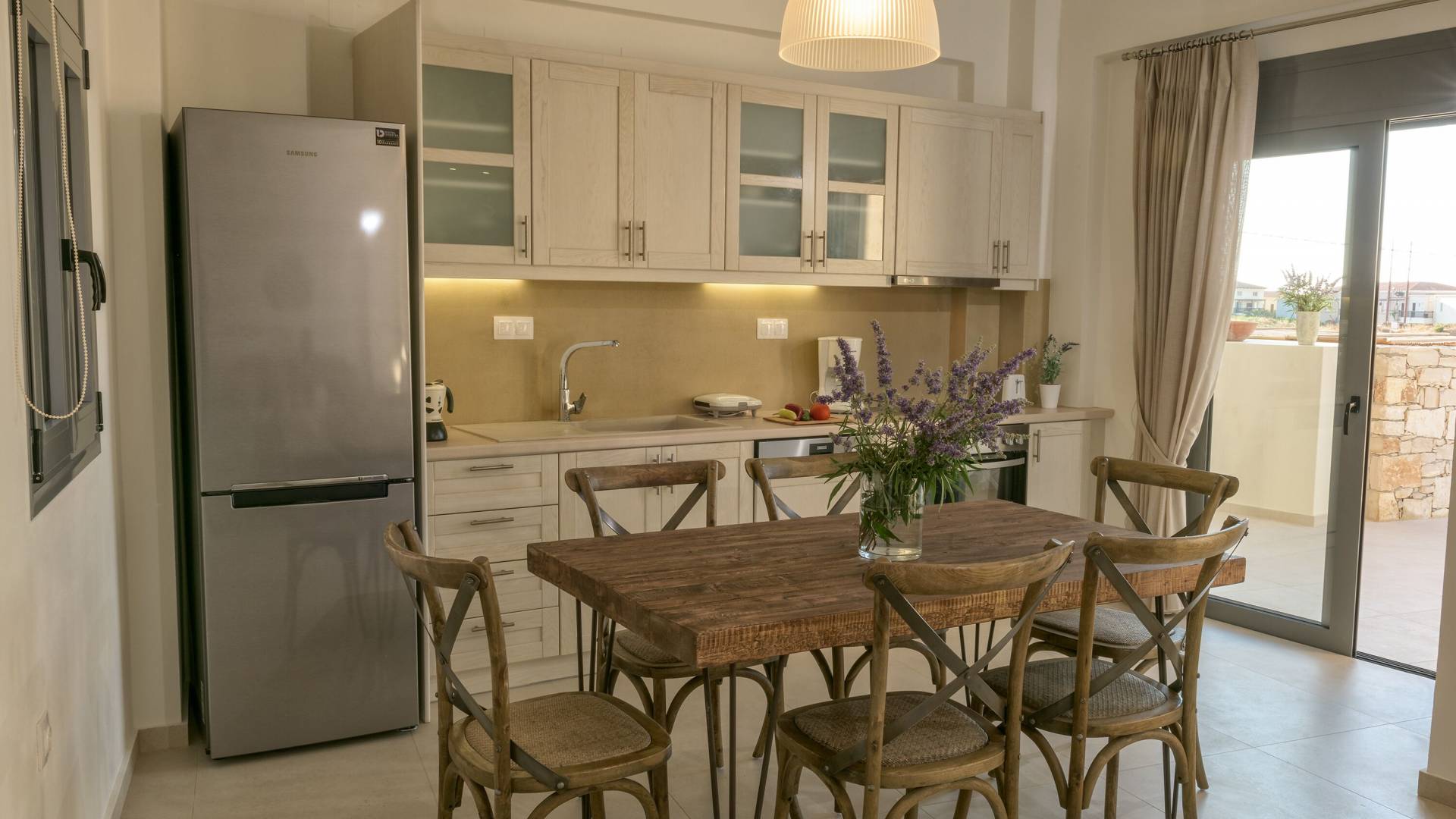 Die Levanda Villa Rethymno ist die erste der beiden stilvollen Villen im Lygaries-Komplex. Es wurde entwickelt, um Funktionalität und Ästhetik auf harmonische Weise zu vereinen, um Ihnen bestmöglich entgegenzukommen und Ihnen gleichzeitig Sicherheit zu geben. Im Erdgeschoss finden Sie ein großes offenes Wohnzimmer, einen Essbereich und eine voll ausgestattete Küche.