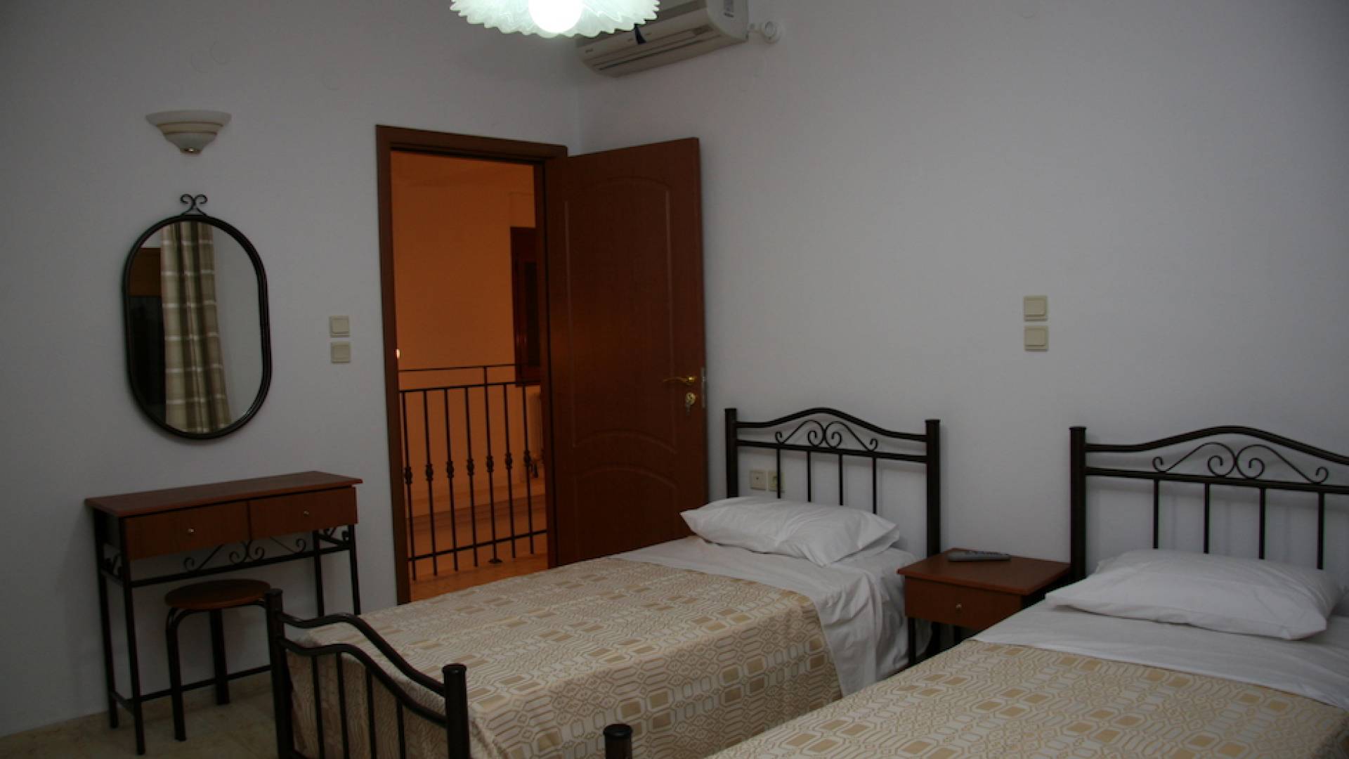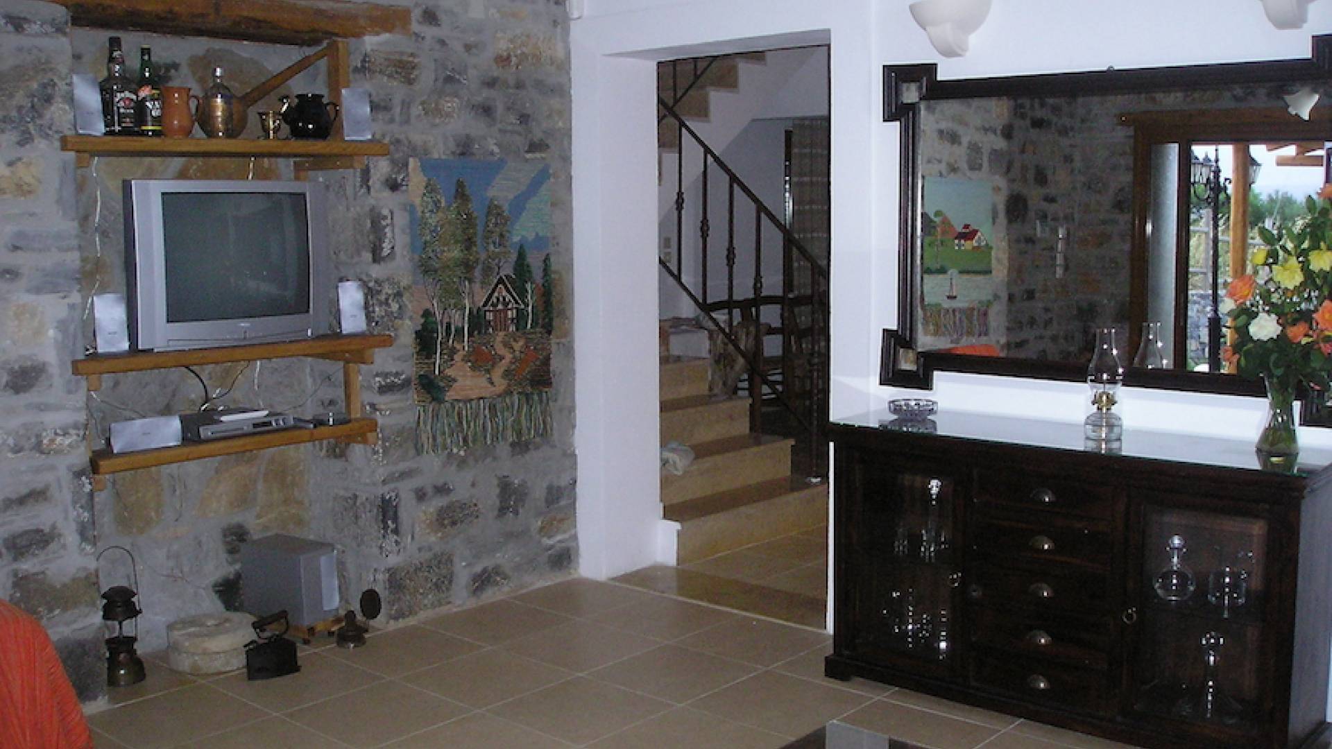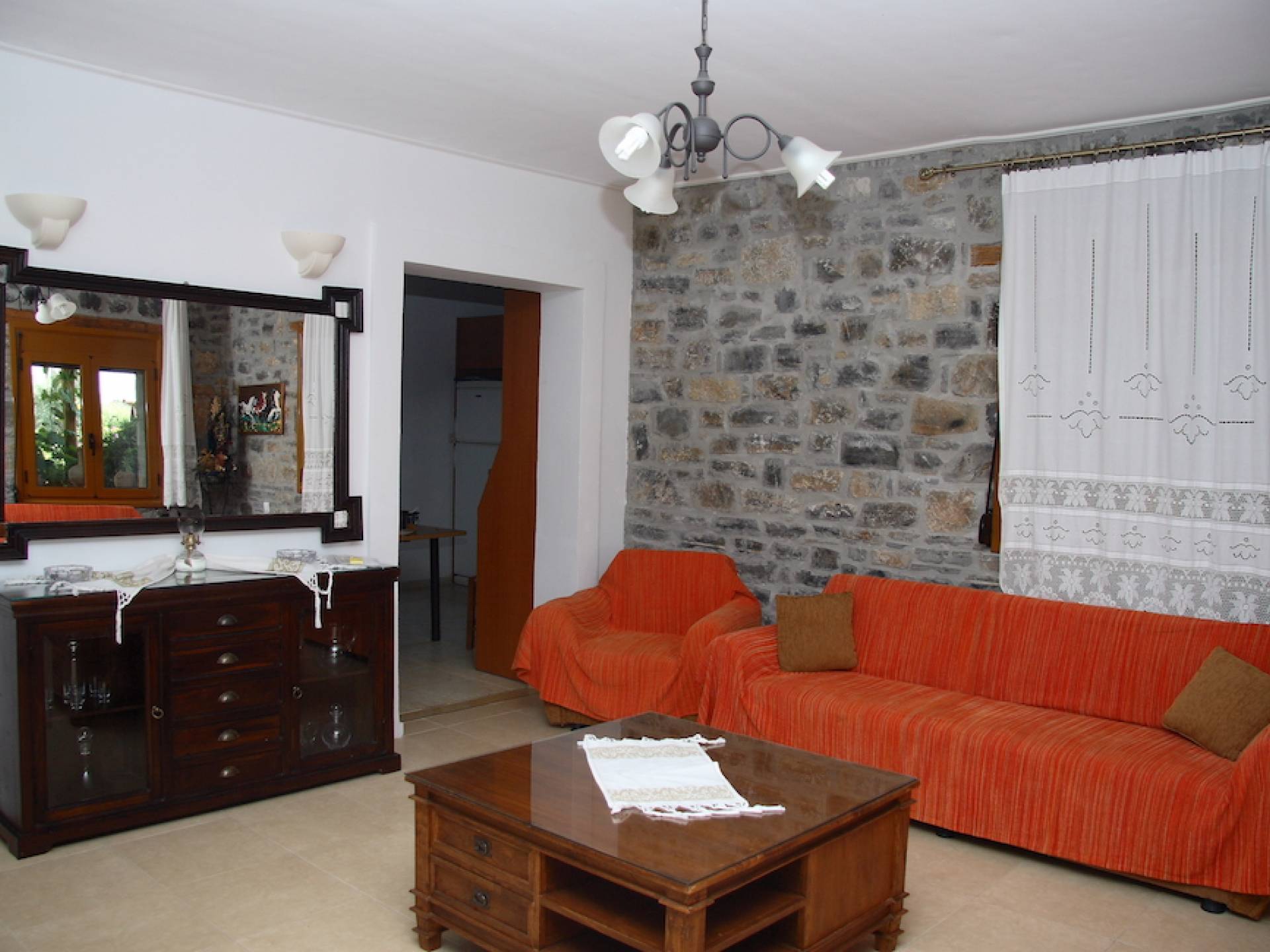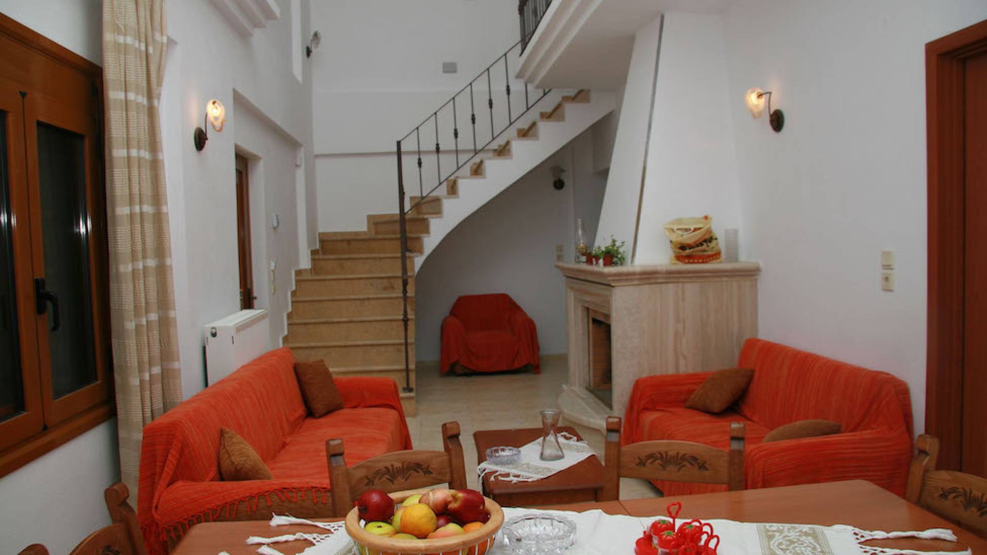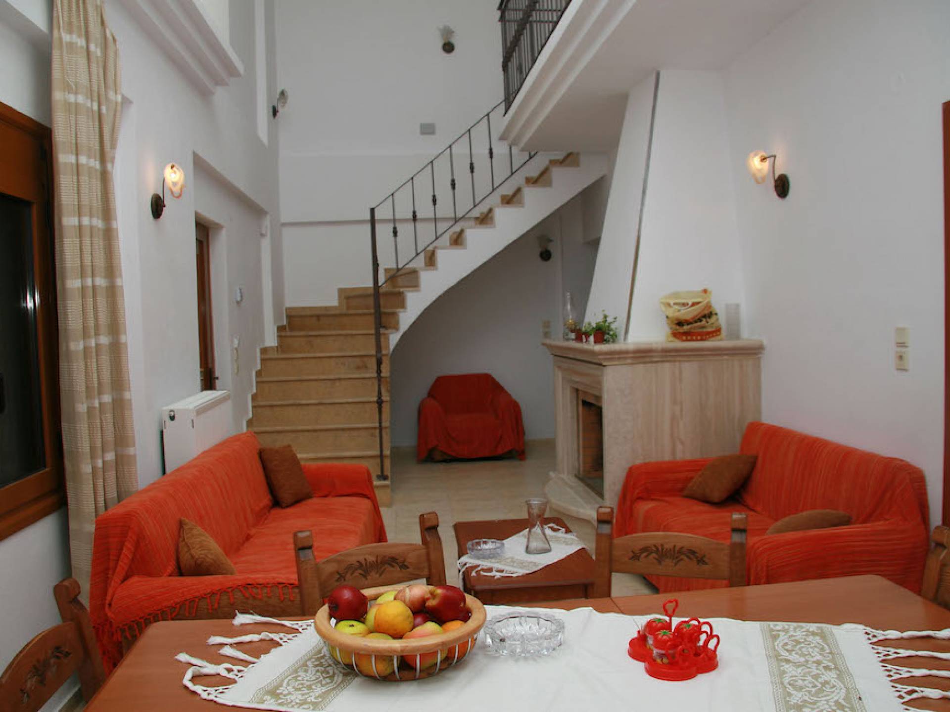 Die Haupteingangstür führt in ein geräumiges, offenes Wohnzimmer in Form eines großen Kamins mit Sofas und Sesseln um einen großen Couchtisch. Darüber hinaus befindet sich eine sehr voll ausgestattete Küche mit Esstisch und Stühlen sowie Kühlschrank mit Gefrierfach, Elektroherd, Mikrowelle, Geschirrspüler. Ria Villa Rethymno verfügt über fünf Schlafzimmer, vier davon mit zwei Einzelbetten und eines mit Doppelbett. Es besteht die Möglichkeit, die Betten in einem weiteren Zimmer in ein Doppelbett umzuwandeln. Alle Schlafzimmer verfügen über Klimaanlage und Sat-TV. Es gibt auch zwei Badezimmer mit großen Badewannen. Drei Schlafzimmer befinden sich im Erdgeschoss mit Zugang zum Garten, zwei Schlafzimmer im ersten Stock mit Balkon zum Garten. Die Außenanlagen bestehen aus einem fabelhaften Garten, zwei Swimmingpools (einer 44 m² und ein Kinderpool), Gartenmöbel, Grill, üppiger Garten und bequemer Parkplatz
