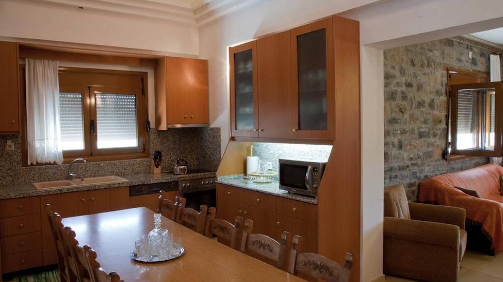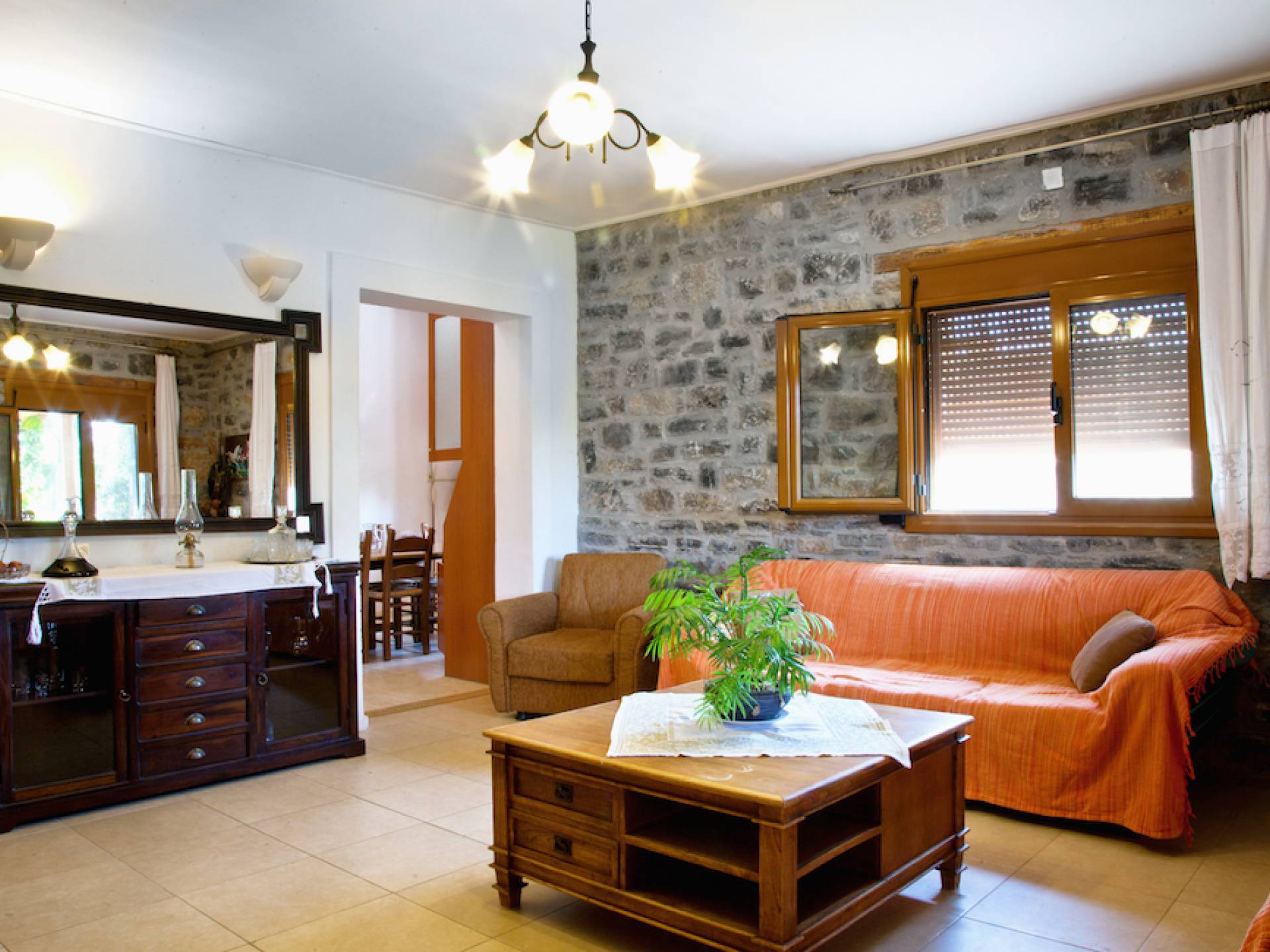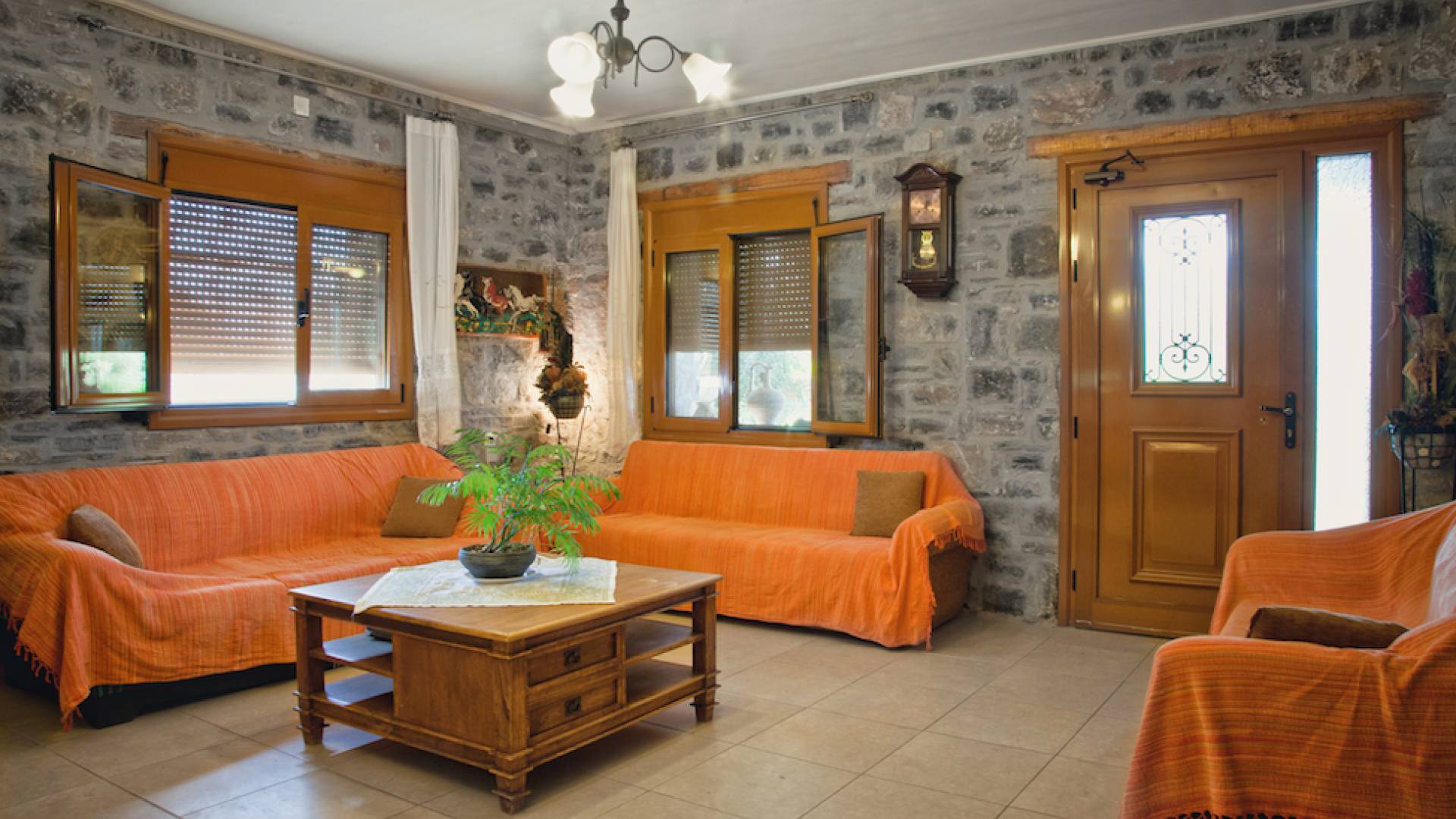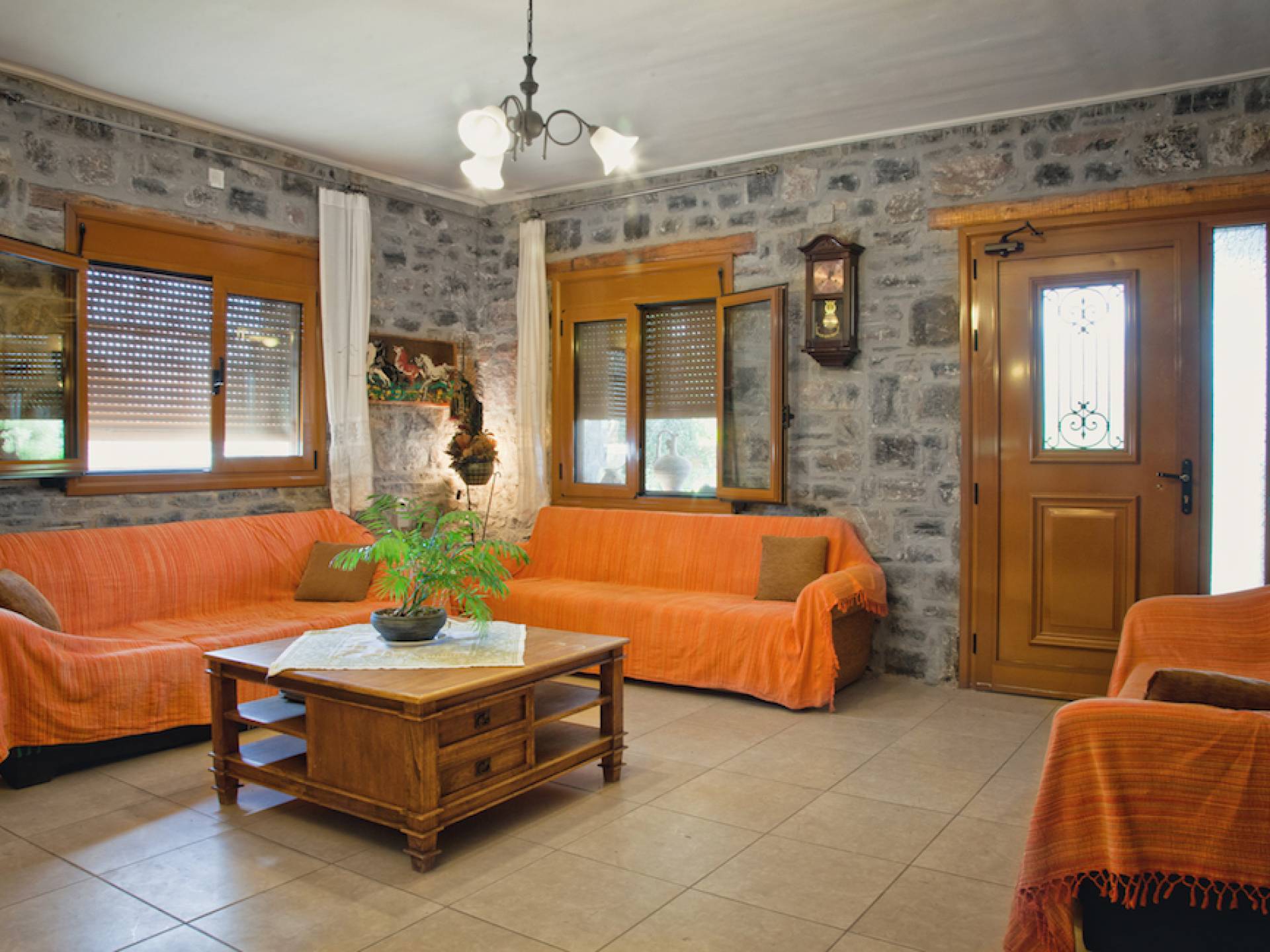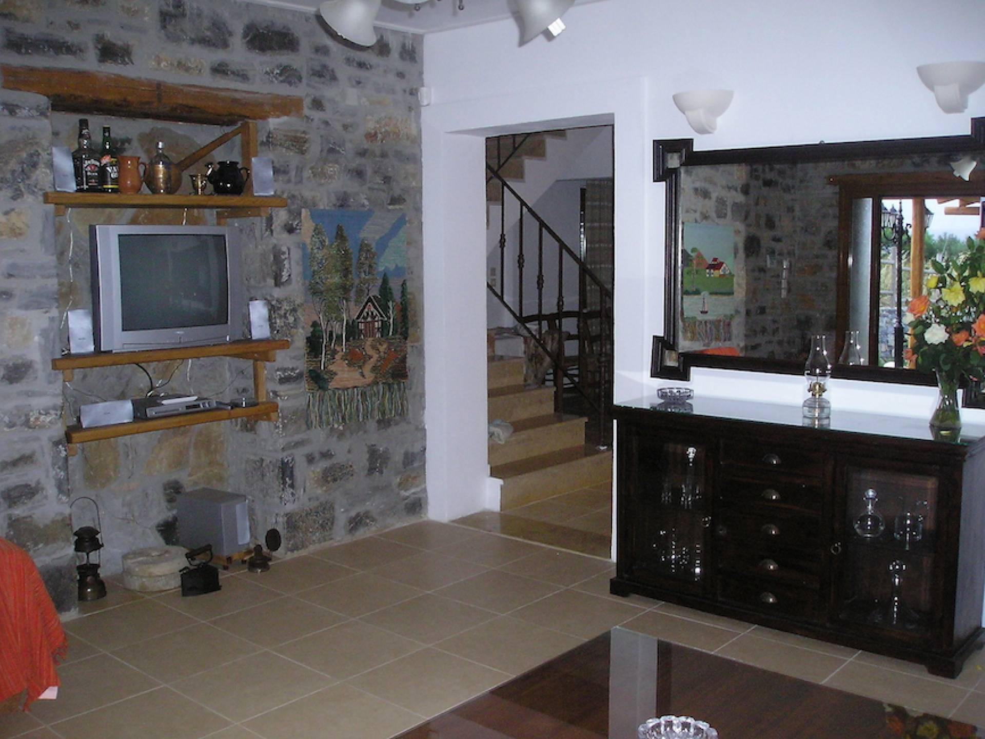 Die Haupteingangstür führt in ein geräumiges, offenes Wohnzimmer in Form eines großen Kamins mit Sofas und Sesseln um einen großen Couchtisch. Darüber hinaus befindet sich eine sehr voll ausgestattete Küche mit Esstisch und Stühlen sowie Kühlschrank mit Gefrierfach, Elektroherd, Mikrowelle, Geschirrspüler. Ria Villa Rethymno verfügt über fünf Schlafzimmer, vier davon mit zwei Einzelbetten und eines mit Doppelbett. Es besteht die Möglichkeit, die Betten in einem weiteren Zimmer in ein Doppelbett umzuwandeln. Alle Schlafzimmer verfügen über Klimaanlage und Sat-TV. Es gibt auch zwei Badezimmer mit großen Badewannen. Drei Schlafzimmer befinden sich im Erdgeschoss mit Zugang zum Garten, zwei Schlafzimmer im ersten Stock mit Balkon zum Garten. Die Außenanlagen bestehen aus einem fabelhaften Garten, zwei Swimmingpools (einer 44 m² und ein Kinderpool), Gartenmöbel, Grill, üppiger Garten und bequemer Parkplatz