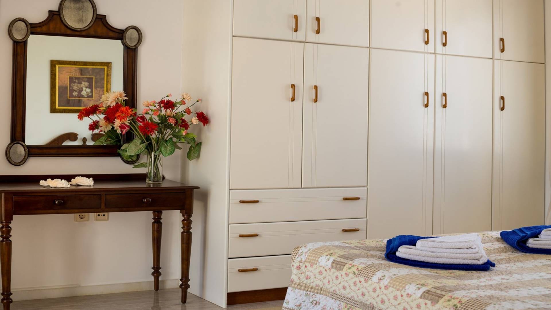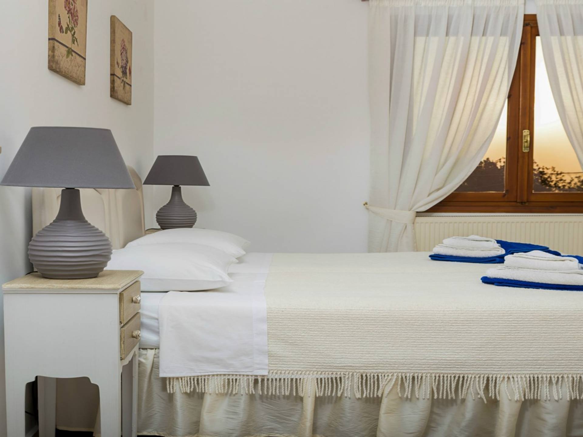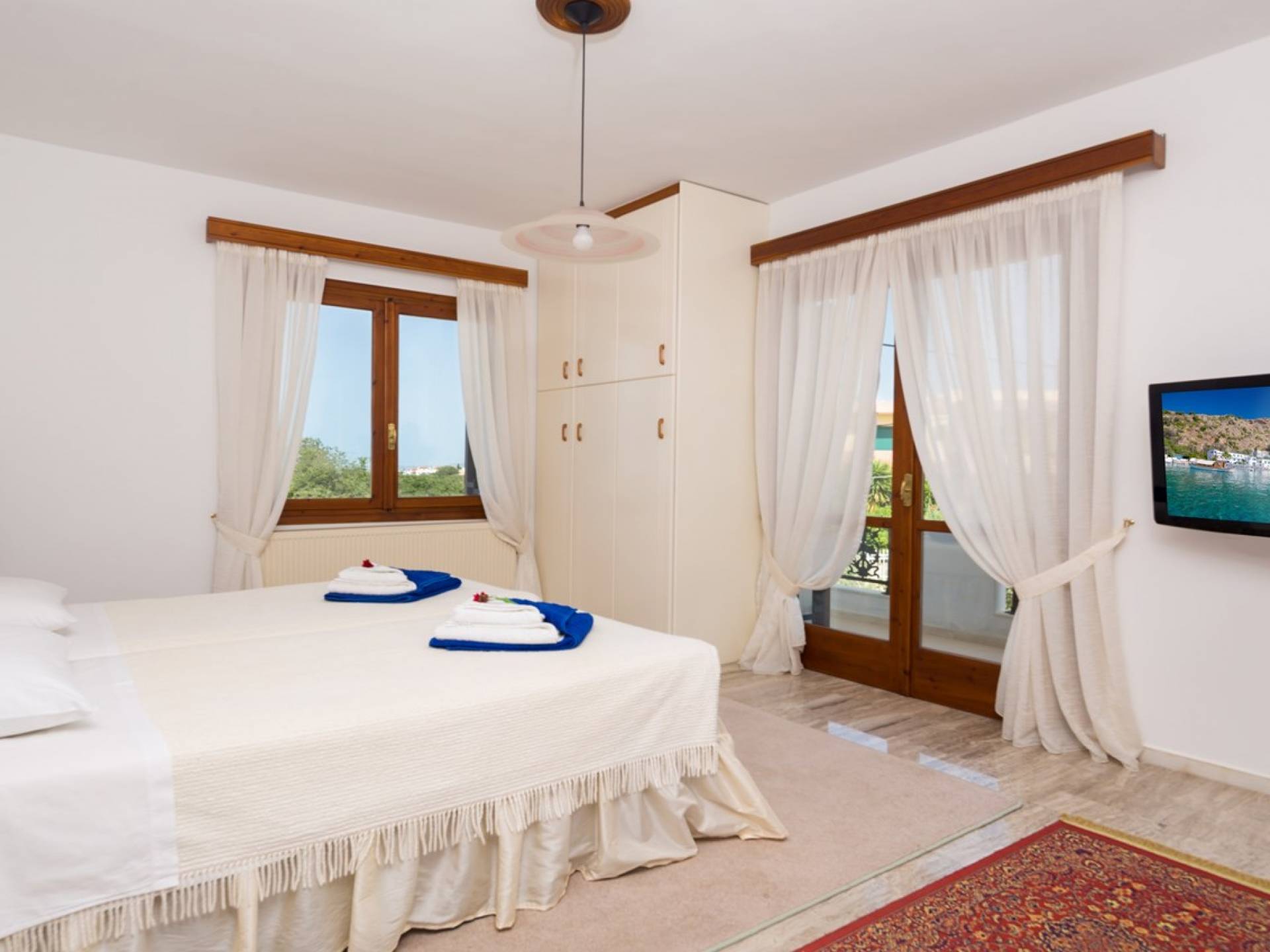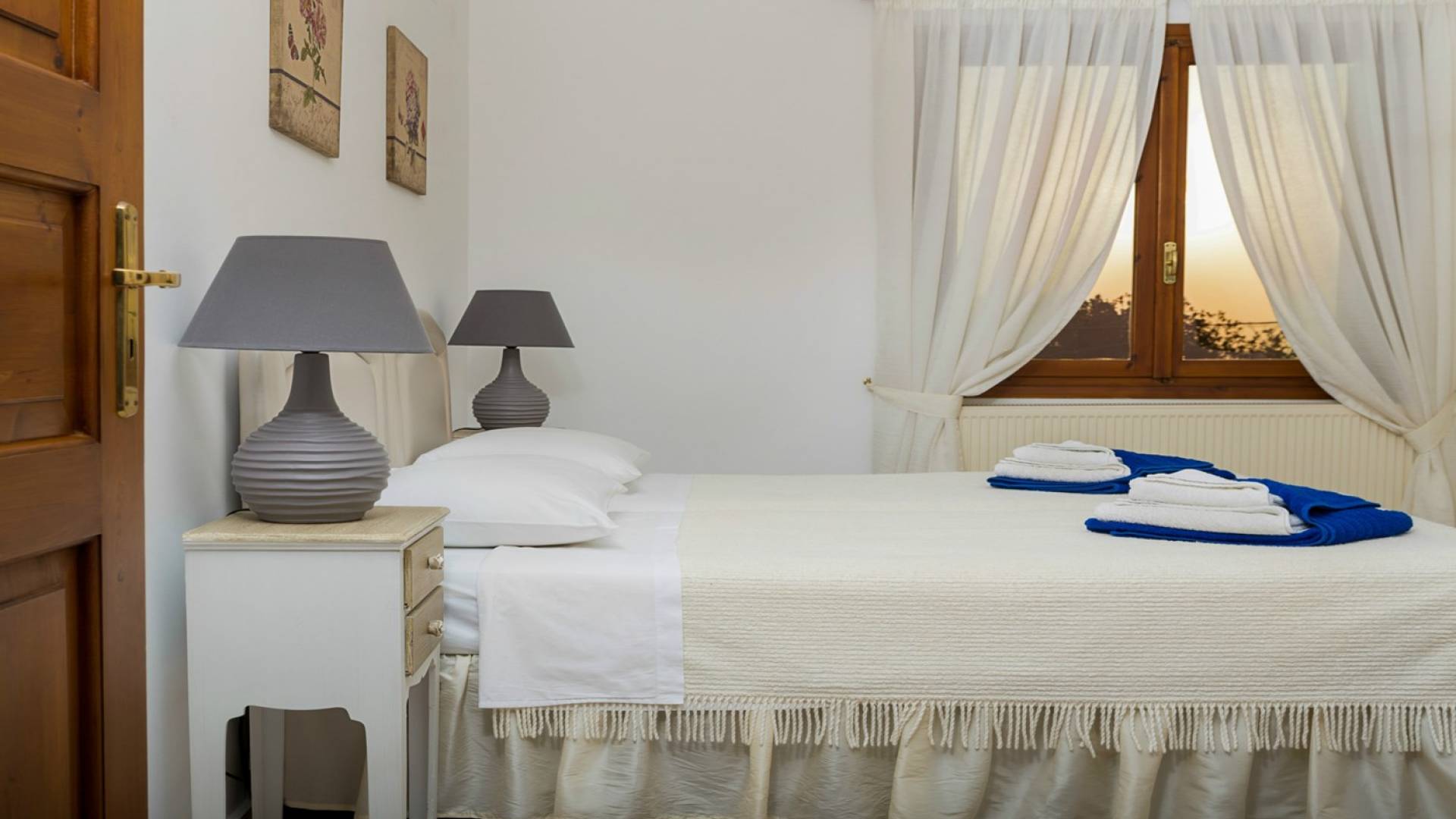Die Villa ist außerdem mit vier Schlafzimmern ausgestattet, zwei im ersten Stock und zwei im Erdgeschoss, die bequem Platz für bis zu acht Personen bieten. Die beiden Etagen sind durch eine breite Innentreppe und einen Aufzug verbunden, der für diejenigen geeignet ist, die Schwierigkeiten haben, eine Treppe zu bewältigen. Es gibt zwei Badezimmer und ein WC, die sich die Schlafzimmer teilen, mit nur einem Badezimmer in der Suite – im Hauptschlafzimmer – auch mit begehbarem Kleiderschrank. Jedes Schlafzimmer hat einen einzigartigen Meerblick, eine private Veranda oder einen Balkon, eine Klimaanlage, einen Fernseher, voll ausgestattete, bequeme Betten und klassische oder antike Möbel. Die dritte Etage (Untergeschoss) wird hauptsächlich für Wartungszwecke genutzt, verfügt aber über ein weiteres Schlafzimmer, Bad, Küche, Heimkino, das auf Anfrage frei genutzt werden kann.