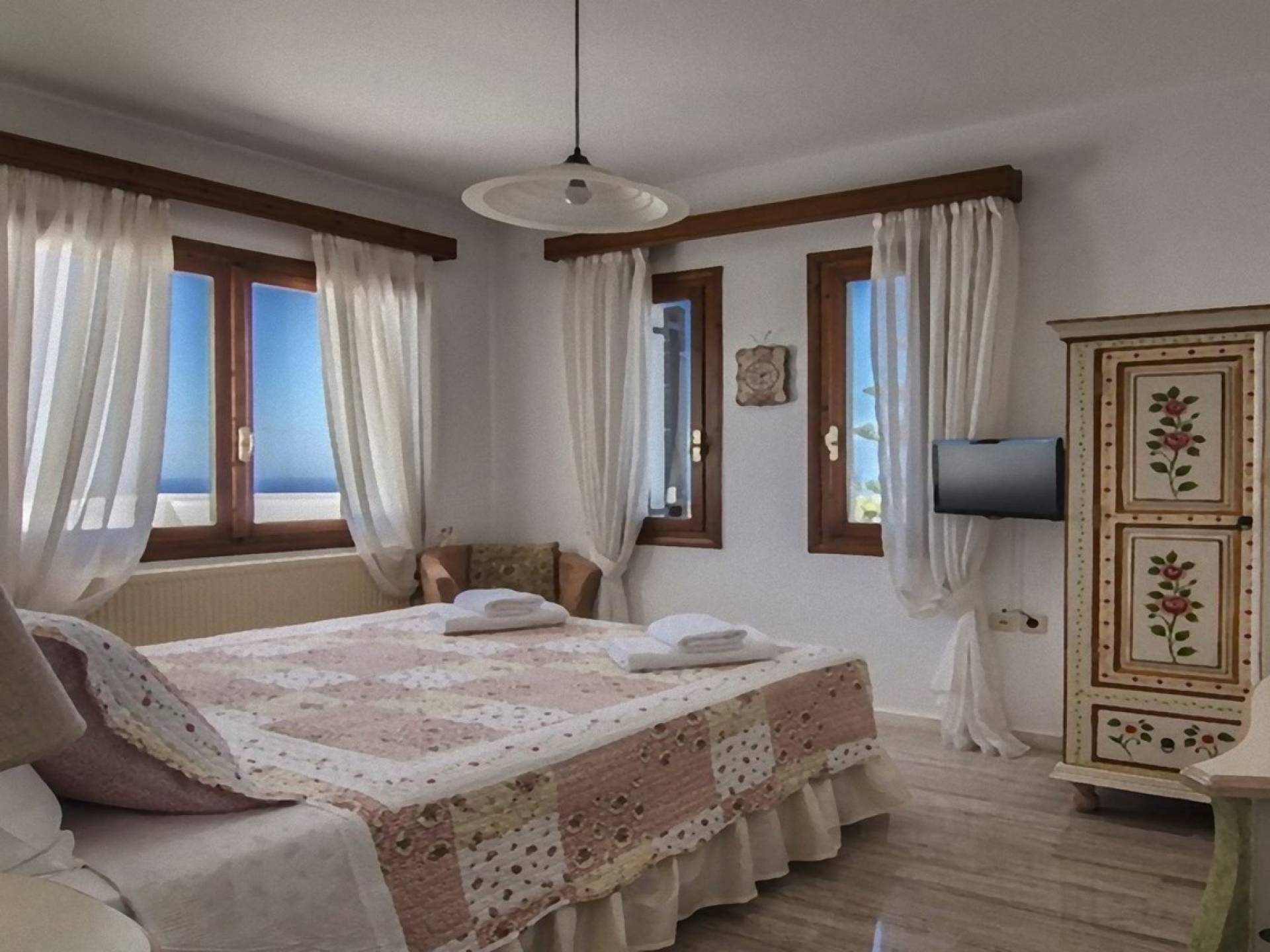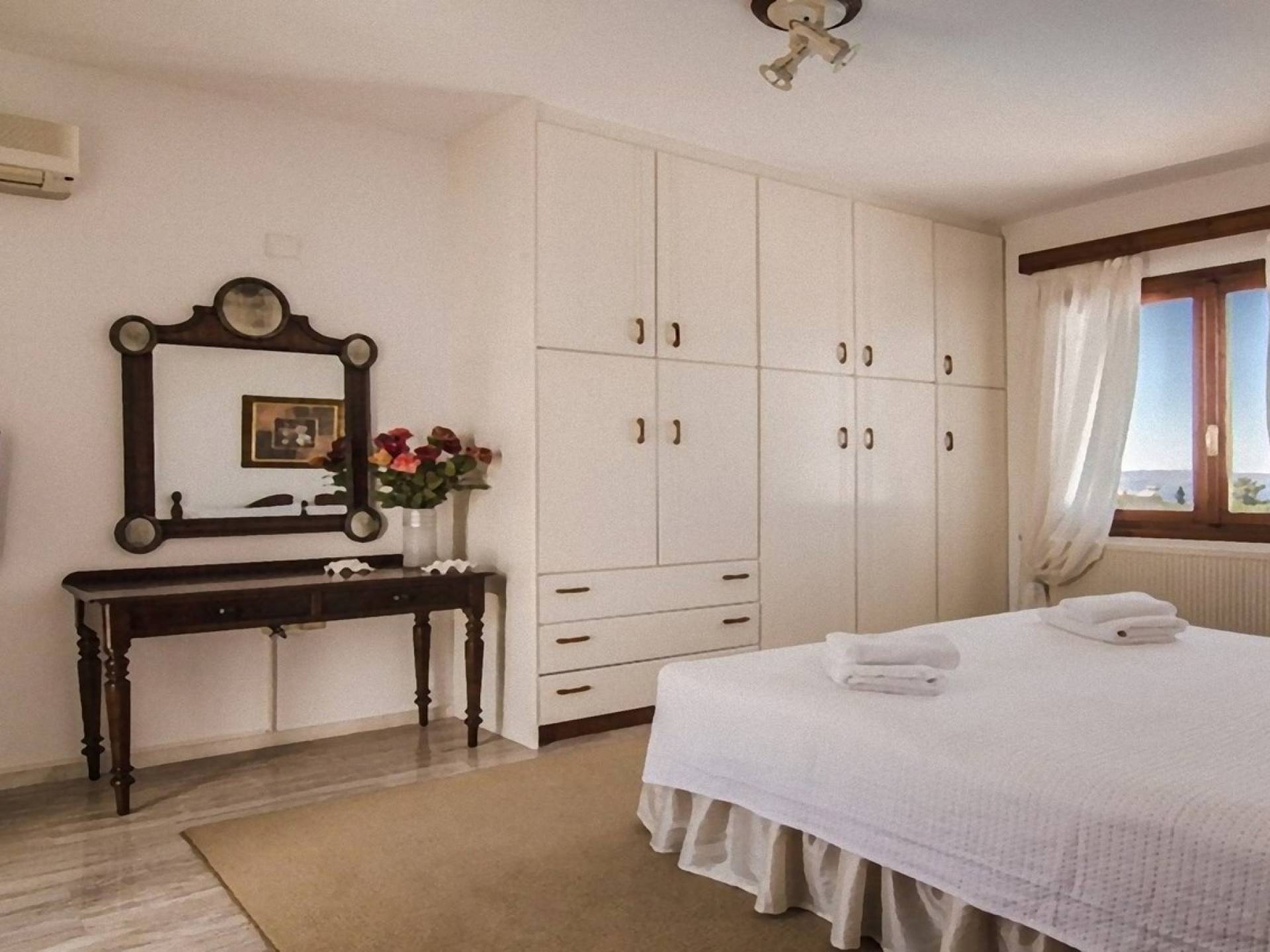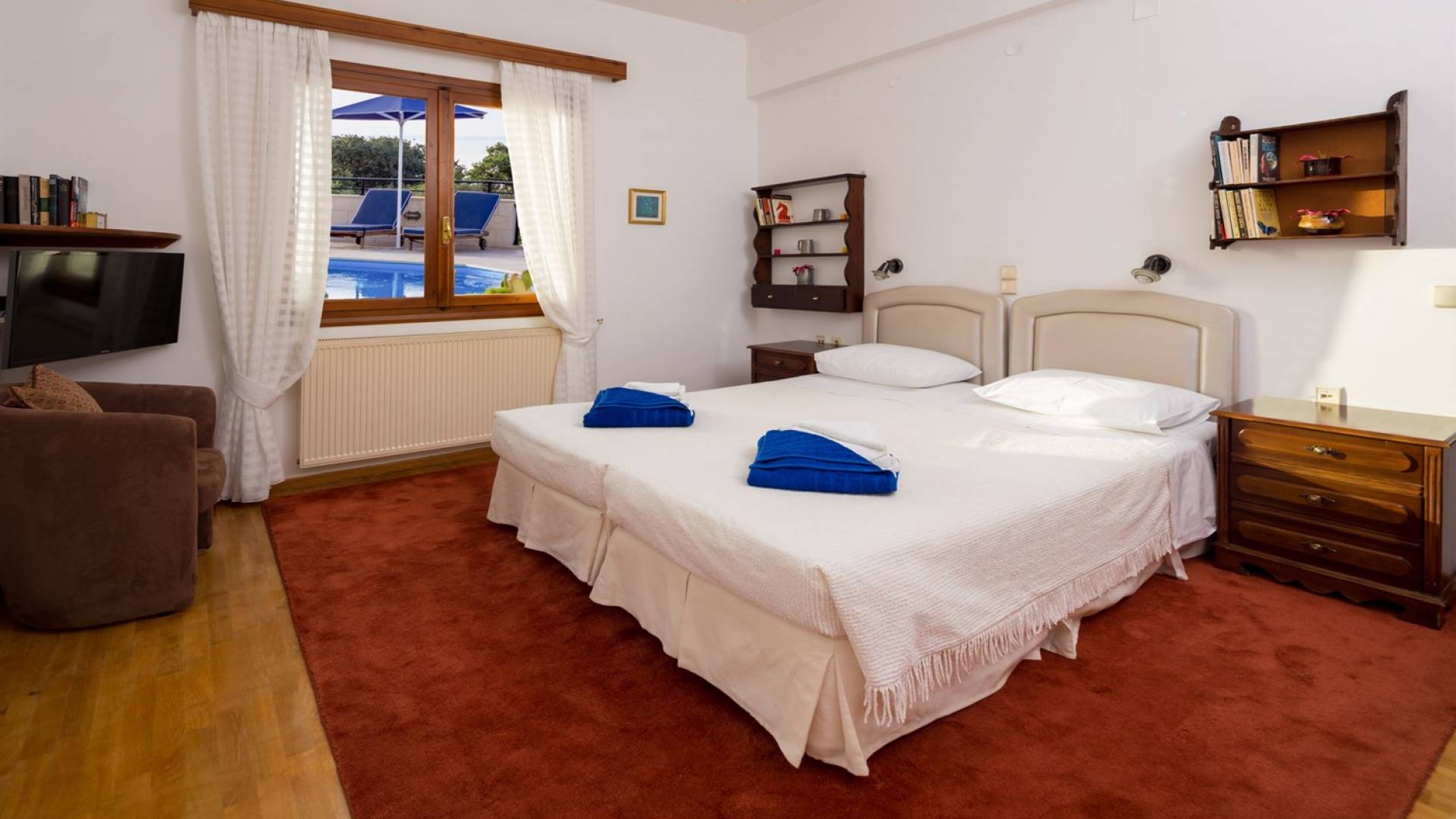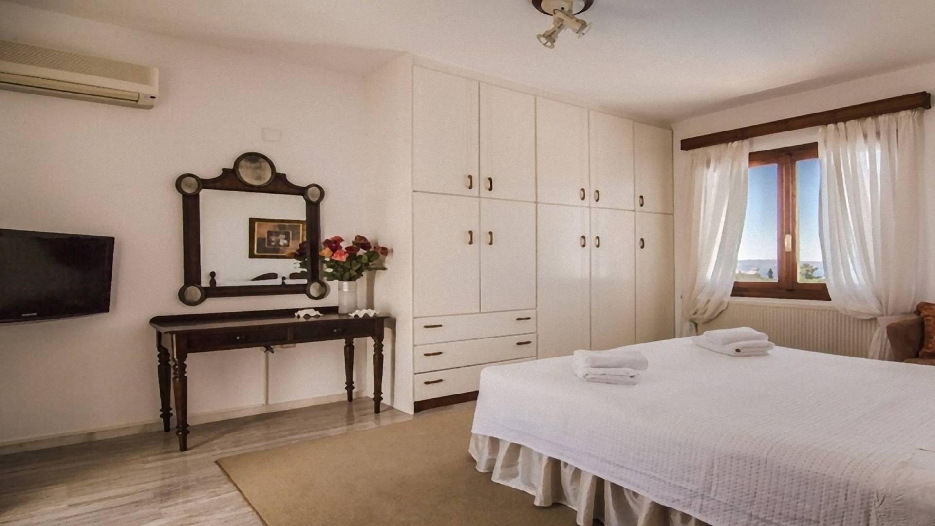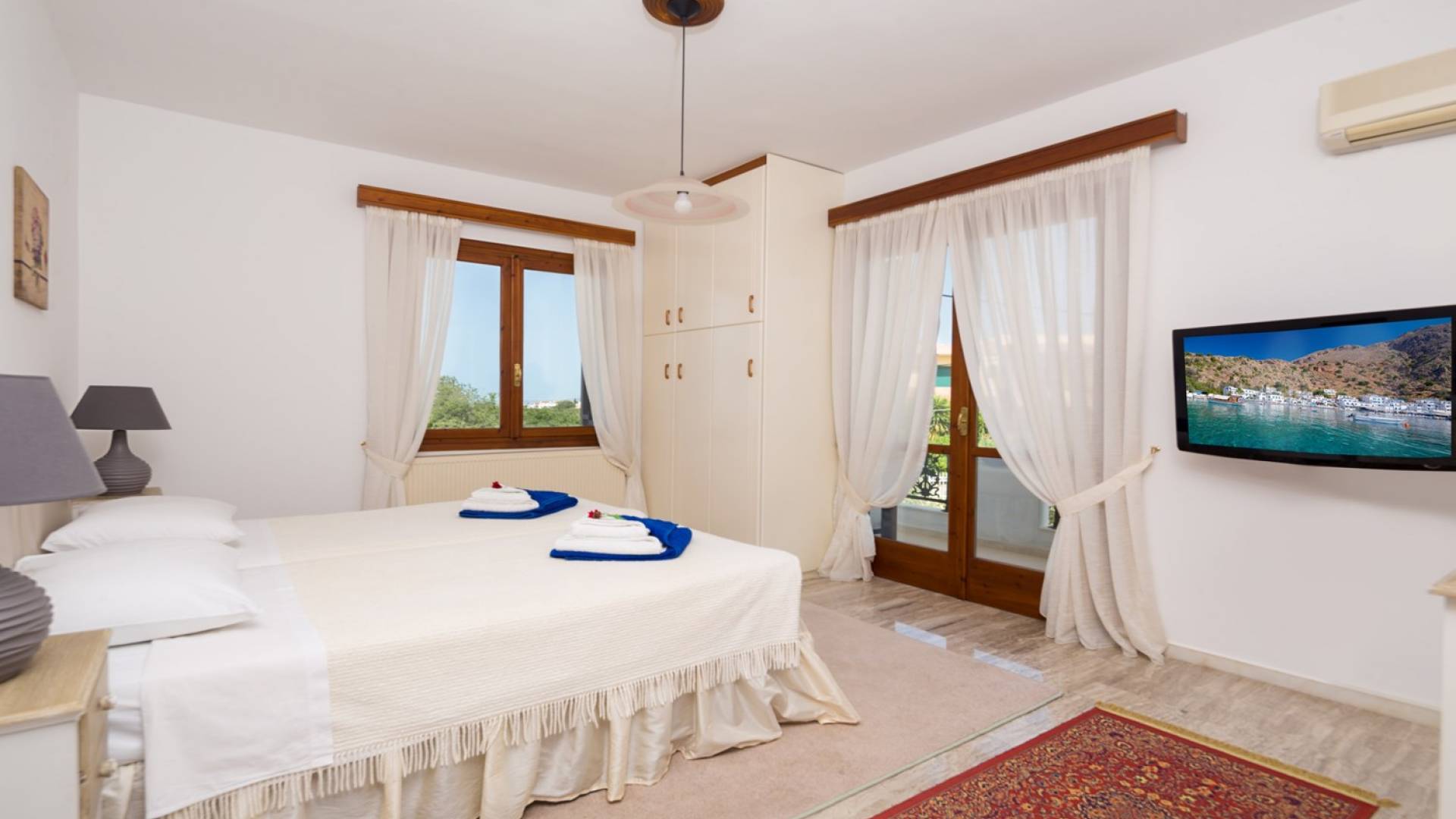 Die Villa ist außerdem mit vier Schlafzimmern ausgestattet, zwei im ersten Stock und zwei im Erdgeschoss, die bequem Platz für bis zu acht Personen bieten. Die beiden Etagen sind durch eine breite Innentreppe und einen Aufzug verbunden, der für diejenigen geeignet ist, die Schwierigkeiten haben, eine Treppe zu bewältigen. Es gibt zwei Badezimmer und ein WC, die sich die Schlafzimmer teilen, mit nur einem Badezimmer in der Suite – im Hauptschlafzimmer – auch mit begehbarem Kleiderschrank. Jedes Schlafzimmer hat einen einzigartigen Meerblick, eine private Veranda oder einen Balkon, eine Klimaanlage, einen Fernseher, voll ausgestattete, bequeme Betten und klassische oder antike Möbel. Die dritte Etage (Untergeschoss) wird hauptsächlich für Wartungszwecke genutzt, verfügt aber über ein weiteres Schlafzimmer, Bad, Küche, Heimkino, das auf Anfrage frei genutzt werden kann.
