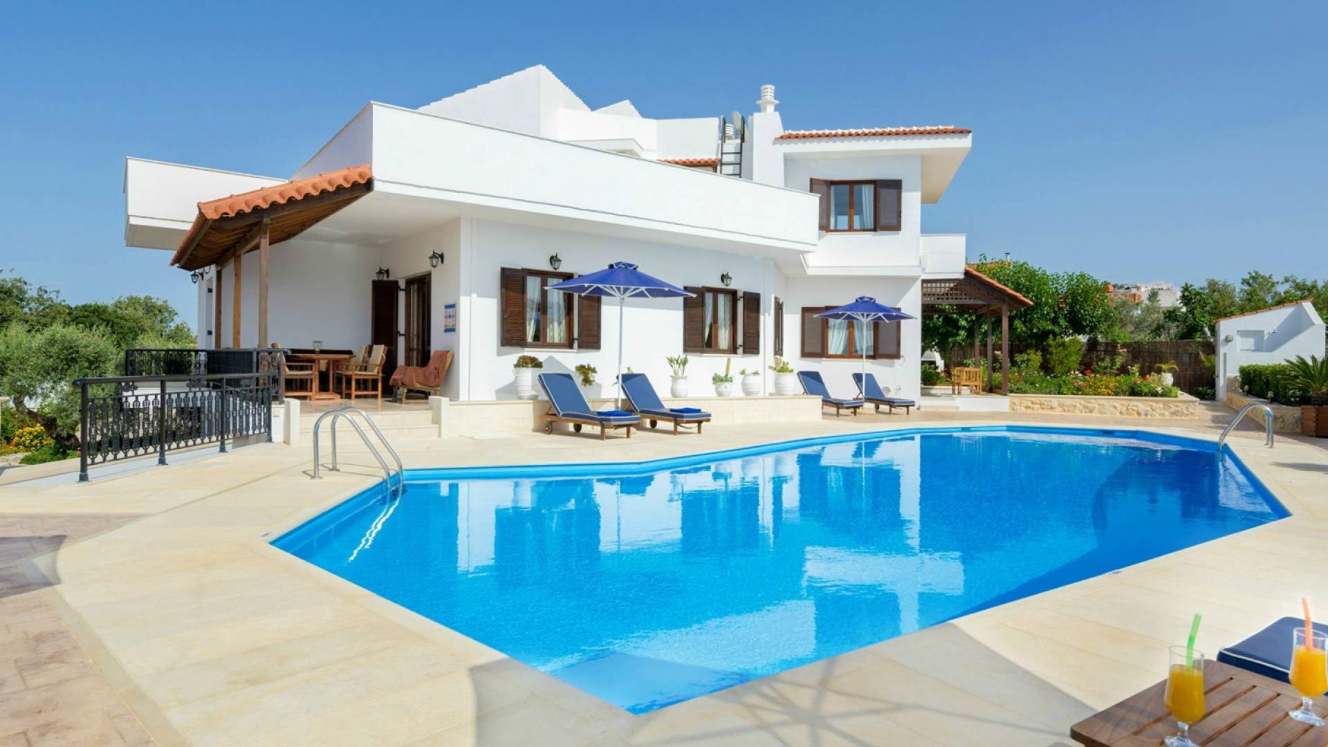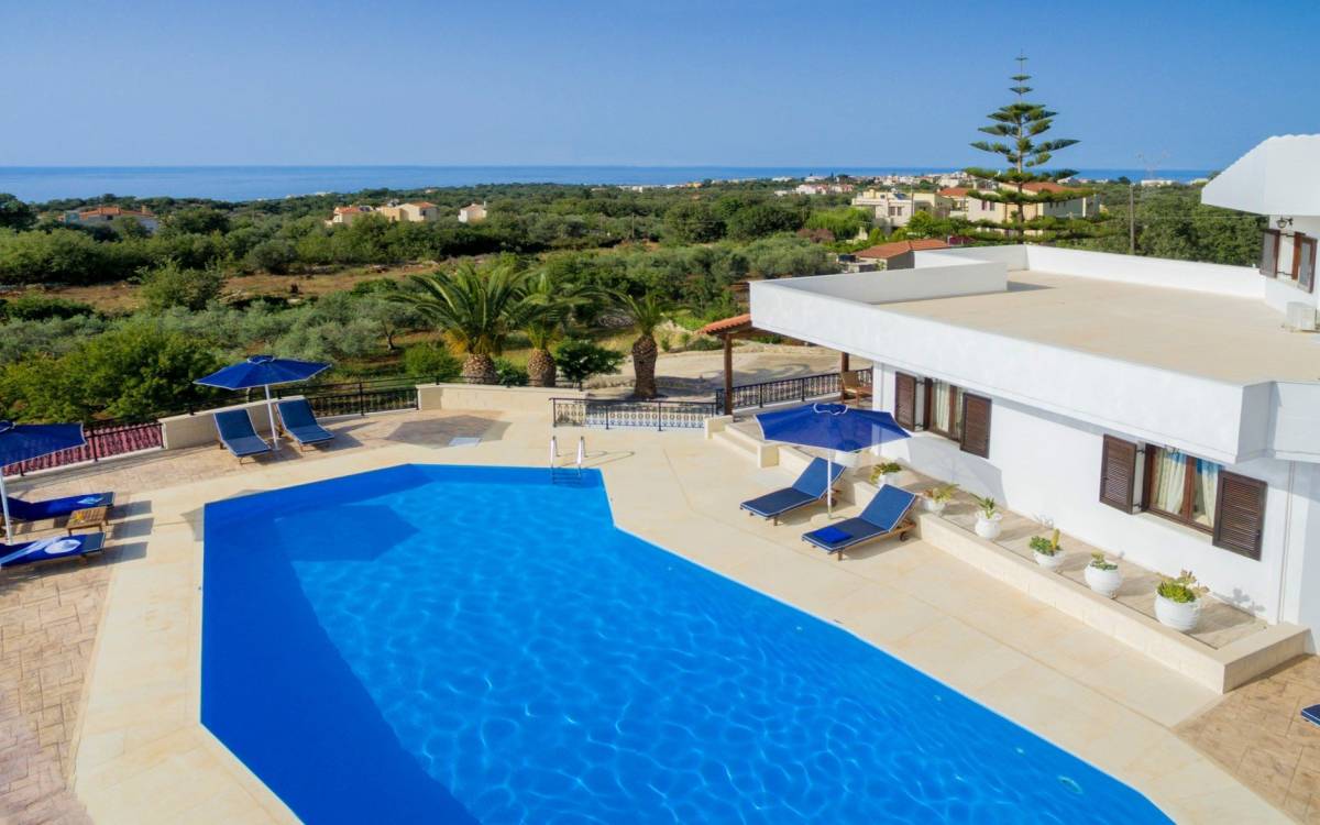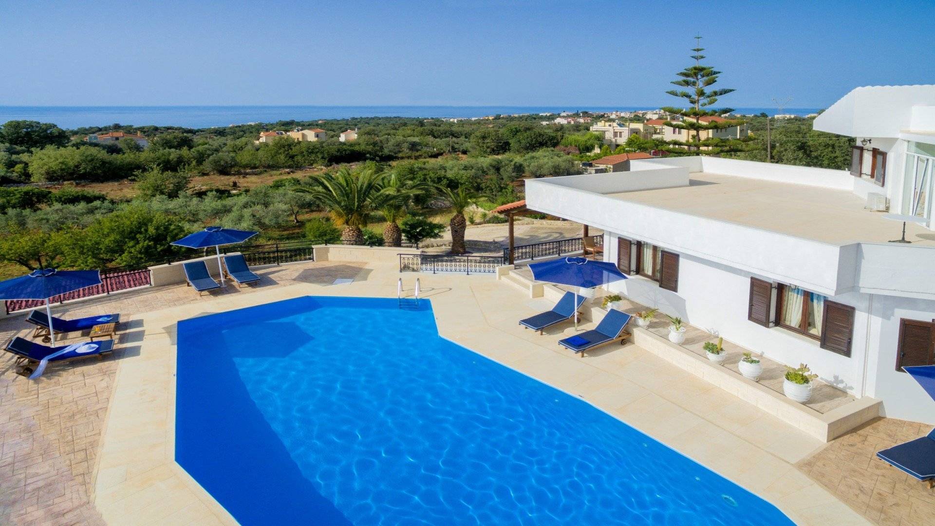 Rithymna Mansion Kreta ist eine Luxusvilla mit 4 Schlafzimmern und einem privaten Pool. Die Familienferienvilla Rithymna Mansion bietet auf ihrem Gelände einen wirklich großen privaten Swimmingpool. Der 15 x 6 m große Pool mit einer Tiefe von 1,4 m bis 2,6 m sorgt dafür, dass Sie Ihr tägliches Schwimmen in vollen Zügen genießen können. Daran angrenzend befinden sich eine Außendusche und ein WC sowie Liegen und Sonnenschirme.